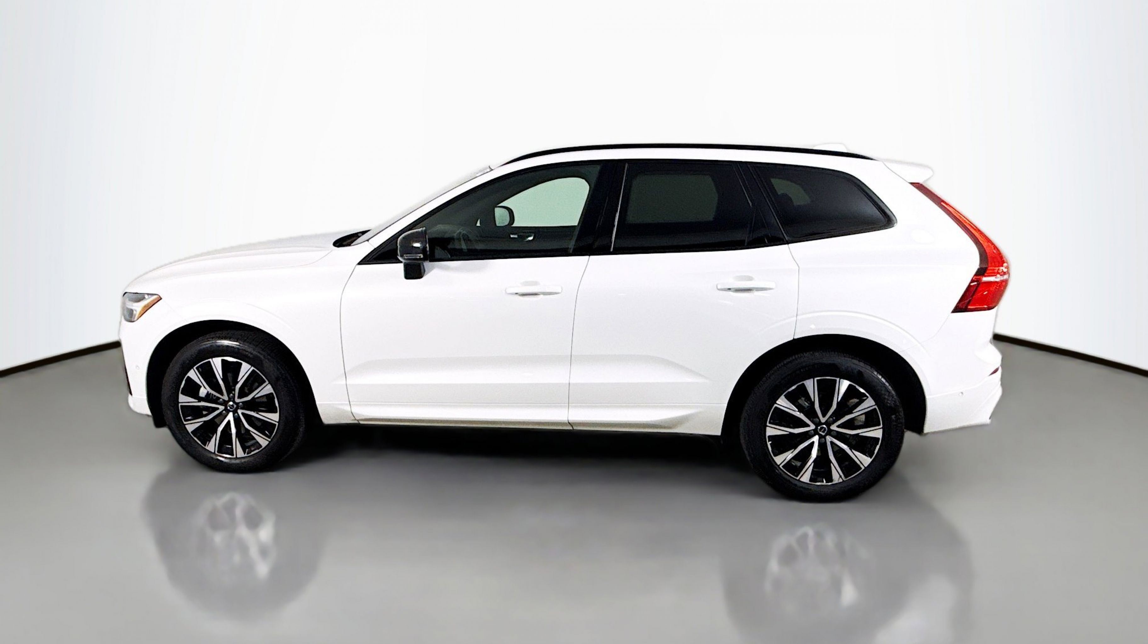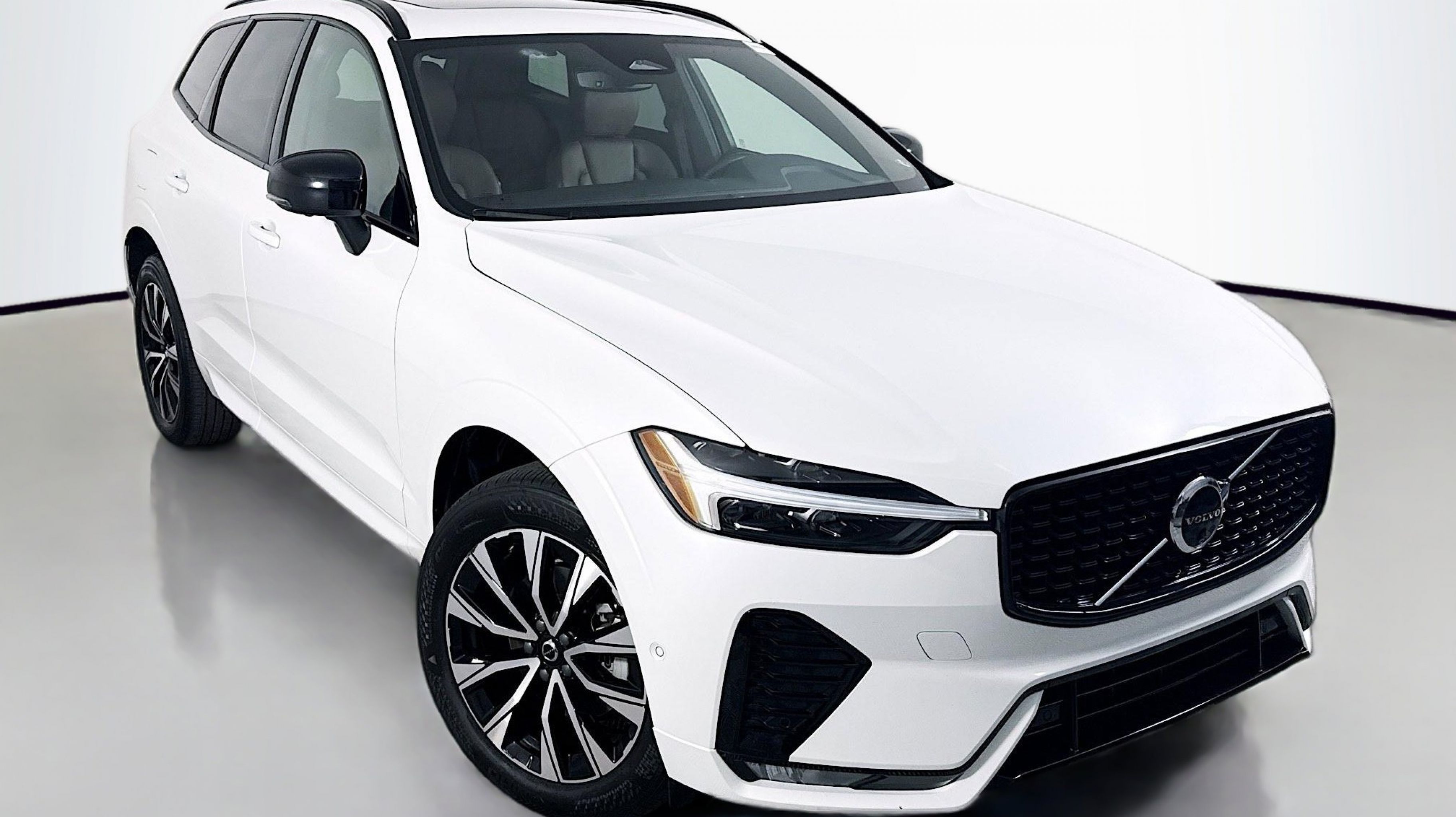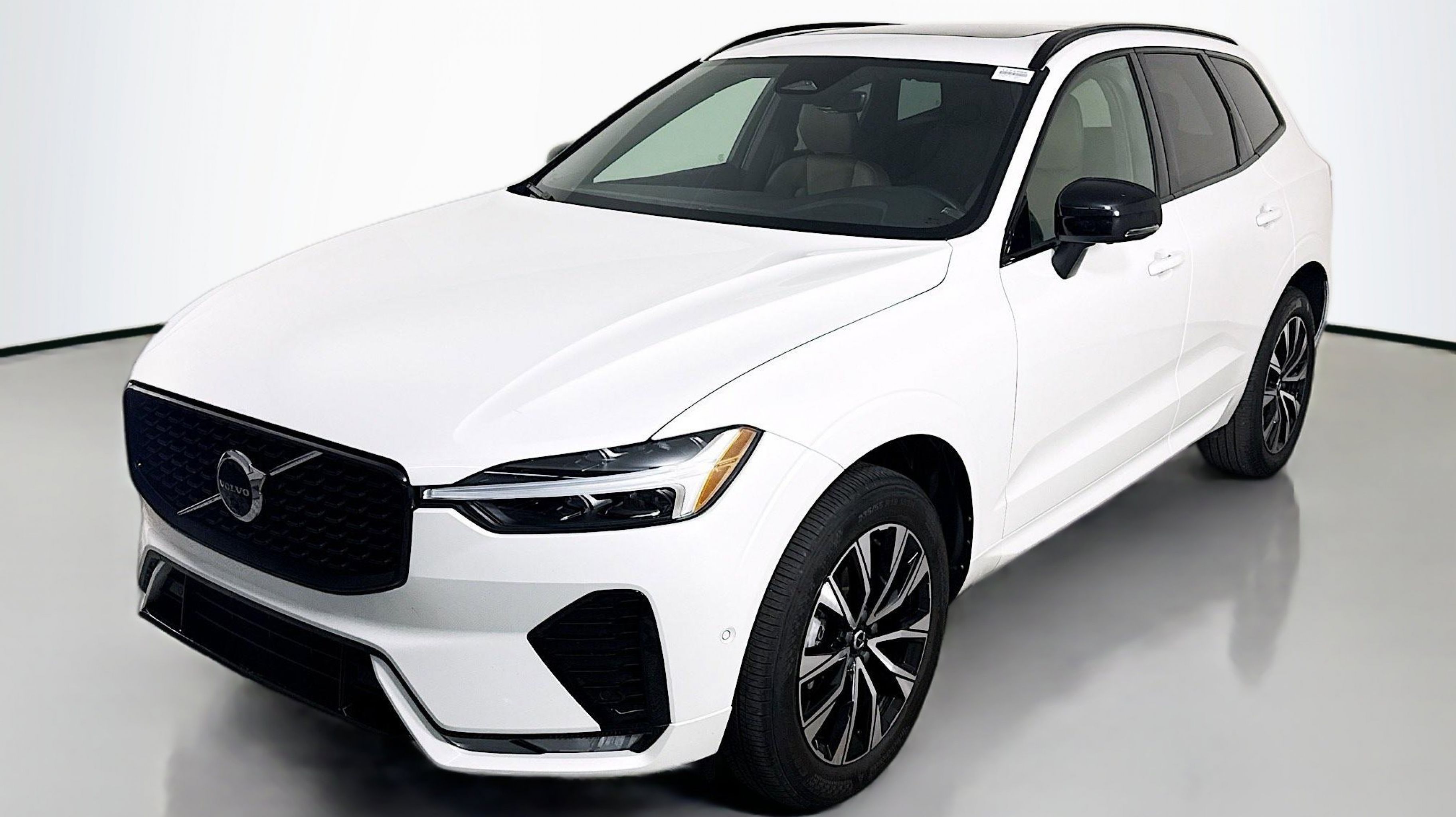 Crystal White Metallic 2024 Volvo XC60 B5 Plus Dark Theme AWD Automatic with Geartronic 2.0L I4 Turbocharged DOHC 16V LEV3-ULEV70 AWD, 10 Speakers, 4-Wheel Disc Brakes, ABS brakes, Air Conditioning, Alloy wheels, AM/FM radio: SiriusXM, Anti-whiplash front head restraints, Apple CarPlay, Auto High-beam Headlights, Auto-dimming door mirrors, Auto-dimming Rear-View mirror, Automatic temperature control, Brake assist, Bumpers: body-color, Delay-off headlights, Driver door bin, Driver vanity mirror, Dual front impact airbags, Dual front side impact airbags, Electronic Stability Control, Emergency communication system: Volvo Cars App w/4 Year Subscription, Exterior Parking Camera Rear, Four wheel independent suspension, Front anti-roll bar, Front Bucket Seats, Front Center Armrest, Front dual zone A/C, Front fog lights, Front reading lights, Fully automatic headlights, Garage door transmitter: HomeLink, Genuine wood console insert, Genuine wood dashboard insert, Heated door mirrors, Heated Front Bucket Seats, Heated front seats, Illuminated entry, Knee airbag, Leather Shift Knob, Leather Upholstery, Low tire pressure warning, Memory seat, Occupant sensing airbag, Outside temperature display, Overhead airbag, Panic alarm, PANORAMA SUNROOF, Passenger door bin, Passenger vanity mirror, Power door mirrors, Power driver seat, Power passenger seat, Power steering, Power windows, Radio data system, Radio: High Performance Audio System, Rain sensing wipers, Rear anti-roll bar, Rear fog lights, Rear reading lights, Rear seat center armrest, Rear window defroster, Rear window wiper, Remote keyless entry, Security system, Speed control, Split folding rear seat, Spoiler, Steering wheel mounted audio controls, Tachometer, Telescoping steering wheel, Tilt steering wheel, Traction control, Trip computer, Turn signal indicator mirrors, Variably intermittent wipers, Wheels: 19 5-V Spoke Black Diamond Cut Alloy, AWD.