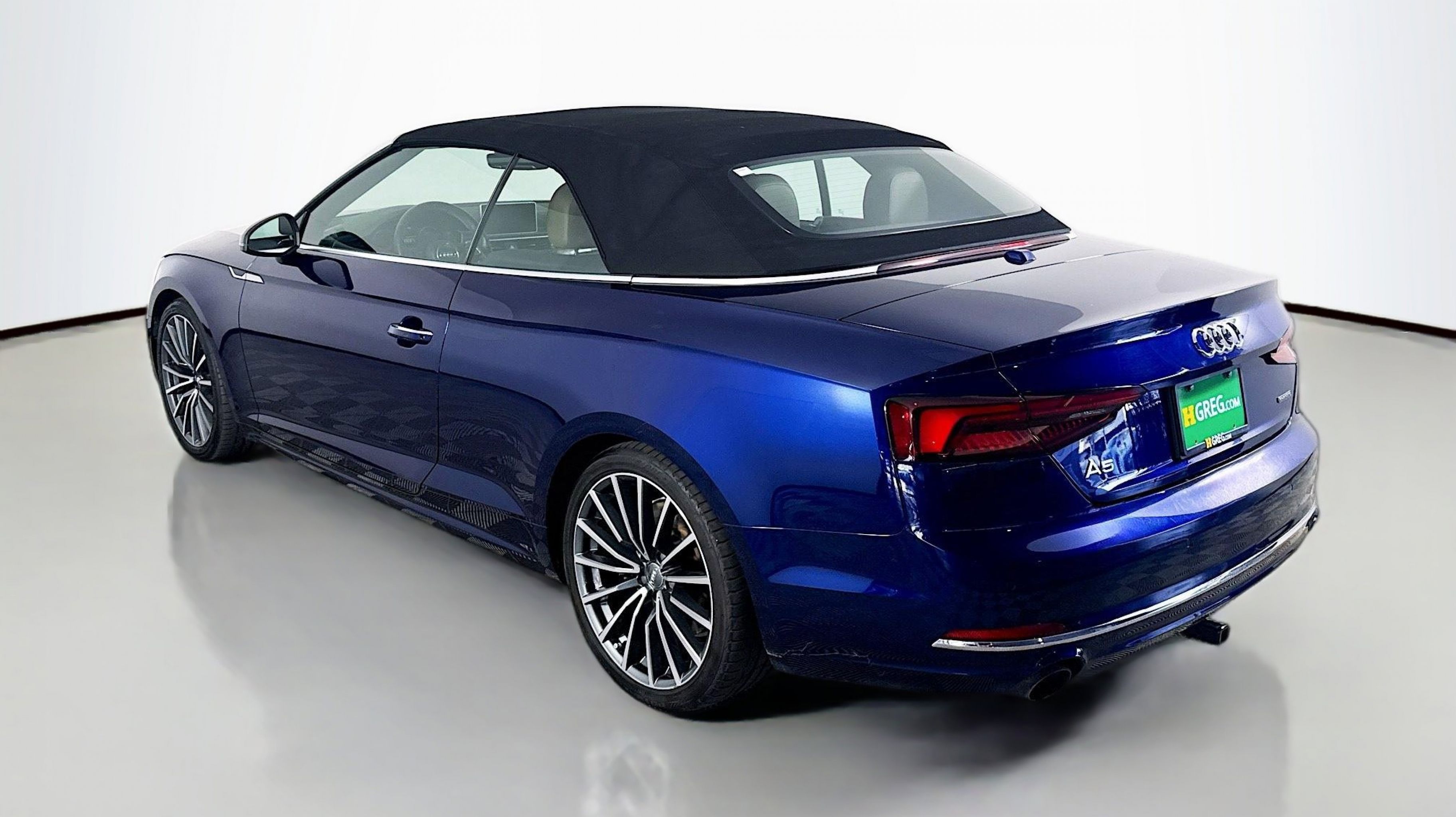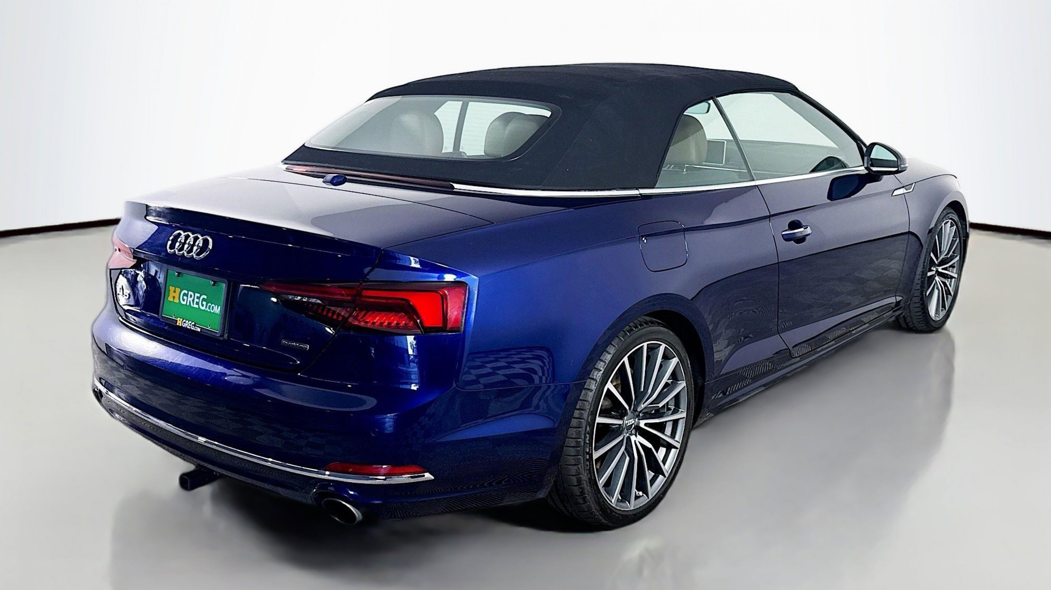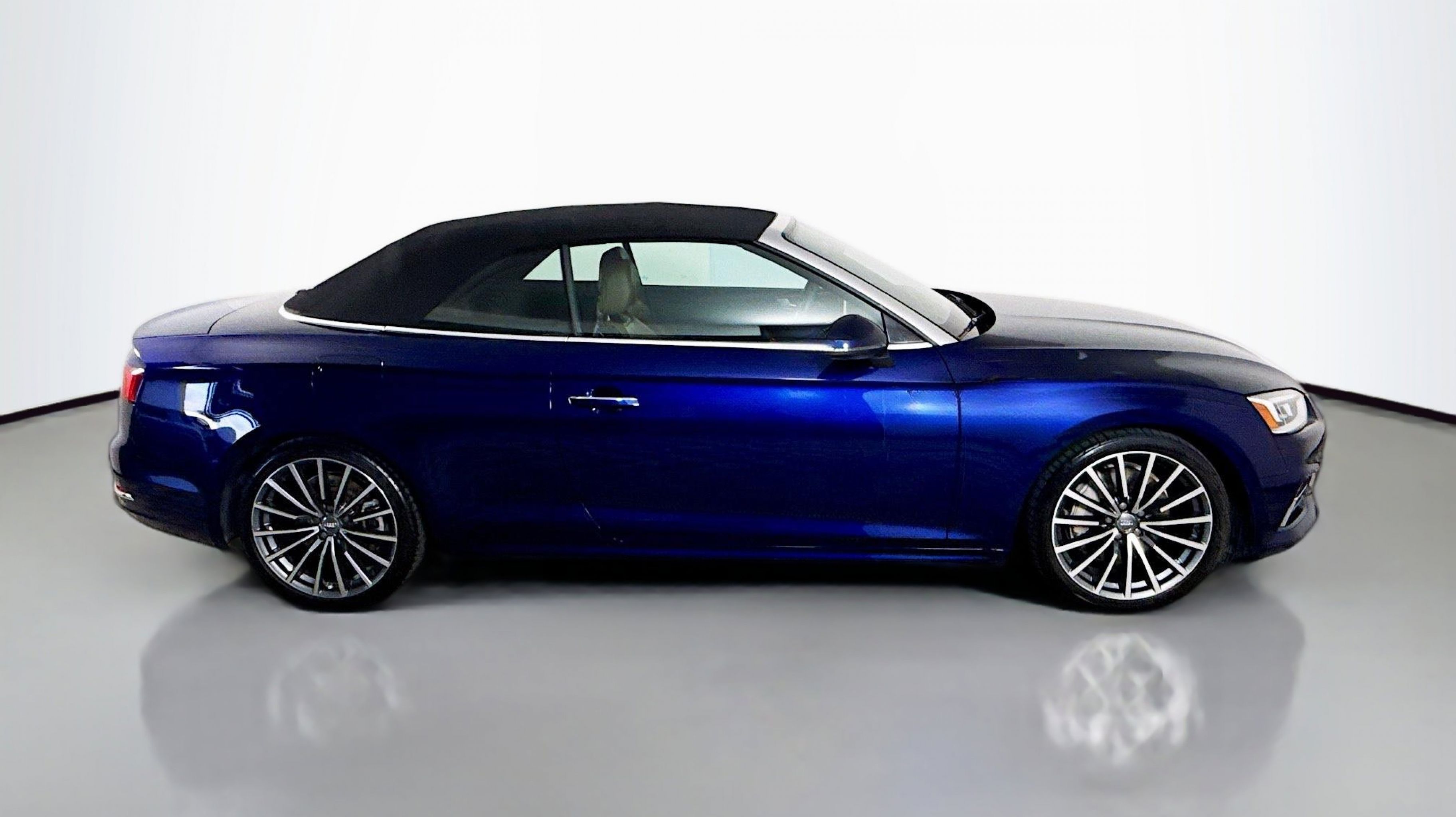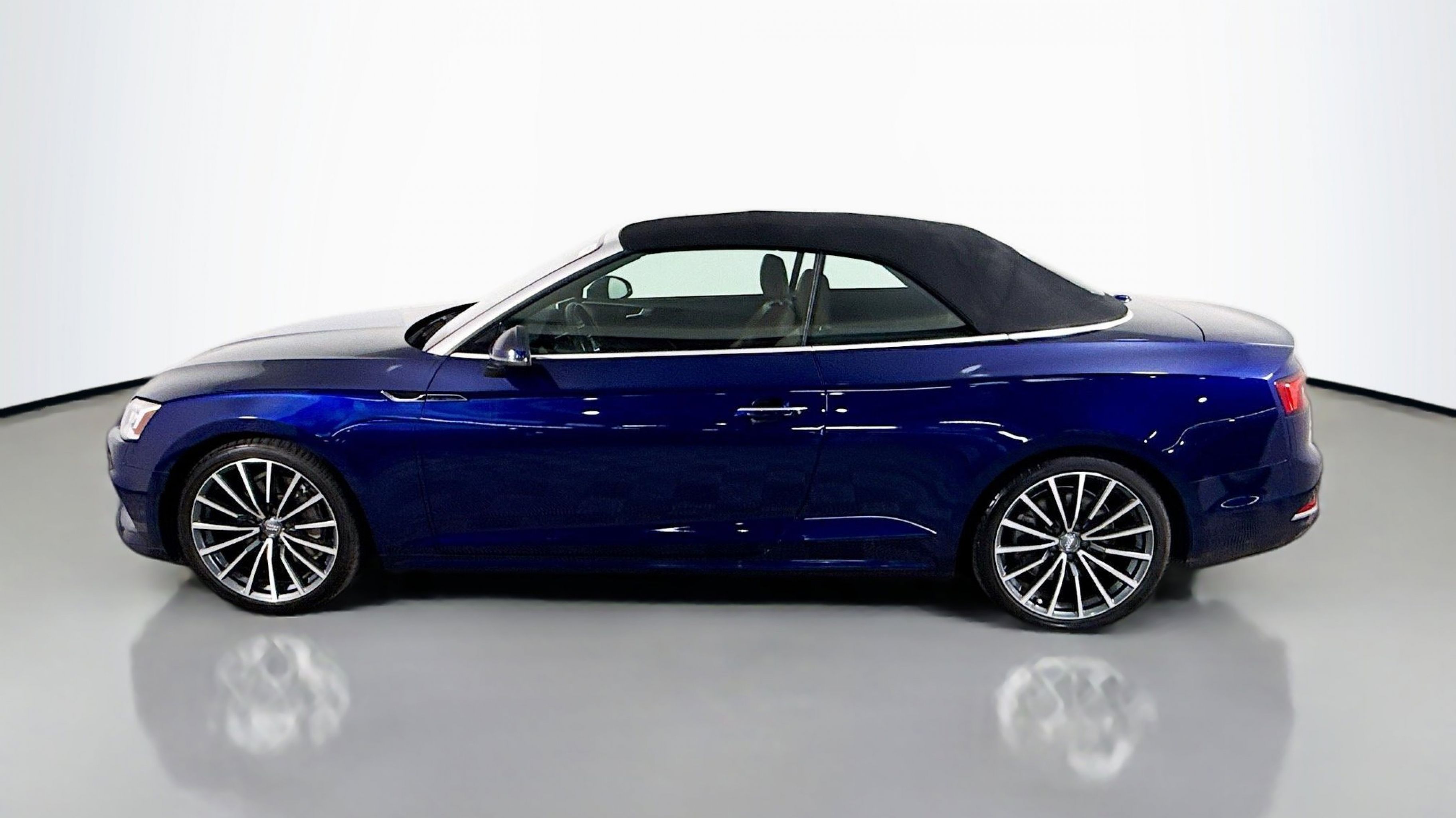 Navarra Blue Metallic 2019 Audi A5 2.0T Premium Plus quattro quattro 7-Speed Automatic S tronic 2.0L 4-Cylinder TFSI quattro, Nougat Brown w/Leather Seating Surfaces, 19 Design line Wheel Package, Alarm System w/Motion Sensors, Audi Advanced Key, Audi MMI Navigation Plus w/MMI Touch, Audi pre sense rear, Audi Side Assist, Auto-Dimming Exterior Mirrors, Convenience Package, Driver Seat Memory, Front Sport Seats, Heated Steering Wheel, Luxury Package, Neck-Level Heating System, Parking System Plus (Front/Rear Acoustic Sensors), Power Folding Exterior Mirrors, Premium Plus, SiriusXM All Access Service, Sport Suspension, Ventilated Front Seats, Wheels: 19 x 8.5 Multi-Spoke Design Bi-Color, 10 Speakers, 4-Wheel Disc Brakes, ABS brakes, Air Conditioning, Alloy wheels, AM/FM radio, Anti-whiplash front head restraints, Audi First Aid Kit, Audi Guard All-Weather Front & Rear Mats, Audi smartphone interface (Apple CarPlay/Android Auto), Auto-dimming Rear-View mirror, Automatic temperature control, Bang & Olufsen Sound System w/3D Sound, Brake assist, Bumpers: body-color, Compass, Convertible roof lining, Convertible roof wind blocker, Delay-off headlights, Delete Front License Plate Holder, Driver door bin, Driver vanity mirror, Dual front impact airbags, Dual front side impact airbags, Electronic Stability Control, Emergency communication system: Audi connect CARE, Exterior Parking Camera Rear, Four wheel independent suspension, Front anti-roll bar, Front Bucket Seats, Front Center Armrest, Front dual zone A/C, Front fog lights, Front reading lights, Garage door transmitter: HomeLink, Genuine wood console insert, Genuine wood door panel insert, Glass rear window, Headlight cleaning, Heated door mirrors, Heated Front Bucket Seats, Heated front seats, Illuminated entry, Integrated roll-over protection, Knee airbag, Leather Seating Surfaces, Leather Shift Knob, Leather steering wheel, Low tire pressure warning, Occupant sensing airbag, Outside temperature display, Panic alarm, Passenger door bin, Passenger vanity mirror, Power adjustable front head restraints, Power convertible roof, Power door mirrors, Power driver seat, Power passenger seat, Power steering, Power windows, Radio data system, Radio: Audi Sound System, Rain sensing wipers, Rear air conditioning, Rear anti-roll bar, Rear reading lights, Rear window defroster, Remote keyless entry, Rings Audi Beam, Security system, Speed control, Speed-sensing steering, Speed-Sensitive Wipers, Split folding rear seat, Steering wheel mounted audio controls, Tachometer, Telescoping steering wheel, Tilt steering wheel, Traction control, Trip computer, Turn signal indicator mirrors, USB Cables, Variably intermittent wipers, Wheels: 18 x 8.5 5-Arm-Dynamic Design, quattro, Nougat Brown w/Leather Seating Surfaces, 19 Design line Wheel Package, Alarm System w/Motion Sensors, Audi Advanced Key, Audi MMI Navigation Plus w/MMI Touch, Audi pre sense rear, Audi Side Assist, Auto-Dimming Exterior Mirrors, Convenience Package, Driver Seat Memory, Front Sport Seats, Heated Steering Wheel, Luxury Package, Neck-Level Heating System, Parking System Plus (Front/Rear Acoustic Sensors), Power Folding Exterior Mirrors, Premium Plus, SiriusXM All Access Service, Sport Suspension, Ventilated Front Seats, Wheels: 19 x 8.5 Multi-Spoke Design Bi-Color.