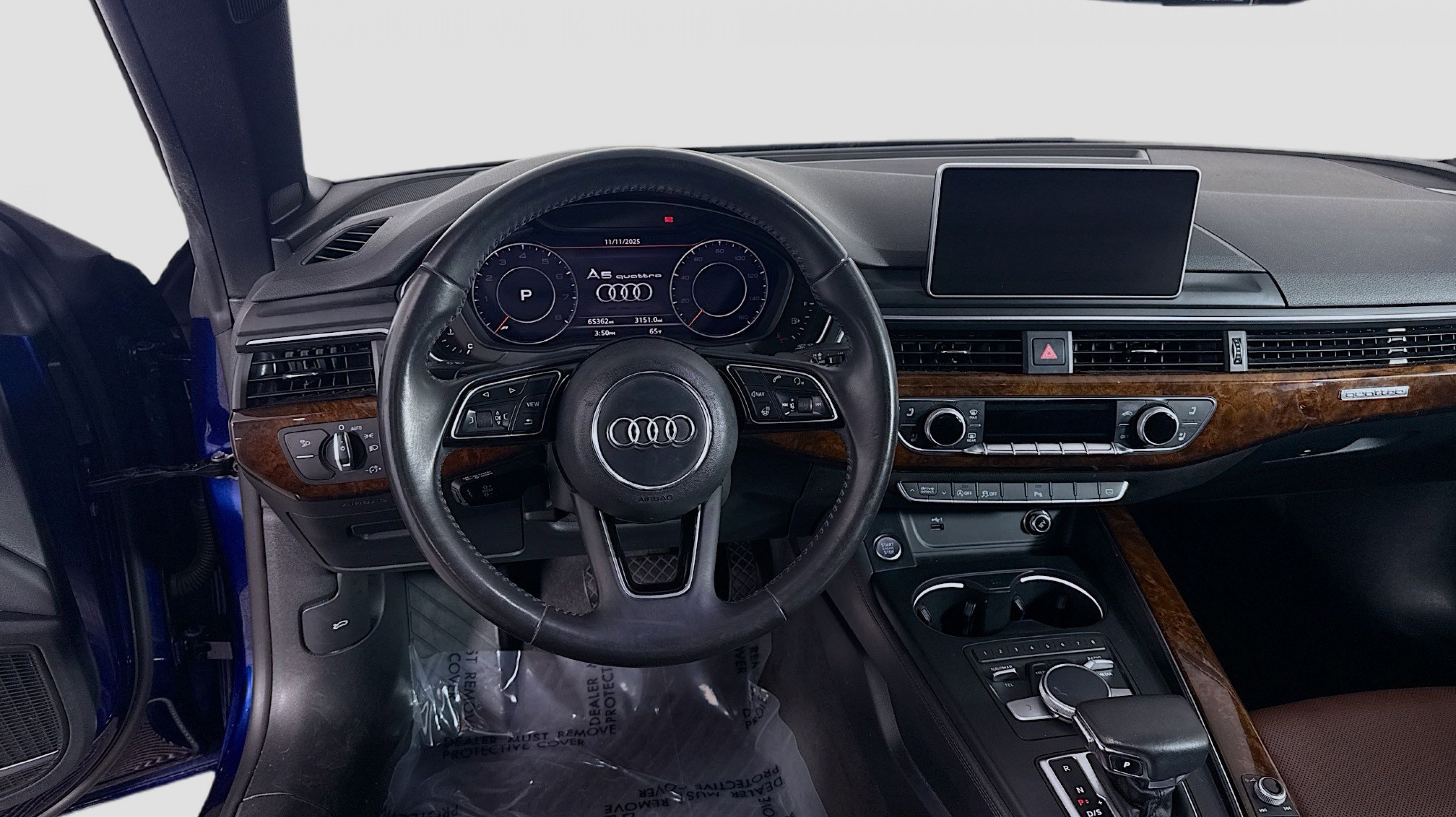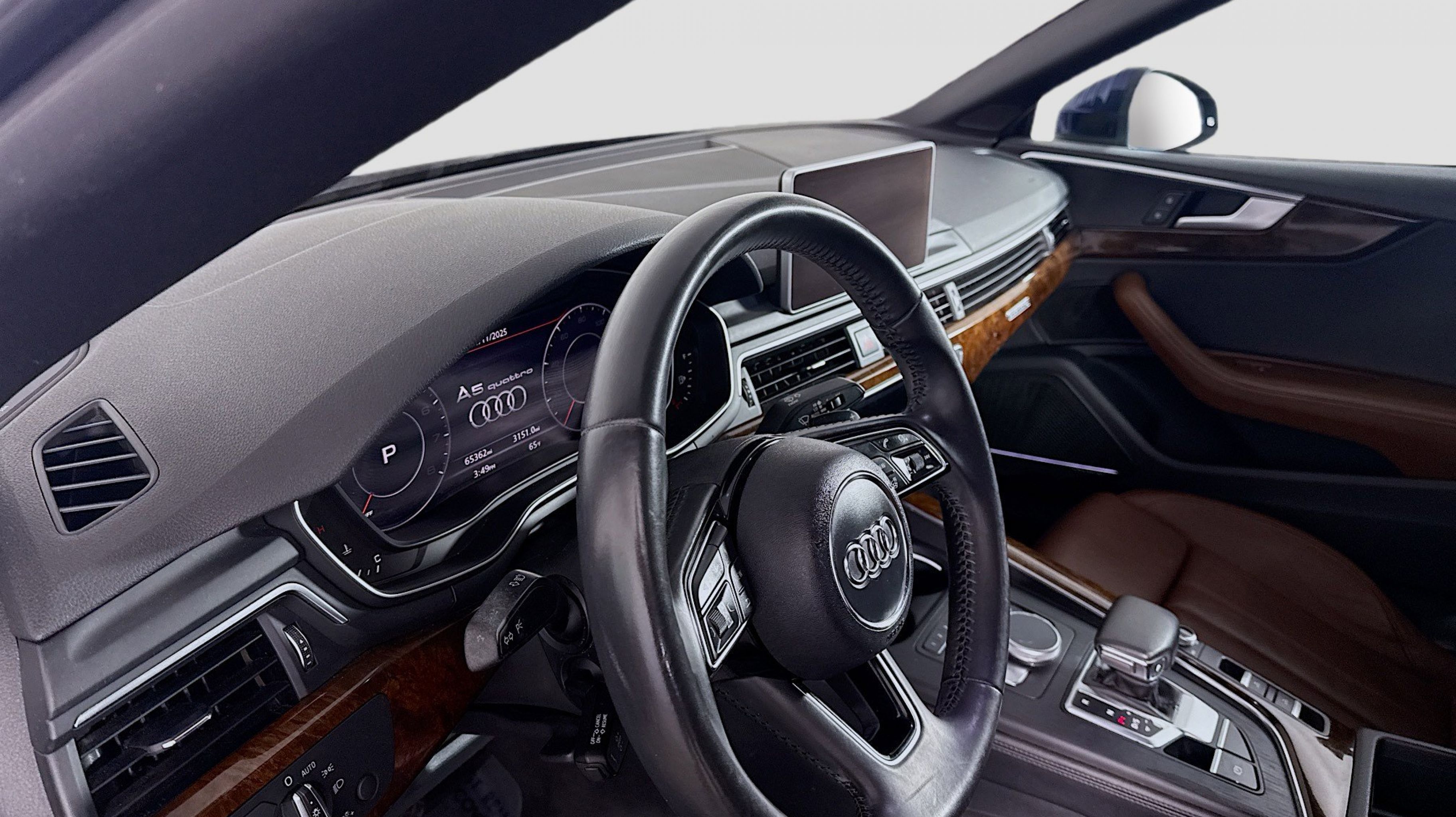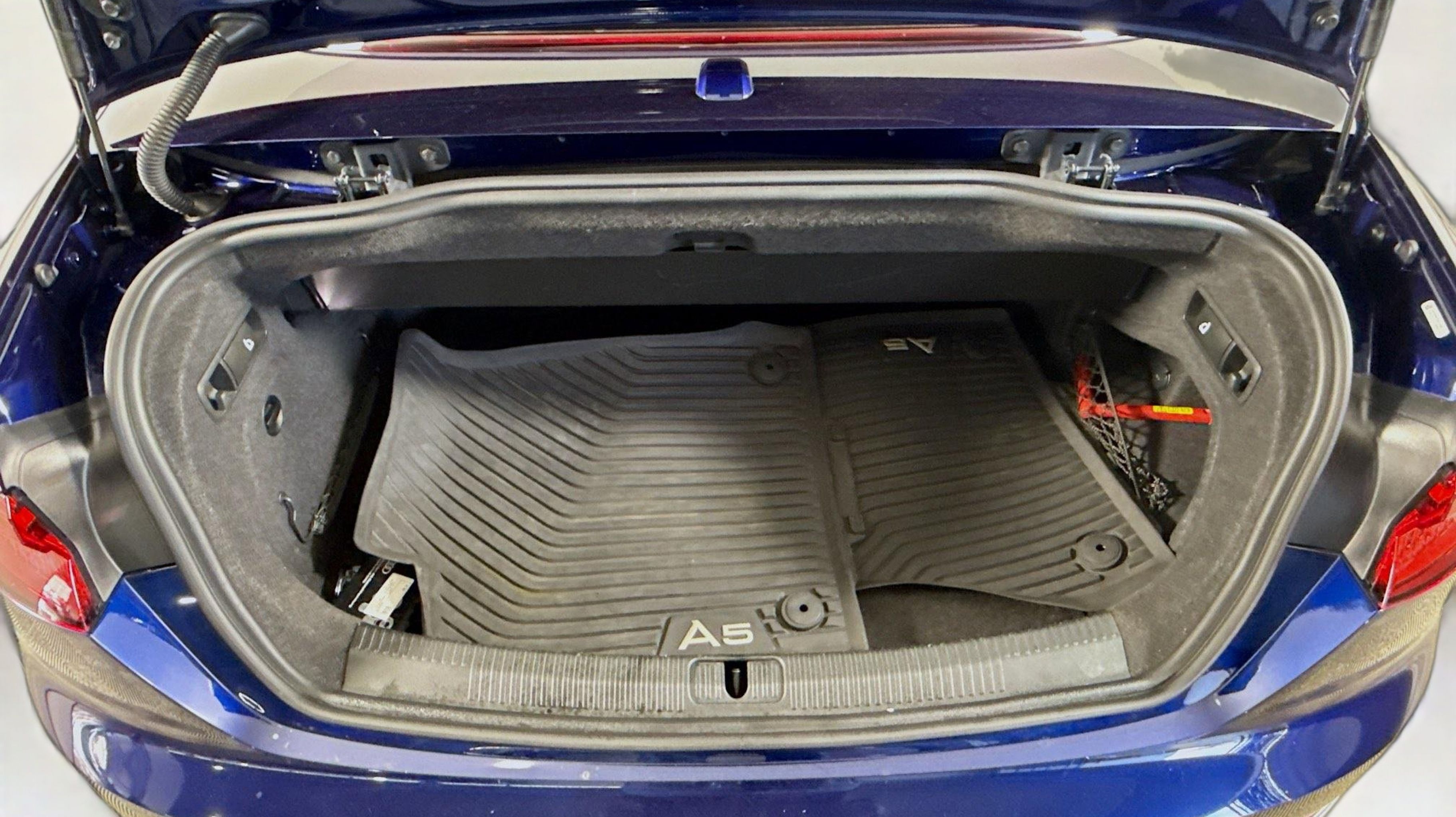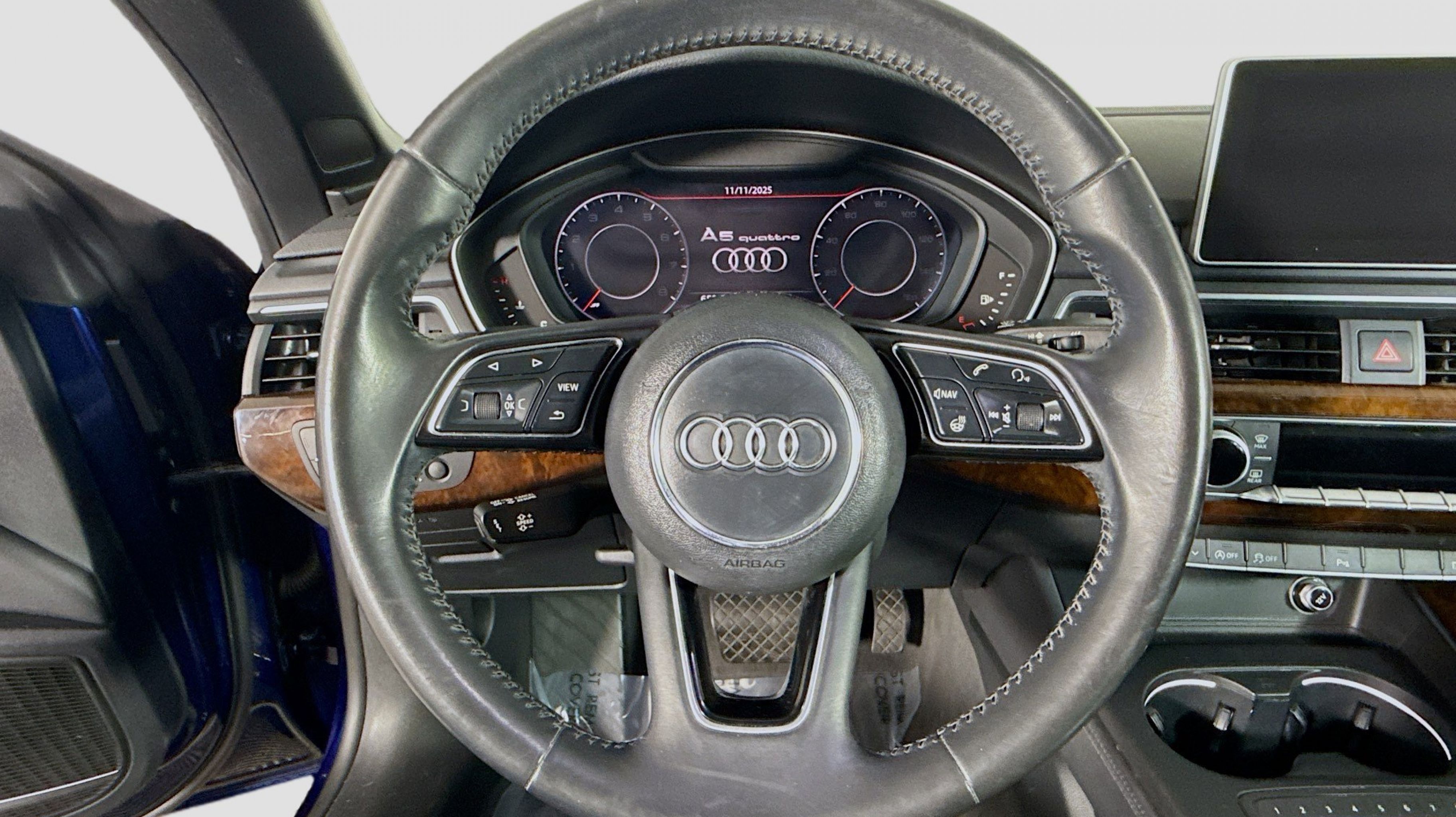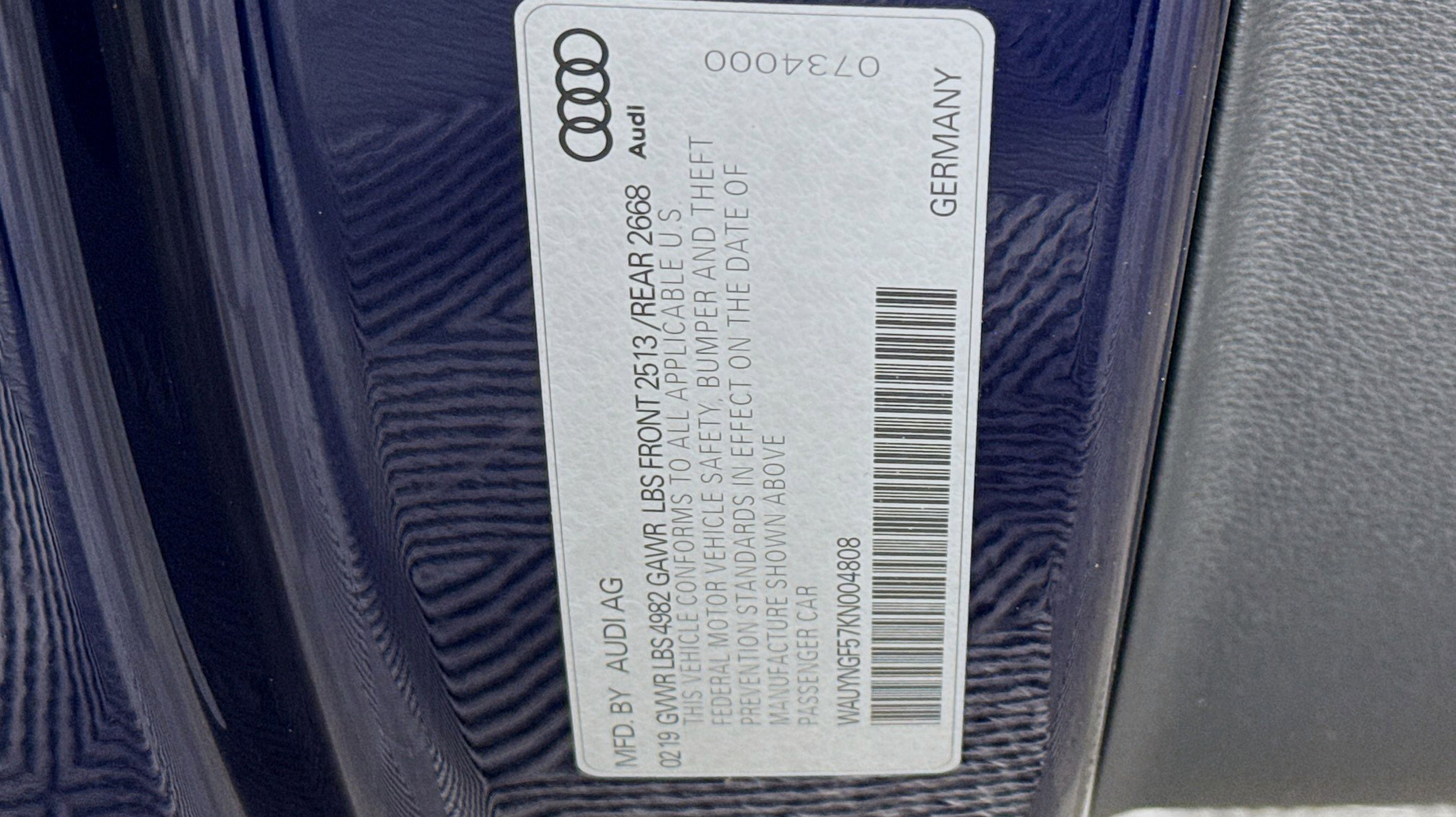 Navarra Blue Metallic 2019 Audi A5 2.0T Premium Plus quattro quattro 7-Speed Automatic S tronic 2.0L 4-Cylinder TFSI quattro, Nougat Brown w/Leather Seating Surfaces, 19 Design line Wheel Package, Alarm System w/Motion Sensors, Audi Advanced Key, Audi MMI Navigation Plus w/MMI Touch, Audi pre sense rear, Audi Side Assist, Auto-Dimming Exterior Mirrors, Convenience Package, Driver Seat Memory, Front Sport Seats, Heated Steering Wheel, Luxury Package, Neck-Level Heating System, Parking System Plus (Front/Rear Acoustic Sensors), Power Folding Exterior Mirrors, Premium Plus, SiriusXM All Access Service, Sport Suspension, Ventilated Front Seats, Wheels: 19 x 8.5 Multi-Spoke Design Bi-Color, 10 Speakers, 4-Wheel Disc Brakes, ABS brakes, Air Conditioning, Alloy wheels, AM/FM radio, Anti-whiplash front head restraints, Audi First Aid Kit, Audi Guard All-Weather Front & Rear Mats, Audi smartphone interface (Apple CarPlay/Android Auto), Auto-dimming Rear-View mirror, Automatic temperature control, Bang & Olufsen Sound System w/3D Sound, Brake assist, Bumpers: body-color, Compass, Convertible roof lining, Convertible roof wind blocker, Delay-off headlights, Delete Front License Plate Holder, Driver door bin, Driver vanity mirror, Dual front impact airbags, Dual front side impact airbags, Electronic Stability Control, Emergency communication system: Audi connect CARE, Exterior Parking Camera Rear, Four wheel independent suspension, Front anti-roll bar, Front Bucket Seats, Front Center Armrest, Front dual zone A/C, Front fog lights, Front reading lights, Garage door transmitter: HomeLink, Genuine wood console insert, Genuine wood door panel insert, Glass rear window, Headlight cleaning, Heated door mirrors, Heated Front Bucket Seats, Heated front seats, Illuminated entry, Integrated roll-over protection, Knee airbag, Leather Seating Surfaces, Leather Shift Knob, Leather steering wheel, Low tire pressure warning, Occupant sensing airbag, Outside temperature display, Panic alarm, Passenger door bin, Passenger vanity mirror, Power adjustable front head restraints, Power convertible roof, Power door mirrors, Power driver seat, Power passenger seat, Power steering, Power windows, Radio data system, Radio: Audi Sound System, Rain sensing wipers, Rear air conditioning, Rear anti-roll bar, Rear reading lights, Rear window defroster, Remote keyless entry, Rings Audi Beam, Security system, Speed control, Speed-sensing steering, Speed-Sensitive Wipers, Split folding rear seat, Steering wheel mounted audio controls, Tachometer, Telescoping steering wheel, Tilt steering wheel, Traction control, Trip computer, Turn signal indicator mirrors, USB Cables, Variably intermittent wipers, Wheels: 18 x 8.5 5-Arm-Dynamic Design, quattro, Nougat Brown w/Leather Seating Surfaces, 19 Design line Wheel Package, Alarm System w/Motion Sensors, Audi Advanced Key, Audi MMI Navigation Plus w/MMI Touch, Audi pre sense rear, Audi Side Assist, Auto-Dimming Exterior Mirrors, Convenience Package, Driver Seat Memory, Front Sport Seats, Heated Steering Wheel, Luxury Package, Neck-Level Heating System, Parking System Plus (Front/Rear Acoustic Sensors), Power Folding Exterior Mirrors, Premium Plus, SiriusXM All Access Service, Sport Suspension, Ventilated Front Seats, Wheels: 19 x 8.5 Multi-Spoke Design Bi-Color.