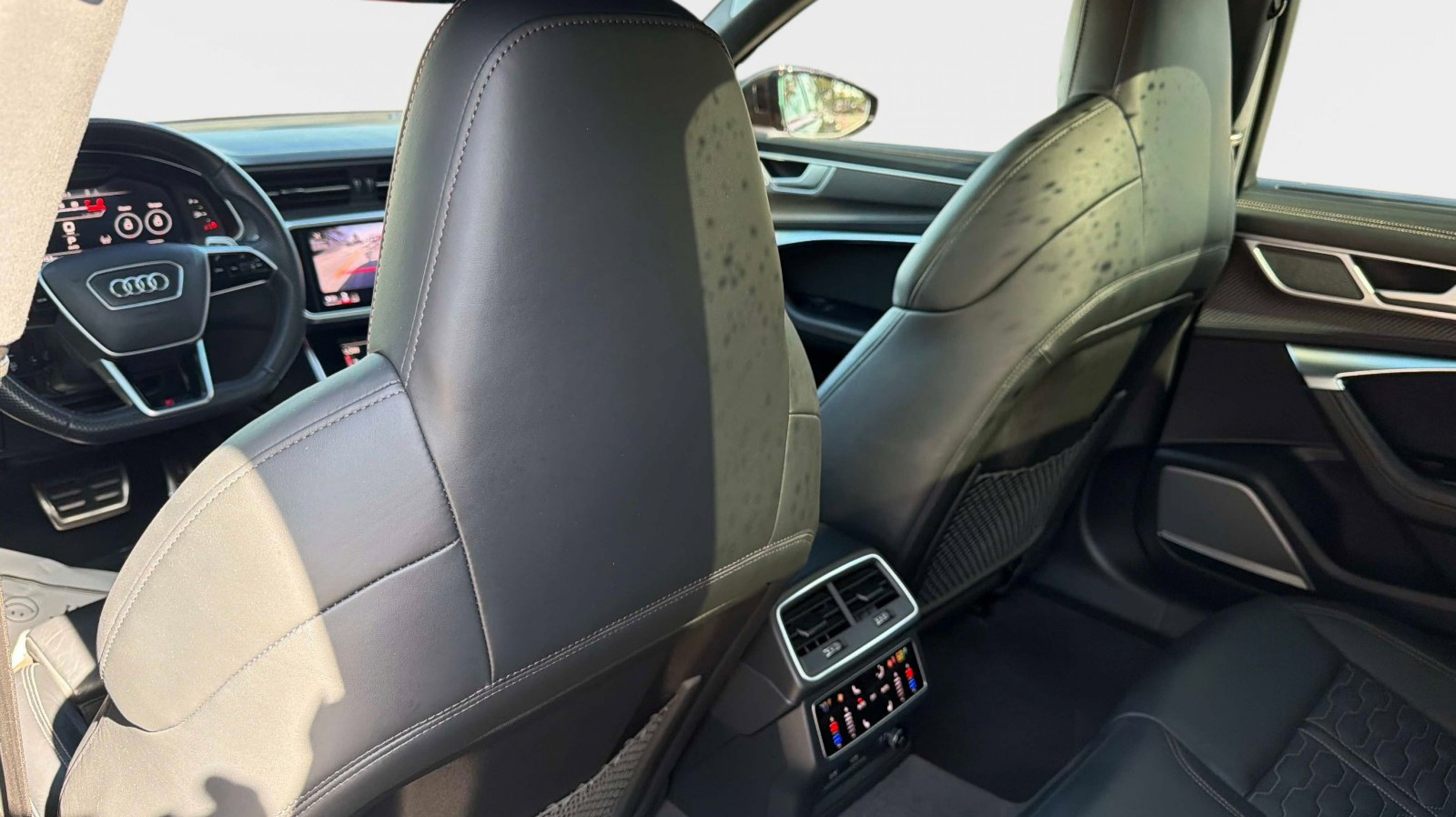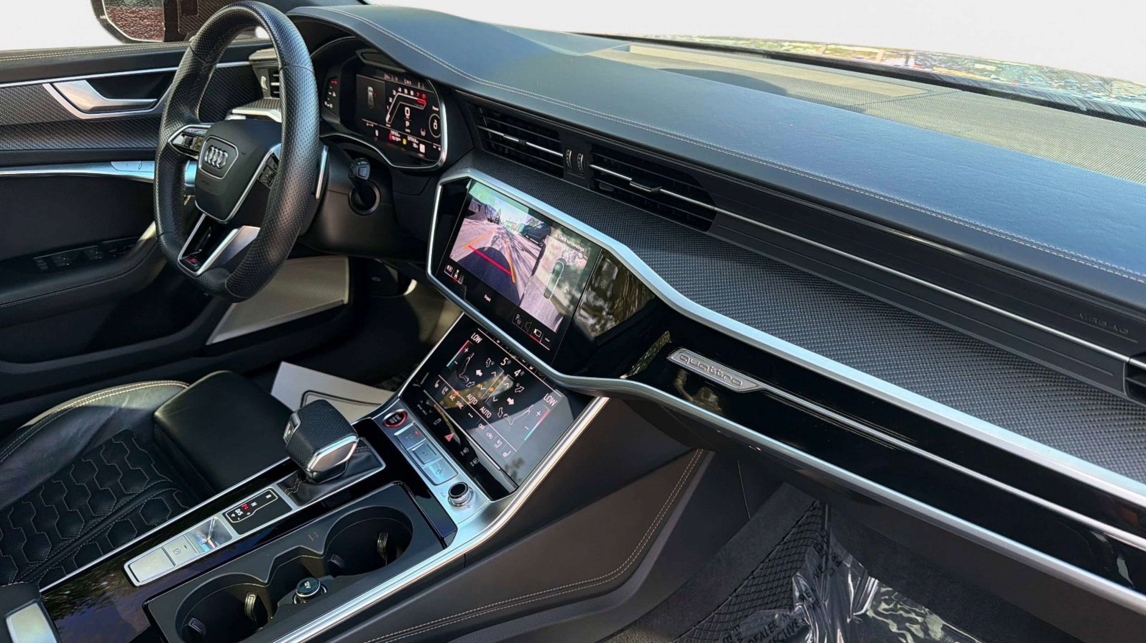 Clean CARFAX. 16 Speakers, 4-Wheel Disc Brakes, ABS brakes, Adaptive suspension, Air Conditioning, Alloy wheels, AM/FM radio: SiriusXM w/ 360L, Auto High-beam Headlights, Auto tilt-away steering wheel, Auto-dimming door mirrors, Auto-dimming Rear-View mirror, Auto-leveling suspension, Automatic temperature control, Bang & Olufsen Premium Sound System w/3D Sound, Brake assist, Bumpers: body-color, Compass, Delay-off headlights, Driver door bin, Driver vanity mirror, Dual front impact airbags, Dual front side impact airbags, Electronic Stability Control, Emergency communication system: Audi connect CARE (limited time subscription), Exterior Parking Camera Rear, Four wheel independent suspension, Front anti-roll bar, Front Bucket Seats, Front Center Armrest, Front dual zone A/C, Front fog lights, Front reading lights, Garage door transmitter: HomeLink, Headlight cleaning, Heated & Ventilated Front RS Sport Seats Plus, Heated door mirrors, Heated front seats, Heated steering wheel, Illuminated entry, Knee airbag, Leather Shift Knob, Leather steering wheel, Low tire pressure warning, Memory seat, Navigation system: Audi connect NAV & PLUS, Occupant sensing airbag, Outside temperature display, Overhead airbag, Overhead console, Panic alarm, Passenger door bin, Passenger vanity mirror, Power door mirrors, Power driver seat, Power Liftgate, Power moonroof, Power passenger seat, Power steering, Power windows, Radio data system, Radio: Audi MMI Nav Plus w/MMI Touch Response, Rain sensing wipers, Rear air conditioning, Rear anti-roll bar, Rear dual zone A/C, Rear reading lights, Rear seat center armrest, Rear side impact airbag, Rear window defroster, Rear window wiper, Remote keyless entry, Security system, Speed control, Speed-sensing steering, Speed-Sensitive Wipers, Split folding rear seat, Spoiler, Sport steering wheel, Steering wheel memory, Steering wheel mounted audio controls, Tachometer, Telescoping steering wheel, Tilt steering wheel, Traction control, Trip computer, Turn signal indicator mirrors, Valcona Leather Seat Trim, Variably intermittent wipers, Ventilated front seats, Wheels: 21 Silver Finish 10-Spoke Star Design.
