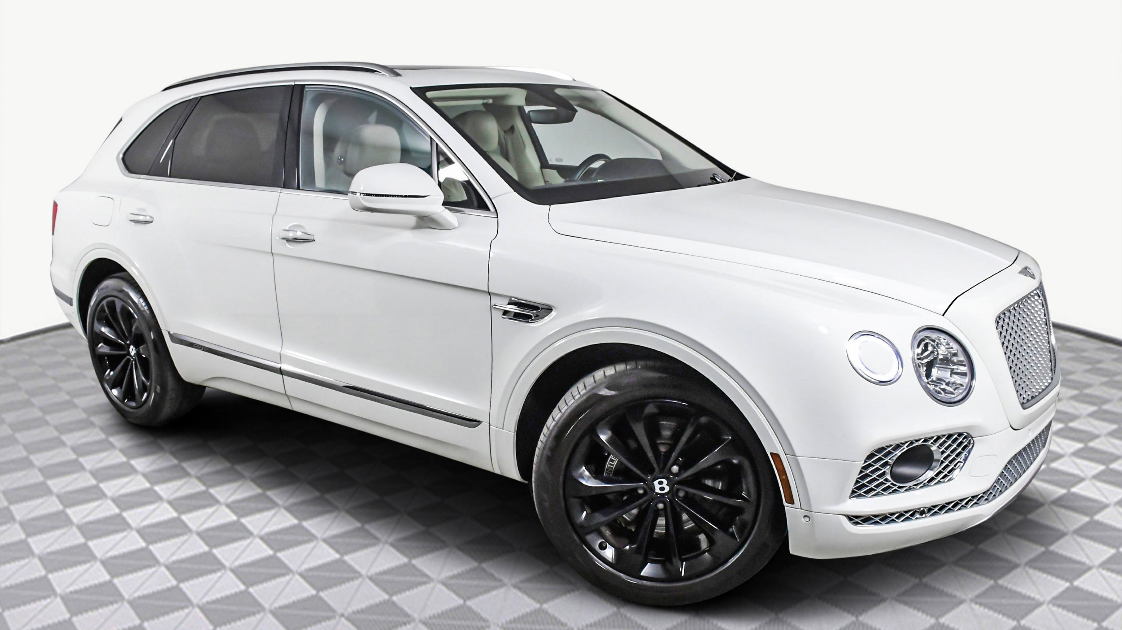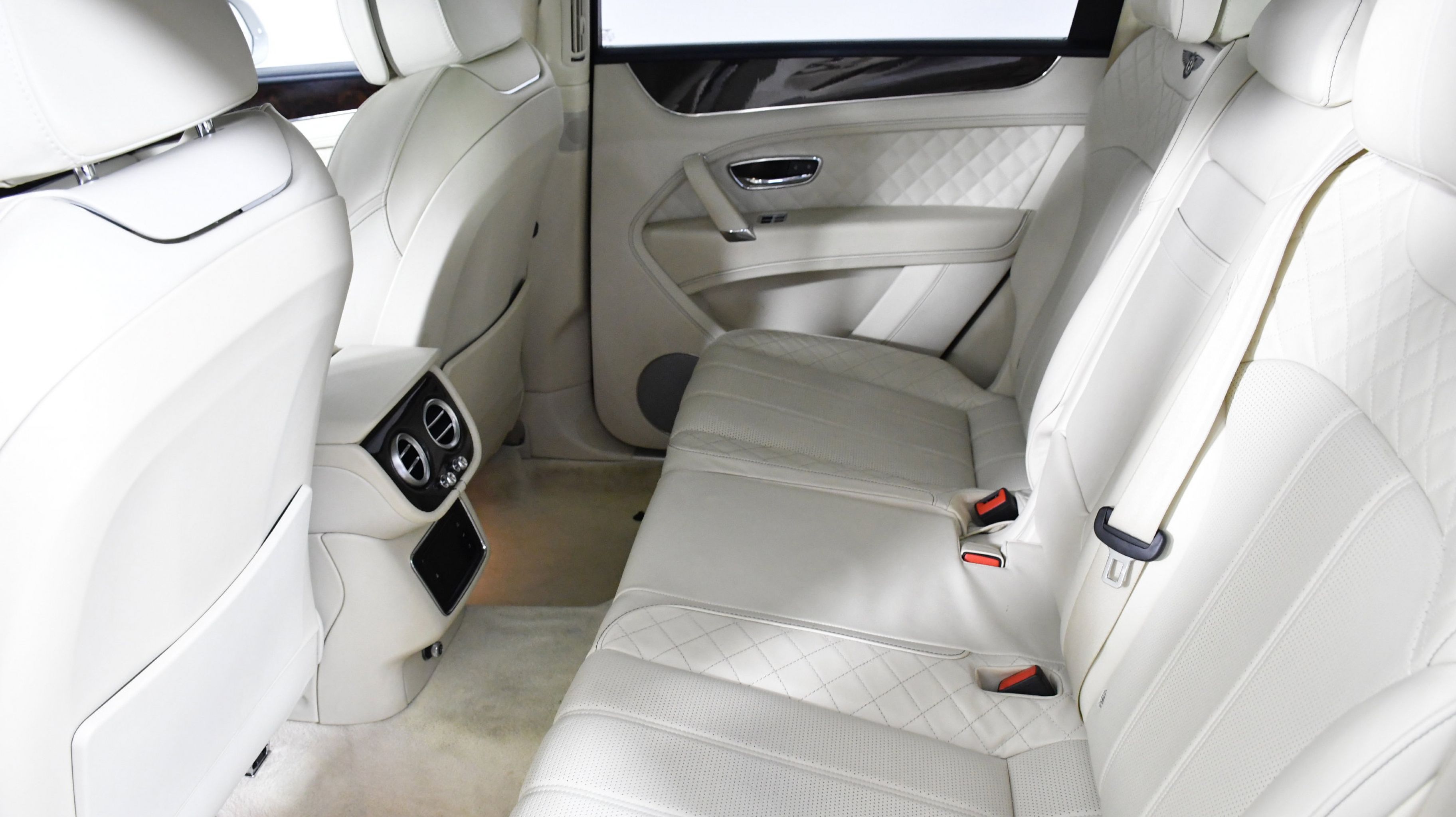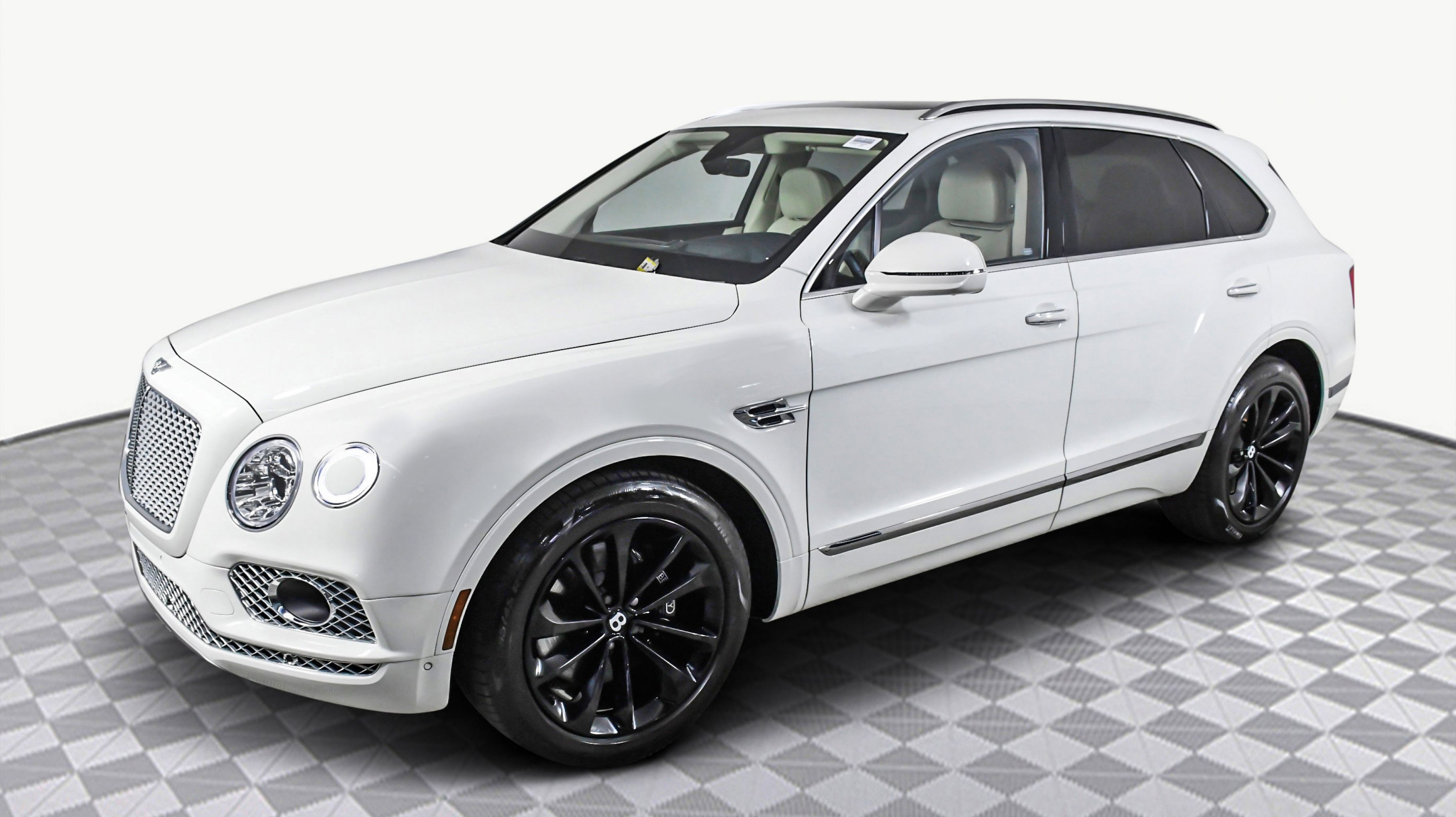 Black 2017 Bentley Bentayga W12 AWD 8-Speed Automatic 6.0L W12 Twin Turbocharged 4-Wheel Disc Brakes, ABS brakes, Adaptive Cruise Control, Adaptive suspension, Air Conditioning, Alloy wheels, AM/FM radio, Apple Carplay, Auto High-beam Headlights, Auto tilt-away steering wheel, Auto-dimming door mirrors, Auto-dimming Rear-View mirror, Auto-leveling suspension, Automatic temperature control, Axle Ratio: TBD, Bodyside moldings, Brake assist, Bumpers: body-color, CD player, Compass, Delay-off headlights, Door auto-latch, Driver door bin, Driver vanity mirror, Dual front impact airbags, Dual front side impact airbags, DVD-Audio, Electronic Stability Control, Exterior Parking Camera Rear, Four wheel independent suspension, Front anti-roll bar, Front Bucket Seats, Front Center Armrest, Front dual zone A/C, Front reading lights, Fully automatic headlights, Garage door transmitter: Homelink, Genuine wood console insert, Genuine wood dashboard insert, Genuine wood door panel insert, Headlight cleaning, Heated door mirrors, Heated front seats, Heated rear seats, Heated steering wheel, HVAC memory, Illuminated entry, Leather Seat Trim, Leather steering wheel, Low tire pressure warning, Memory seat, Navigation System, Occupant sensing airbag, Outside temperature display, Overhead airbag, Overhead console, PANORAMA SUNROOF, Passenger door bin, Passenger vanity mirror, Power adjustable front head restraints, Power door mirrors, Power driver seat, Power Liftgate, Power passenger seat, Power steering, Power windows, Radio data system, Radio: AM/FM/DAB w/CD/DVD & Navigation, Rain sensing wipers, Rear air conditioning, Rear anti-roll bar, Rear dual zone A/C, Rear reading lights, Rear seat center armrest, Rear window defroster, Rear window wiper, Remote keyless entry, Roof rack: rails only, Security system, Speed control, Speed-sensing steering, Split folding rear seat, Spoiler, Sport steering wheel, Steering wheel memory, Steering wheel mounted audio controls, Tachometer, Telescoping steering wheel, Tilt steering wheel, Traction control, Trip computer, Turn signal indicator mirrors, Variably intermittent wipers, Voltmeter.