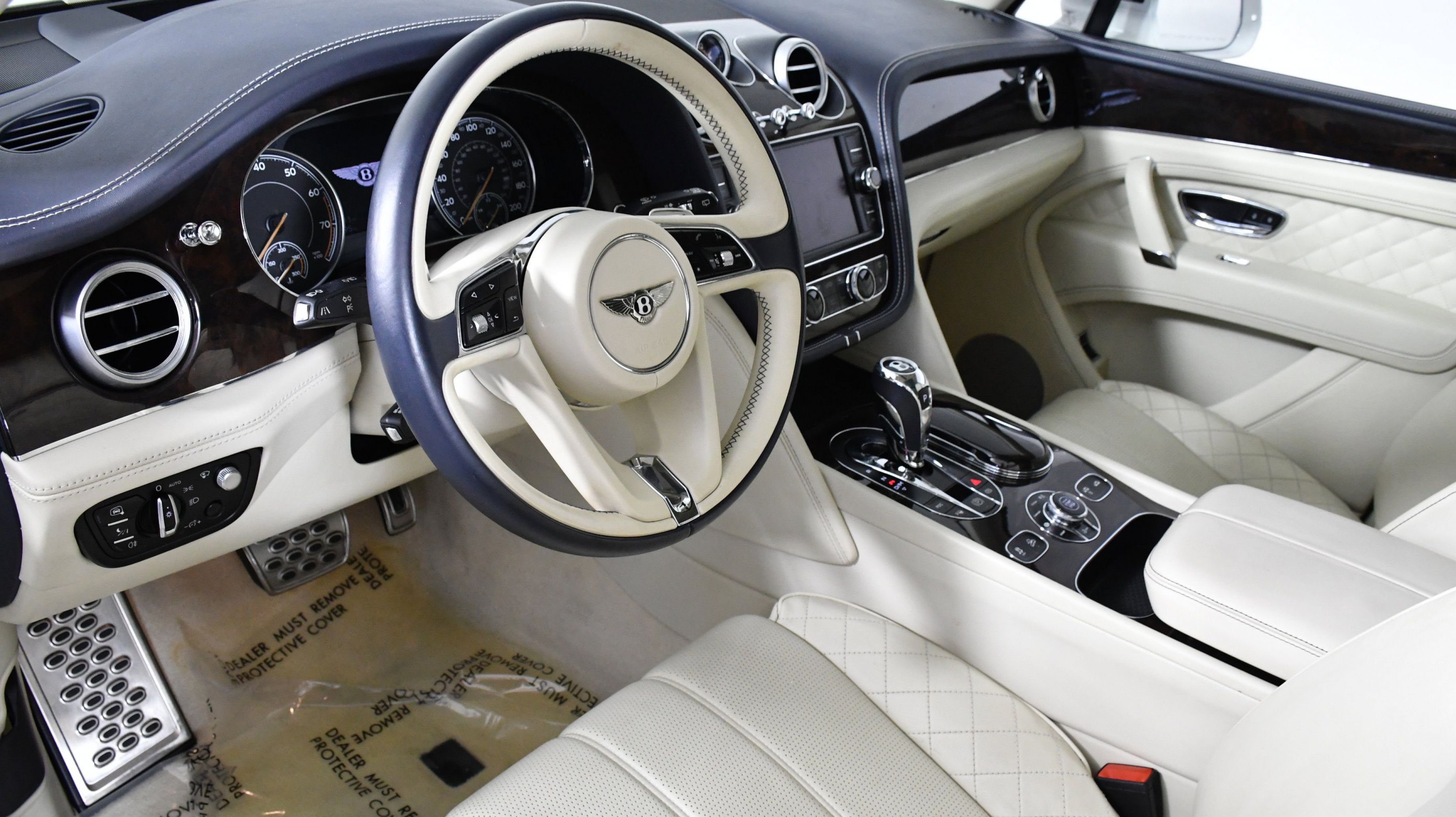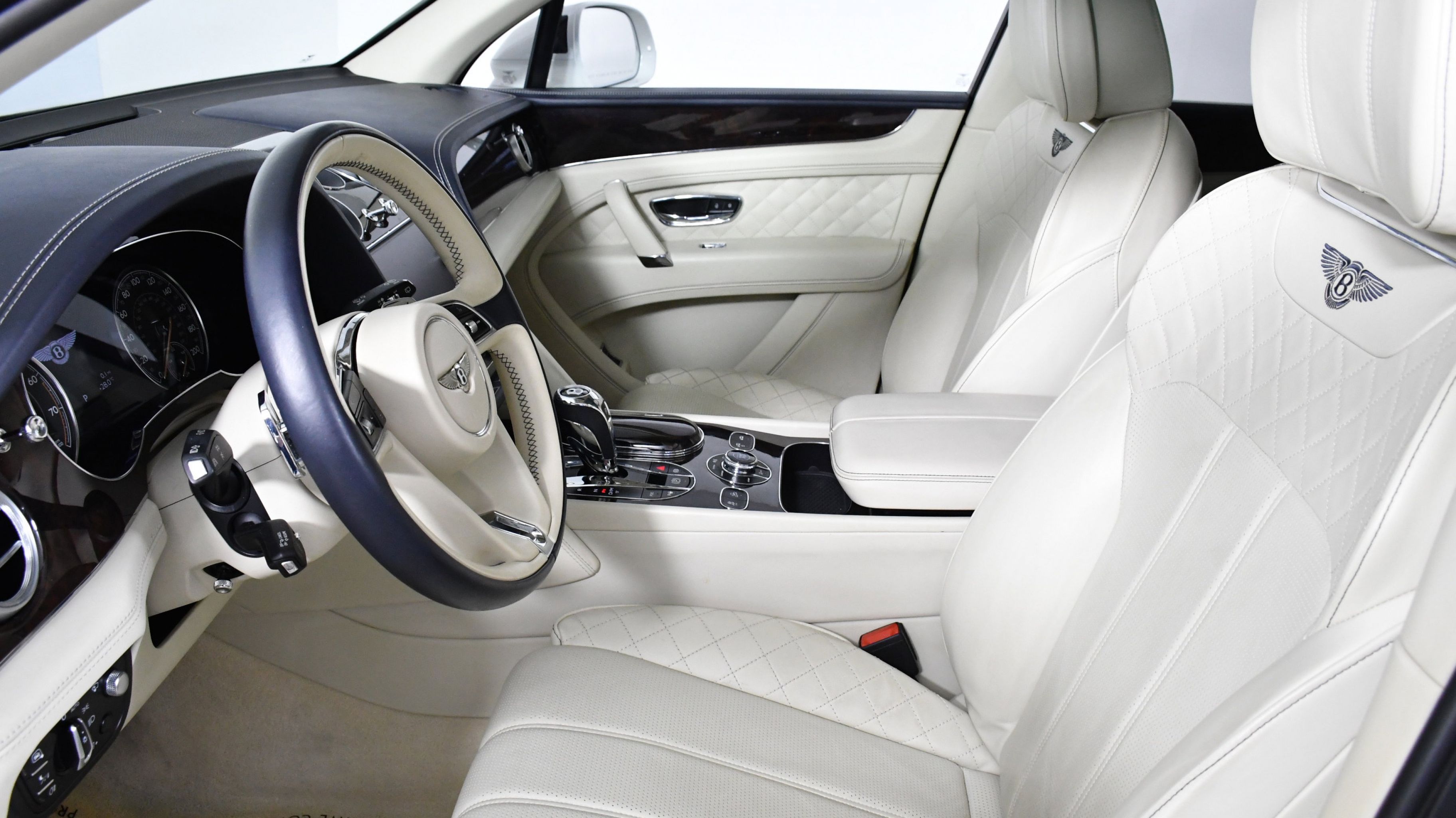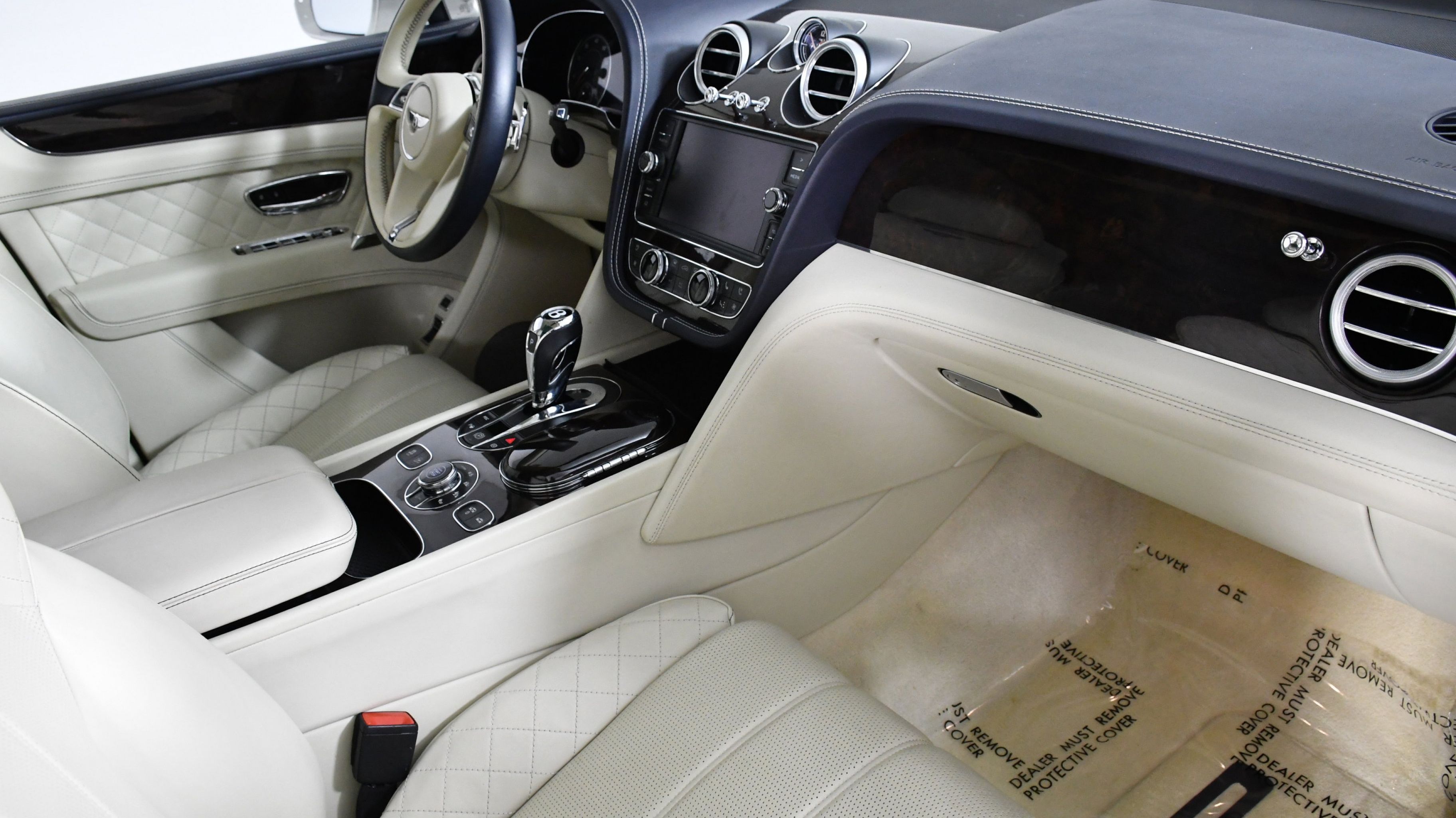 Black 2017 Bentley Bentayga W12 AWD 8-Speed Automatic 6.0L W12 Twin Turbocharged 4-Wheel Disc Brakes, ABS brakes, Adaptive Cruise Control, Adaptive suspension, Air Conditioning, Alloy wheels, AM/FM radio, Apple Carplay, Auto High-beam Headlights, Auto tilt-away steering wheel, Auto-dimming door mirrors, Auto-dimming Rear-View mirror, Auto-leveling suspension, Automatic temperature control, Axle Ratio: TBD, Bodyside moldings, Brake assist, Bumpers: body-color, CD player, Compass, Delay-off headlights, Door auto-latch, Driver door bin, Driver vanity mirror, Dual front impact airbags, Dual front side impact airbags, DVD-Audio, Electronic Stability Control, Exterior Parking Camera Rear, Four wheel independent suspension, Front anti-roll bar, Front Bucket Seats, Front Center Armrest, Front dual zone A/C, Front reading lights, Fully automatic headlights, Garage door transmitter: Homelink, Genuine wood console insert, Genuine wood dashboard insert, Genuine wood door panel insert, Headlight cleaning, Heated door mirrors, Heated front seats, Heated rear seats, Heated steering wheel, HVAC memory, Illuminated entry, Leather Seat Trim, Leather steering wheel, Low tire pressure warning, Memory seat, Navigation System, Occupant sensing airbag, Outside temperature display, Overhead airbag, Overhead console, PANORAMA SUNROOF, Passenger door bin, Passenger vanity mirror, Power adjustable front head restraints, Power door mirrors, Power driver seat, Power Liftgate, Power passenger seat, Power steering, Power windows, Radio data system, Radio: AM/FM/DAB w/CD/DVD & Navigation, Rain sensing wipers, Rear air conditioning, Rear anti-roll bar, Rear dual zone A/C, Rear reading lights, Rear seat center armrest, Rear window defroster, Rear window wiper, Remote keyless entry, Roof rack: rails only, Security system, Speed control, Speed-sensing steering, Split folding rear seat, Spoiler, Sport steering wheel, Steering wheel memory, Steering wheel mounted audio controls, Tachometer, Telescoping steering wheel, Tilt steering wheel, Traction control, Trip computer, Turn signal indicator mirrors, Variably intermittent wipers, Voltmeter.