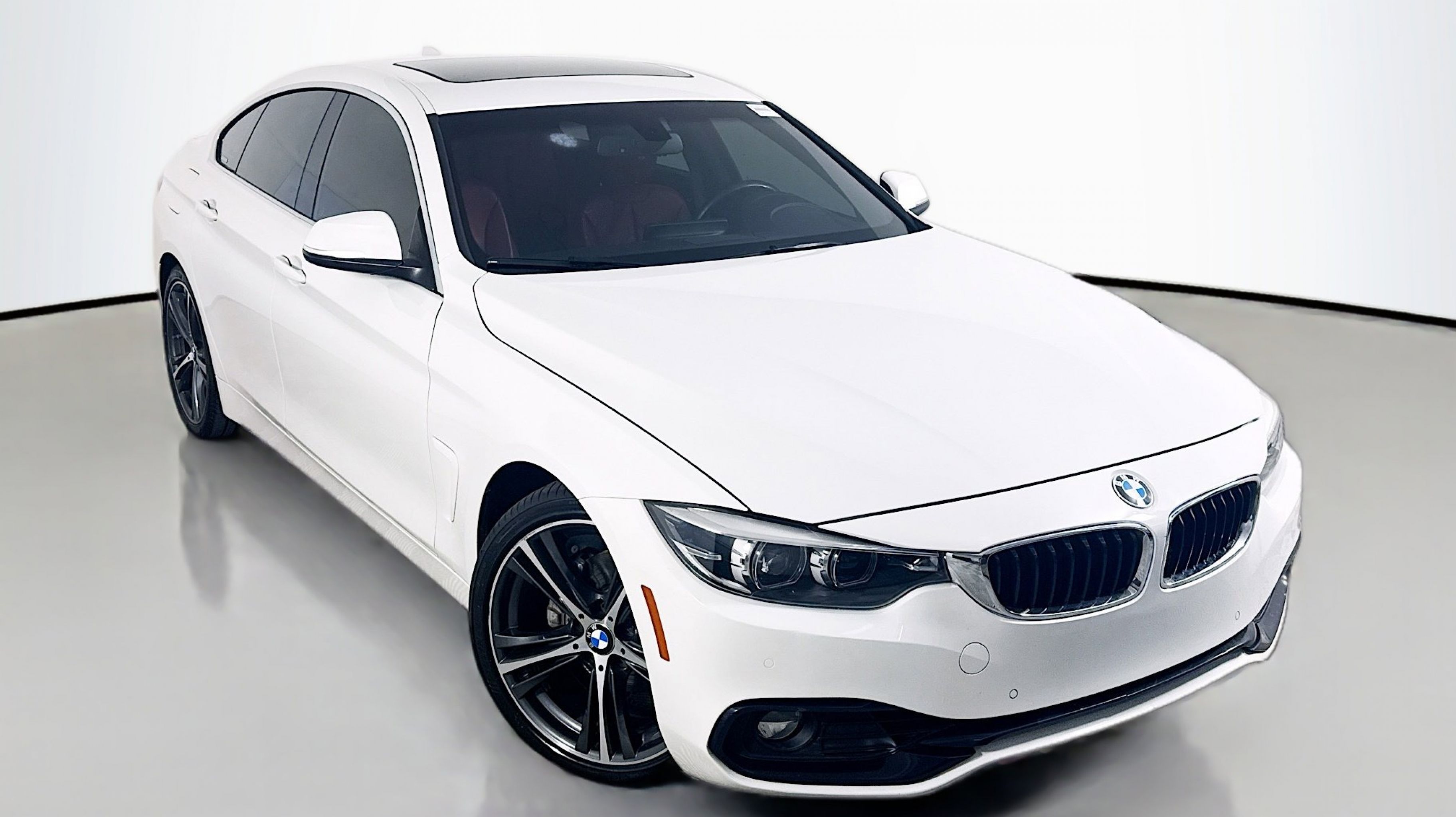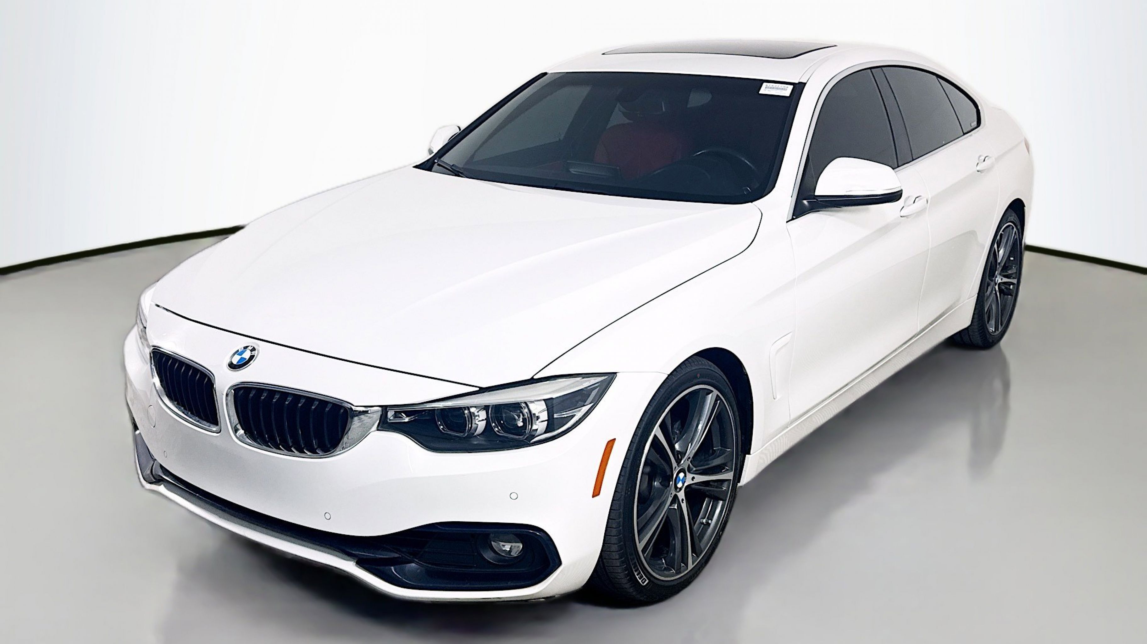Alpine White 2018 BMW 4 Series 430i Gran Coupe RWD 8-Speed Automatic Sport 2.0L 4-Cylinder DOHC 16V Turbocharged Advanced Real-Time Traffic Information, Comfort Access Keyless Entry, Essentials Package, Heated Front Seats, Instrument Cluster w/Extended Contents, Lumbar Support, Park Distance Control, Premium Package, Remote Services, SiriusXM Satellite Radio, 4-Wheel Disc Brakes, 9 Speakers, ABS brakes, Air Conditioning, Alloy wheels, AM/FM radio, Anti-whiplash front head restraints, Auto-dimming door mirrors, Auto-dimming Rear-View mirror, Automatic temperature control, Brake assist, Bumpers: body-color, CD player, Delay-off headlights, Driver door bin, Driver vanity mirror, Dual front impact airbags, Dual front side impact airbags, Electronic Stability Control, Emergency communication system: BMW Assist eCall, Exterior Parking Camera Rear, Four wheel independent suspension, Front anti-roll bar, Front Bucket Seats, Front Center Armrest, Front dual zone A/C, Front fog lights, Front reading lights, Fully automatic headlights, Garage door transmitter, Genuine wood console insert, Genuine wood dashboard insert, Genuine wood door panel insert, Hands-Free Bluetooth & USB Audio Connection, HD Radio, Heated door mirrors, Hi-Fi Sound System, Illuminated entry, In-Dash CD Player, Increased Top Speed Limiter, Knee airbag, Leather Shift Knob, Leather steering wheel, Low tire pressure warning, Memory seat, Navigation System, Occupant sensing airbag, Outside temperature display, Overhead airbag, Panic alarm, PANORAMA SUNROOF, Passenger door bin, Passenger vanity mirror, Power door mirrors, Power driver seat, Power Front Seats, Power Liftgate, Power passenger seat, Power steering, Power windows, Radio data system, Radio: Anti-Theft AM/FM/HD Stereo CD/MP3 Player, Rain sensing wipers, Rear air conditioning, Rear anti-roll bar, Rear reading lights, Rear seat center armrest, Rear window defroster, Remote keyless entry, Security system, SensaTec Leatherette Upholstery, Speed control, Speed-sensing steering, Speed-Sensitive Wipers, Split folding rear seat, Sport Seats, Sport steering wheel, Steering wheel mounted audio controls, Tachometer, Telescoping steering wheel, Tilt steering wheel, Traction control, Trip computer, Turn signal indicator mirrors, Variable Sport Steering, Variably intermittent wipers, Wheels: 18 x 8 Double-Spoke (Style 397), Wheels: 19 x 8 Fr & 19 x 8.5 Rr (Style 407), Advanced Real-Time Traffic Information, Comfort Access Keyless Entry, Essentials Package, Heated Front Seats, Instrument Cluster w/Extended Contents, Lumbar Support, Park Distance Control, Premium Package, Remote Services, SiriusXM Satellite Radio.