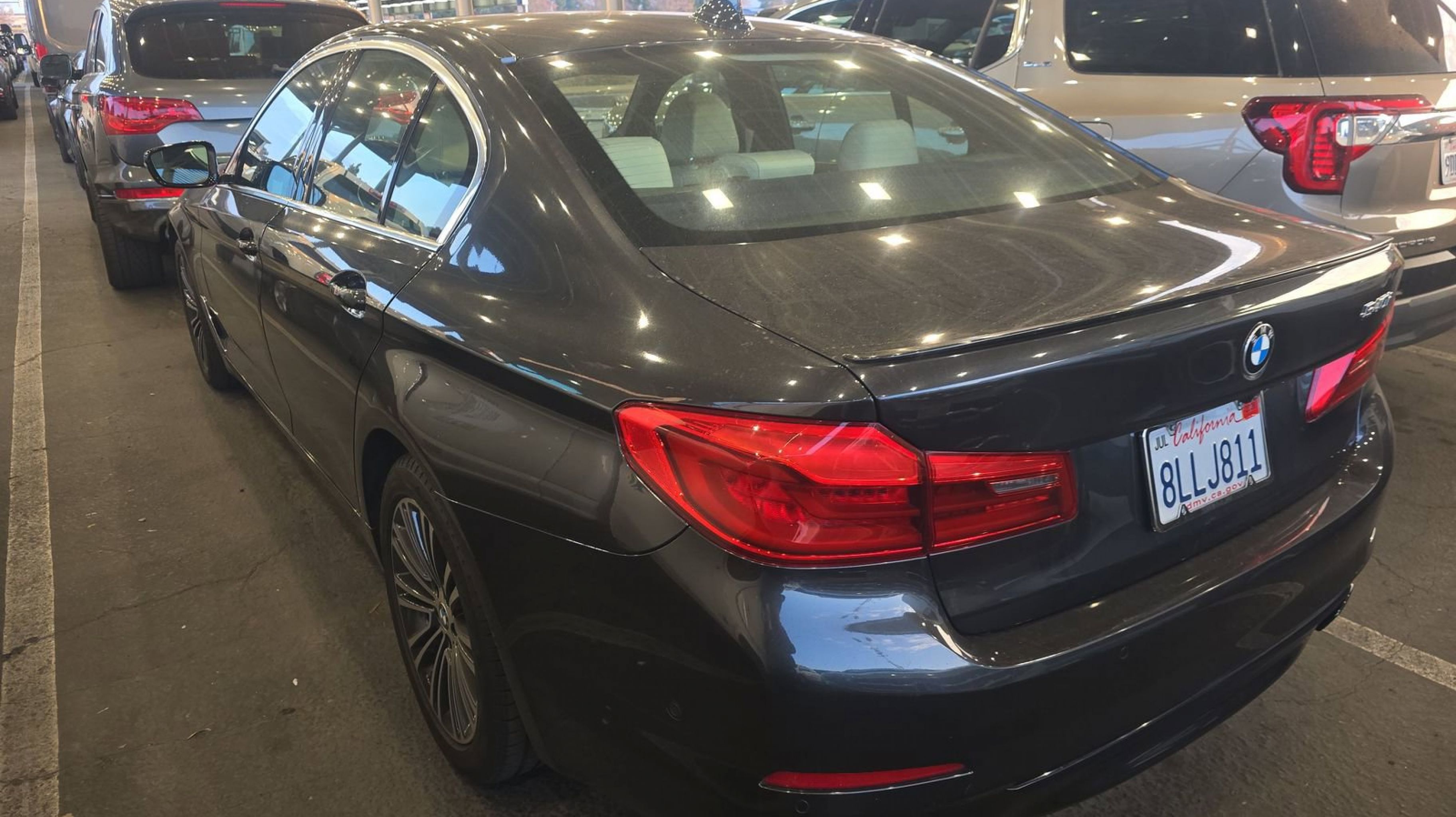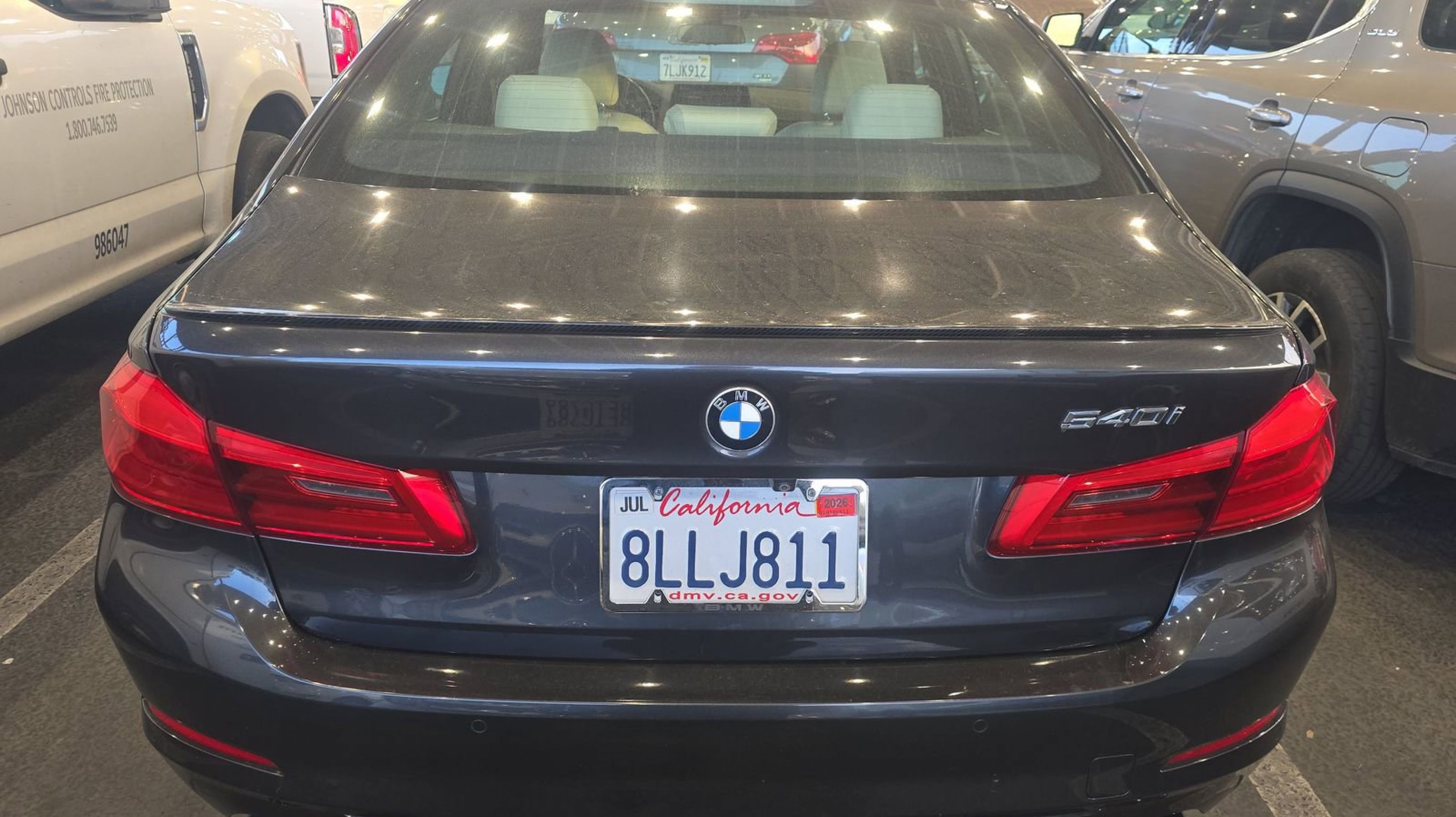 Dark Graphite Metallic 2019 BMW 5 Series 540i RWD 8-Speed Automatic 3.0L I6 Turbocharged DOHC 24V LEV3-ULEV70 335hp Ivory White w/Dakota Leather Upholstery, Active Park Distance Control, Comfort Access Keyless Entry, Convenience Package, Gesture Control, Head-Up Display, Heated Front Seats, Parking Assistant Plus, Power Tailgate, Premium Package (DISC), Rear-View Camera, SiriusXM Satellite Radio, Surround View w/3D View, 12 Speakers, 4-Wheel Disc Brakes, ABS brakes, Air Conditioning, Alloy wheels, AM/FM radio, Apple CarPlay, Apple CarPlay Compatibility, Auto tilt-away steering wheel, Auto-dimming door mirrors, Auto-dimming Rear-View mirror, Automatic temperature control, Brake assist, Bumpers: body-color, CD player, Dakota Leather Upholstery, Delay-off headlights, Driver door bin, Driver vanity mirror, Dual front impact airbags, Dual front side impact airbags, Electronic Stability Control, Emergency communication system: BMW Assist eCall, Enhanced USB & Bluetooth, Enhanced USB & Bluetooth (ZEB), Exterior Parking Camera Rear, Four wheel independent suspension, Front anti-roll bar, Front Bucket Seats, Front Center Armrest, Front dual zone A/C, Front reading lights, Fully automatic headlights, Garage door transmitter, Genuine wood console insert, Genuine wood dashboard insert, Genuine wood door panel insert, Gray Poplar Wood Trim, harman/kardon Surround Sound System, Heated door mirrors, HiFi Sound System, Illuminated entry, In-Dash CD Player, Leather Shift Knob, Leather steering wheel, Low tire pressure warning, Lumbar Support, Memory seat, Navigation System, Occupant sensing airbag, Outside temperature display, Overhead airbag, Panic alarm, PANORAMA SUNROOF, Passenger door bin, Passenger vanity mirror, Power door mirrors, Power driver seat, Power Front Seats, Power passenger seat, Power steering, Power windows, Radio data system, Radio: AM/FM Audio System, Rain sensing wipers, Rear anti-roll bar, Rear reading lights, Rear seat center armrest, Rear window defroster, Remote keyless entry, Security system, Speed control, Speed-sensing steering, Speed-Sensitive Wipers, Split folding rear seat, Sport Seats, Sport steering wheel, Steering wheel memory, Steering wheel mounted audio controls, Tachometer, Telescoping steering wheel, Tilt steering wheel, Traction control, Trip computer, Turn signal indicator mirrors, Variably intermittent wipers, Wheels: 18 x 8 Double-Spoke (Style 634), WiFi Hotspot, Ivory White w/Dakota Leather Upholstery, Active Park Distance Control, Comfort Access Keyless Entry, Convenience Package, Gesture Control, Head-Up Display, Heated Front Seats, Parking Assistant Plus, Power Tailgate, Premium Package (DISC), Rear-View Camera, SiriusXM Satellite Radio, Surround View w/3D View.