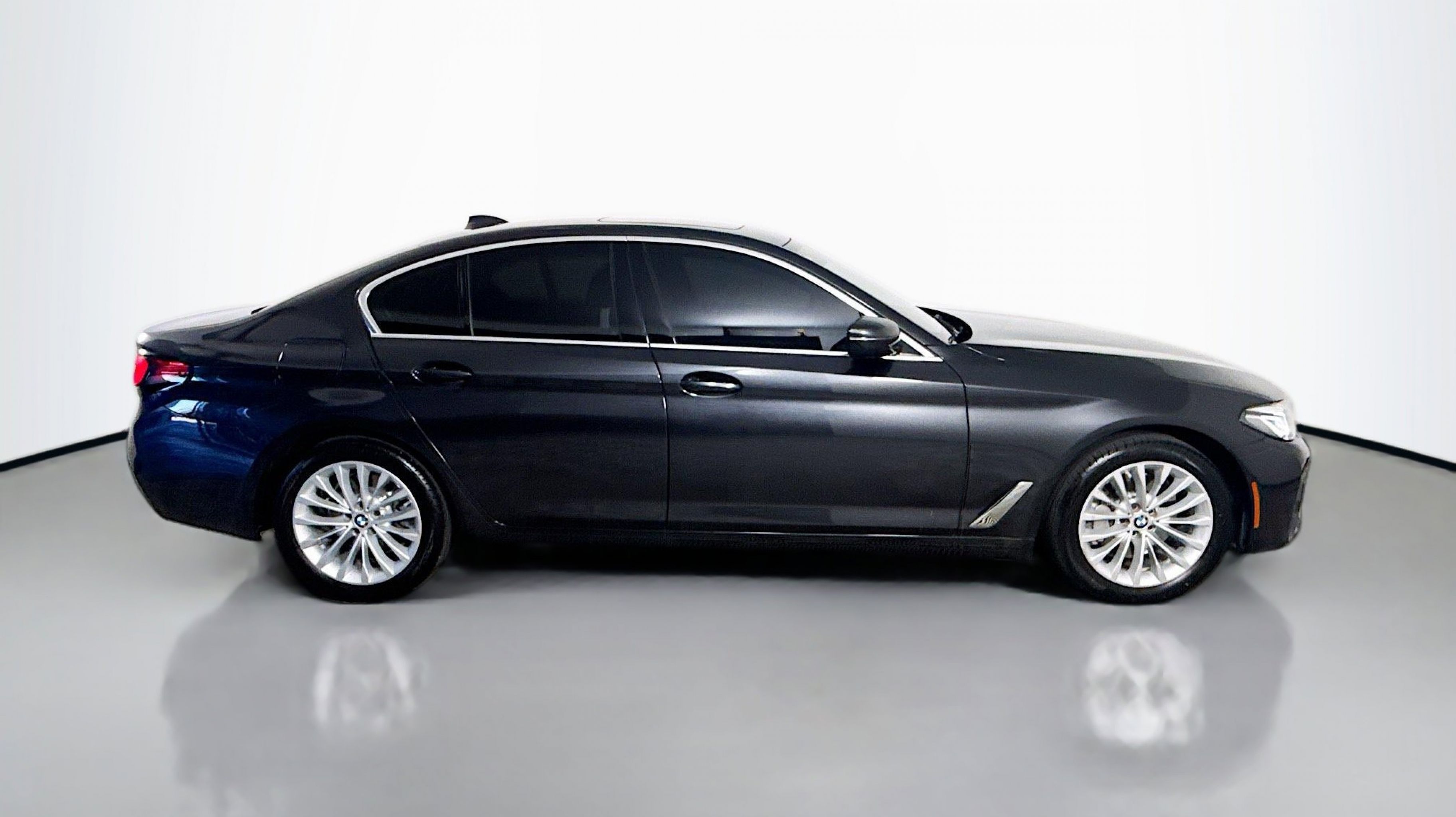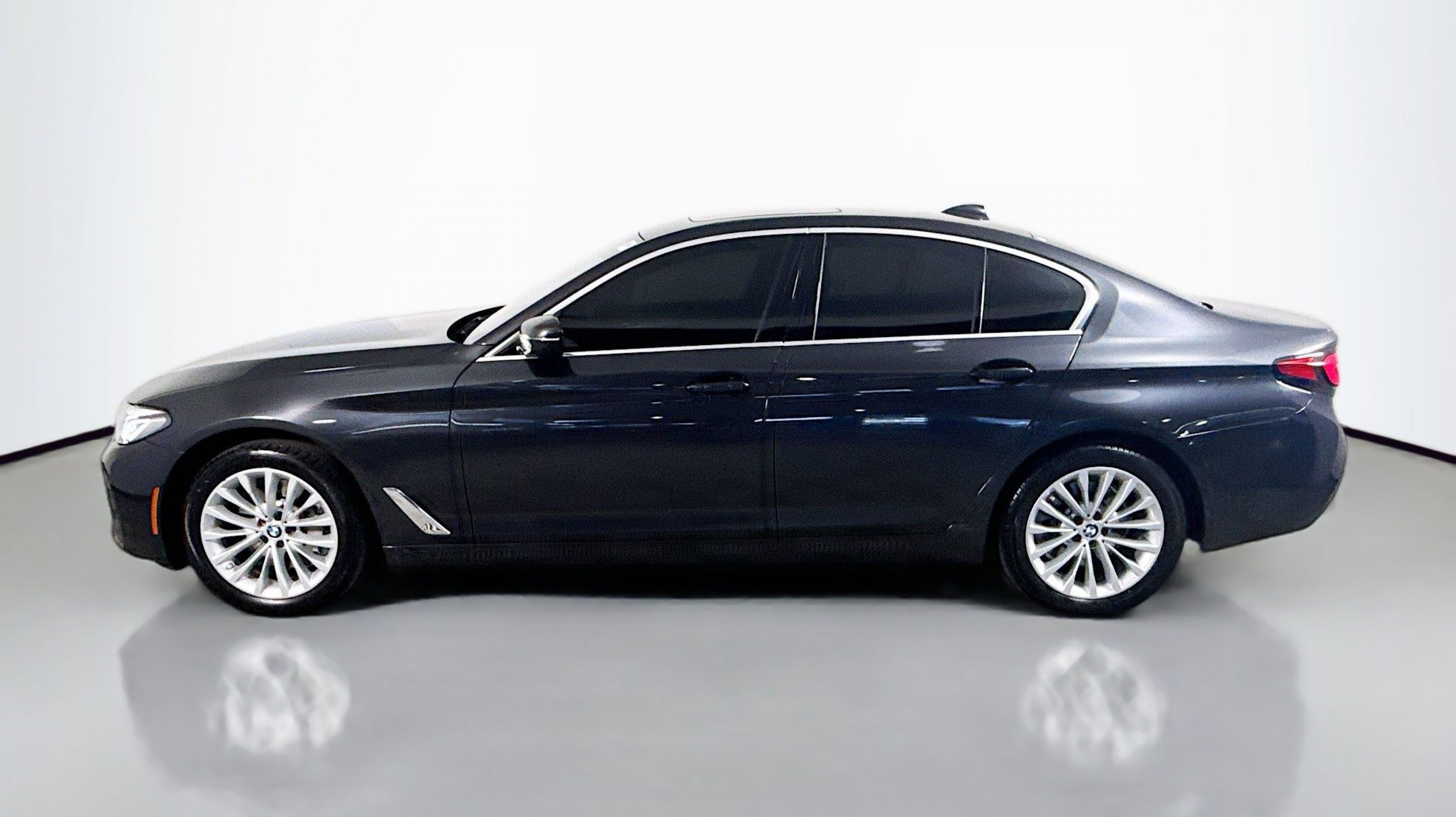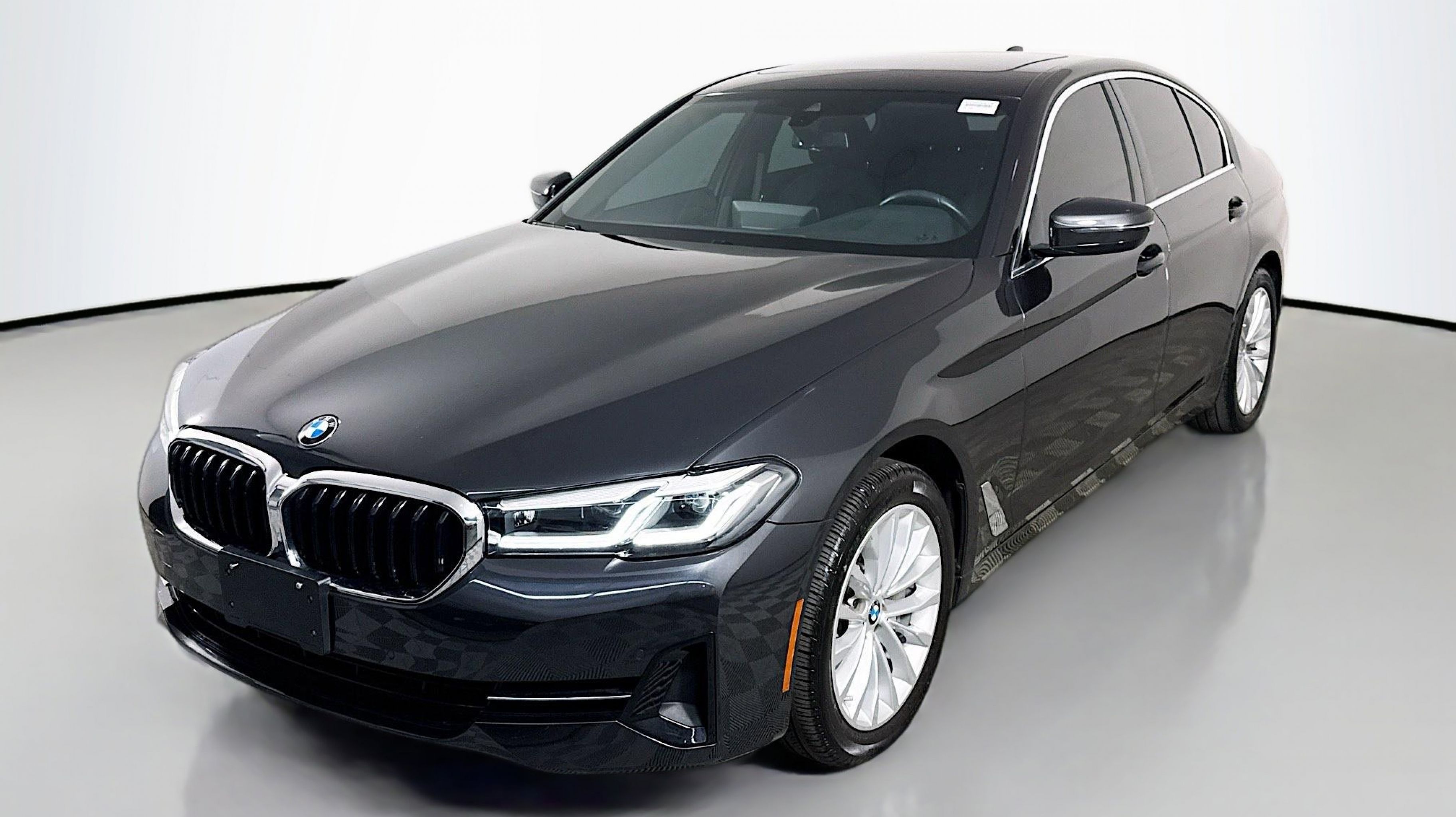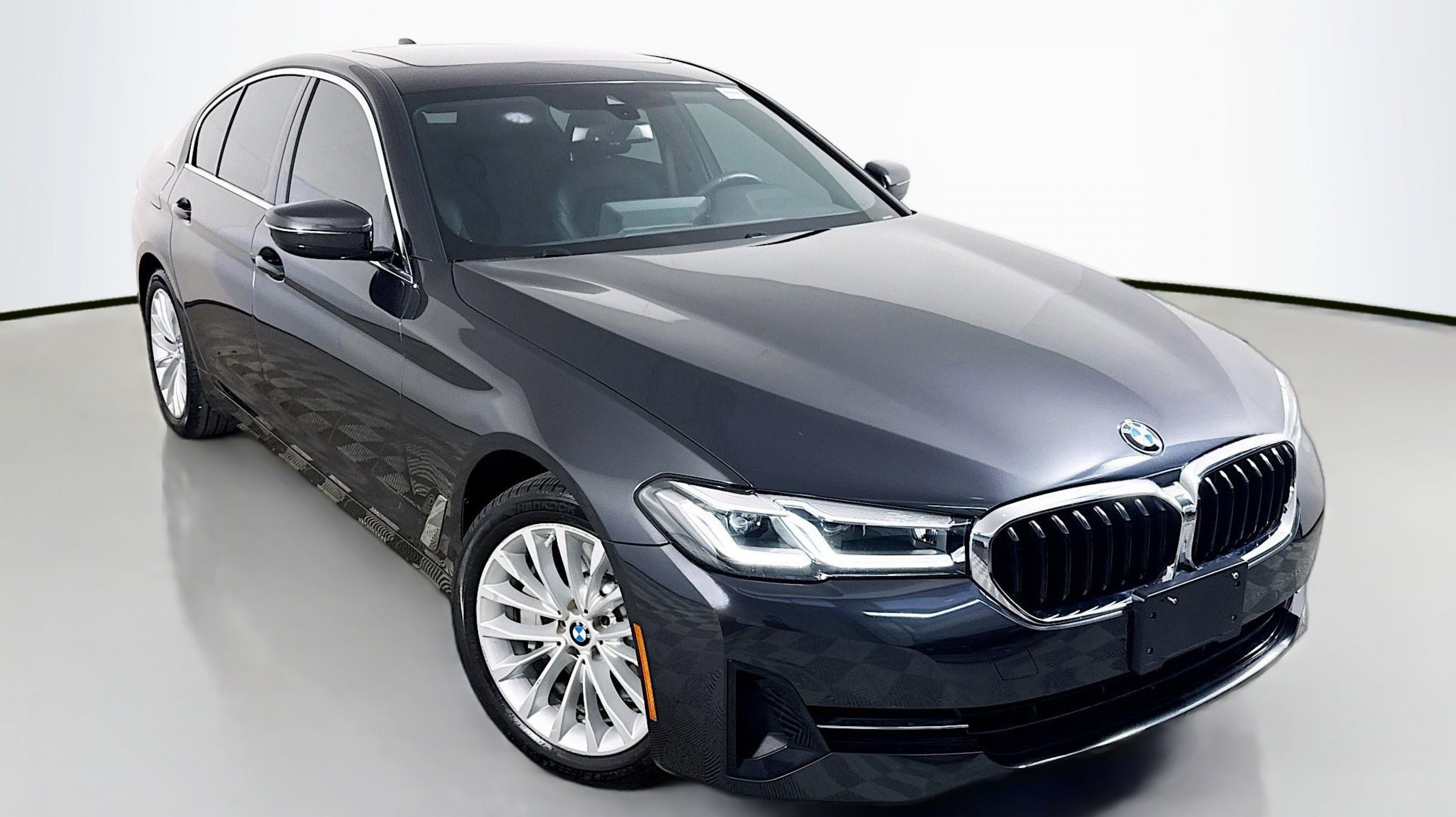 Dark Graphite Metallic 2023 BMW 5 Series 530i RWD 8-Speed Automatic Sport 2.0L 4-Cylinder Black w/Perforated SensaTec Upholstery, Connected Package Pro, 12 Speakers, 4-Wheel Disc Brakes, ABS brakes, Air Conditioning, Alloy wheels, AM/FM radio: SiriusXM, Apple CarPlay & Android Auto Compatibility, Auto High-beam Headlights, Auto tilt-away steering wheel, Auto-dimming door mirrors, Auto-dimming Rear-View mirror, Automatic temperature control, BMW Assist eCall, BMW TeleServices, Brake assist, Bumpers: body-color, ConnectedDrive Services, Delay-off headlights, Driver door bin, Driver Lumbar Support Only (DISC), Driver vanity mirror, Dual front impact airbags, Dual front side impact airbags, Electronic Stability Control, Emergency communication system: BMW Assist eCall, Enhanced USB/Bluetooth Plus Smartphone Integration, Exterior Parking Camera Rear, Four wheel independent suspension, Front anti-roll bar, Front Bucket Seats, Front Center Armrest, Front dual zone A/C, Front reading lights, Fully automatic headlights, Garage door transmitter, Genuine wood console insert, Genuine wood dashboard insert, Genuine wood door panel insert, Heated door mirrors, Heated Front Seats, Hi-Fi Sound System, Illuminated entry, Leather Shift Knob, Leather steering wheel, Live Cockpit Pro w/Navi, Low tire pressure warning, Lumbar Support, Memory seat, Navigation System, Occupant sensing airbag, Outside temperature display, Overhead airbag, Panic alarm, PANORAMA SUNROOF, Passenger door bin, Passenger vanity mirror, Perforated Sensatec Upholstery, Power door mirrors, Power driver seat, Power Front Seats, Power passenger seat, Power steering, Power Tailgate, Power windows, Radio data system, Radio: AM/FM Audio System, Rain sensing wipers, Rear anti-roll bar, Rear reading lights, Rear seat center armrest, Rear window defroster, Remote keyless entry, Security system, SiriusXM Satellite Radio w/1 Year Subscription, Speed control, Speed-sensing steering, Speed-Sensitive Wipers, Split folding rear seat, Sport Seats, Sport steering wheel, Steering wheel memory, Steering wheel mounted audio controls, Tachometer, Telescoping steering wheel, Tilt steering wheel, Traction control, Trip computer, Turn signal indicator mirrors, Variably intermittent wipers, Wheels: 18 x 8 W-Spoke Reflex Silver, Black w/Perforated SensaTec Upholstery, Connected Package Pro.