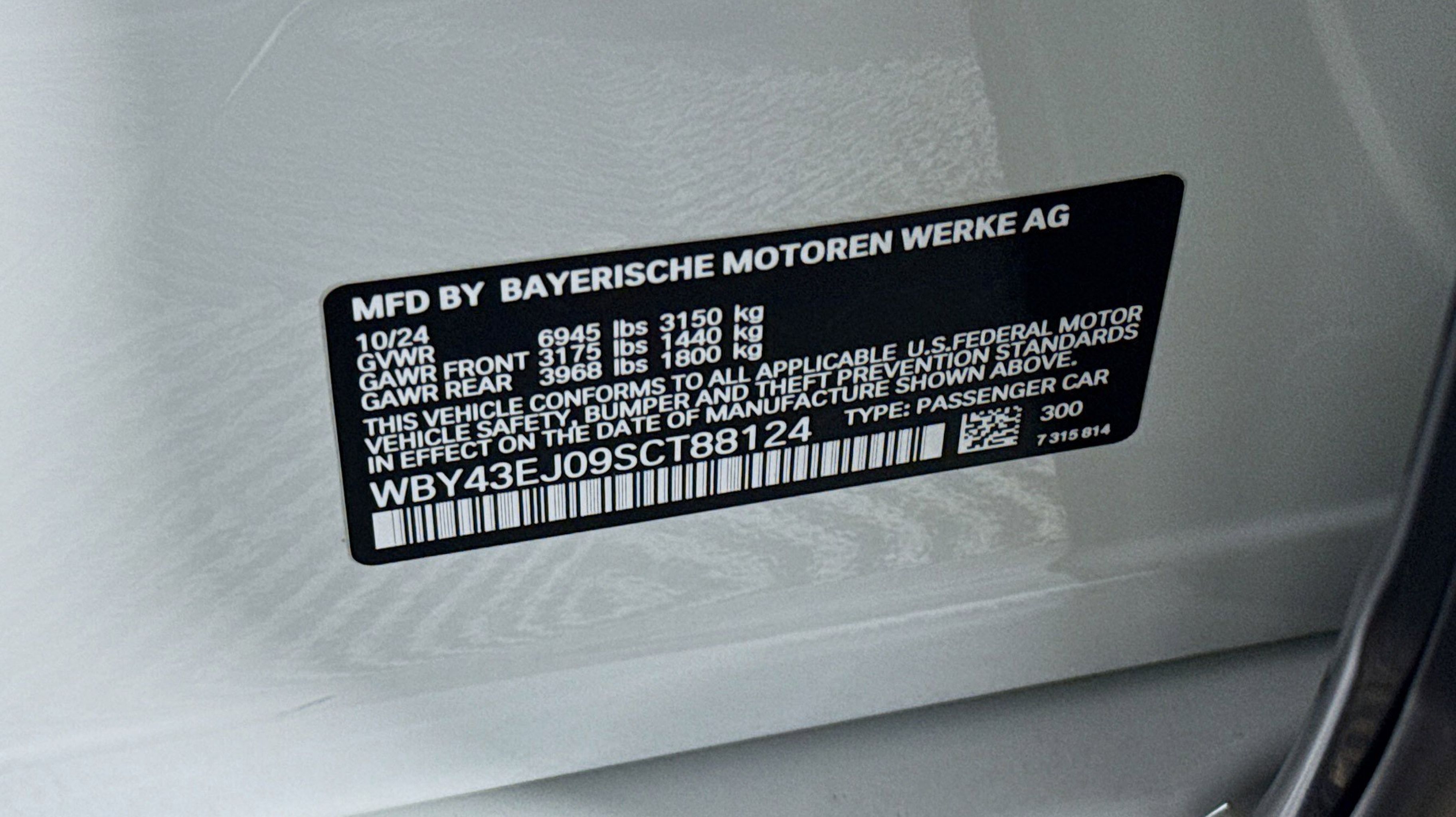 Alpine White 2025 BMW i7 eDrive50 RWD Single-Speed Automatic Electric Motor Active Cruise Control w/Stop & Go, Carbon Fiber Trim, Connected Package Pro, Extended Shadowline Trim, Illuminated Kidney Grille, M Sport Brakes w/Black Calipers, M Sport Exterior Elements, M Sport Interior Elements, M Sport Package, M Sport Package (337), M Sport Package Pro, M Sport Pro Contents, M Sport Professional Package, M Steering Wheel, Parking Assistant Professional, Premium Package, Rear Spoiler, Shadowline Exterior Trim, Surround View w/3D View, Wheels: 20 x 9 Fr & 20 x 10.5 Rr M Bi-Color, Without Lines Designation Outside, 18 Speakers, 4-Wheel Disc Brakes, ABS brakes, Adaptive suspension, Air Conditioning, Alloy wheels, Anti-whiplash front head restraints, Apple CarPlay & Android Auto Compatibility, Auto High-beam Headlights, Auto tilt-away steering wheel, Auto-dimming door mirrors, Auto-dimming Rear-View mirror, Auto-leveling suspension, Automatic temperature control, BMW Assist eCall, BMW TeleServices, Bowers & Wilkins Surround Sound, Brake assist, Bumpers: body-color, ConnectedDrive Services, Delay-off headlights, Driver door bin, Driver vanity mirror, Dual front impact airbags, Dual front side impact airbags, Electronic Stability Control, Emergency communication system: BMW Assist eCall, Enhanced USB & Bluetooth, Extended Merino Leather Upholstery, Exterior Parking Camera Rear, Four wheel independent suspension, Front anti-roll bar, Front Bucket Seats, Front Center Armrest, Front dual zone A/C, Front reading lights, Front Ventilated Seats, Fully automatic headlights, Garage door transmitter, Genuine wood dashboard insert, Head restraints memory, Heads-Up Display, Heated door mirrors, Heated front seats, Heated rear seats, Heated steering wheel, Heated Steering Wheel/Front & Rear Seats/Armrests, Iconic Sounds Electric, Illuminated entry, Increased Top Speed Limiter, Leather steering wheel, Live Cockpit Pro w/Navigation, Low tire pressure warning, Memory seat, Multi-Functional Seats, Natural Interaction, Navigation system: BMW Maps Navigation, Occupant sensing airbag, Outside temperature display, Overhead airbag, Overhead console, Panic alarm, Passenger door bin, Passenger vanity mirror, Personal eSIM 5G, Power adjustable front head restraints, Power door mirrors, Power driver seat, Power passenger seat, Power steering, Power windows, Radio data system, Radio: FM Stereo, Rain sensing wipers, Rear air conditioning, Rear anti-roll bar, Rear audio controls, Rear dual zone A/C, Rear reading lights, Rear seat center armrest, Rear Window Blind, Rear window defroster, Remote keyless entry, Security system, SiriusXM Satellite Radio w/1 Year Subscription, Speed control, Speed-sensing steering, Speed-Sensitive Wipers, Sport steering wheel, Steering wheel memory, Steering wheel mounted audio controls, Telescoping steering wheel, Tilt steering wheel, Traction control, Trip computer, Variably intermittent wipers, Ventilated front seats, Weather band radio, Wheels: 19 x 8.5 Aero Gunmetal Grey (Style 904), Wheels: 21 x 9 Fr & 21 x 10.5 Rr M Aerodynamic, Wireless Device Charging, Active Cruise Control w/Stop & Go, Carbon Fiber Trim, Connected Package Pro, Extended Shadowline Trim, Illuminated Kidney Grille, M Sport Brakes w/Black Calipers, M Sport Exterior Elements, M Sport Interior Elements, M Sport Package, M Sport Package (337), M Sport Package Pro, M Sport Pro Contents, M Sport Professional Package, M Steering Wheel, Parking Assistant