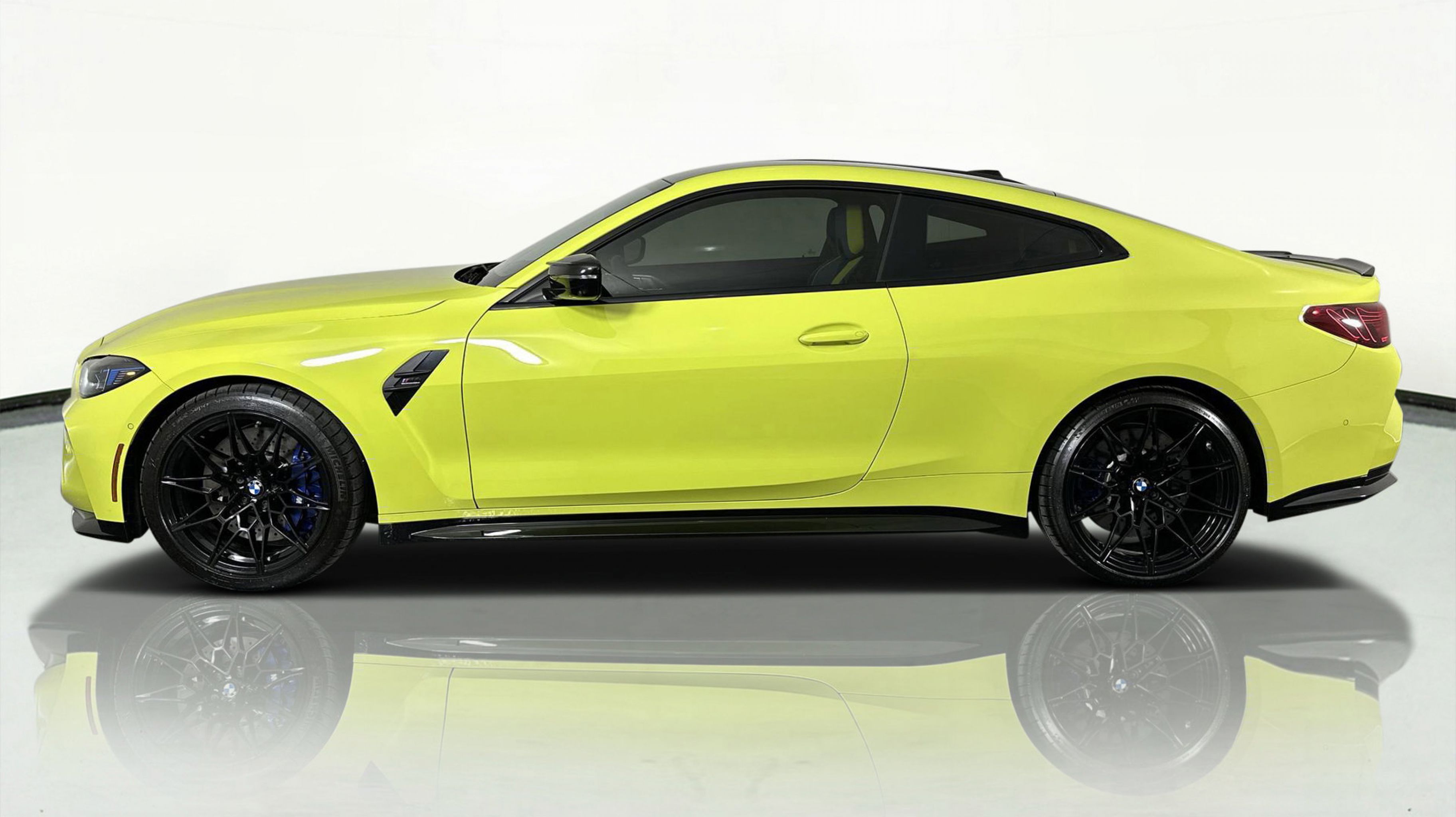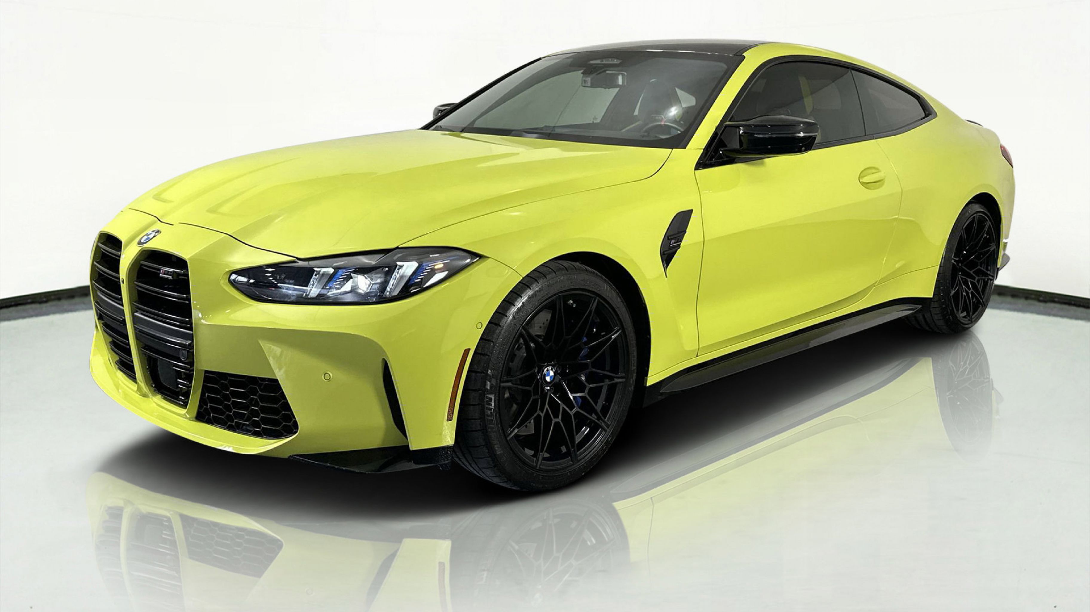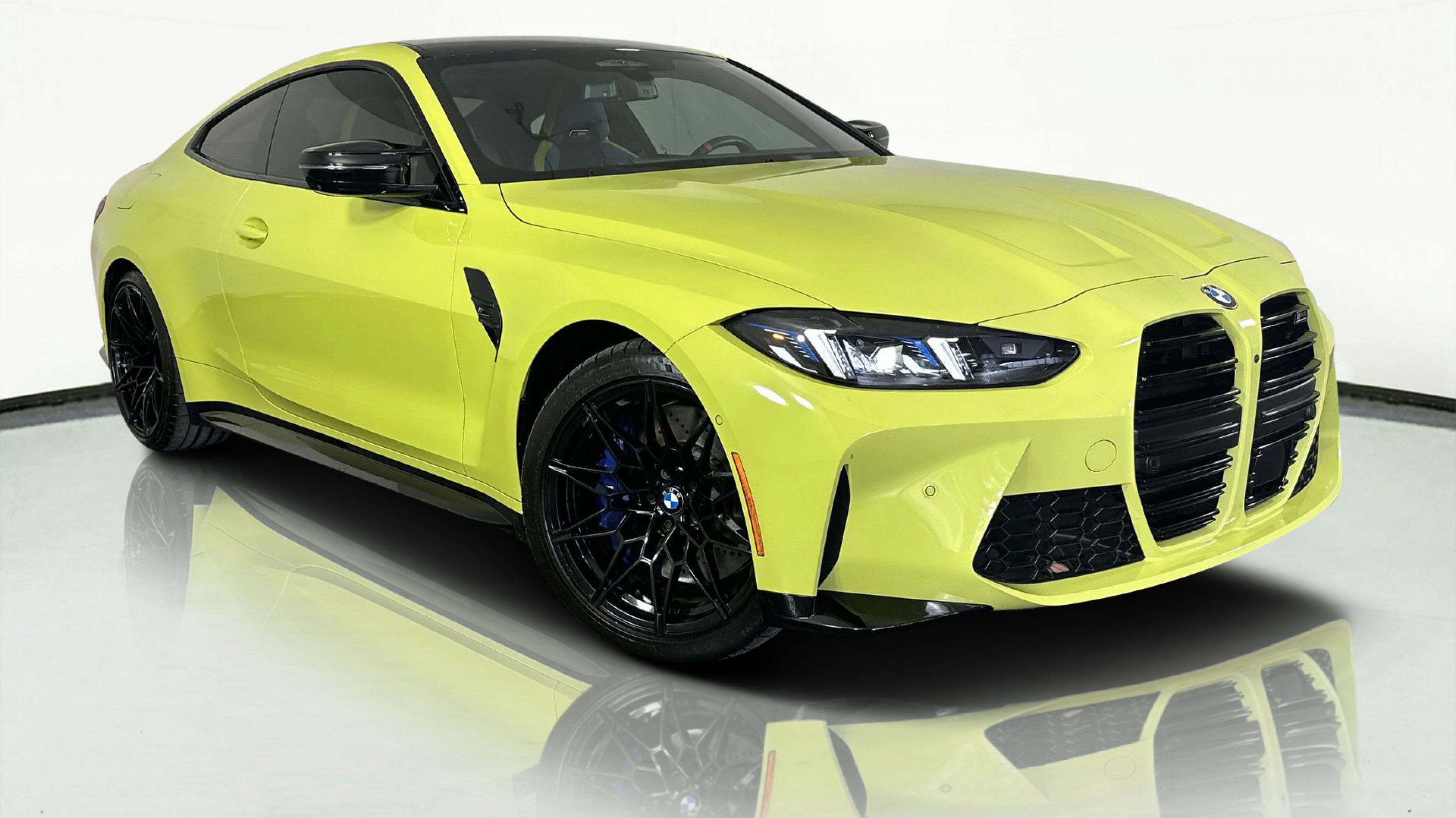Finished in Sao Paulo Yellow, this M4 Competition commands attention with its bold design and aerodynamic presence. The Yas Marina Blue and Black Merino Leather interior exudes modern sport-luxury, complemented by carbon fiber trim and M performance touches throughout. With advanced safety, driver-assist features, and an interior tailored for high-performance comfort, the M4 Competition Coupe represents the perfect balance between innovation and intensity.