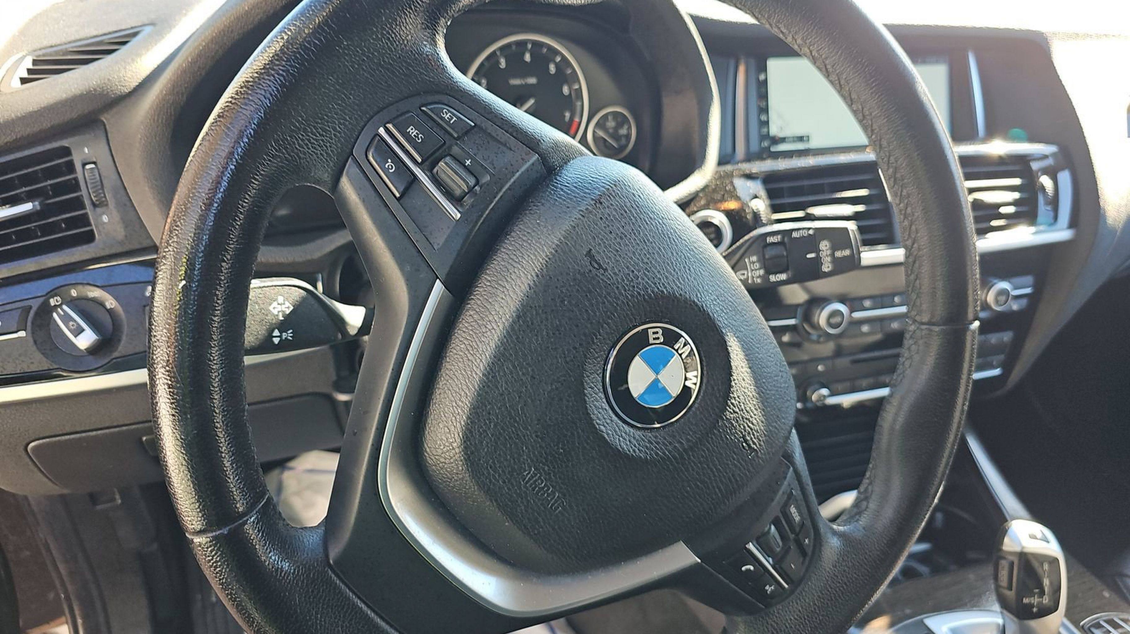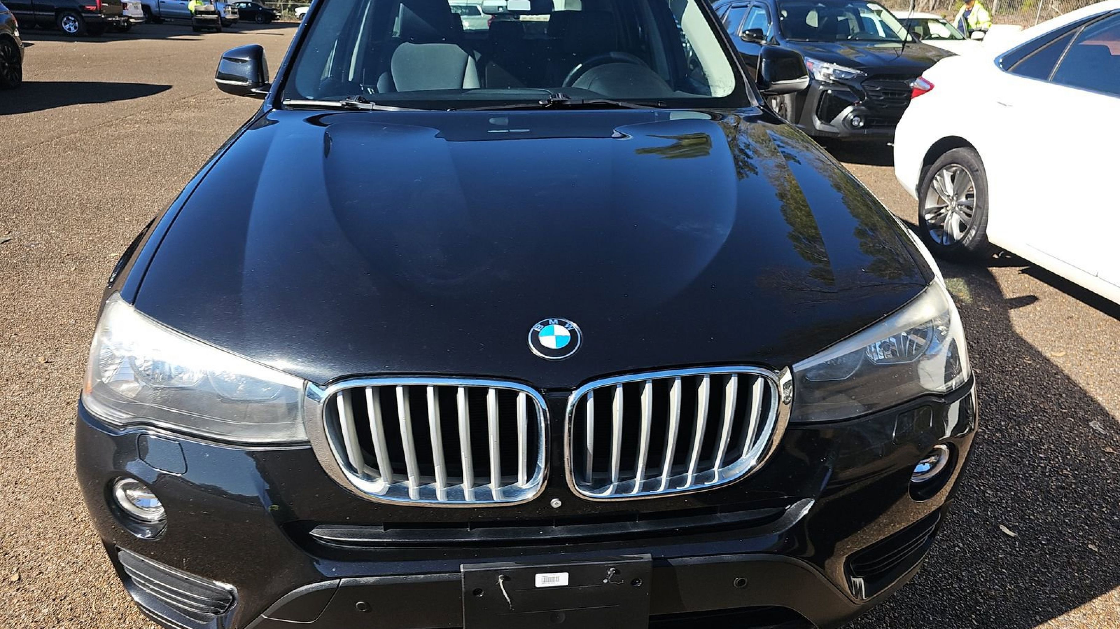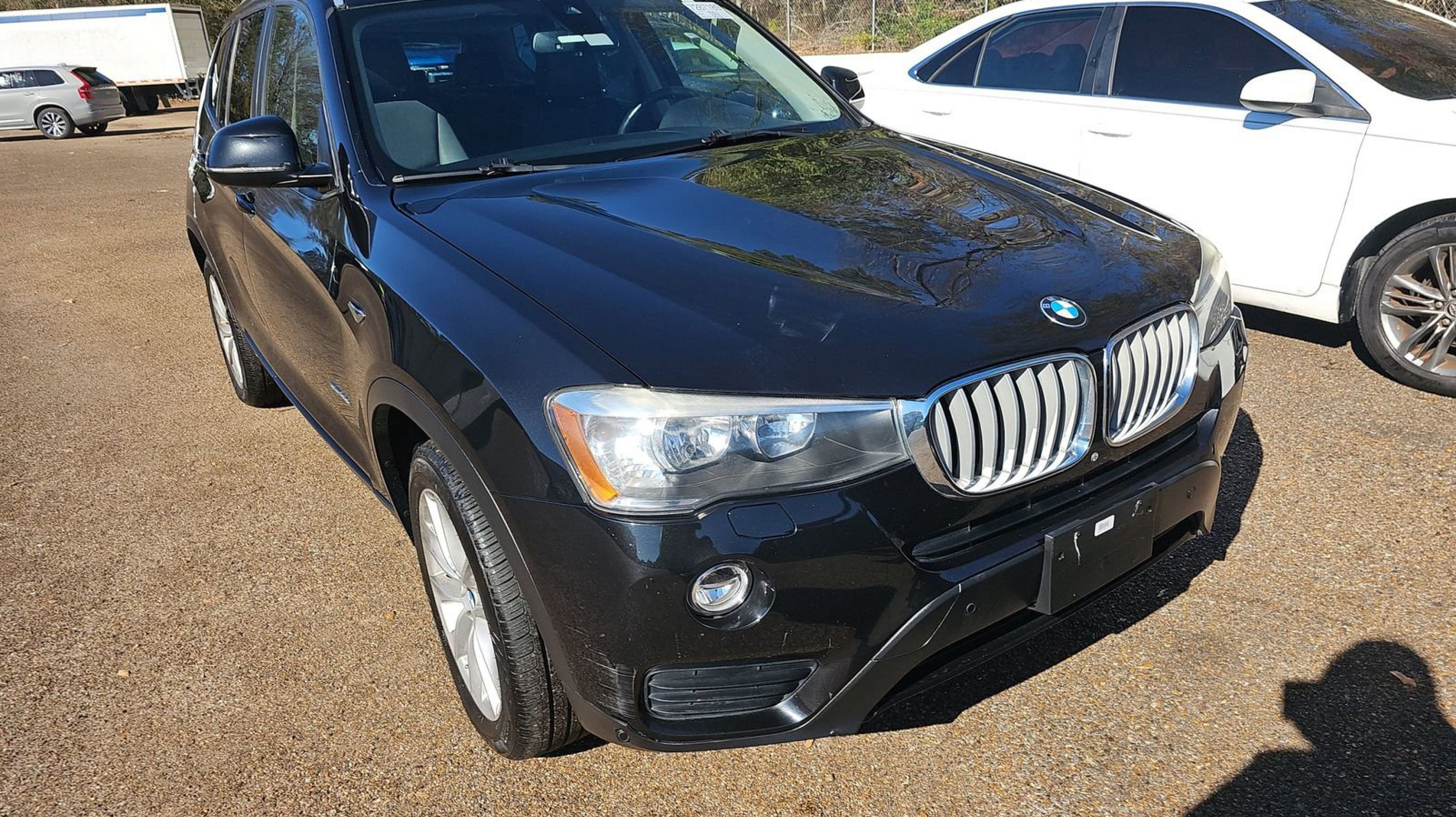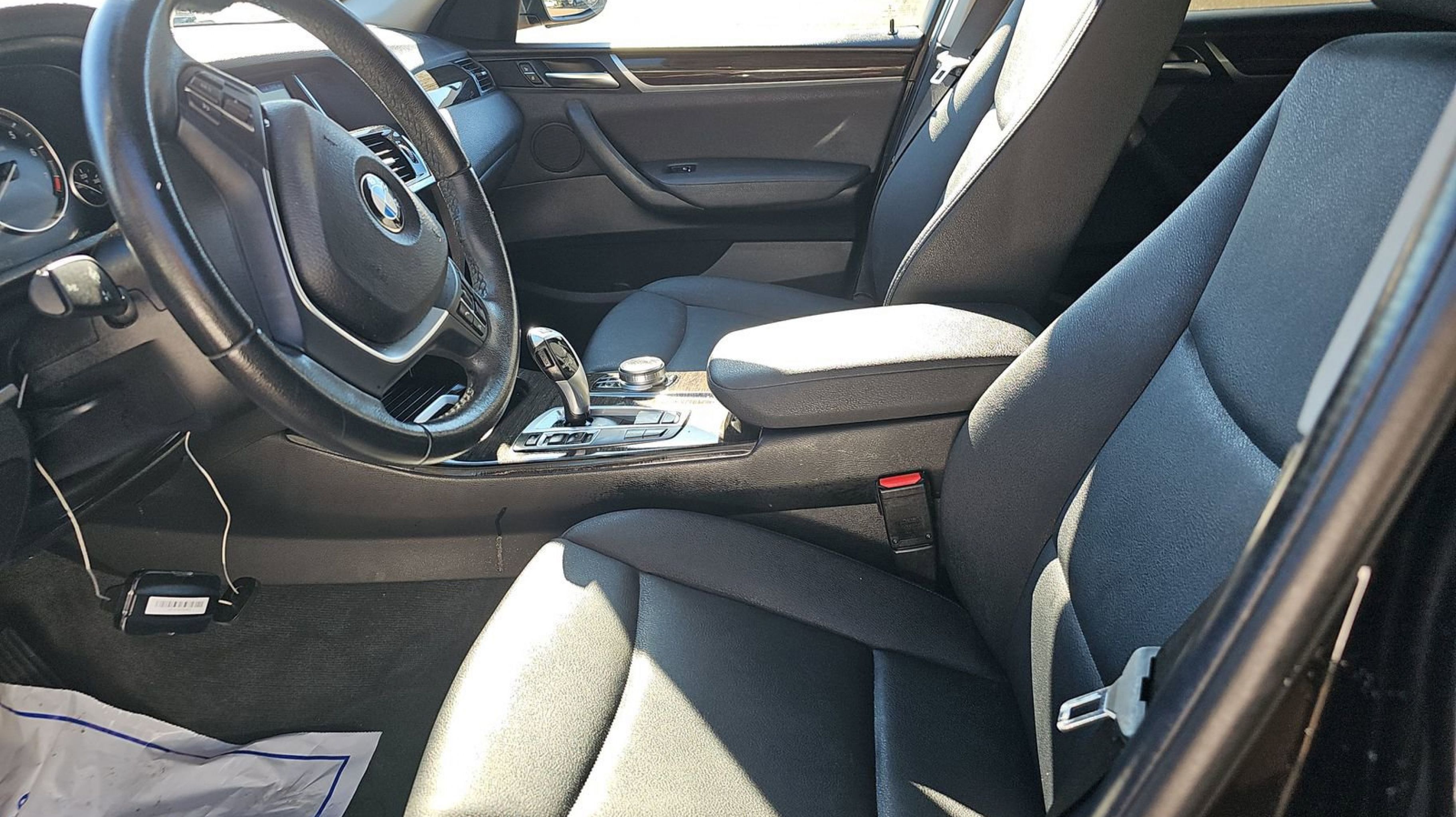 Black Sapphire Metallic 2017 BMW X3 sDrive28i RWD 8-Speed Automatic 2.0L I4 TwinPower Turbo 8-Speed Automatic, 18 x 8.0 V Spoke (Style 307) Wheels, 3.39 Axle Ratio, 4-Wheel Disc Brakes, 9 Speakers, ABS brakes, Active Blind Spot Detection, Active Driving Assistant, Advanced Real-Time Traffic Information, Air Conditioning, Alloy wheels, AM/FM radio, Anti-Theft AM/FM Stereo CD/MP3 Player, Anti-whiplash front head restraints, Apple CarPlay Compatibility, Auto-dimming door mirrors, Auto-dimming Rear-View mirror, Automatic temperature control, BMW Connected App Compatibility, BMW Online & BMW Apps, Bodyside moldings, Brake assist, Bumpers: body-color, CD player, Comfort Access Keyless Entry, Delay-off headlights, Driver door bin, Driver vanity mirror, Dual front impact airbags, Dual front side impact airbags, Electronic Stability Control, Emergency communication system: BMW Assist eCall, Fineline Anthracite Wood Trim, Four wheel independent suspension, Front anti-roll bar, Front Bucket Seats, Front Center Armrest, Front dual zone A/C, Front fog lights, Front reading lights, Fully automatic headlights, Garage door transmitter, Genuine wood console insert, Hands-Free Bluetooth & USB Audio Connection, HD Radio, Heated Front Seats, Hi-Fi Sound System, Illuminated entry, Leather steering wheel, Low tire pressure warning, Lumbar Support, Memory seat, Navigation System, Occupant sensing airbag, Outside temperature display, Overhead airbag, Panic alarm, Panoramic Moonroof, Park Distance Control, Passenger door bin, Passenger vanity mirror, Power door mirrors, Power driver seat, Power Front Bucket Seats, Power Liftgate, Power passenger seat, Power steering, Power windows, Radio BMW Professional, Radio data system, Rain sensing wipers, Rear anti-roll bar, Rear fog lights, Rear reading lights, Rear seat center armrest, Rear window defroster, Rear window wiper, Rear-View Camera, Remote keyless entry, Remote Services, Roof rack: rails only, Satin Aluminum Roof Rails, Security system, SensaTec Leatherette Upholstery, SiriusXM Satellite Radio, Speed control, Speed Limit Info, Speed-sensing steering, Speed-Sensitive Wipers, Split folding rear seat, Spoiler, Sport steering wheel, Steering wheel mounted audio controls, Surround View, Tachometer, Telescoping steering wheel, Tilt steering wheel, Traction control, Trip computer, Turn signal indicator mirrors, Variably intermittent wipers, 8-Speed Automatic.