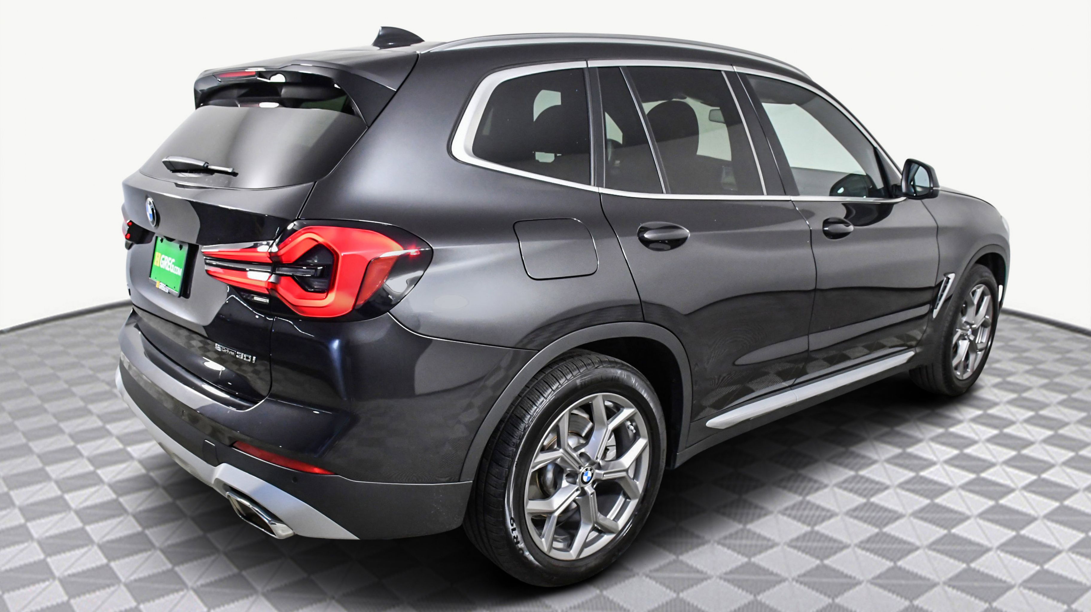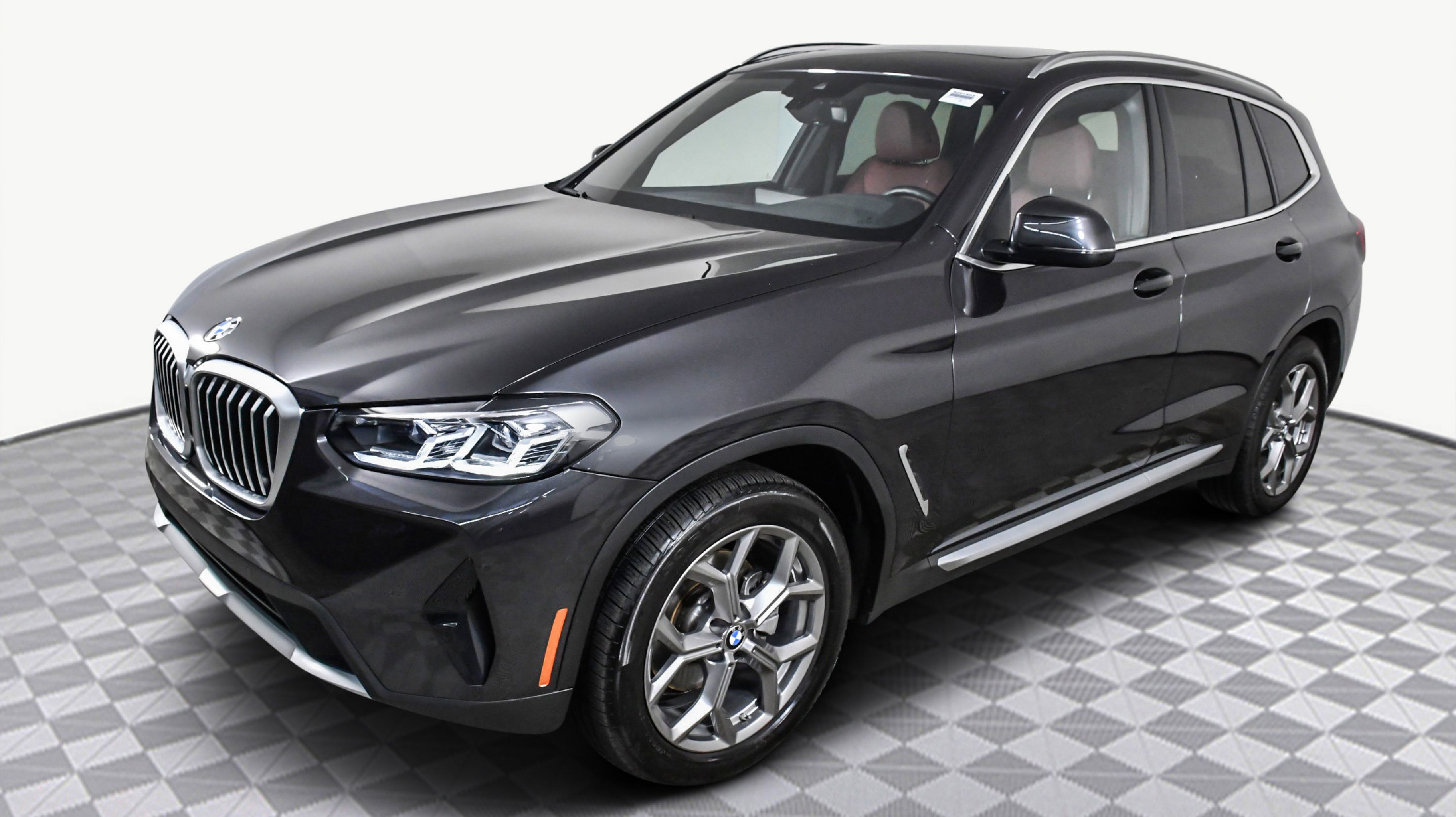 Dark Graphite Metallic 2024 BMW X3 sDrive30i RWD 8-Speed Automatic Sport I4 8-Speed Automatic Sport, Connected Package Pro, Convenience Package w/ZPA, Lumbar Support, Panoramic Moonroof (ZPA), 12 Speakers, 3.385 Axle Ratio, 4-Wheel Disc Brakes, ABS brakes, Air Conditioning, Alloy wheels, Aluminum Interior Trim, AM/FM Radio, AM/FM radio: SiriusXM, Apple CarPlay & Android Auto Compatibility, Auto High-beam Headlights, Auto-dimming door mirrors, Auto-dimming Rear-View mirror, Automatic temperature control, BMW Assist eCall, BMW TeleServices, Brake assist, Bumpers: body-color, Comfort Access Keyless Entry, ConnectedDrive Services, Delay-off headlights, Driver door bin, Driver vanity mirror, Dual front impact airbags, Dual front side impact airbags, Electronic Stability Control, Emergency communication system: BMW Assist eCall, Enhanced USB & Bluetooth w/Smartphone Integration, Exterior Parking Camera Rear, Four wheel independent suspension, Front anti-roll bar, Front Bucket Seats, Front Center Armrest, Front dual zone A/C, Front reading lights, Fully automatic headlights, Garage door transmitter, Genuine wood dashboard insert, Genuine wood door panel insert, Heated door mirrors, Hi-Fi Sound System, Illuminated entry, Knee airbag, Leather steering wheel, Low tire pressure warning, Memory seat, Navigation, Navigation System, Occupant sensing airbag, Outside temperature display, Overhead airbag, Panic alarm, Passenger door bin, Passenger vanity mirror, Perforated SensaTec Upholstery, Power door mirrors, Power driver seat, Power Front Seats, Power Liftgate, Power passenger seat, Power steering, Power windows, Radio data system, Rain sensing wipers, Rear air conditioning, Rear anti-roll bar, Rear reading lights, Rear seat center armrest, Rear window defroster, Rear window wiper, Remote keyless entry, Security system, Speed control, Speed-sensing steering, Speed-Sensitive Wipers, Split folding rear seat, Spoiler, Sport Seats, Sport steering wheel, Steering wheel mounted audio controls, Tachometer, Telescoping steering wheel, Tilt steering wheel, Traction control, Trip computer, Turn signal indicator mirrors, Variably intermittent wipers, Wheels: 19 x 7.5 Y-Spoke (Style 693), WiFi Hotspot, 8-Speed Automatic Sport, Connected Package Pro, Convenience Package w/ZPA, Lumbar Support, Panoramic Moonroof (ZPA).