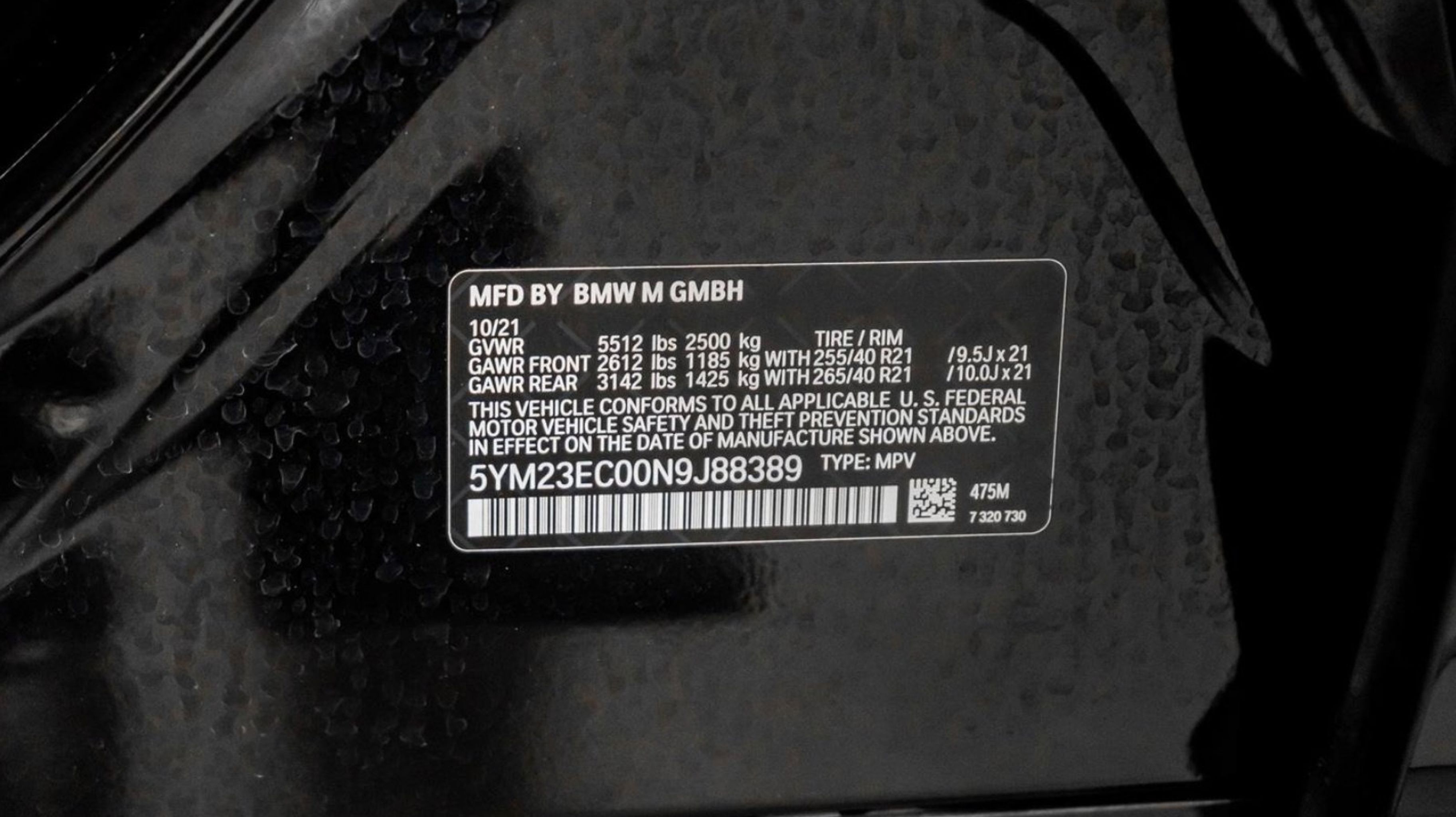 - WHEELS: 21 X 9.5 FR & 21 X 10 RR M DBL-SPOKE -inc: Style 892M Bi-color Tires: 255/40R21 Fr & 265/40R21 Rr Perf Non-RFT