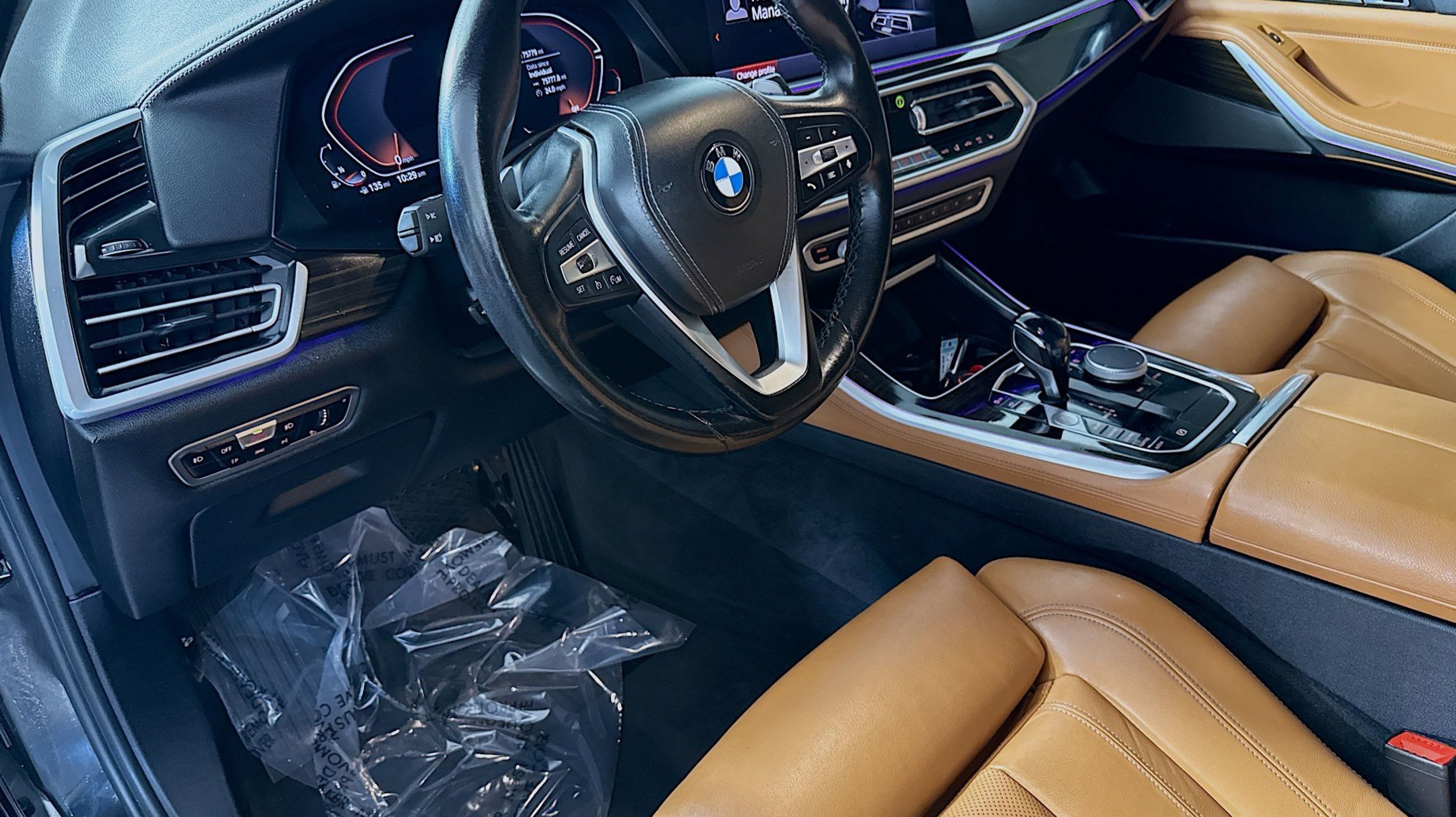 CARFAX One-Owner. Clean CARFAX. Cognac w/Vernasca Leather Upholstery, Connected Package Pro, 10 Speakers, 4-Wheel Disc Brakes, 4-Zone Automatic Climate Control, ABS brakes, Active Park Distance Control, Air Conditioning, Alloy wheels, AM/FM radio: SiriusXM with 360L, AM/FM Stereo, Apple CarPlay & Android Auto Compatibility, Apple CarPlay Compatibility, Auto High-beam Headlights, Auto tilt-away steering wheel, Auto-dimming door mirrors, Auto-dimming Rear-View mirror, Automatic temperature control, Axle Ratio: 3.385, BMW Assist eCall, BMW TeleServices, Brake assist, Bumpers: body-color, Compass, ConnectedDrive Services, Delay-off headlights, Drive Recorder, Driver door bin, Driver vanity mirror, Dual front impact airbags, Dual front side impact airbags, Electronic Stability Control, Emergency communication system: BMW Assist eCall, Enhanced USB & Bluetooth, Exterior Parking Camera Rear, Four wheel independent suspension, Front anti-roll bar, Front Bucket Seats, Front Center Armrest, Front dual zone A/C, Front fog lights, Front reading lights, Fully automatic headlights, Garage door transmitter, Genuine wood console insert, Genuine wood dashboard insert, Genuine wood door panel insert, Gesture Control, harman/kardon Surround Sound System (DISC), Head restraints memory, Head-Up Display, Heated door mirrors, Heated Front Seats, Heated front seats, Hi-Fi Sound System, Illuminated entry, Knee airbag, Leather Shift Knob, Leather steering wheel, Live Cockpit Pro w/Navigation, Low tire pressure warning, Lumbar Support, Memory seat, Navigation System, Occupant sensing airbag, Outside temperature display, Overhead airbag, Panic alarm, Parking Assistant Plus, Passenger door bin, Passenger vanity mirror, Power adjustable front head restraints, Power door mirrors, Power driver seat, Power Front Seats, Power moonroof, Power passenger seat, Power steering, Power windows, Radio data system, Rain sensing wipers, Rear air conditioning, Rear anti-roll bar, Rear reading lights, Rear seat center armrest, Rear window defroster, Rear window wiper, Rear-View Camera, Remote Engine Start, Remote keyless entry, Roof rack: rails only, Security system, SensaTec Upholstery, SiriusXM Satellite Radio w/360L, Speed control, Speed-sensing steering, Speed-Sensitive Wipers, Split folding rear seat, Spoiler, Sport Seats, Sport steering wheel, Steering wheel memory, Steering wheel mounted audio controls, Surround View w/3D View, Tachometer, Telescoping steering wheel, Tilt steering wheel, Traction control, Trip computer, Turn signal indicator mirrors, Variably intermittent wipers, Wheels: 19 x 9 V-Spoke (Style 734), Wheels: 20 x 9 V-Spoke (Style 738), WiFi Hotspot, Wireless Charging, Cognac w/Vernasca Leather Upholstery, Connected Package Pro.