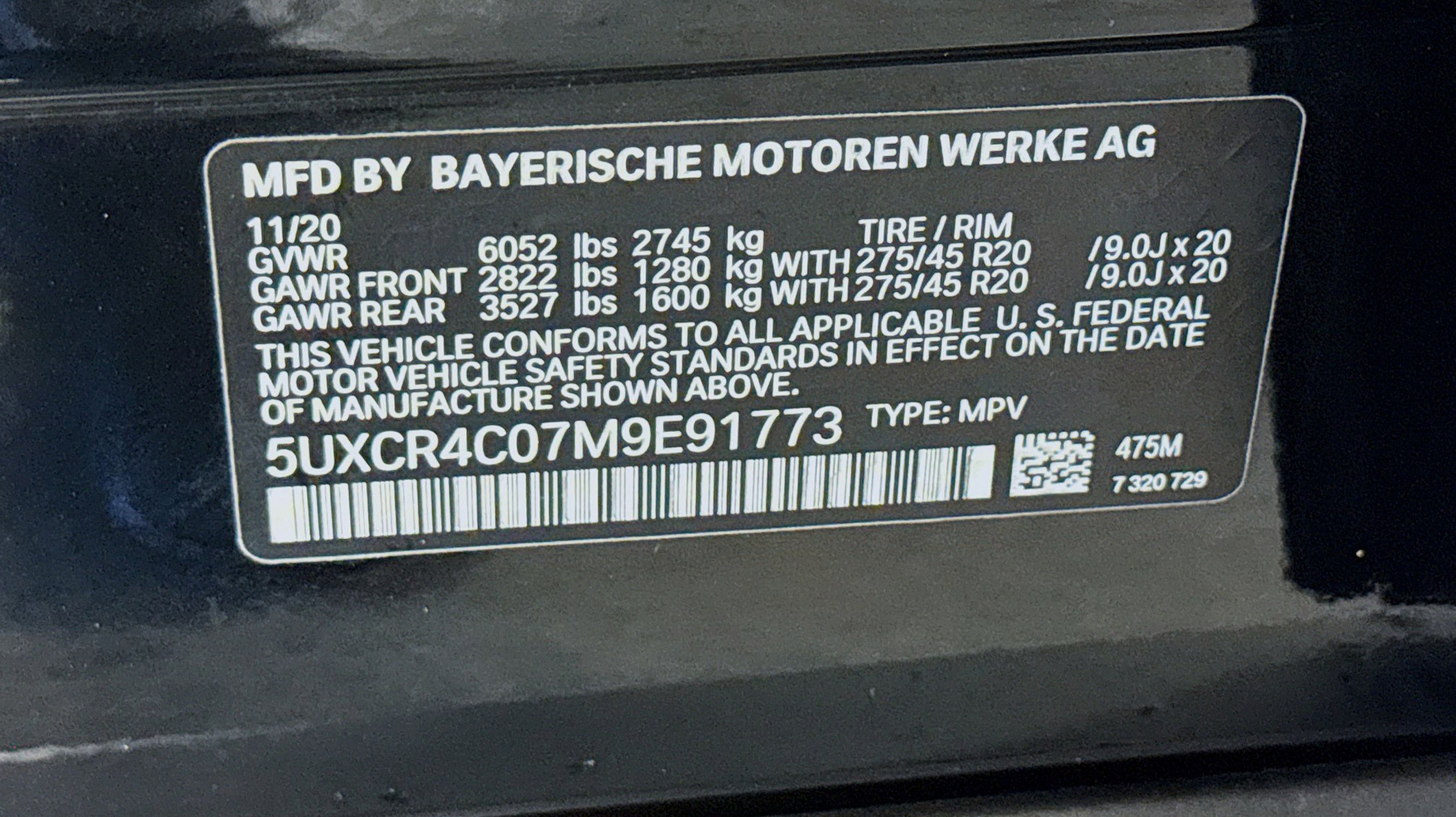 - WHEELS: 20 X 9 V-SPOKE (STYLE 738) -inc: Tires: 275/45R20 Run-Flat AS