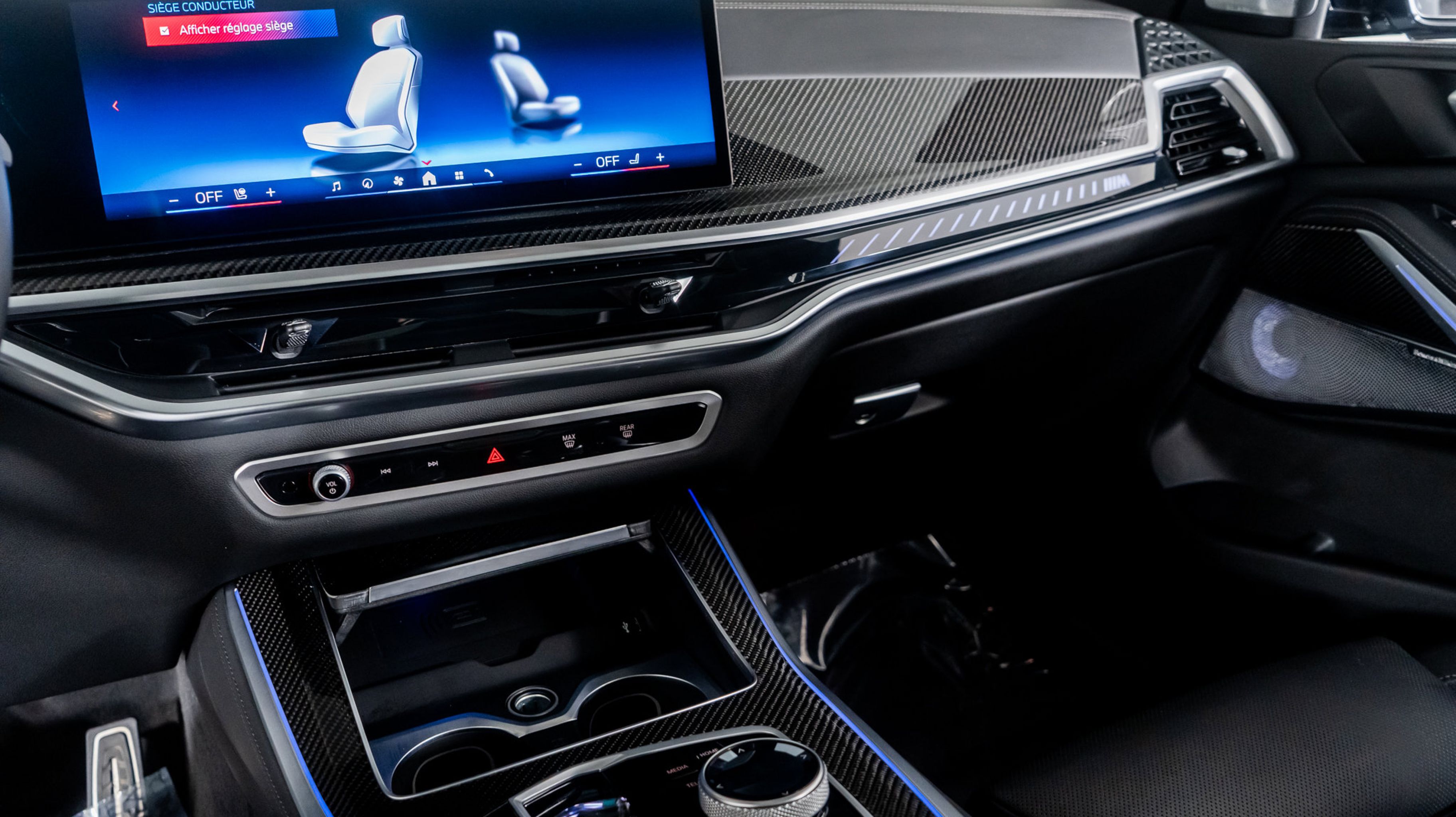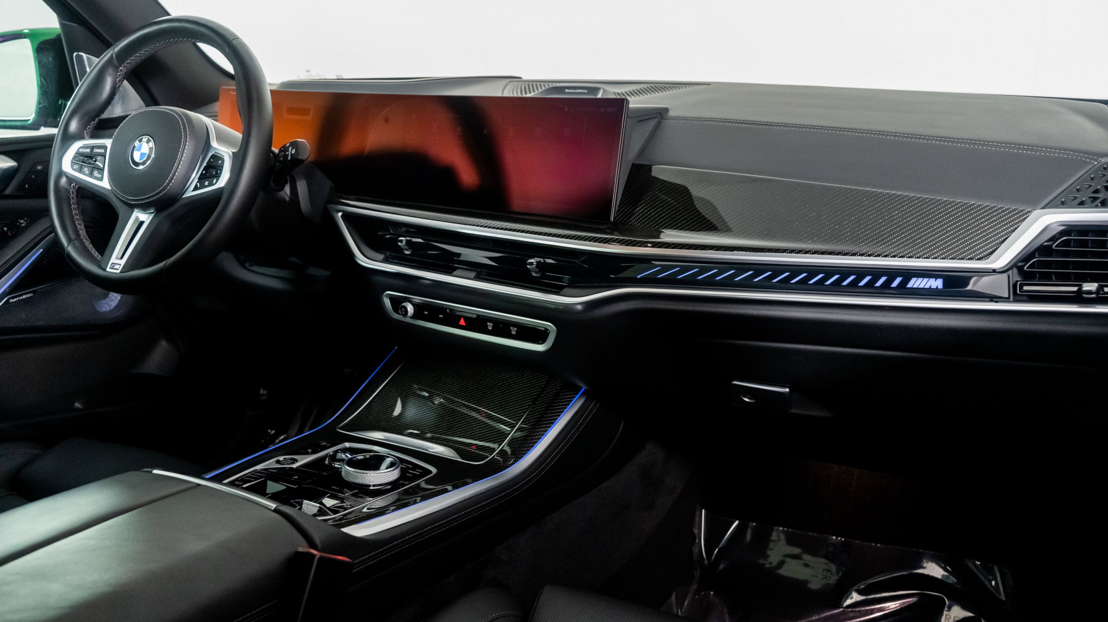 Finished in Brooklyn Grey Metallic, this X5 M60i embodies confidence and class. The Black Merino Leather interior offers both comfort and craftsmanship, enhanced by carbon fibre trim and glass control accents. The Premium Enhanced Package adds a panoramic roof, ventilated seats, and soft-close doors, while the Driver Assistance Package integrates cutting-edge safety and convenience technologies. Every detail of this SUV is designed to elevate the driving experience, blending power, comfort, and intelligence.