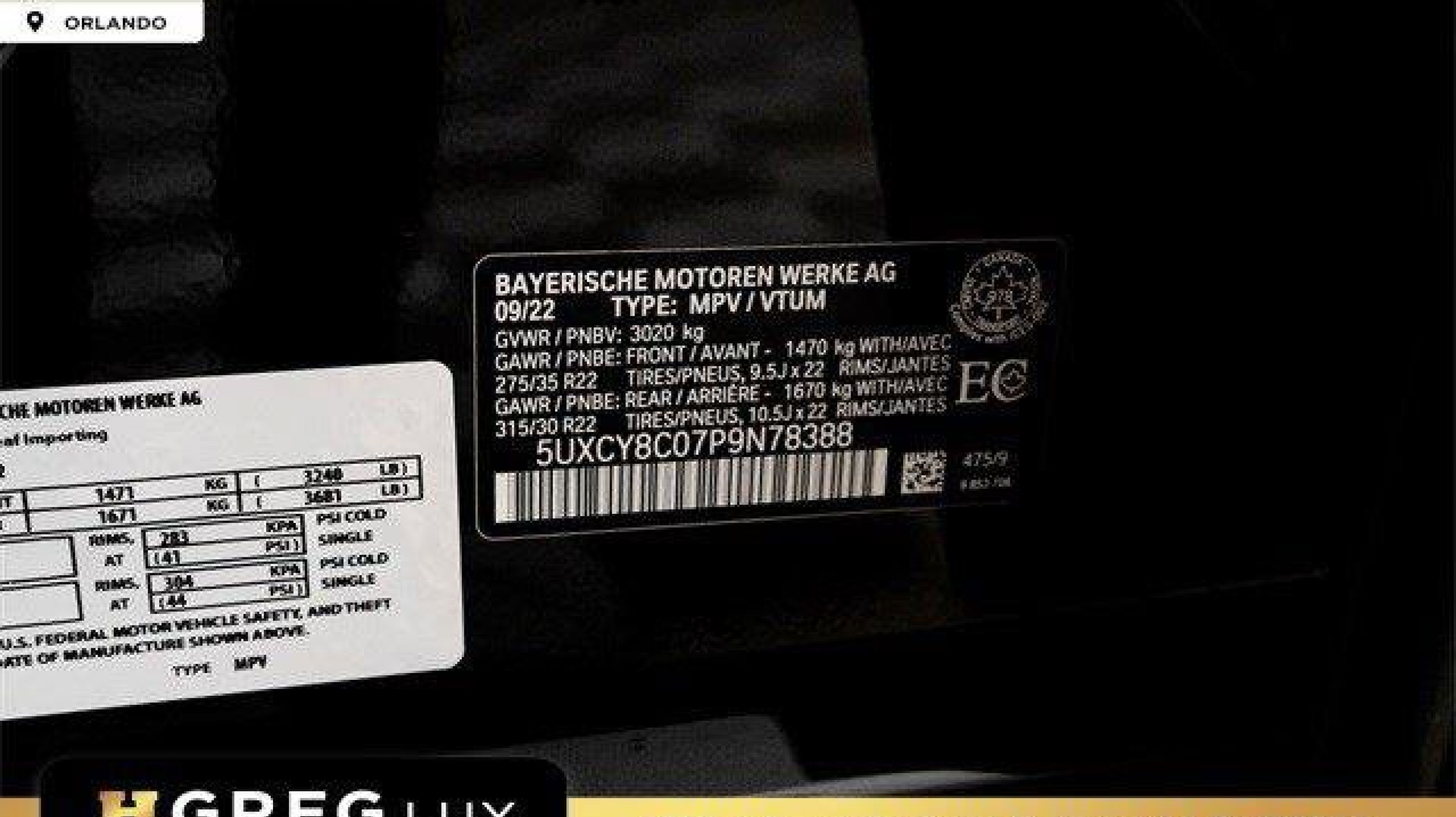 *** VIN:** 5UXCY8C07P9N78388