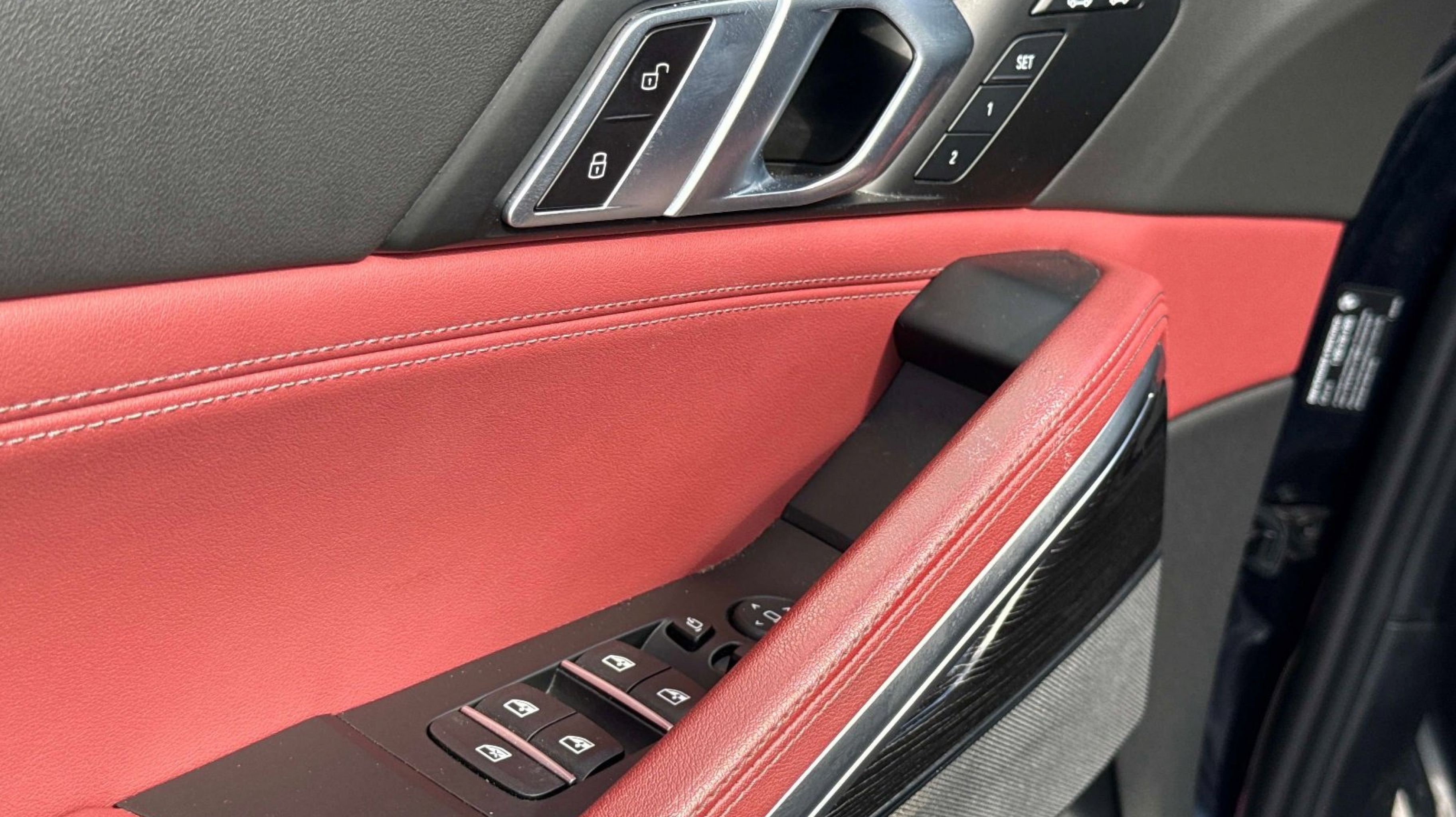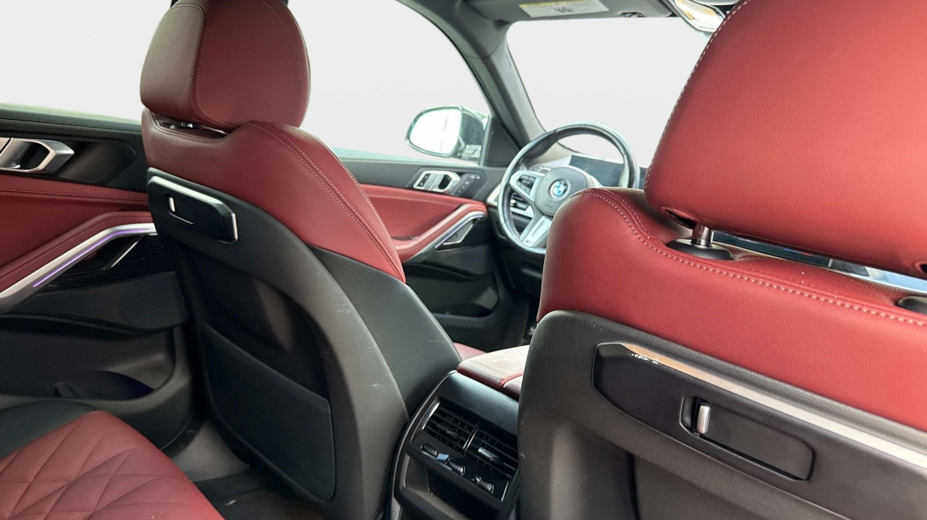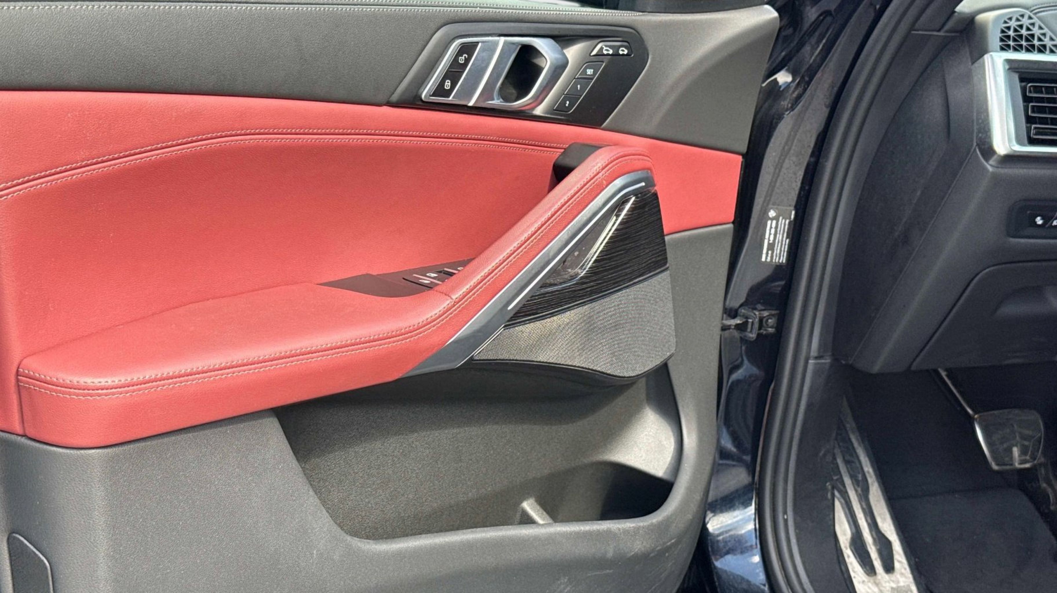 Red Leather, 10 Speakers, 3.39 Axle Ratio, 4-Wheel Disc Brakes, ABS brakes, Adaptive suspension, Air Conditioning, Alloy wheels, AM/FM radio: SiriusXM with 360L, AM/FM Stereo, Apple CarPlay & Android Auto Compatibility, Apple CarPlay Compatibility, Auto High-beam Headlights, Auto tilt-away steering wheel, Auto-dimming door mirrors, Auto-dimming Rear-View mirror, Automatic temperature control, BMW Assist eCall, BMW TeleServices, Brake assist, Bumpers: body-color, Compass, Connected Package Pro, ConnectedDrive Services, Delay-off headlights, Digital Cockpit Plus, Driver door bin, Driver vanity mirror, Dual front impact airbags, Dual front side impact airbags, Electronic Stability Control, Emergency communication system: BMW Assist eCall, Exterior Parking Camera Rear, Four wheel independent suspension, Front anti-roll bar, Front Bucket Seats, Front Center Armrest, Front dual zone A/C, Front reading lights, Fully automatic headlights, Garage door transmitter, Genuine wood console insert, Genuine wood door panel insert, Head restraints memory, Heated door mirrors, Heated Front Seats, Heated Front Seats Armrests & Steering Wheel, Heated REAR seats, Hi-Fi Sound System, Illuminated entry, Leather steering wheel, Live Cockpit Pro, Low tire pressure warning, Lumbar Support, Memory seat, Navigation System, Occupant sensing airbag, Outside temperature display, Overhead airbag, Overhead console, Panic alarm, Passenger door bin, Passenger vanity mirror, Personal eSIM 5G, Power adjustable front head restraints, Power door mirrors, Power driver seat, Power Front Seats, Power Liftgate, Power moonroof, Power passenger seat, Power steering, Power windows, Radio data system, Rain sensing wipers, Rear anti-roll bar, Rear reading lights, Rear seat center armrest, Rear window defroster, Remote Engine Start, Remote keyless entry, Security system, Sensafin Upholstery, SiriusXM w/360L & 1 Year Platinum Plan Subscription, Speed control, Speed-sensing steering, Speed-Sensitive Wipers, Split folding rear seat, Spoiler, Sport Seats, Sport steering wheel, Steering wheel memory, Steering wheel mounted A/C controls, Steering wheel mounted audio controls, Tachometer, Telescoping steering wheel, Tilt steering wheel, Traction control, Trip computer, Turn signal indicator mirrors, Variably intermittent wipers, Wheels: 20 x 9 M Star-Spoke Bi-Color (Style 740M), Wireless Device Charging, Red Leather. Odometer is 785 miles below market average!