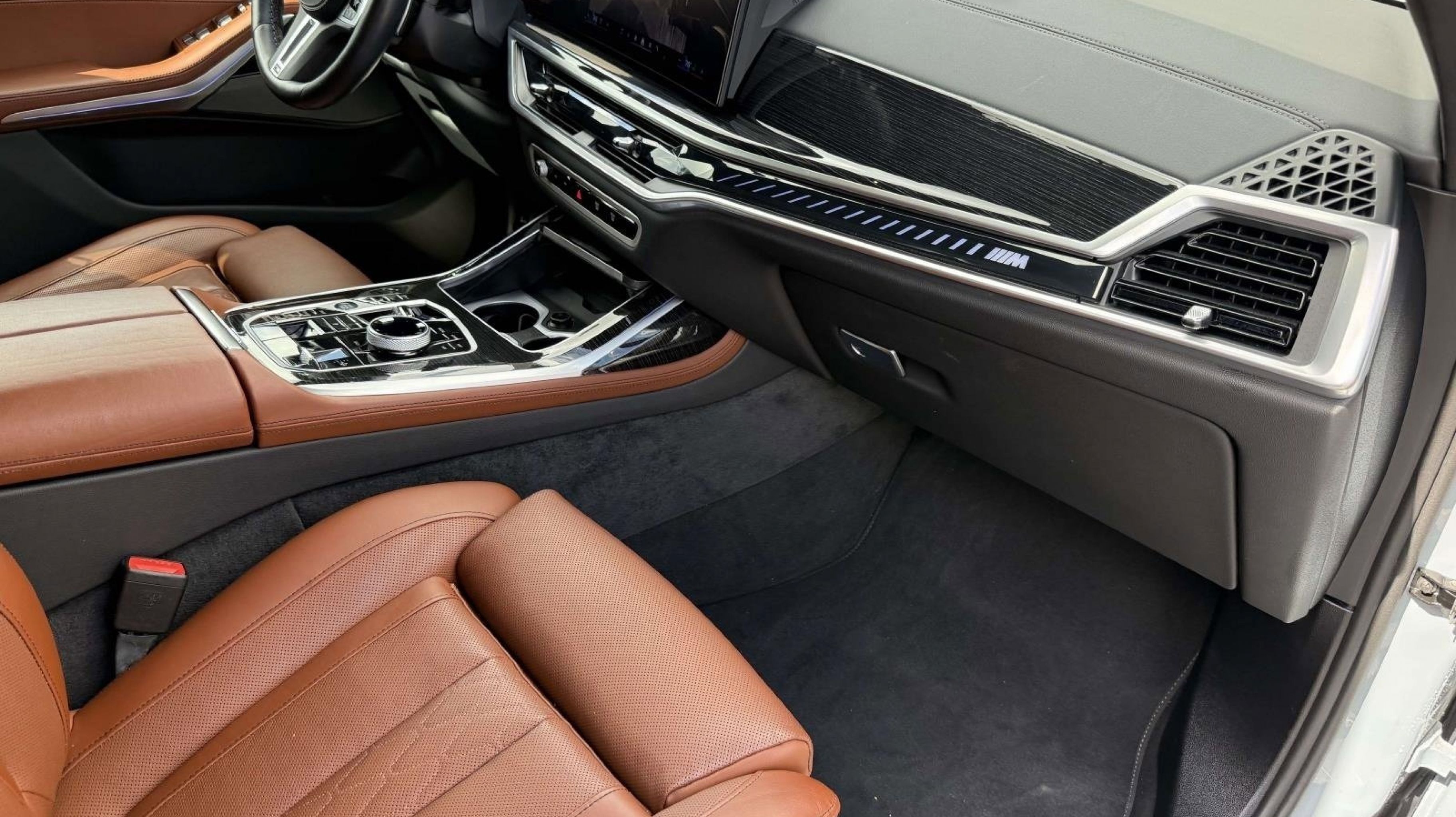 16 Speakers, 3.15 Axle Ratio, 3rd row seats: split-bench, 4-Wheel Disc Brakes, ABS brakes, Adaptive suspension, Air Conditioning, Alloy wheels, AM/FM radio: SiriusXM with 360L, AM/FM Stereo, Apple CarPlay and Android Auto Compatibility, Apple CarPlay Compatibility, Auto High-beam Headlights, Auto tilt-away steering wheel, Auto-dimming door mirrors, Auto-dimming Rear-View mirror, Auto-leveling suspension, Automatic temperature control, BMW Assist ECall, BMW TeleServices, Brake assist, Bumpers: body-color, Compass, Connected Package Pro, ConnectedDrive Services, Delay-off headlights, Driver door bin, Driver vanity mirror, Dual front impact airbags, Dual front side impact airbags, Electronic Stability Control, Emergency communication system: BMW Assist eCall, Extended Merino Leather Upholstery, Exterior Parking Camera Rear, Four wheel independent suspension, Front anti-roll bar, Front Bucket Seats, Front Center Armrest, Front dual zone A/C, Front reading lights, Fully automatic headlights, Garage door transmitter, Genuine wood console insert, Genuine wood dashboard insert, Genuine wood door panel insert, Gesture Control, Harman/Kardon Surround Sound System, harman/kardon® Speakers, Head restraints memory, Heads-Up Display, Heated door mirrors, Heated Multi-Contour Seats, Heated REAR seats, Heated steering wheel, Illuminated entry, Knee airbag, Leather steering wheel, Live Cockpit Pro, Low tire pressure warning, Memory seat, Navigation system: BMW Maps Navigation, Occupant sensing airbag, Outside temperature display, Overhead airbag, Panic alarm, Passenger door bin, Passenger vanity mirror, Personal ESIM 5G, Power adjustable front head restraints, Power door mirrors, Power driver seat, Power Front Seats, Power moonroof, Power passenger seat, Power steering, Power windows, Radio data system, Rain sensing wipers, Rear air conditioning, Rear anti-roll bar, Rear dual zone A/C, Rear reading lights, Rear seat center armrest, Rear window defroster, Rear window wiper, Reclining 3rd row seat, Remote keyless entry, Security system, SiriusXM Satellite Radio, Speed control, Speed-sensing steering, Speed-Sensitive Wipers, Split folding rear seat, Spoiler, Sport steering wheel, Steering wheel memory, Steering wheel mounted audio controls, Tachometer, Telescoping steering wheel, Tilt steering wheel, Traction control, Trip computer, Turn signal indicator mirrors, Variably intermittent wipers, Wheels: 22 x 9.5 Front and 22 x 10.5 Rear Dual-Spoke, Wireless Charging Device.