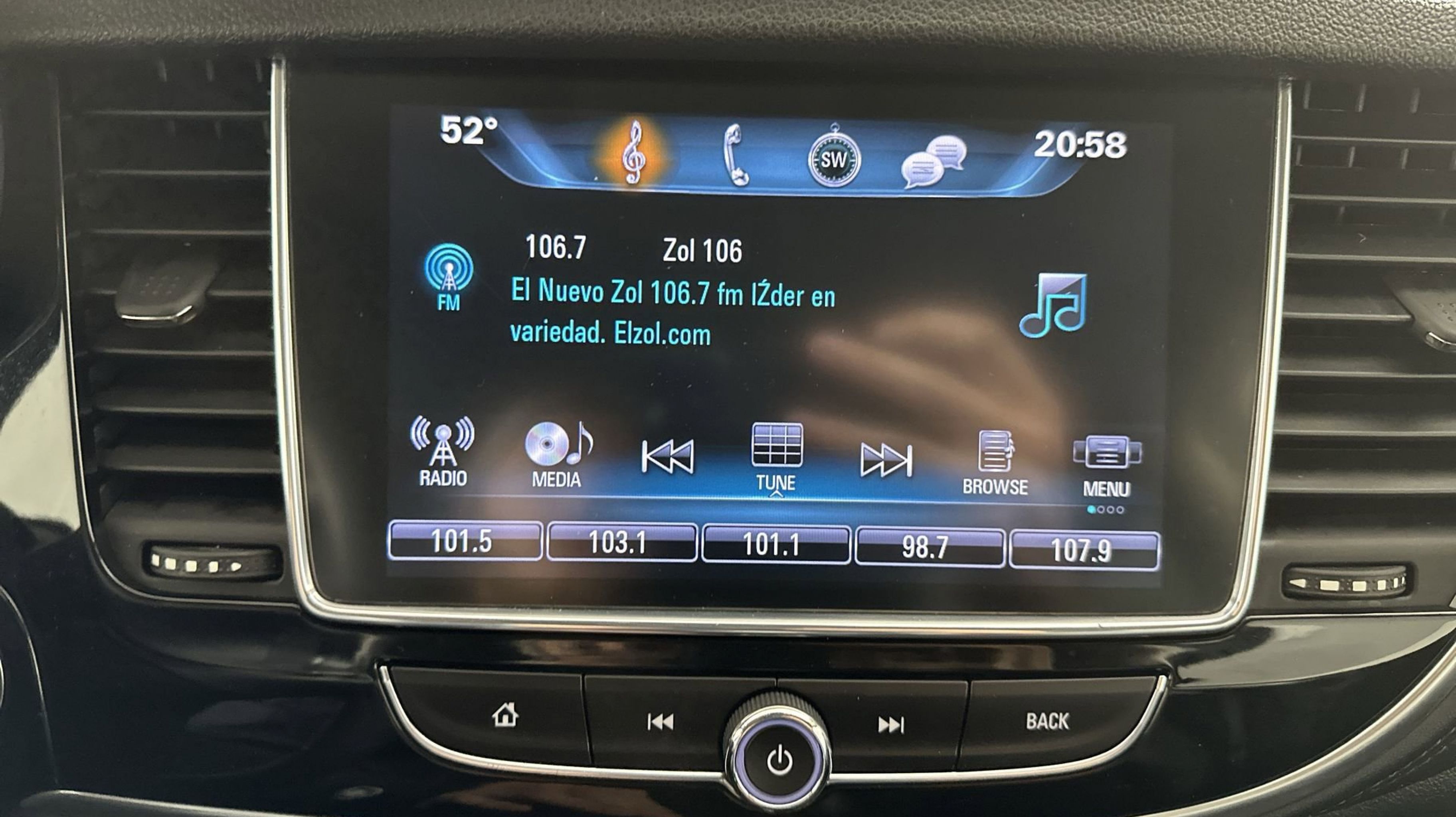 - AUDIO SYSTEM BUICK INFOTAINMENT SYSTEM AM/FM STEREO SIRIUSXM with 8 diagonal Color Touch Screen includes 2 USB ports Bluetooth streaming for audio and select phones and Phone Integration for Apple CarPlay and Android Auto capability for compatible phone (STD)