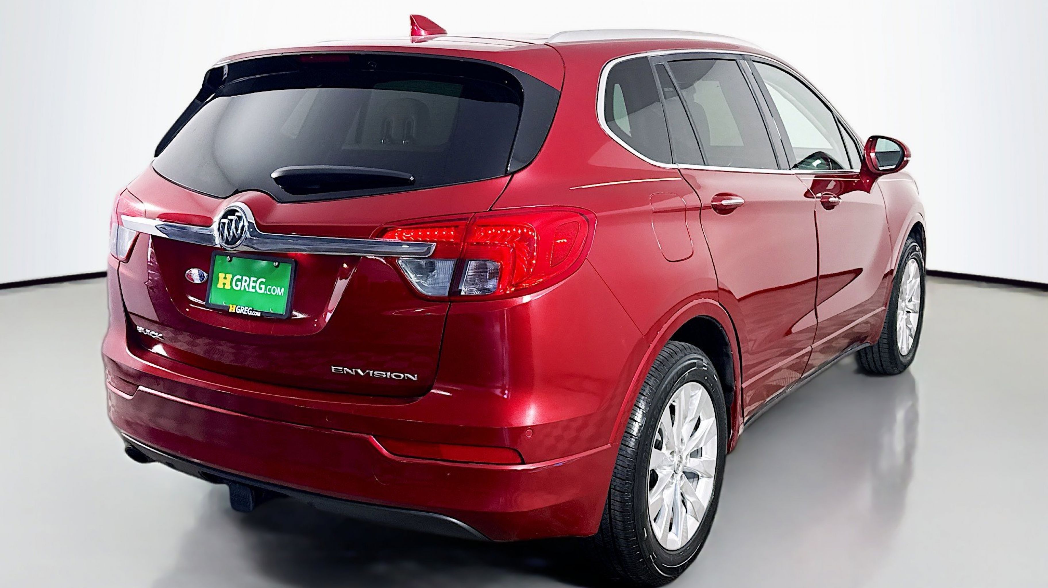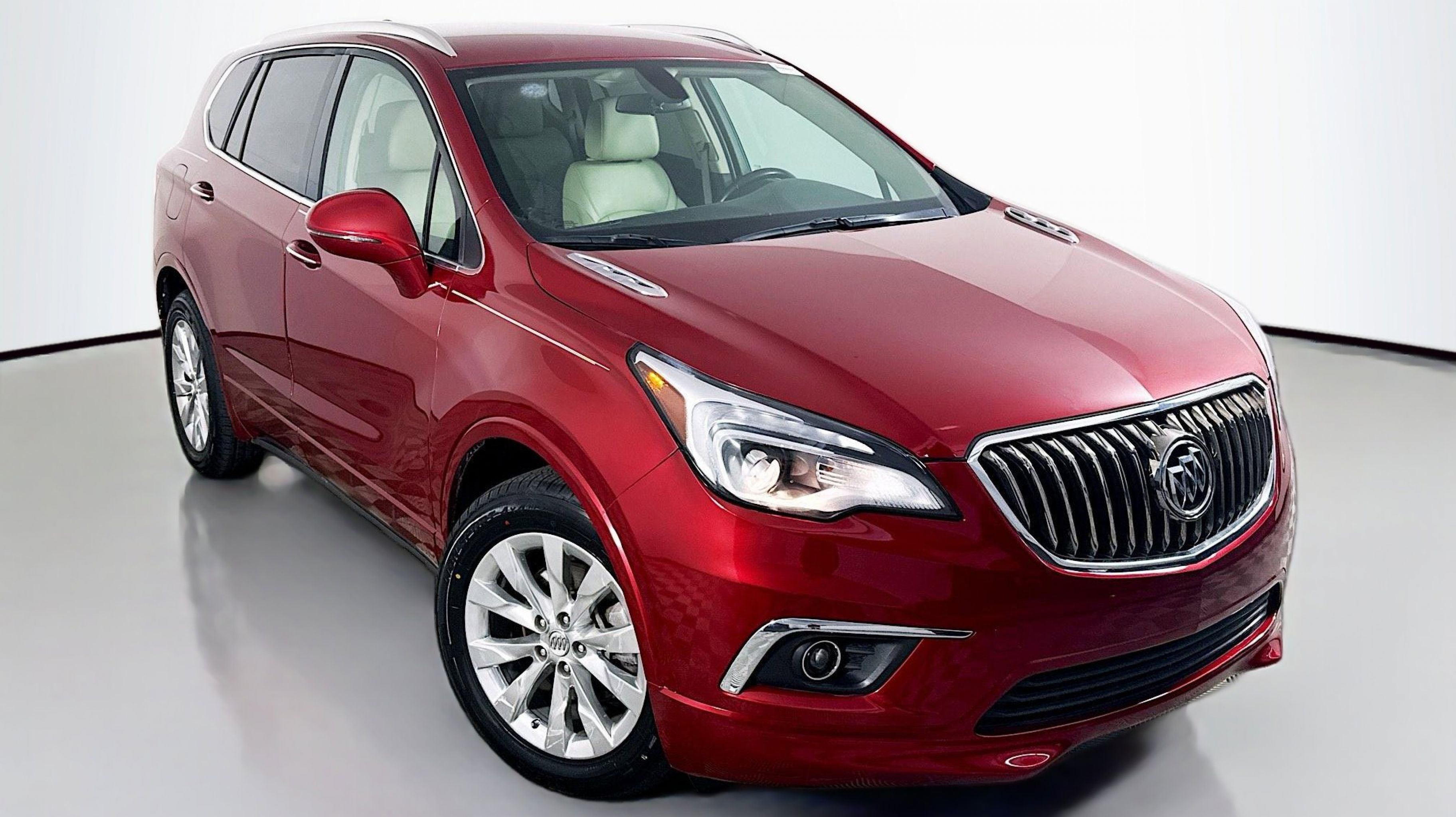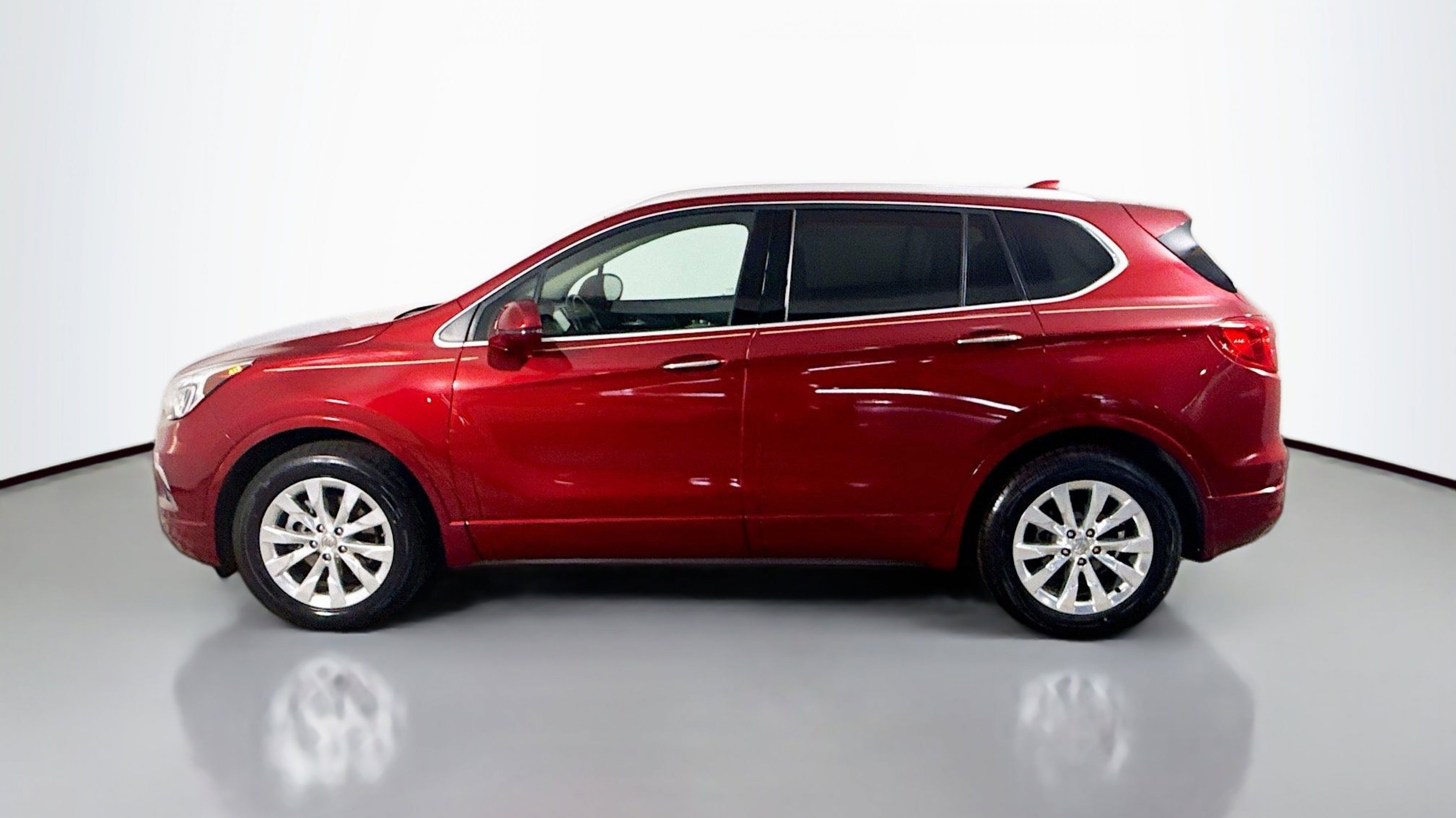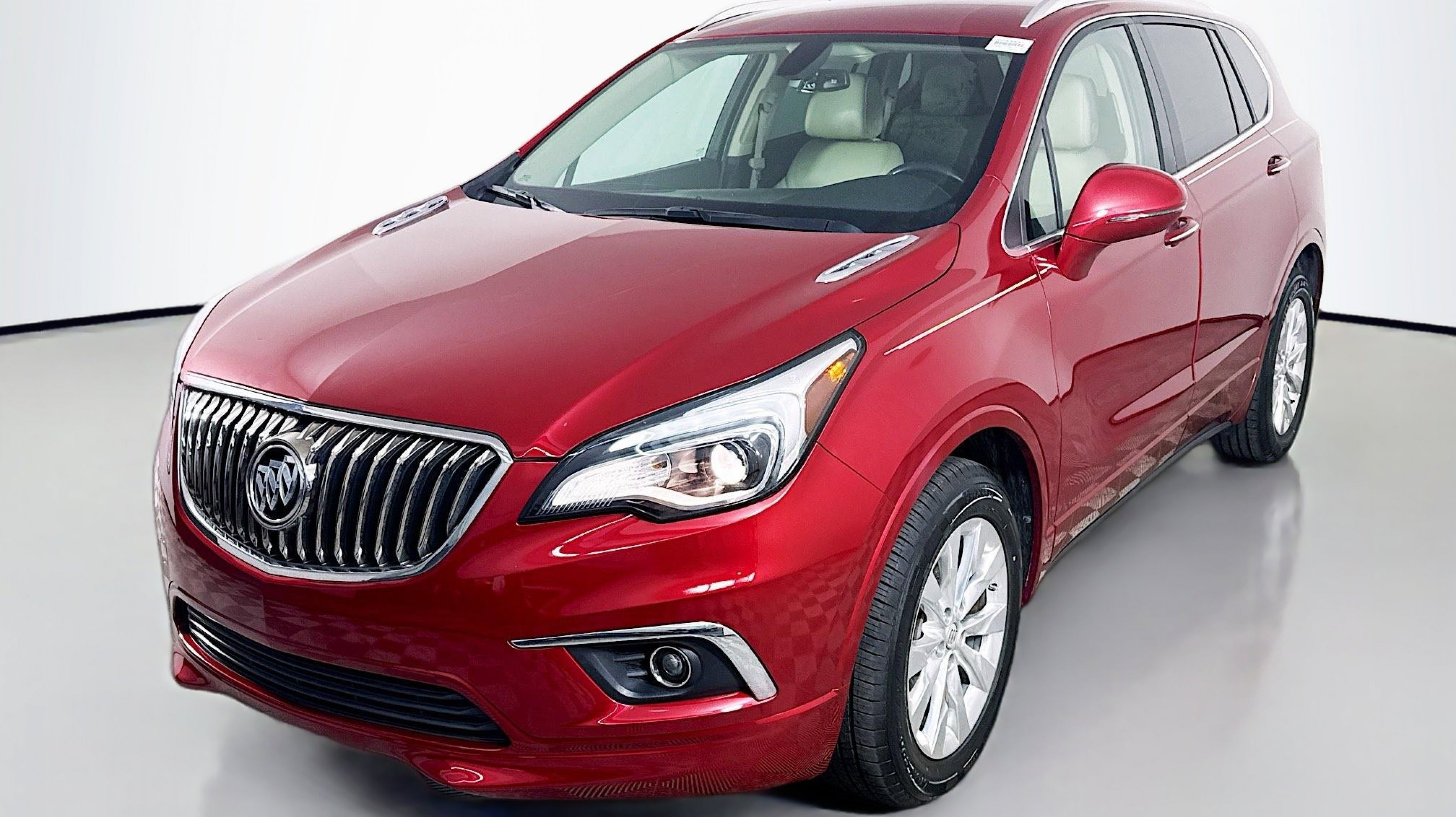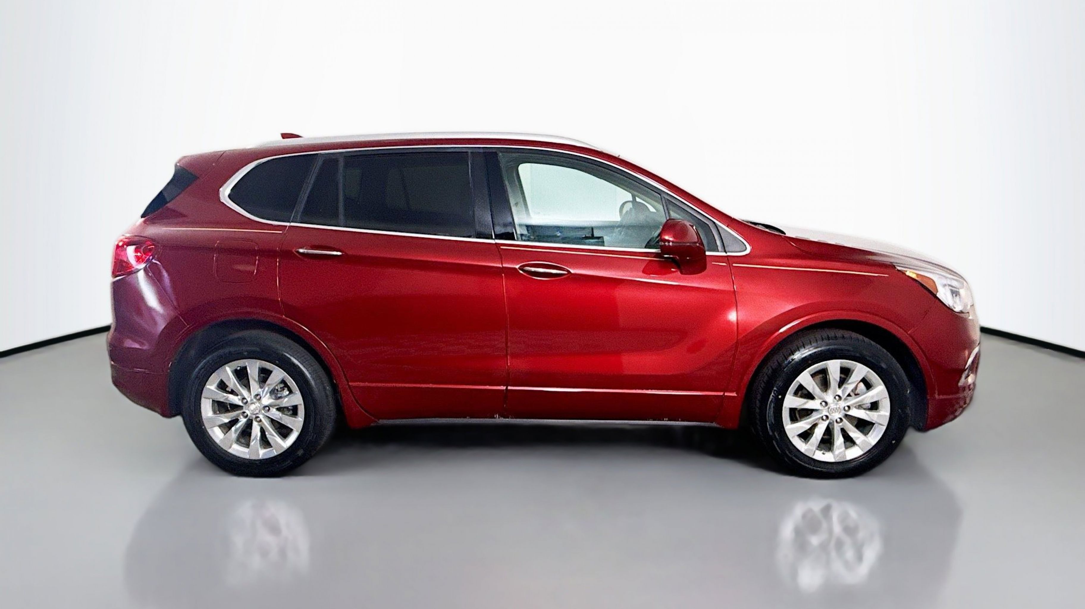Chili Red Metallic 2017 Buick Envision Essence FWD 6-Speed Automatic 2.5L 4-Cylinder DGI DOHC VVT Preferred Equipment Group 1SL, 18 10-Spoke Polished Aluminum Wheels, 3.50 Final Drive Axle Ratio, 4-Wheel Disc Brakes, 6 Speakers, 6-Speaker Audio System Feature, ABS brakes, Air Conditioning, Alloy wheels, AM/FM radio: SiriusXM, Apple CarPlay/Android Auto, Auto-dimming door mirrors, Auto-dimming Rear-View mirror, Automatic temperature control, Brake assist, Bumpers: body-color, Compass, Delay-off headlights, Driver 8-Way Power Seat Adjuster, Driver door bin, Driver vanity mirror, Dual front impact airbags, Dual front side impact airbags, Electronic Stability Control, Emergency communication system: OnStar Guidance, Exterior Parking Camera Rear, Four wheel independent suspension, Front anti-roll bar, Front Bucket Seats, Front Center Armrest, Front dual zone A/C, Front fog lights, Front Passenger 8-Way Power Seat Adjuster, Front reading lights, Fully automatic headlights, Garage door transmitter, Heated door mirrors, Heated Driver & Front Passenger Seats, Heated front seats, Heated rear seats, Heated steering wheel, Illuminated entry, Knee airbag, Low tire pressure warning, Memory seat, Occupant sensing airbag, Outside temperature display, Overhead airbag, Overhead console, Panic alarm, Passenger door bin, Passenger vanity mirror, Perforated Leather-Appointed Seat Trim, Power door mirrors, Power driver seat, Power Liftgate, Power passenger seat, Power steering, Power windows, Premium audio system: IntelliLink, Radio data system, Radio: Buick IntelliLink AM/FM Stereo, Rear air conditioning, Rear anti-roll bar, Rear Parking Sensors, Rear reading lights, Rear seat center armrest, Rear side impact airbag, Rear window defroster, Rear window wiper, Remote keyless entry, Roof rack: rails only, Security system, SiriusXM Satellite Radio, Speed control, Speed-sensing steering, Split folding rear seat, Spoiler, Steering wheel mounted audio controls, Tachometer, Telescoping steering wheel, Tilt steering wheel, Traction control, Trip computer, Turn signal indicator mirrors, Variably intermittent wipers, Preferred Equipment Group 1SL.