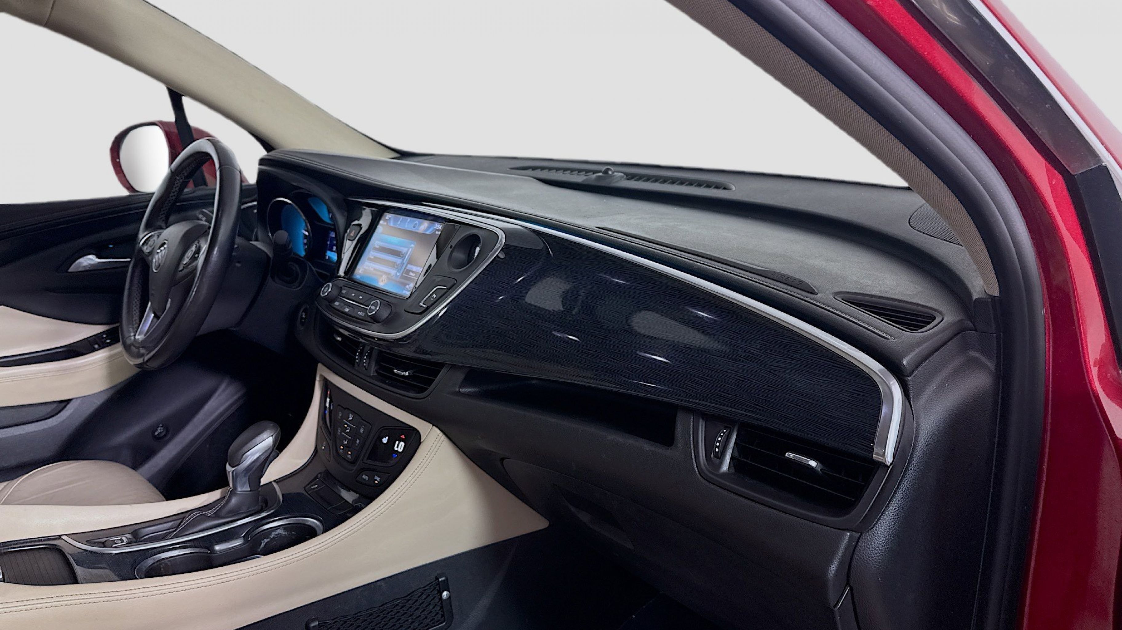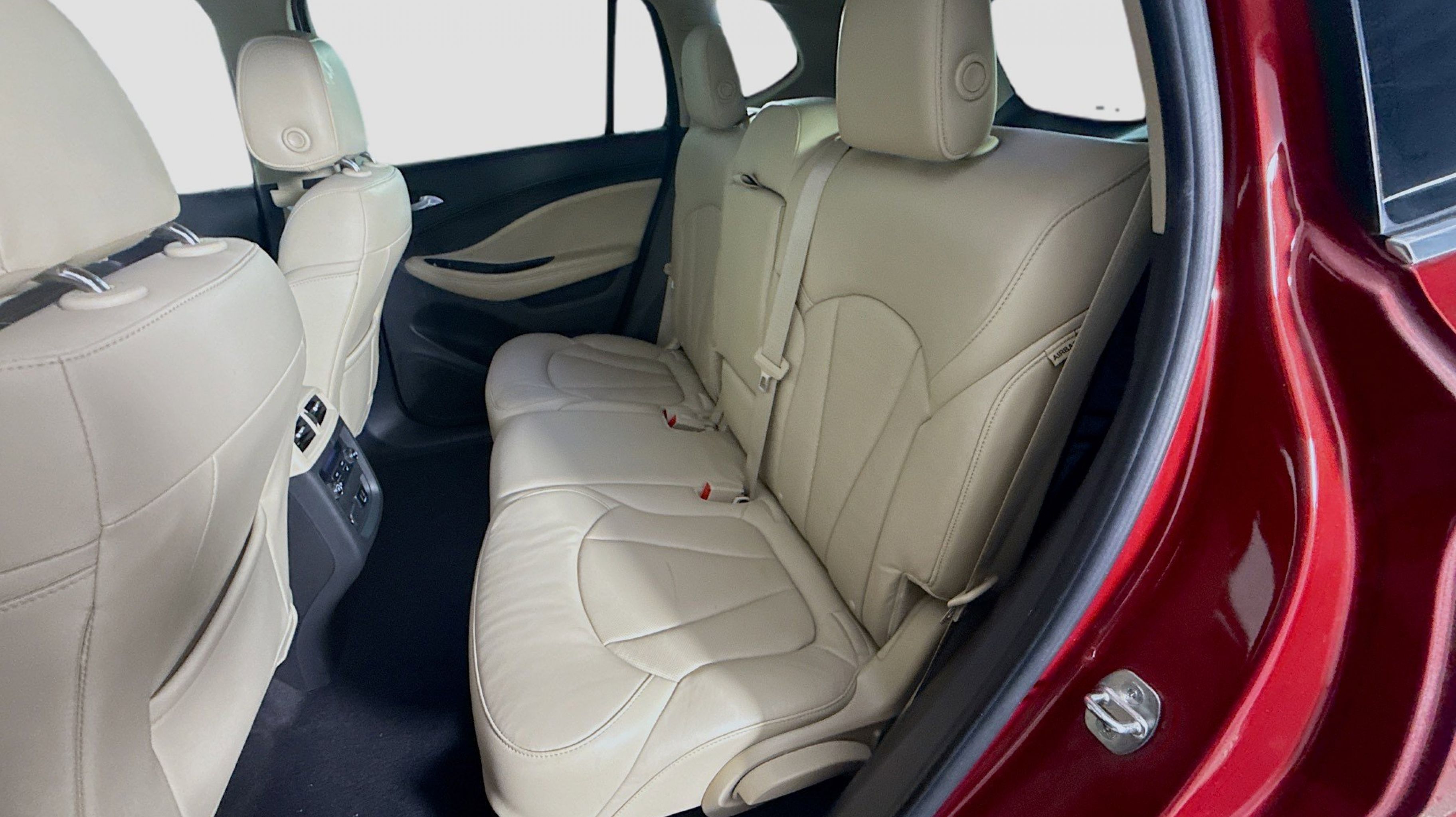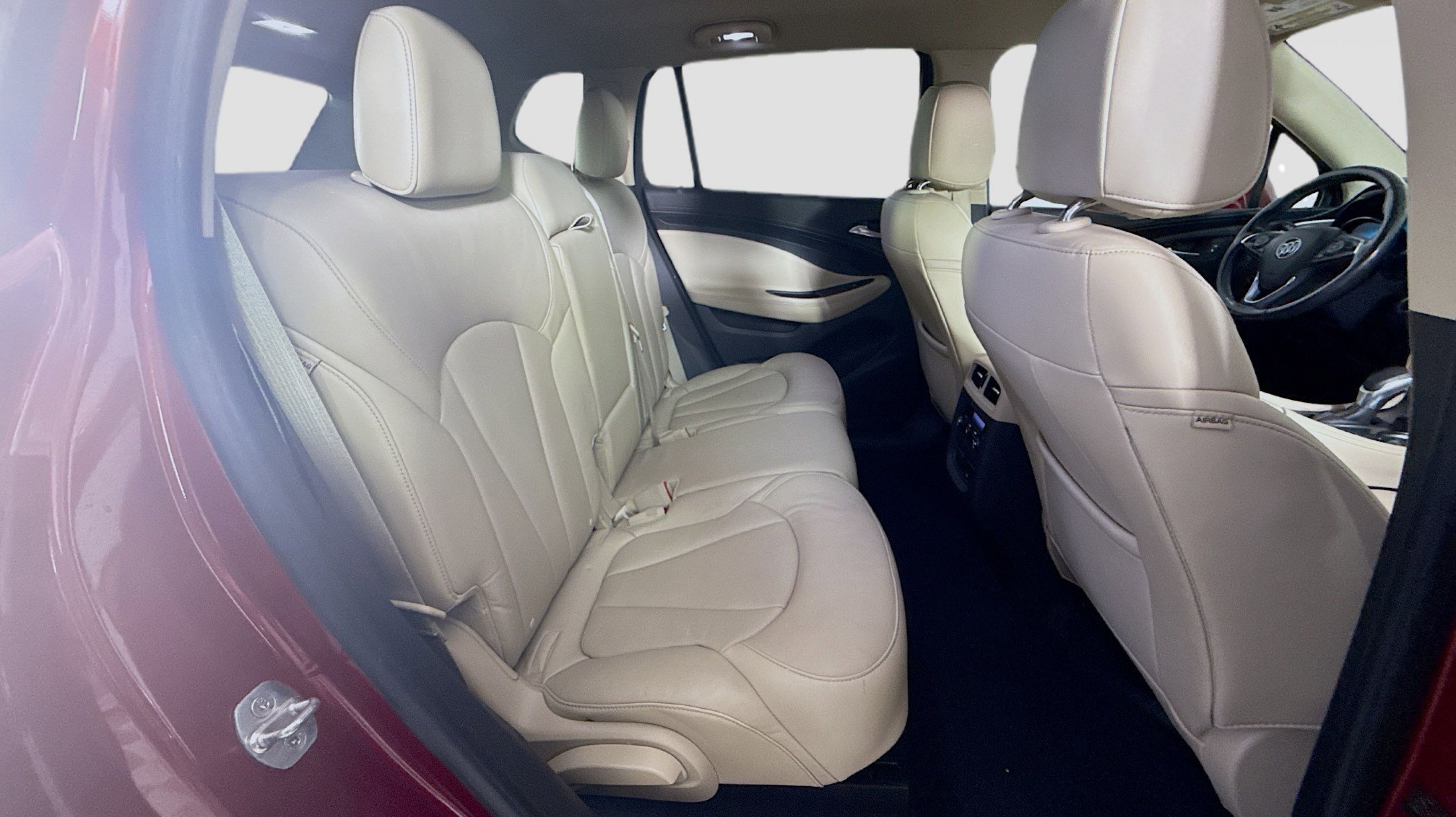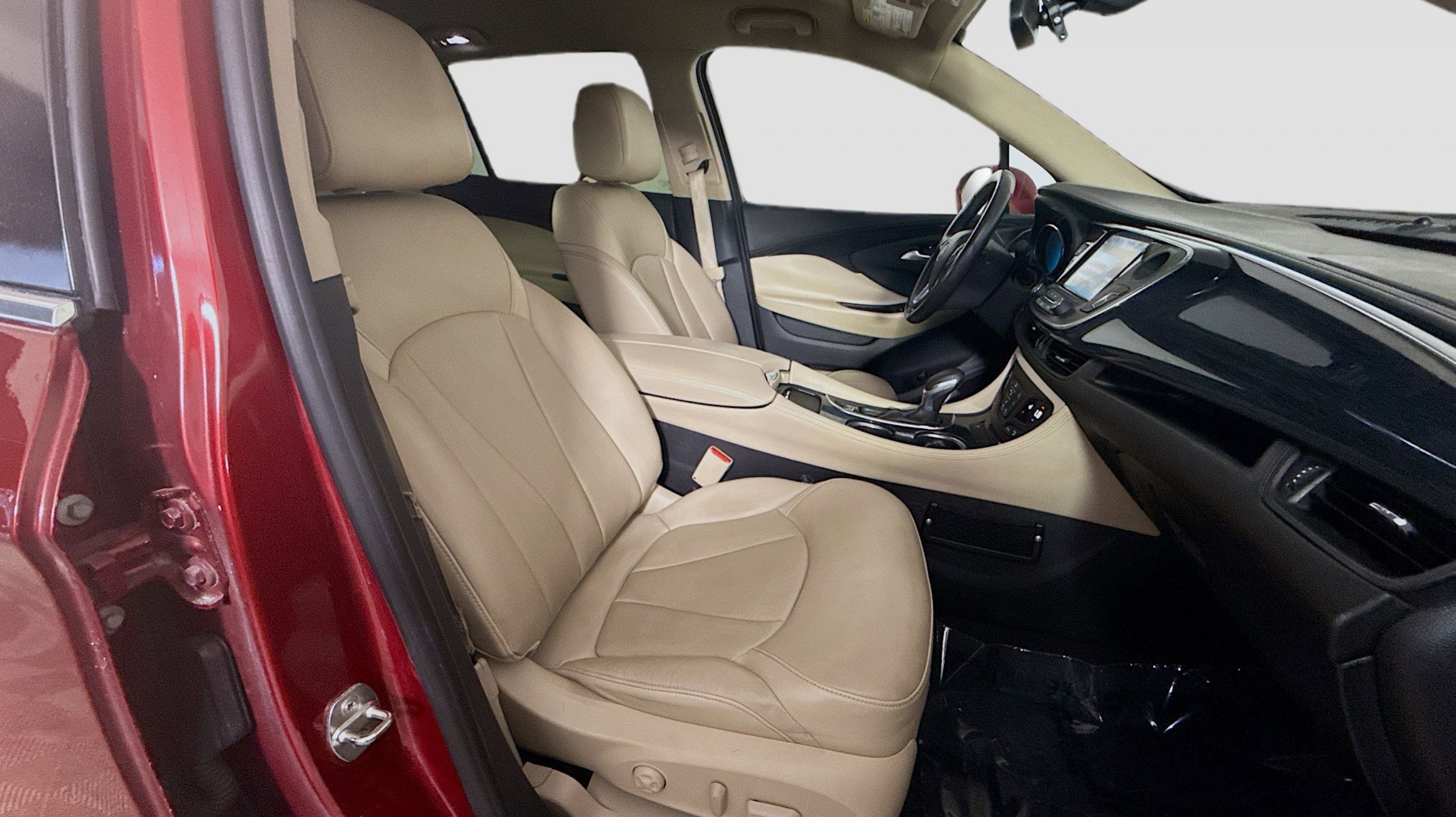 Chili Red Metallic 2017 Buick Envision Essence FWD 6-Speed Automatic 2.5L 4-Cylinder DGI DOHC VVT Preferred Equipment Group 1SL, 18 10-Spoke Polished Aluminum Wheels, 3.50 Final Drive Axle Ratio, 4-Wheel Disc Brakes, 6 Speakers, 6-Speaker Audio System Feature, ABS brakes, Air Conditioning, Alloy wheels, AM/FM radio: SiriusXM, Apple CarPlay/Android Auto, Auto-dimming door mirrors, Auto-dimming Rear-View mirror, Automatic temperature control, Brake assist, Bumpers: body-color, Compass, Delay-off headlights, Driver 8-Way Power Seat Adjuster, Driver door bin, Driver vanity mirror, Dual front impact airbags, Dual front side impact airbags, Electronic Stability Control, Emergency communication system: OnStar Guidance, Exterior Parking Camera Rear, Four wheel independent suspension, Front anti-roll bar, Front Bucket Seats, Front Center Armrest, Front dual zone A/C, Front fog lights, Front Passenger 8-Way Power Seat Adjuster, Front reading lights, Fully automatic headlights, Garage door transmitter, Heated door mirrors, Heated Driver & Front Passenger Seats, Heated front seats, Heated rear seats, Heated steering wheel, Illuminated entry, Knee airbag, Low tire pressure warning, Memory seat, Occupant sensing airbag, Outside temperature display, Overhead airbag, Overhead console, Panic alarm, Passenger door bin, Passenger vanity mirror, Perforated Leather-Appointed Seat Trim, Power door mirrors, Power driver seat, Power Liftgate, Power passenger seat, Power steering, Power windows, Premium audio system: IntelliLink, Radio data system, Radio: Buick IntelliLink AM/FM Stereo, Rear air conditioning, Rear anti-roll bar, Rear Parking Sensors, Rear reading lights, Rear seat center armrest, Rear side impact airbag, Rear window defroster, Rear window wiper, Remote keyless entry, Roof rack: rails only, Security system, SiriusXM Satellite Radio, Speed control, Speed-sensing steering, Split folding rear seat, Spoiler, Steering wheel mounted audio controls, Tachometer, Telescoping steering wheel, Tilt steering wheel, Traction control, Trip computer, Turn signal indicator mirrors, Variably intermittent wipers, Preferred Equipment Group 1SL.