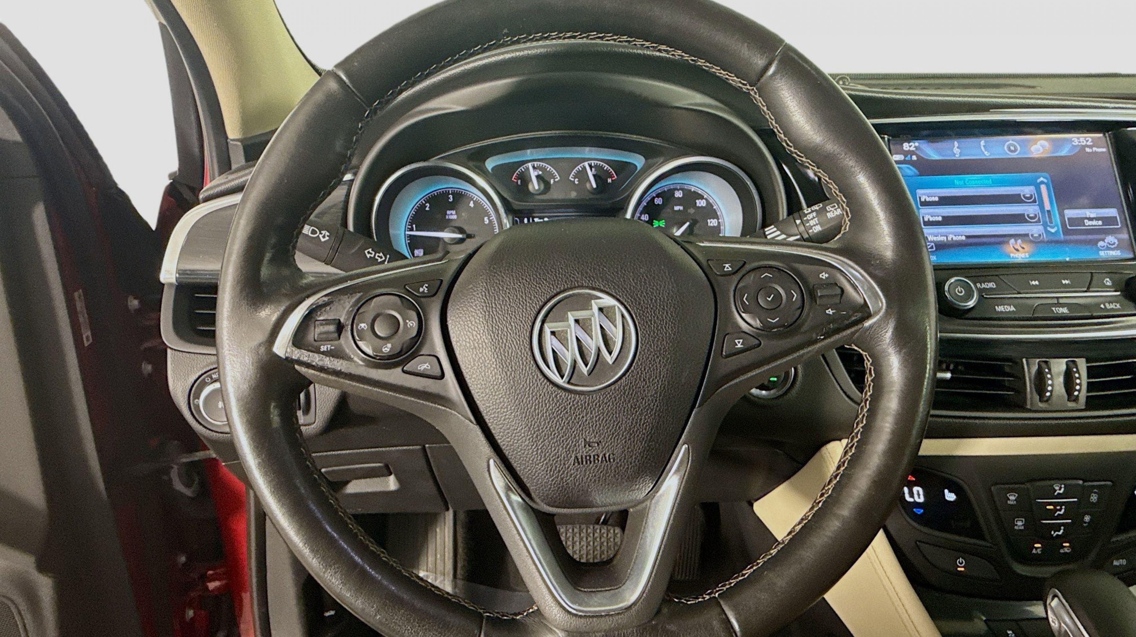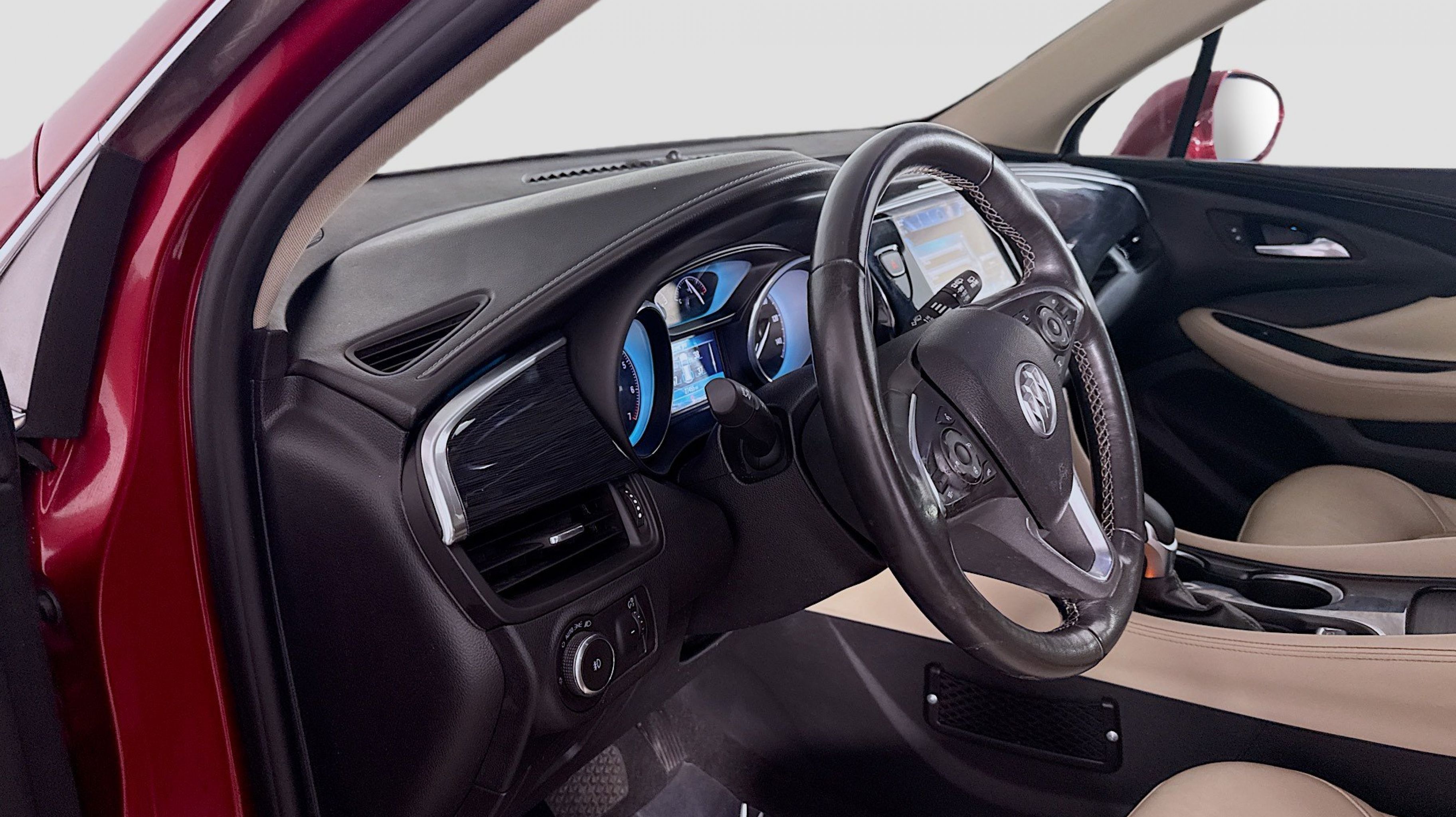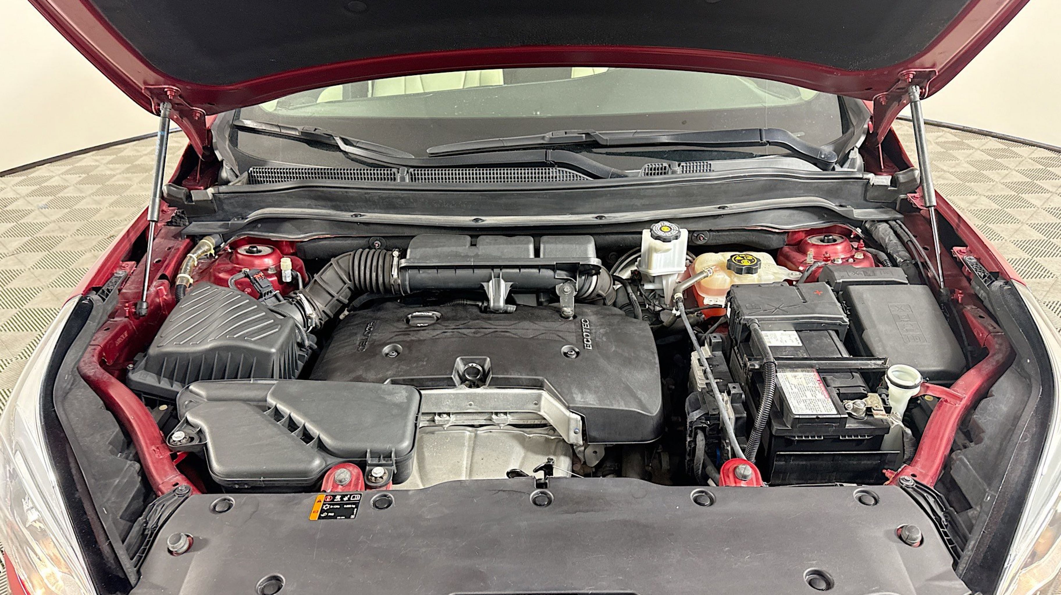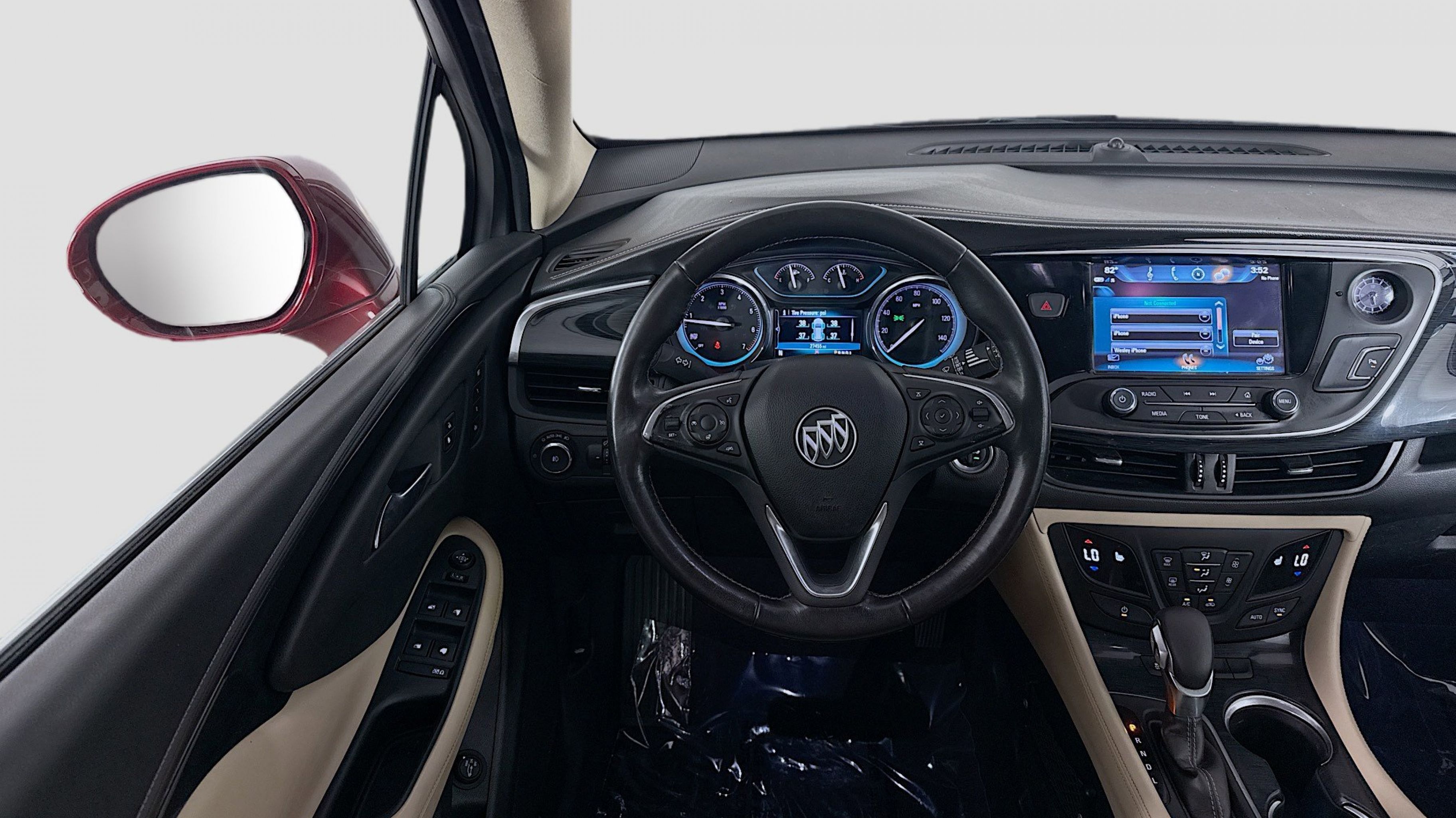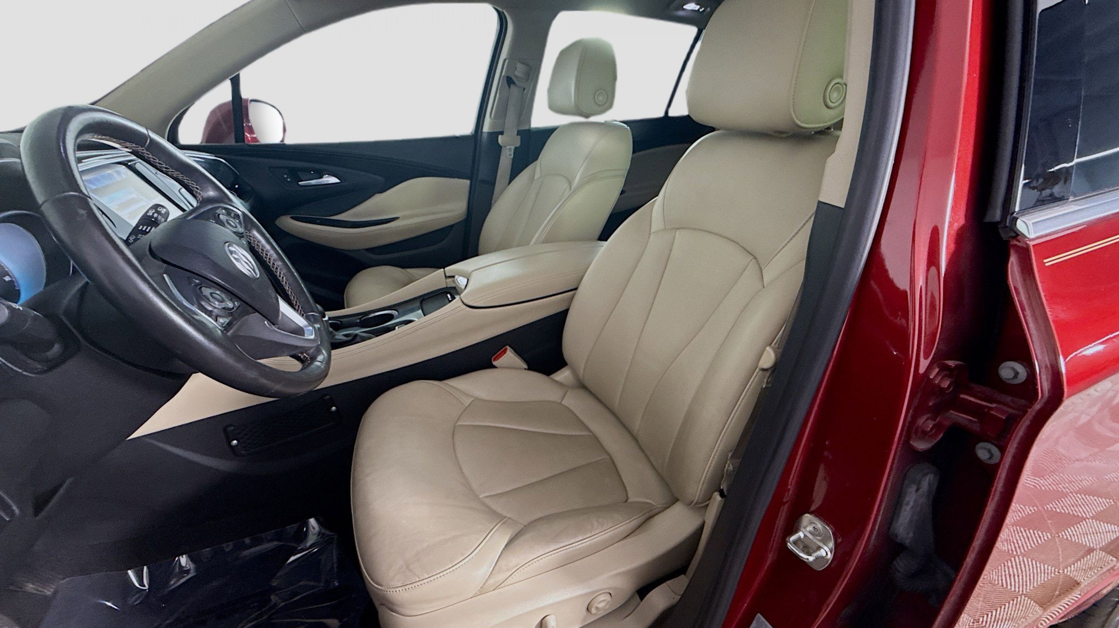 Chili Red Metallic 2017 Buick Envision Essence FWD 6-Speed Automatic 2.5L 4-Cylinder DGI DOHC VVT Preferred Equipment Group 1SL, 18 10-Spoke Polished Aluminum Wheels, 3.50 Final Drive Axle Ratio, 4-Wheel Disc Brakes, 6 Speakers, 6-Speaker Audio System Feature, ABS brakes, Air Conditioning, Alloy wheels, AM/FM radio: SiriusXM, Apple CarPlay/Android Auto, Auto-dimming door mirrors, Auto-dimming Rear-View mirror, Automatic temperature control, Brake assist, Bumpers: body-color, Compass, Delay-off headlights, Driver 8-Way Power Seat Adjuster, Driver door bin, Driver vanity mirror, Dual front impact airbags, Dual front side impact airbags, Electronic Stability Control, Emergency communication system: OnStar Guidance, Exterior Parking Camera Rear, Four wheel independent suspension, Front anti-roll bar, Front Bucket Seats, Front Center Armrest, Front dual zone A/C, Front fog lights, Front Passenger 8-Way Power Seat Adjuster, Front reading lights, Fully automatic headlights, Garage door transmitter, Heated door mirrors, Heated Driver & Front Passenger Seats, Heated front seats, Heated rear seats, Heated steering wheel, Illuminated entry, Knee airbag, Low tire pressure warning, Memory seat, Occupant sensing airbag, Outside temperature display, Overhead airbag, Overhead console, Panic alarm, Passenger door bin, Passenger vanity mirror, Perforated Leather-Appointed Seat Trim, Power door mirrors, Power driver seat, Power Liftgate, Power passenger seat, Power steering, Power windows, Premium audio system: IntelliLink, Radio data system, Radio: Buick IntelliLink AM/FM Stereo, Rear air conditioning, Rear anti-roll bar, Rear Parking Sensors, Rear reading lights, Rear seat center armrest, Rear side impact airbag, Rear window defroster, Rear window wiper, Remote keyless entry, Roof rack: rails only, Security system, SiriusXM Satellite Radio, Speed control, Speed-sensing steering, Split folding rear seat, Spoiler, Steering wheel mounted audio controls, Tachometer, Telescoping steering wheel, Tilt steering wheel, Traction control, Trip computer, Turn signal indicator mirrors, Variably intermittent wipers, Preferred Equipment Group 1SL.