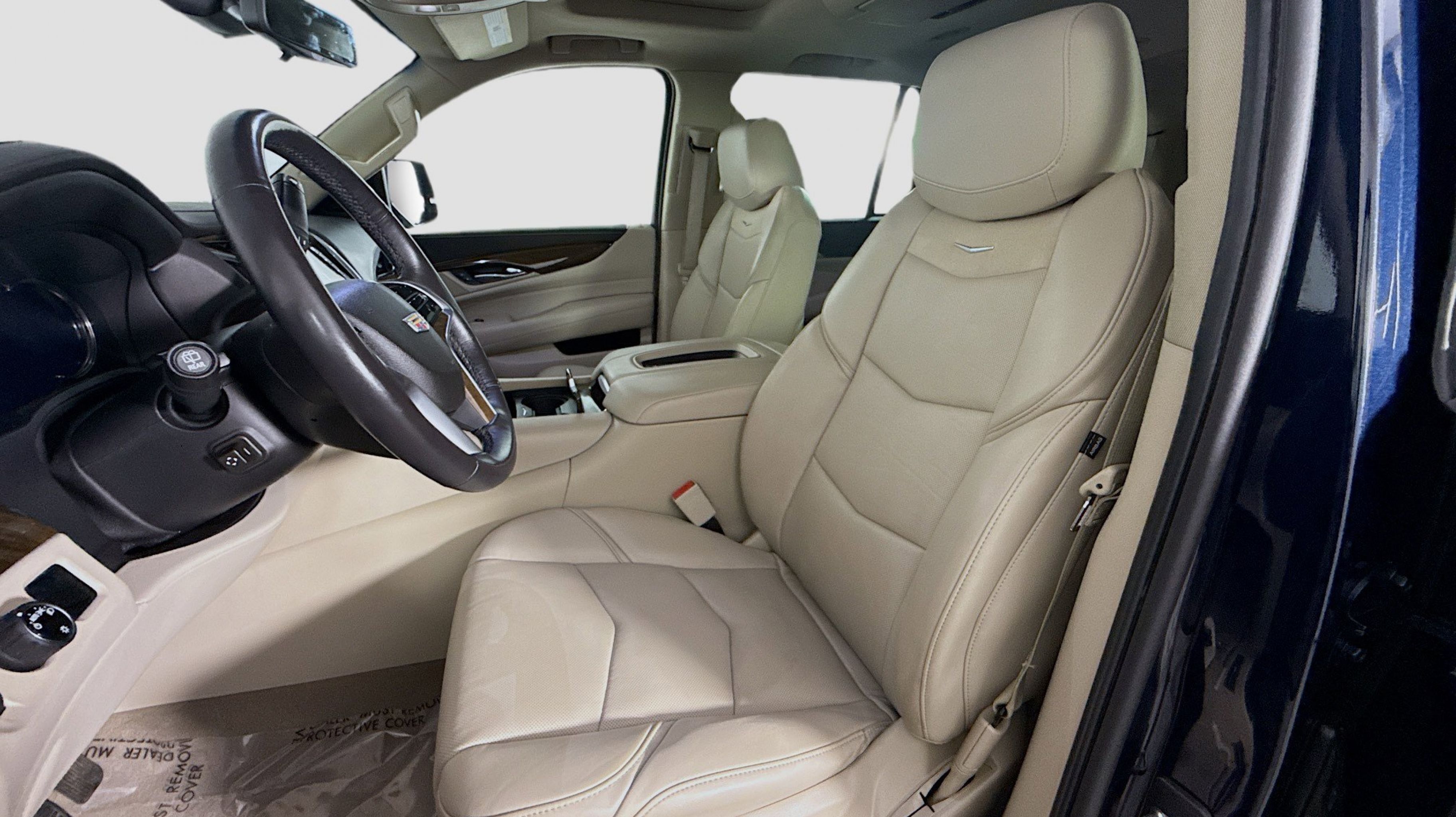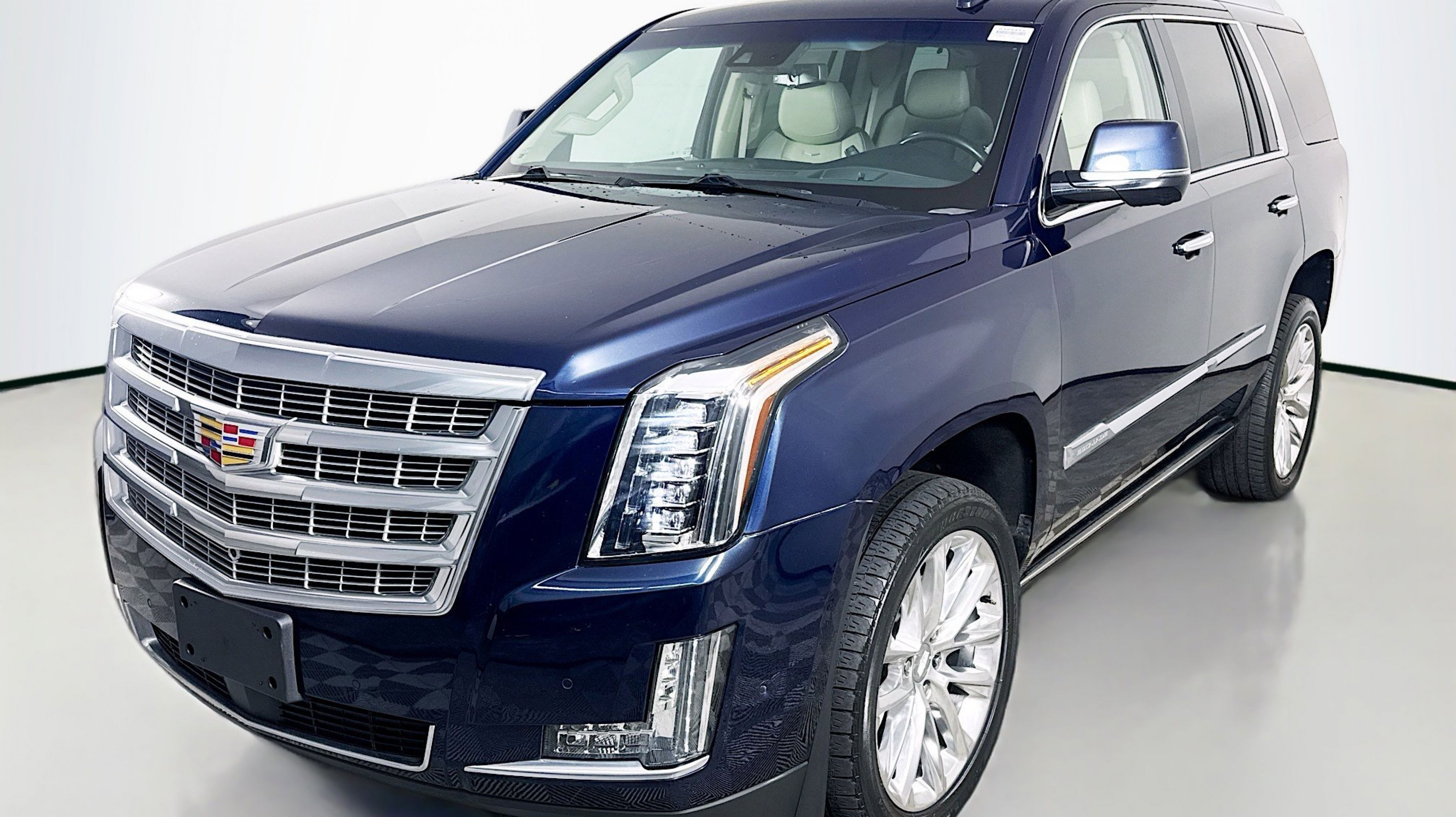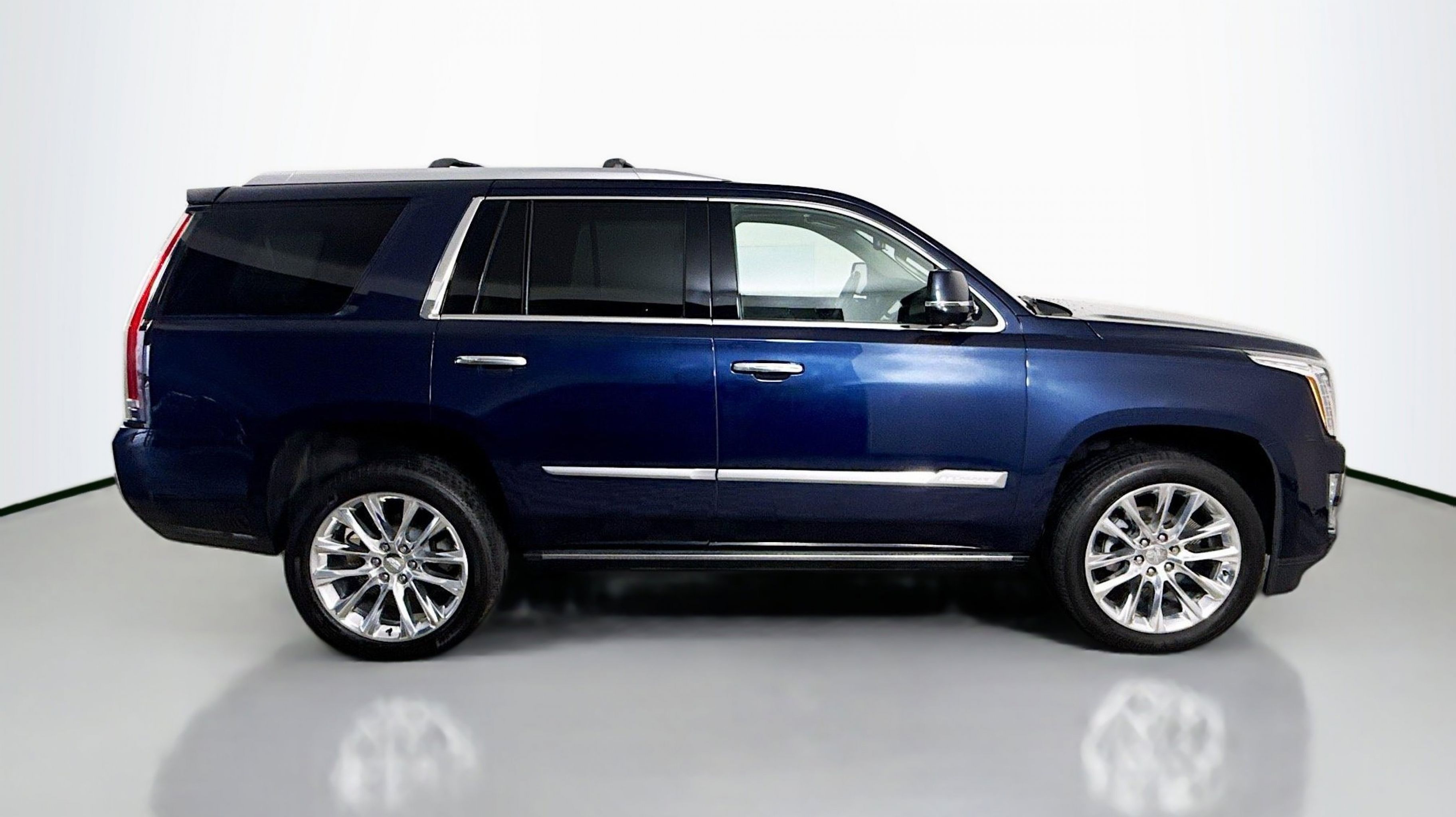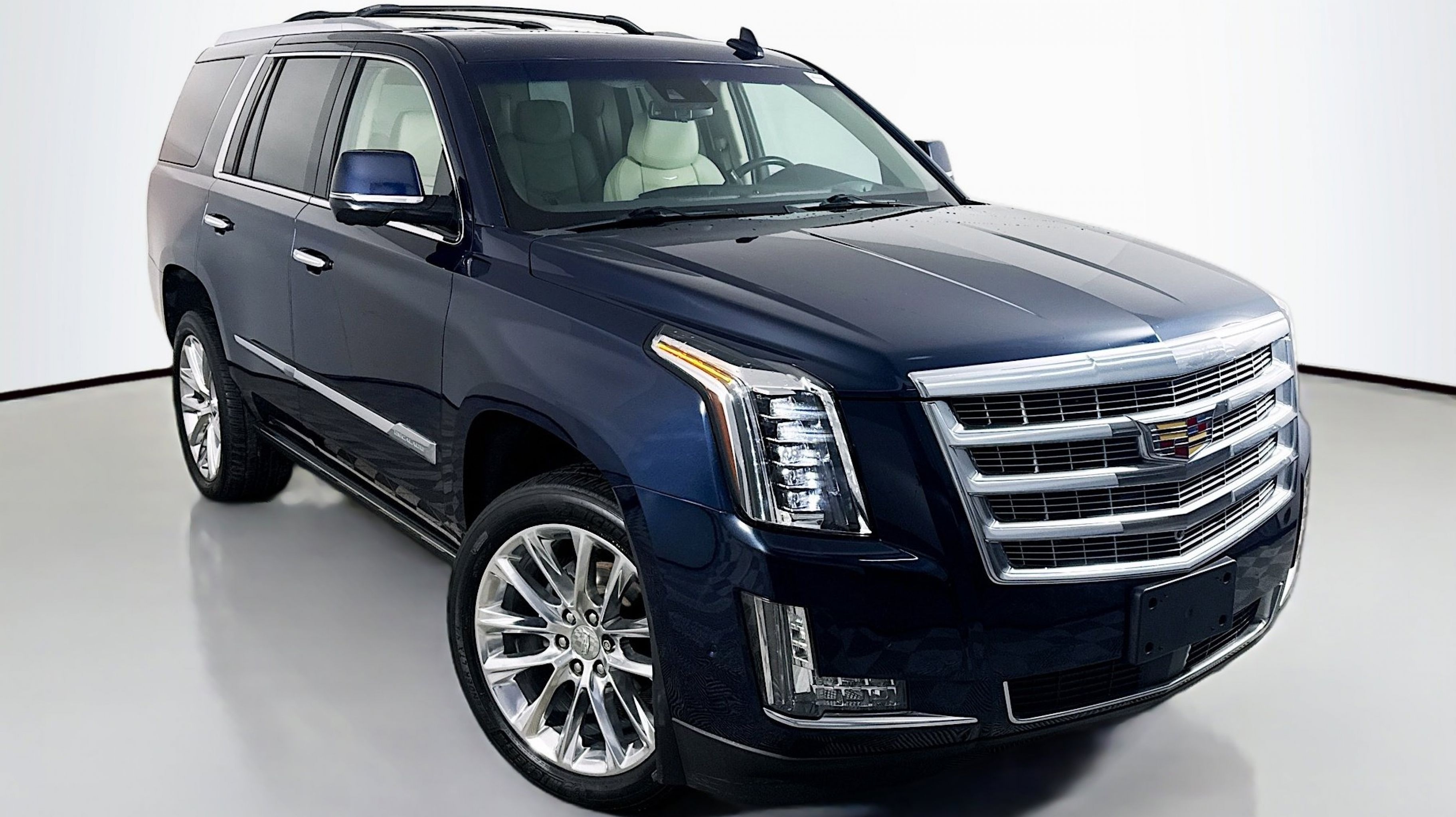 Dark Adriatic Blue Metallic 2018 Cadillac Escalade Premium Luxury RWD 10-Speed Automatic with Overdrive 6.2L Variable Valve Timing V8 SIDI Shale With Jet Black Accents Leather, Adaptive Full-Speed Range Cruise Control, Automatic Safety Belt Tightening, Driver Assist Package, Electronic Powered Parking Brake, Forward Collision Alert, Forward/Reverse Automatic Braking, Illuminated Door Handles, Inclination Sensor, IntelliBeam Automatic High Beam On/Off, Lane Change Alert w/Side Blind Zone Alert, Lane Keep Assist w/Lane Departure Warning, Power Tilt-Sliding Sunroof w/Express-Open/Close, Preferred Equipment Group 1SC, Rear Camera Mirror, Rear Camera Washer, Rear Cross-Traffic Alert, Rear Seat Entertainment System, Reconfigurable 4-Color Head-Up Display, Safety Alert Seat, Second Row Bucket Seats, Theft-Deterrent Alarm System, Theft-Deterrent Package, VAC Power 17 Disc Brakes, Vehicle Interior Movement Sensor, 12-Way Power Front Passenger Seat Adjuster, 16 Speakers, 2-Position Memory For Driver's Seat Adjuster, 3.23 Axle Ratio, 3rd row seats: split-bench, 4-Wheel Disc Brakes, A/V remote, ABS brakes, Adaptive suspension, Adjustable pedals, Air Conditioning, Alloy wheels, AM/FM radio: SiriusXM, Apple CarPlay/Android Auto, Auto High-beam Headlights, Auto tilt-away steering wheel, Auto-dimming door mirrors, Auto-leveling suspension, Automatic temperature control, Black Integrated Roof Rack Rails (LPO), Bodyside moldings, Bose Centerpoint 16 Speaker Surround Sound System, Brake assist, Bumpers: body-color, CD player, Compass, Delay-off headlights, Driver door bin, Driver vanity mirror, Dual front impact airbags, Dual front side impact airbags, DVD-Audio, Electronic Stability Control, Emergency communication system: OnStar and Cadillac connected services capable, Exterior Parking Camera Rear, Front anti-roll bar, Front Bucket Seats, Front Center Armrest w/Storage, Front dual zone A/C, Front reading lights, Front wheel independent suspension, Fully automatic headlights, Galvano Surround Grille w/Silver Painted Mesh, Garage door transmitter, HD Radio, Headphones, Heads-Up Display, Heated & Cooled Front Bucket Seats, Heated door mirrors, Heated front seats, Heated rear seats, Heated steering wheel, Illuminated entry, Leather Seating Surfaces, Leather Shift Knob, Leather steering wheel, Low tire pressure warning, Magnetic Ride Control Suspension, Memory seat, Navigation System, NavTraffic, Occupant sensing airbag, Outside temperature display, Overhead airbag, Overhead console, Panic alarm, PANORAMA SUNROOF, Passenger door bin, Passenger vanity mirror, Pedal memory, Power door mirrors, Power driver seat, Power Liftgate, Power passenger seat, Power steering, Power windows, Power-Retractable Assist Steps, Radio data system, Radio: AM/FM Cadillac User Experience w/Nav, Rain sensing wipers, Rear air conditioning, Rear anti-roll bar, Rear audio controls, Rear reading lights, Rear window defroster, Rear window wiper, Remote keyless entry, Roof rack: rails only, Security system, SiriusXM Satellite Radio, Speed control, Split folding rear seat, Spoiler, Steering wheel memory, Steering wheel mounted audio controls, Tachometer, Telescoping steering wheel, Tilt steering wheel, Traction control, Trip computer, Turn signal indicator mirrors, Variably intermittent wipers, Ventilated front seats, Wheel Locks, Wheels: 22 x 9 12-Spoke Polished Aluminum, Wheels: 22 x 9 7-Spoke Aluminum w/Premium Paint, Shale With Jet Black Accents Leather, Adaptive F