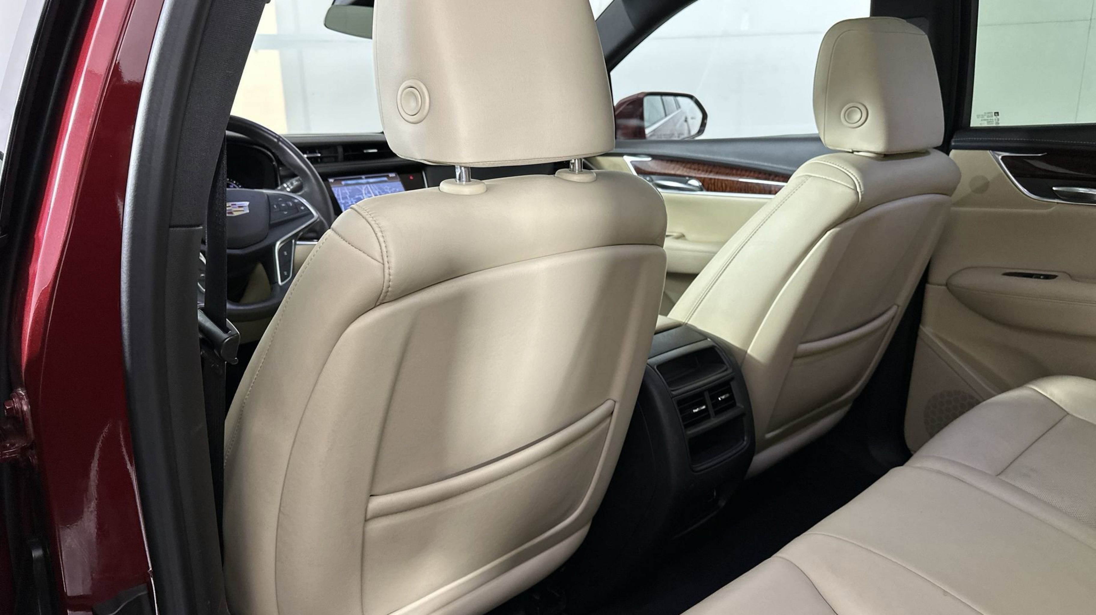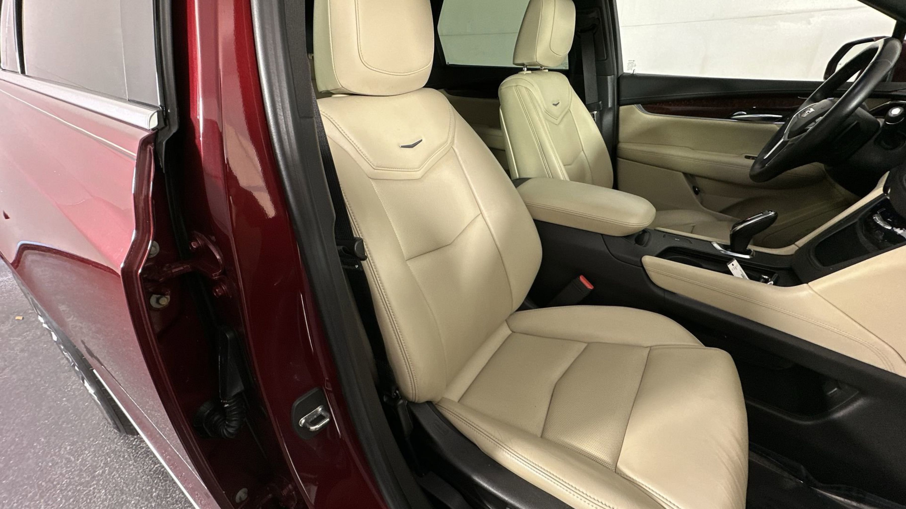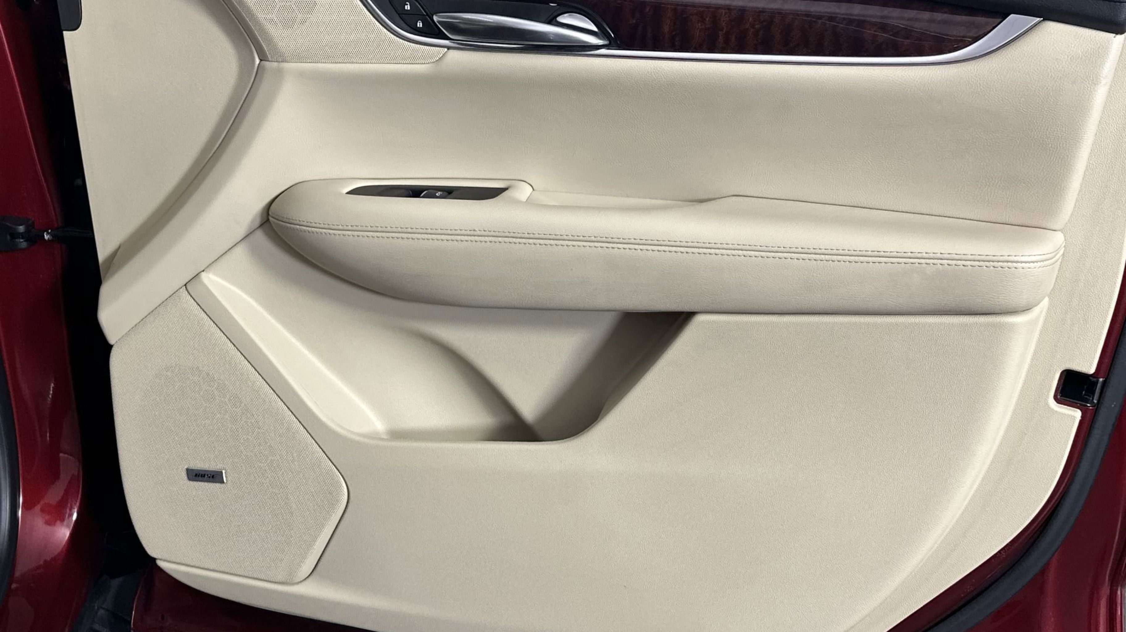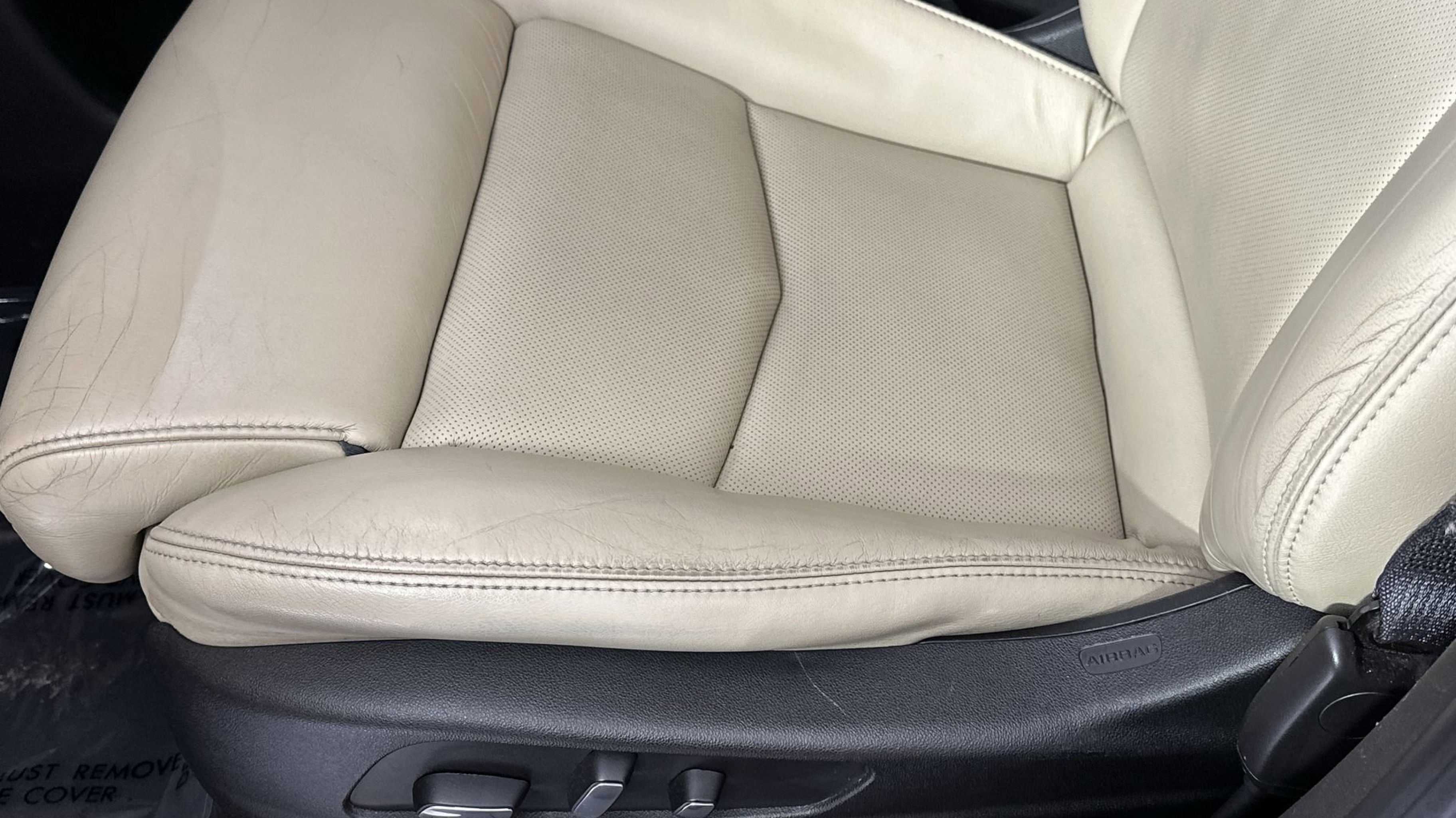 - SAHARA BEIGE LEATHER SEATING SURFACES WITH MINI-PERFORATED INSERTS with Jet Black accents (With natural Sapele high-gloss wood trim.)