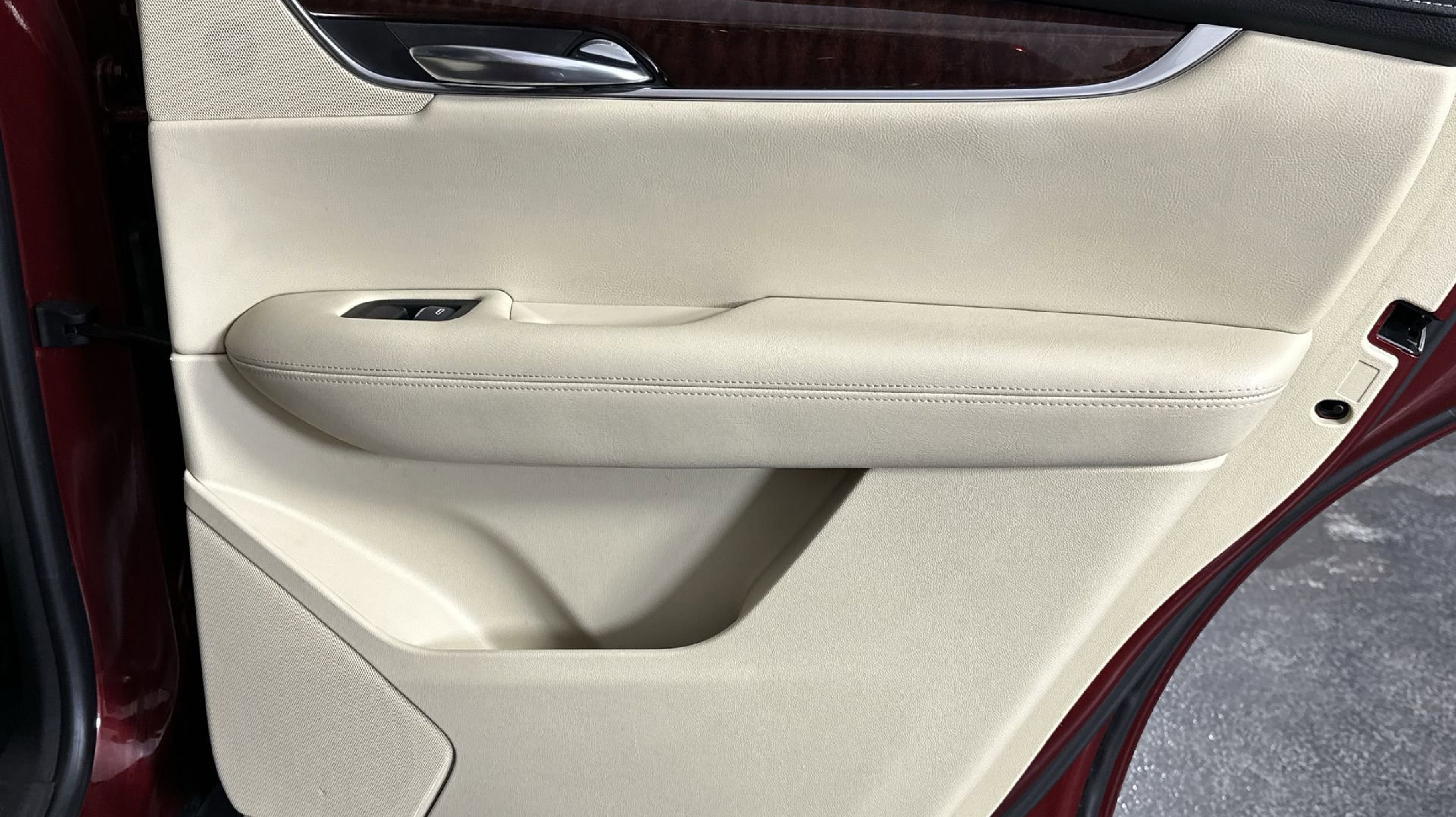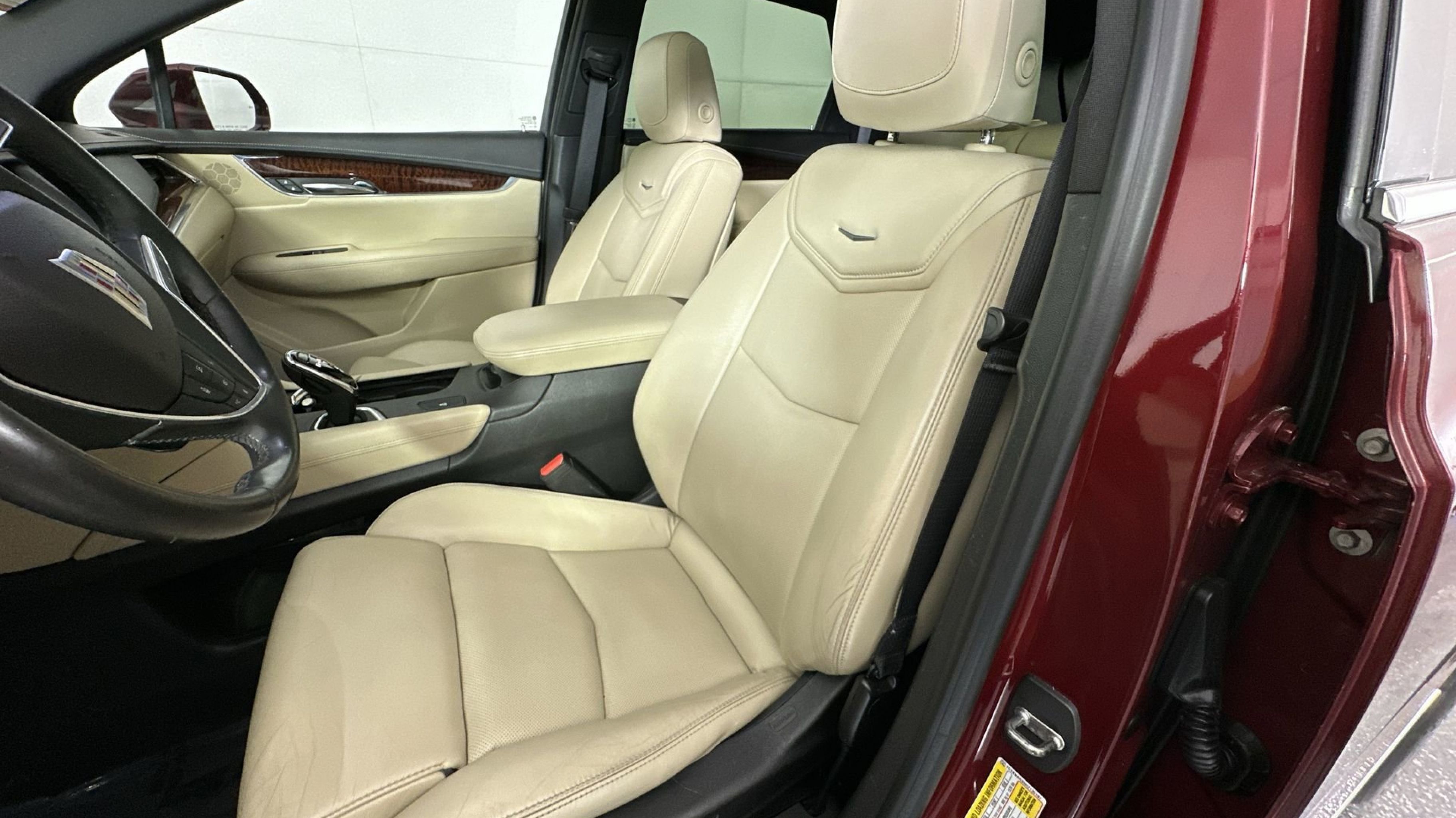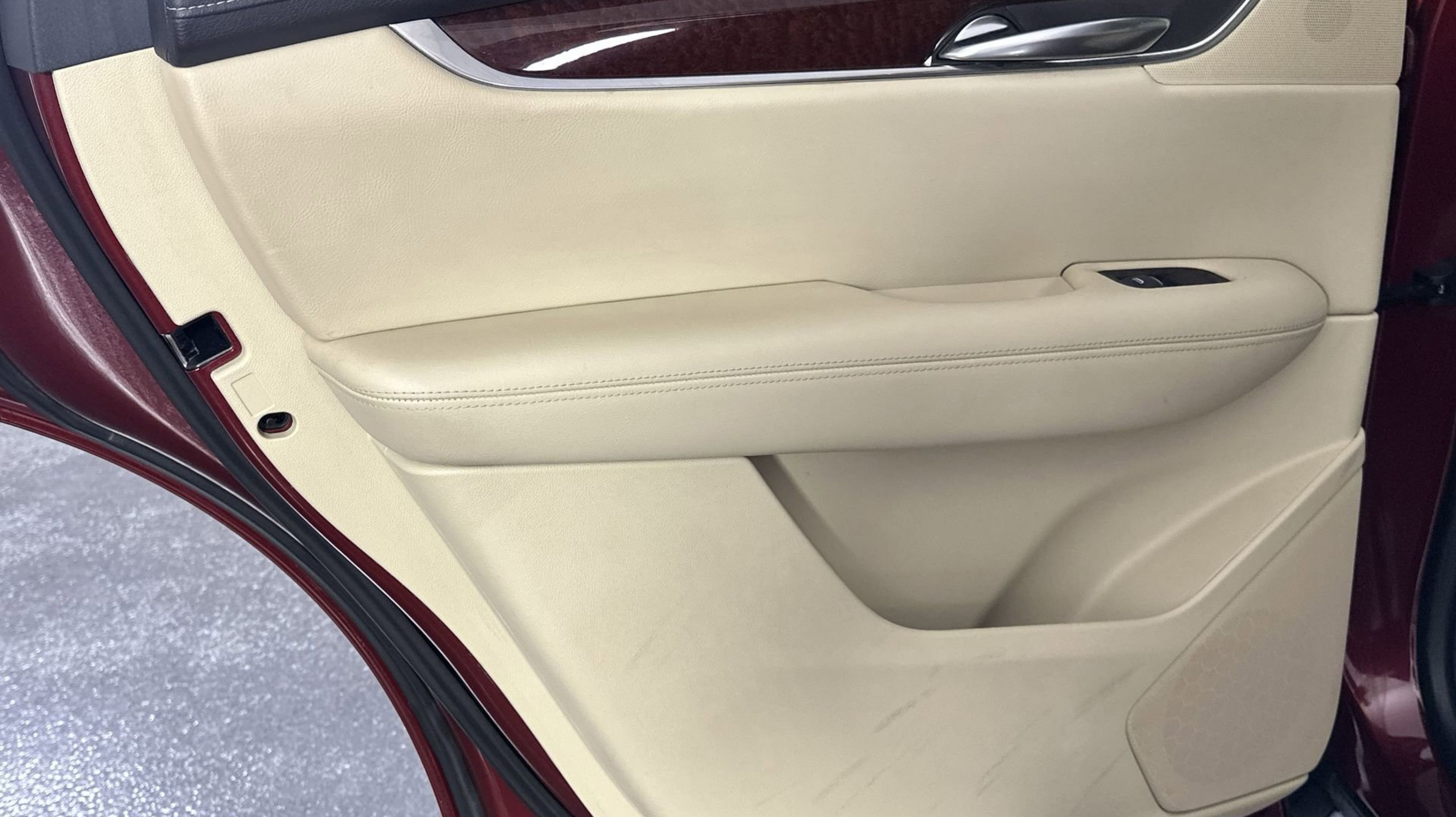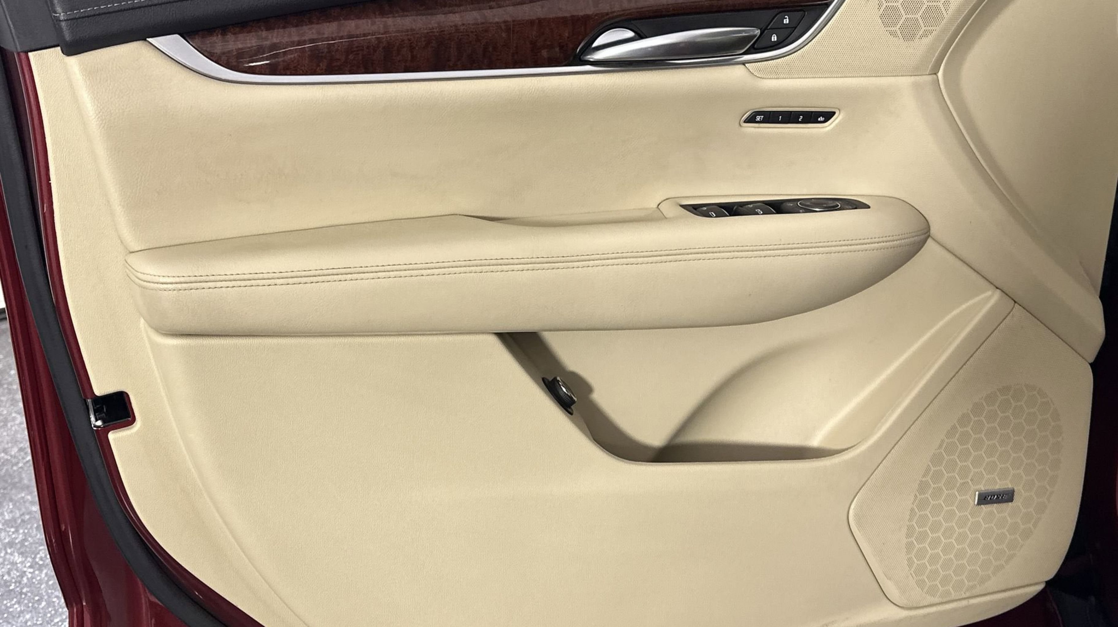 - SAHARA BEIGE LEATHER SEATING SURFACES WITH MINI-PERFORATED INSERTS with Jet Black accents (With natural Sapele high-gloss wood trim.)