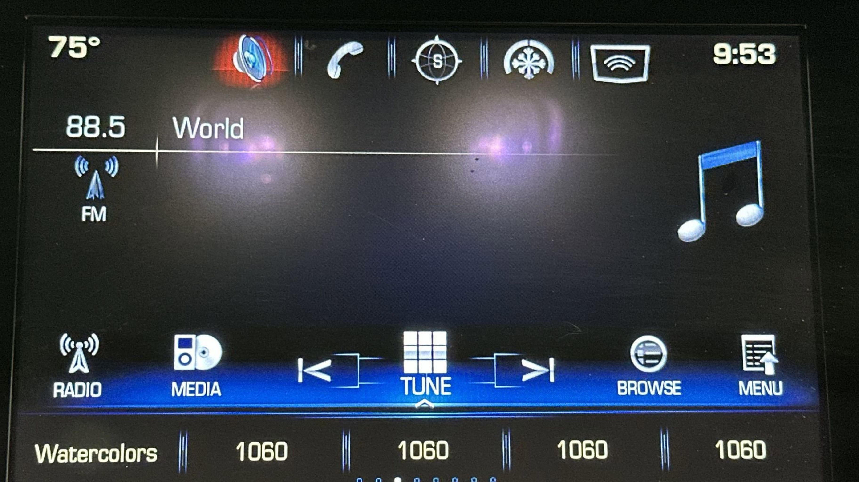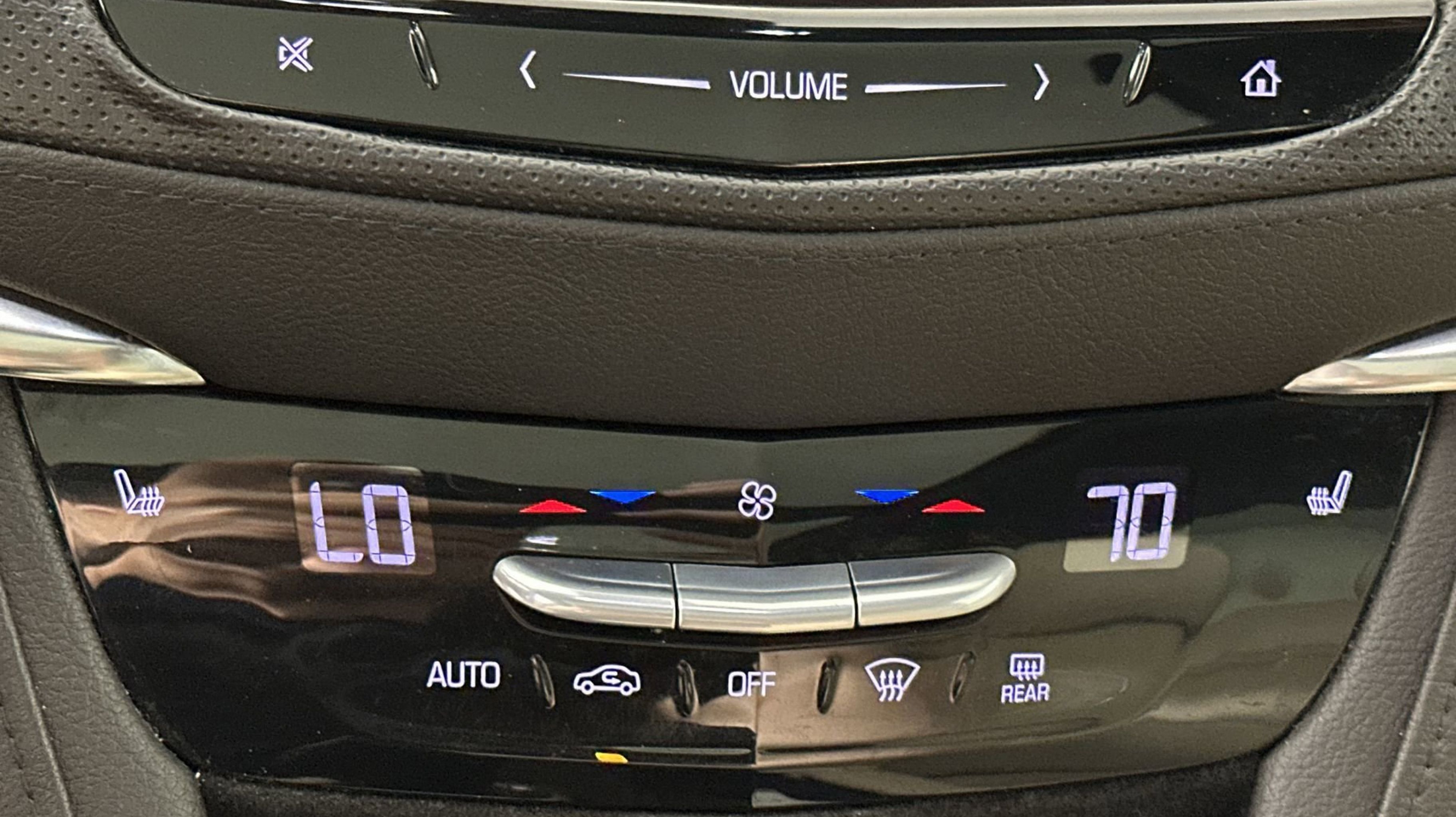 - CADILLAC CUE INFORMATION AND MEDIA CONTROL SYSTEM WITH EMBEDDED NAVIGATION AM/FM STEREO with 8 diagonal color information display four USB ports two auxiliary power outlets auxiliary input jack Natural Voice Recognition and Phone Integration for Apple CarPlay and Android Auto capability for compatible phone