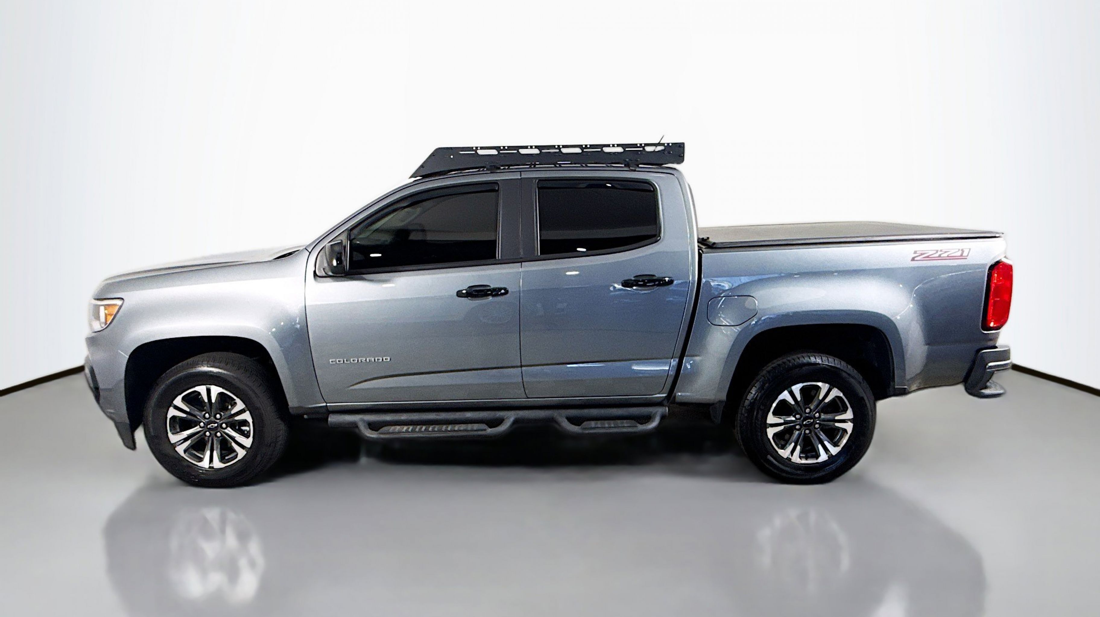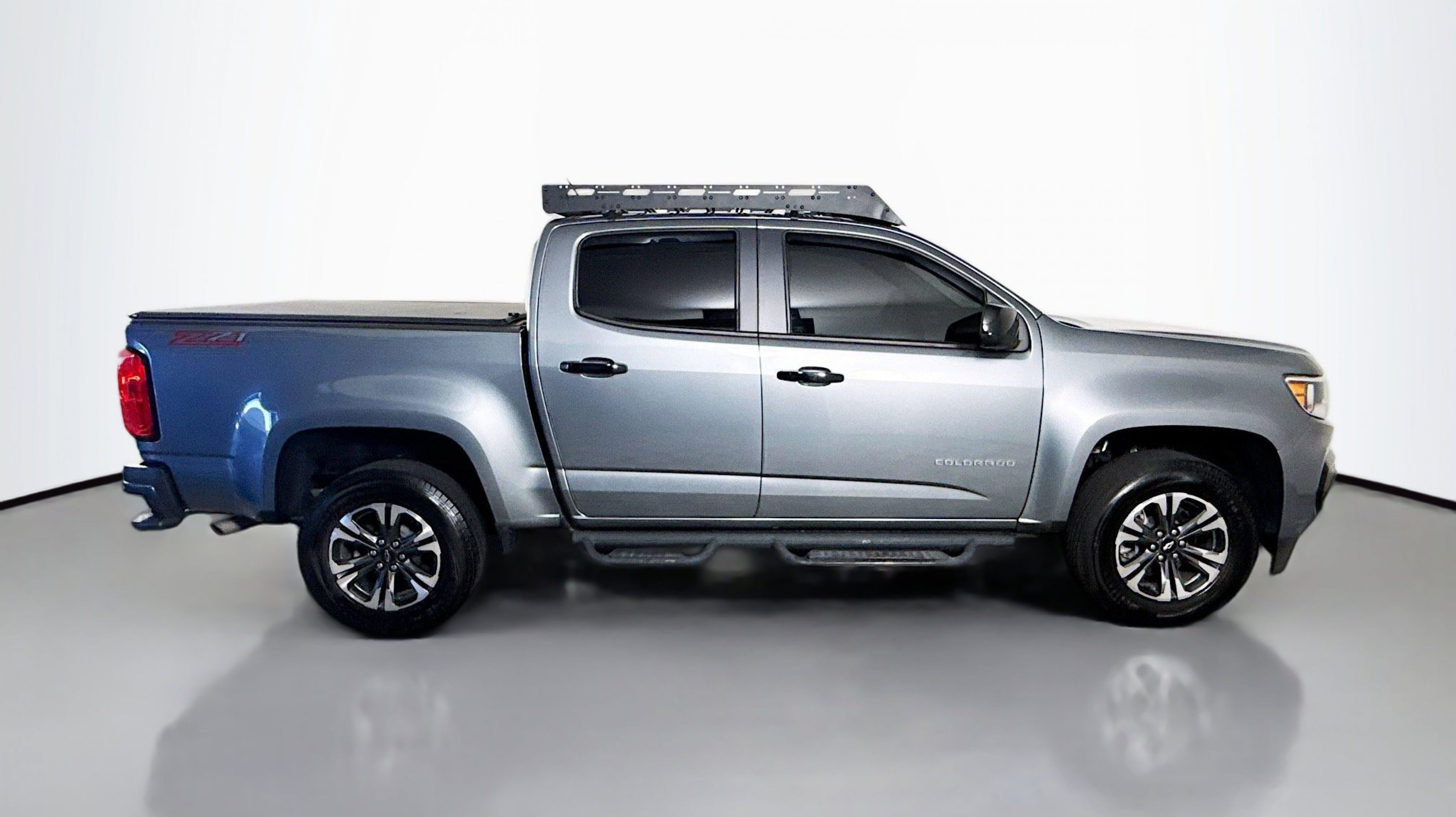 Satin Steel Metallic 2022 Chevrolet Colorado Z71 RWD 8-Speed Automatic V6 Heavy-Duty Trailering Package, Hitch Guidance, Preferred Equipment Group 2Z7, Tow/Haul Mode, Ultrasonic Rear Park Assist, 1st & 2nd Row All-Weather Floor Liner (LPO), 3.42 Rear Axle Ratio, 4-Wheel Disc Brakes, 6 Speakers, 6-Speaker Audio System Feature, ABS brakes, Air Conditioning, Alloy wheels, AM/FM radio: SiriusXM, Apple CarPlay/Android Auto, Auto-dimming Rear-View mirror, Automatic temperature control, Bumpers: body-color, Cloth/Leatherette Seat Trim, Compass, Delay-off headlights, Driver 6-Way Power Seat Adjuster, Driver door bin, Driver vanity mirror, Dual front impact airbags, Dual front side impact airbags, Electronic Stability Control, Exterior Parking Camera Rear, Front anti-roll bar, Front Bucket Seats, Front Center Armrest, Front fog lights, Front reading lights, Front wheel independent suspension, Fully automatic headlights, HD Radio, Heated door mirrors, Heated steering wheel, Illuminated entry, Low tire pressure warning, Not Equipped w/Rear Park Assist, Occupant sensing airbag, Outside temperature display, Overhead airbag, Overhead console, Panic alarm, Passenger door bin, Passenger vanity mirror, Power door mirrors, Power Driver Lumbar Control Seat Adjuster, Power driver seat, Power steering, Power windows, Premium audio system: Chevrolet Infotainment 3 Plus, Radio data system, Radio: Chevrolet Infotainment 3 Plus System, Rear reading lights, Rear seat center armrest, Rear step bumper, Rear window defroster, Remote keyless entry, Security system, SiriusXM Radio, Speed control, Speed-sensing steering, Steering wheel mounted audio controls, Tachometer, Telescoping steering wheel, Tilt steering wheel, Traction control, Trip computer, Variably intermittent wipers, Wheels: 17 x 8 Bright Machined Aluminum, Wireless Charging for Compatible Cell Phones, Heavy-Duty Trailering Package, Hitch Guidance, Preferred Equipment Group 2Z7, Tow/Haul Mode, Ultrasonic Rear Park Assist.
