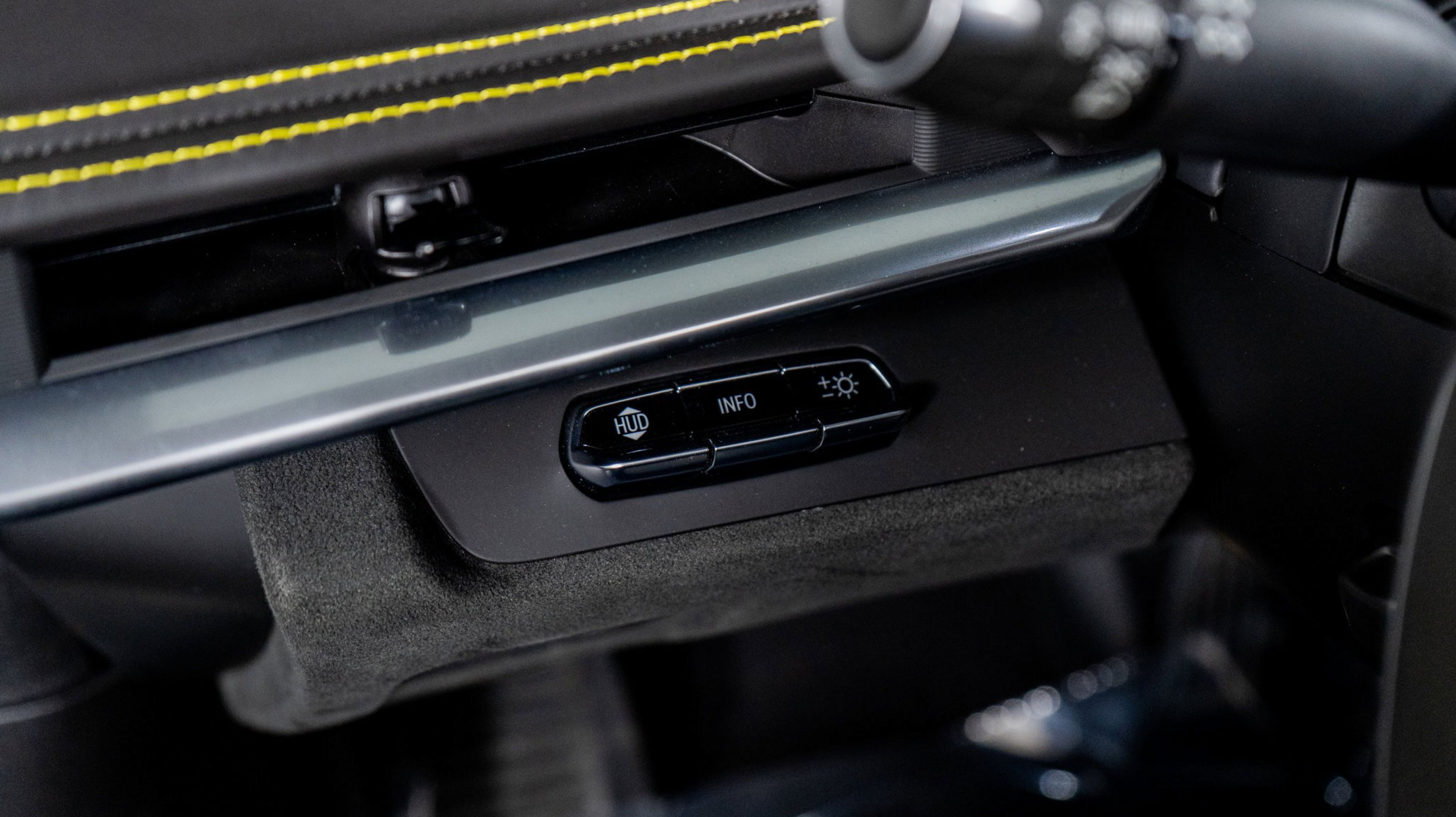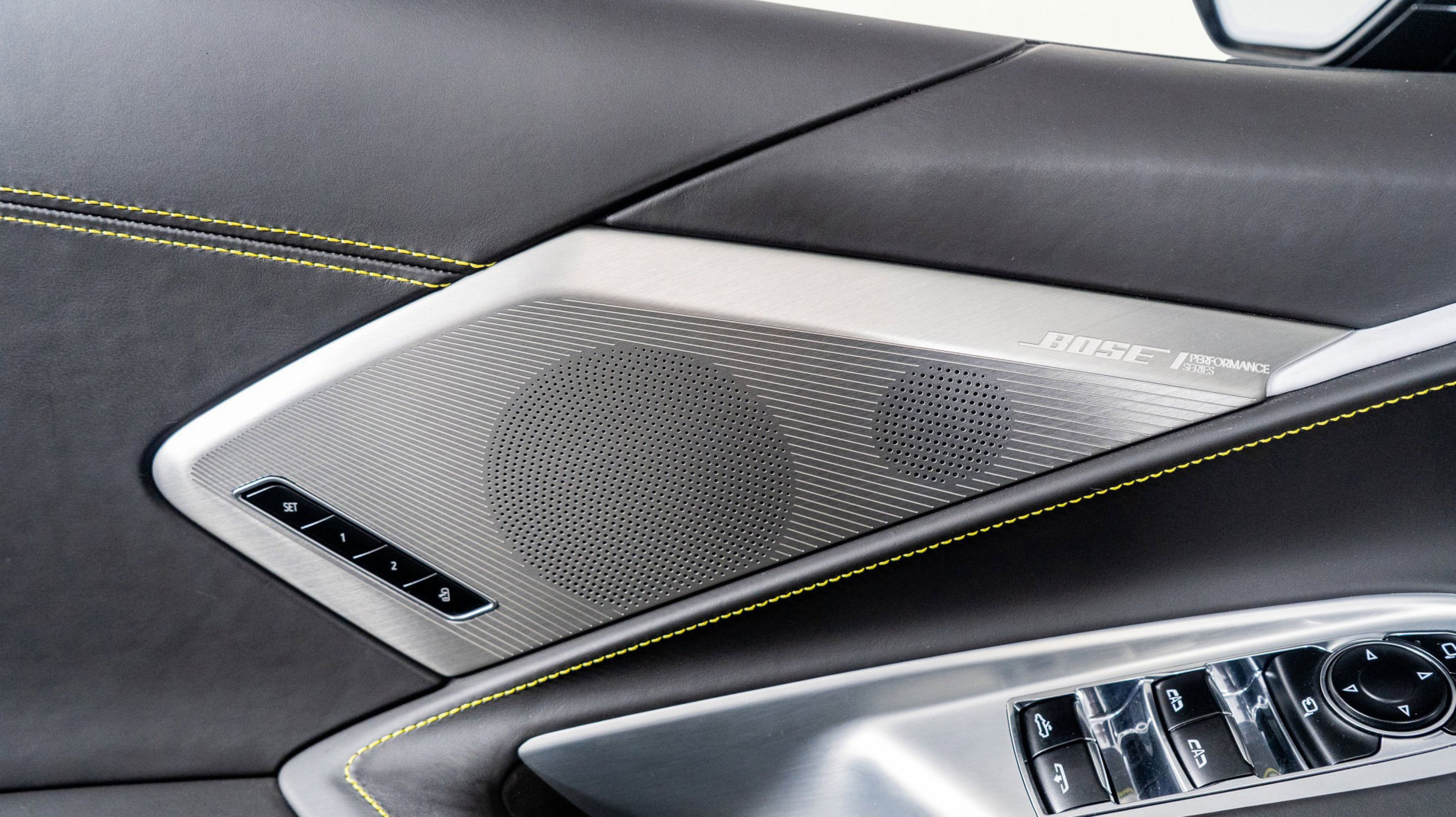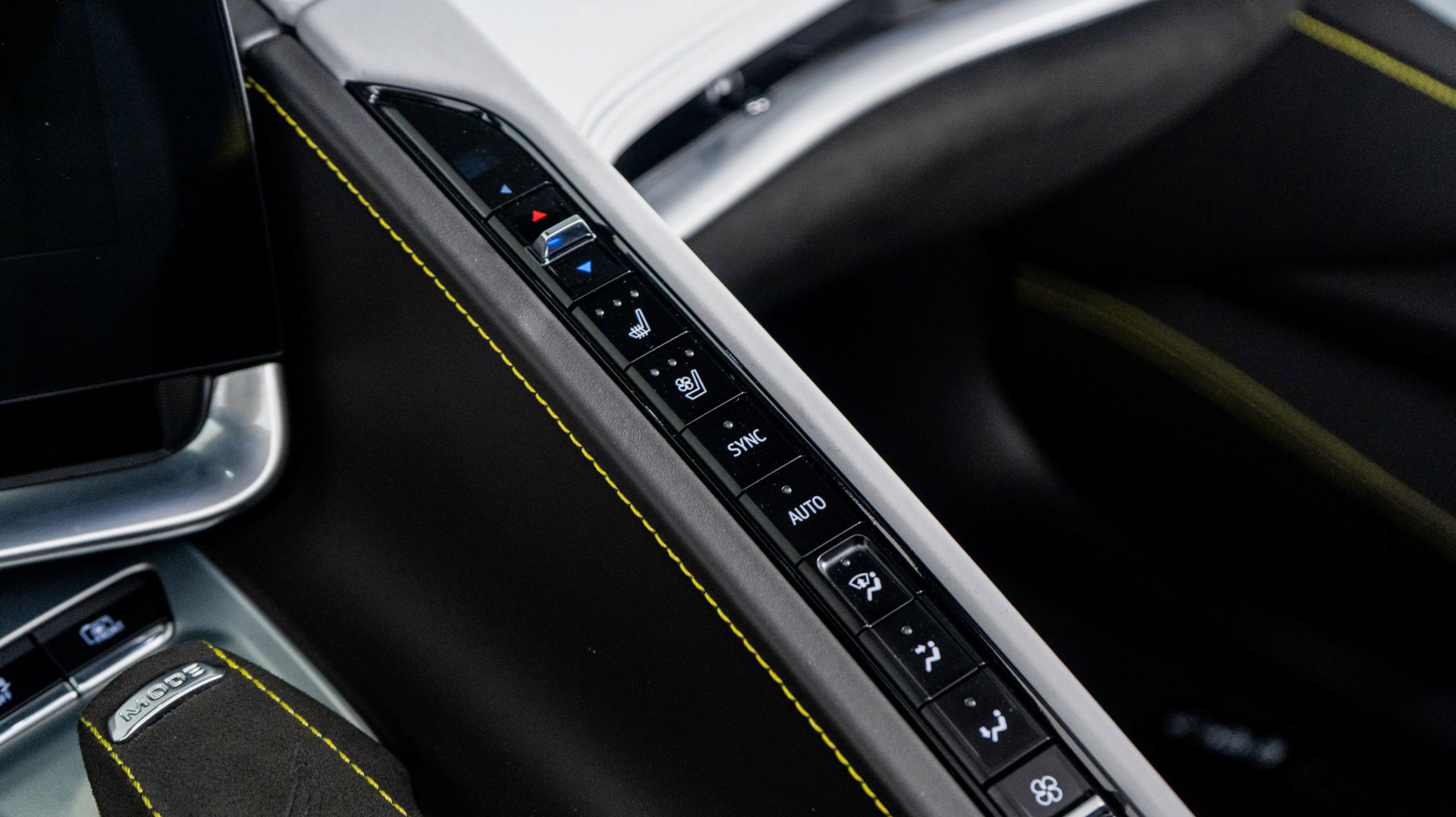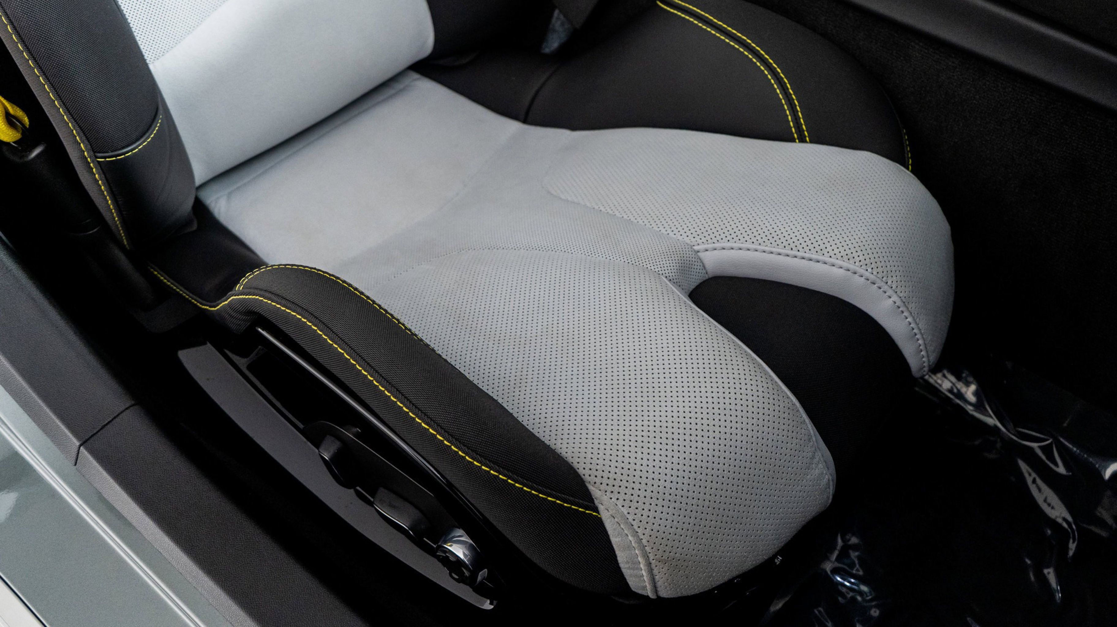 - SKY COOL GRAY/STRIKE YELLOW NAPA LEATHER SEATING SURFACES WITH PERFORATED SUEDED MICROFIBER INSERTS