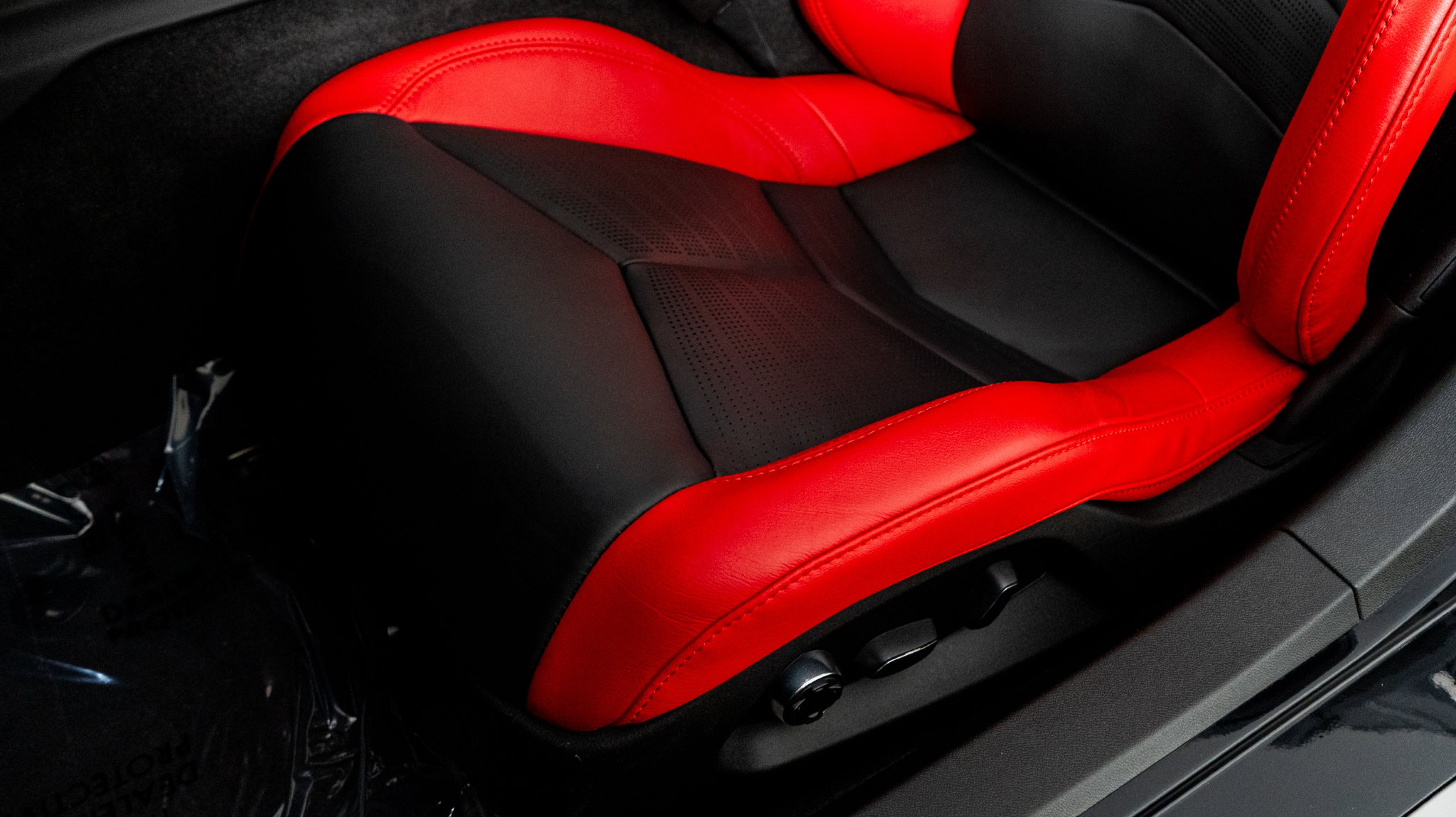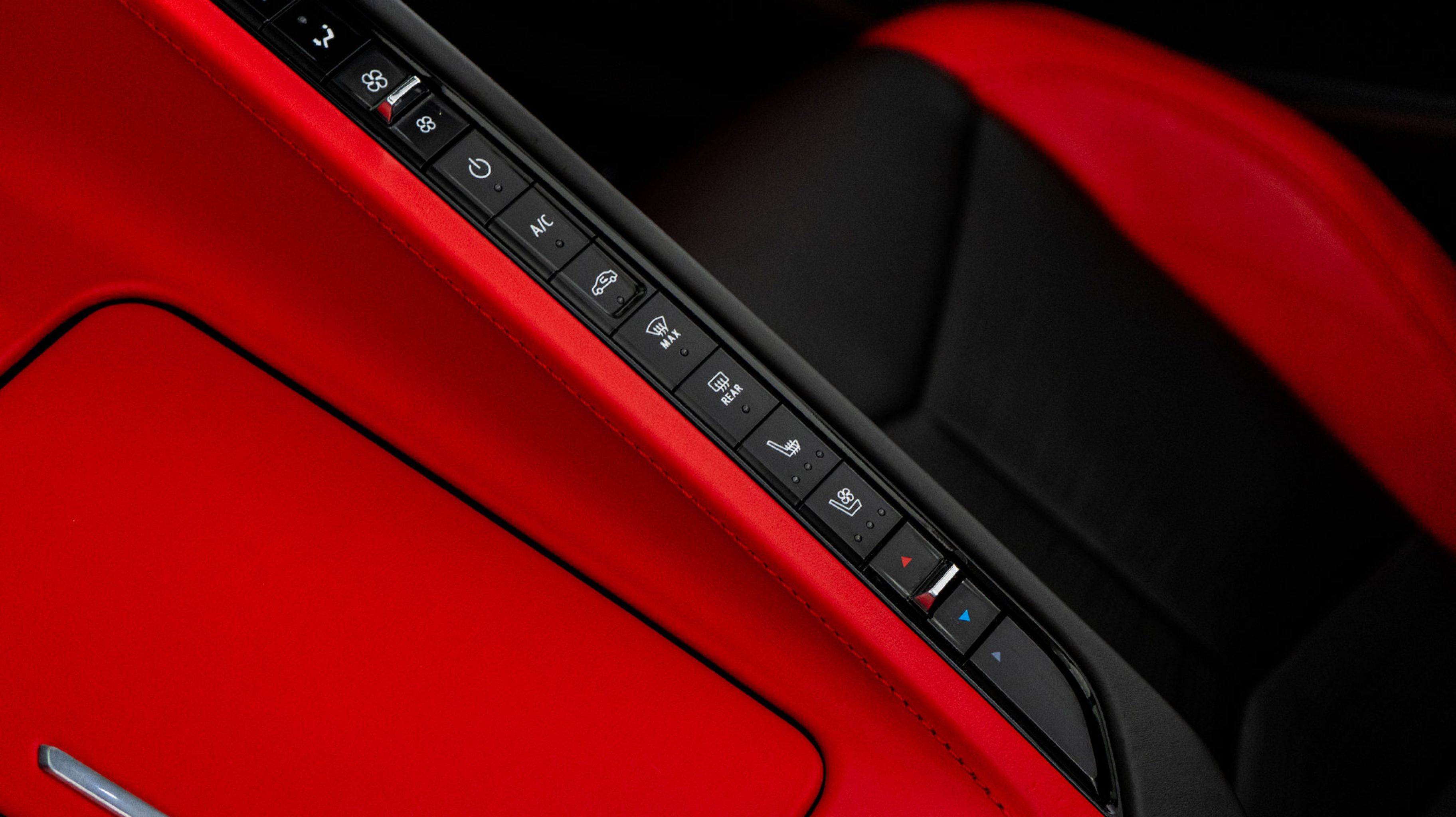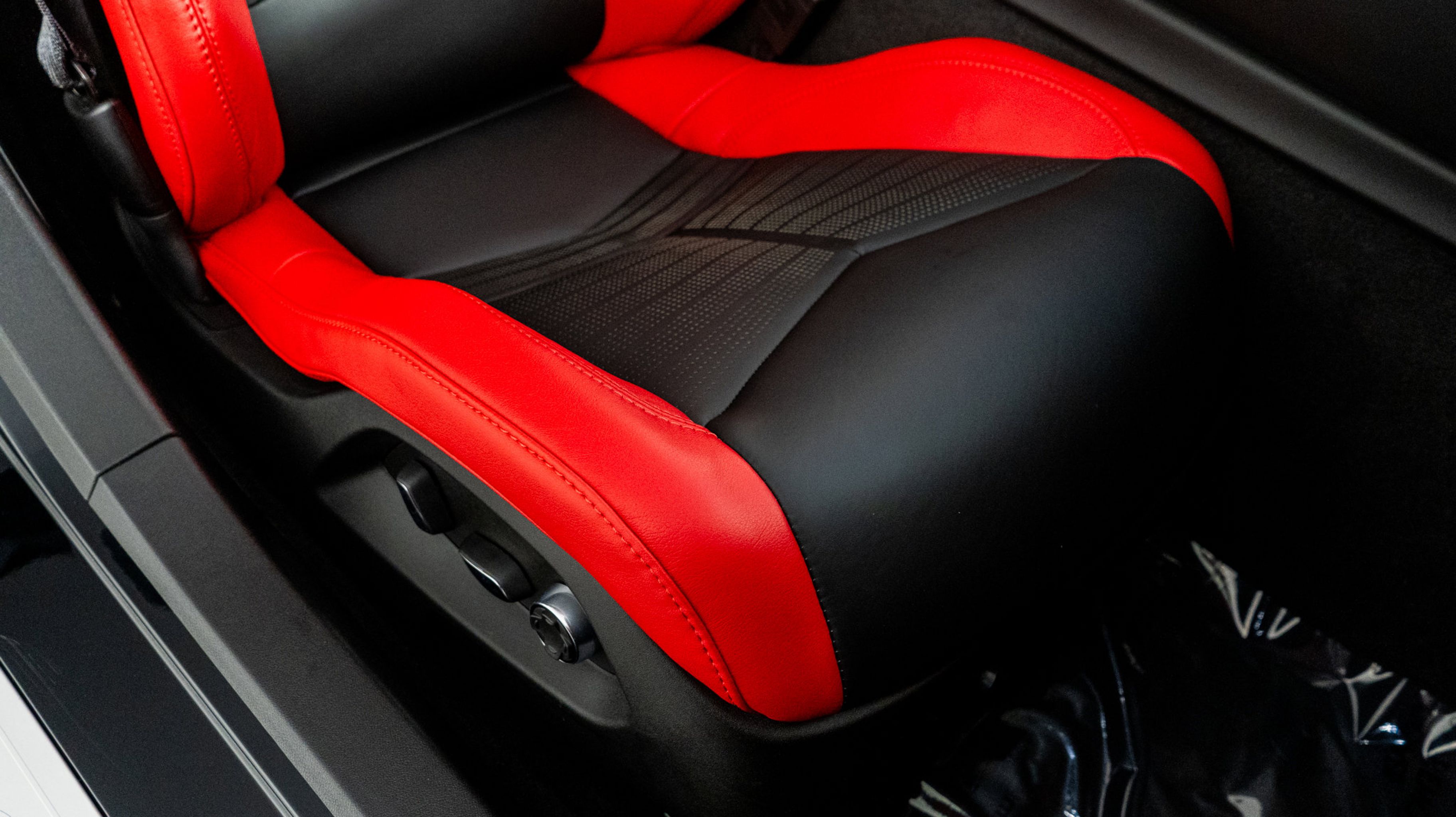 - ADRENALINE RED NAPA LEATHER SEATING SURFACES WITH PERFORATED INSERTS
