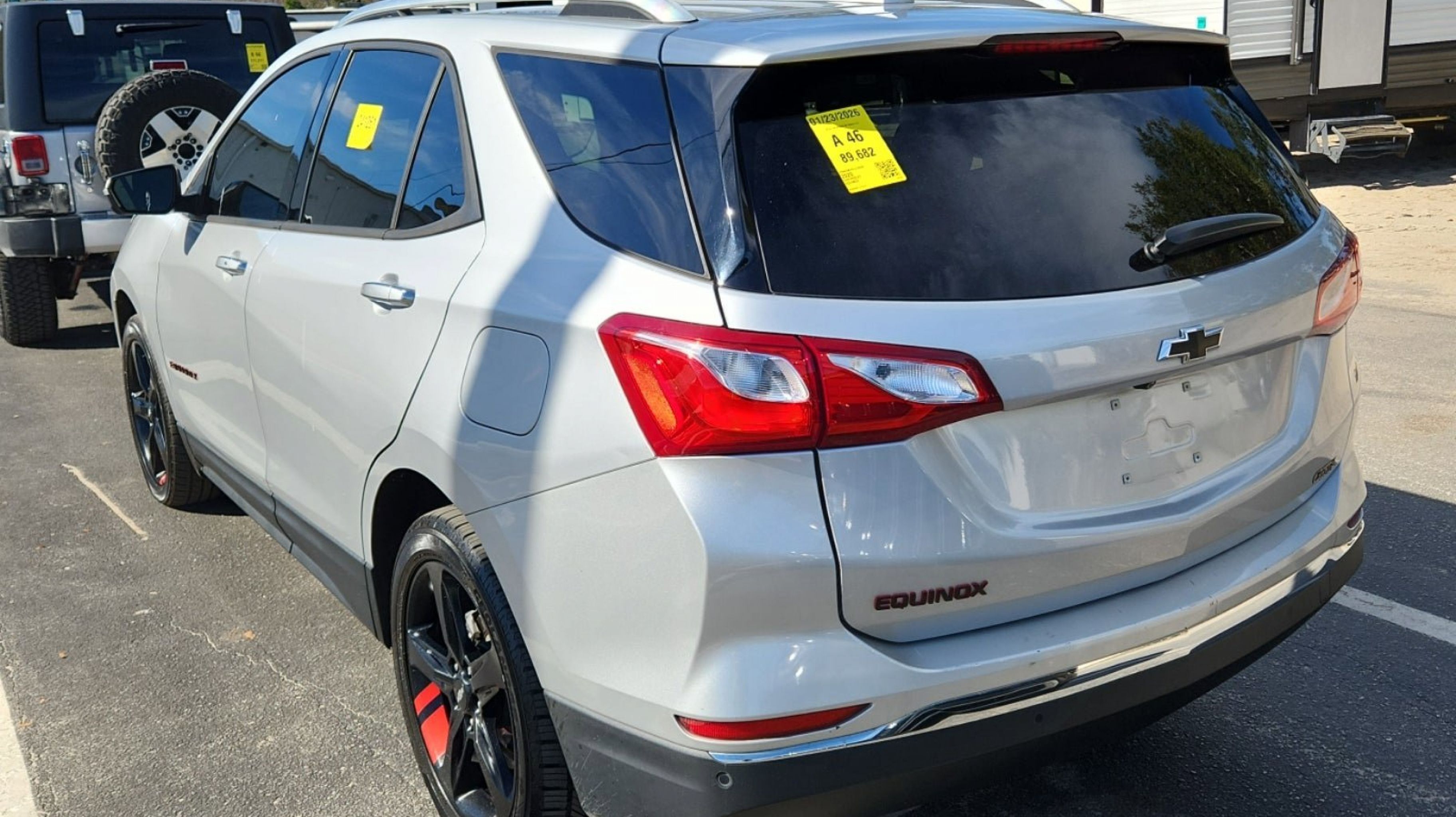 - PREMIER REDLINE EDITION includes (RZA) 19 Black wheels with Red accents and Black center caps (RR0) 19 all-season blackwall tires (CG6) front and rear Black bowtie emblems (GGC) Redline-specific Black grille Black Equinox badges with Red outline Black window surround and (DEU) Mosaic Black mirror caps