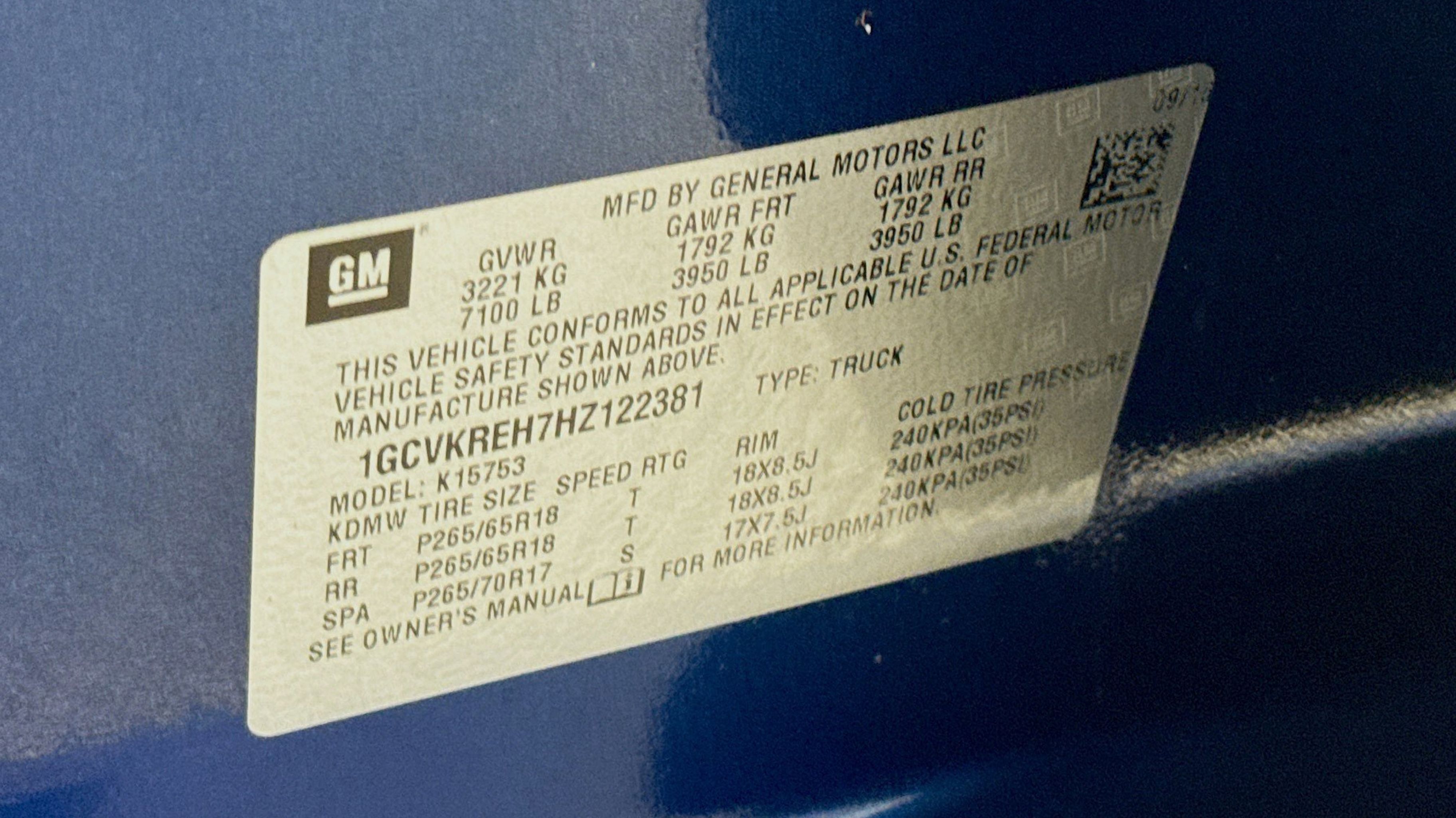 Deep Ocean Blue Metallic 2017 Chevrolet Silverado 1500 LT LT1 4WD 6-Speed Automatic Electronic with Overdrive EcoTec3 4.3L V6 6-Speed Automatic Electronic with Overdrive, 4WD, Jet Black w/Cloth Seat Trim, 110-Volt AC Power Outlet, 150 Amp Alternator, 4.2 Diagonal Color Display Driver Info Center, 6 Speaker Audio System, All Star Edition, Bluetooth® For Phone, Body Color Bodyside Moldings, Body-Color Door Handles, Body-Color Mirror Caps, Body-Color Power Adjustable Heated Outside Mirrors, Chrome Grille Surround, Color-Keyed Carpeting w/Rubberized Vinyl Floor Mats, Deep-Tinted Glass, Driver & Front Passenger Illuminated Vanity Mirrors, Dual-Zone Automatic Climate Control, Electric Rear-Window Defogger, EZ Lift & Lower Tailgate, Front Chrome Bumper, HD Radio, Heavy-Duty Rear Locking Differential, Leather Wrapped Steering Wheel w/Cruise Controls, Manual Tilt Wheel Steering Column, OnStar 3 Months Guidance Plan, OnStar w/4G LTE, Power Windows w/Driver Express Up, Preferred Equipment Group 1LT, Rear 60/40 Folding Bench Seat (Folds Up), Rear Chrome Bumper, Rear Vision Camera, Rear Wheelhouse Liners, Remote Keyless Entry, Remote Locking Tailgate, Remote Vehicle Starter System, Single Slot CD/MP3 Player, Steering Wheel Audio Controls, Theft Deterrent System (Unauthorized Entry), Thin Profile LED Fog Lamps, Trailering Package, 10-Way Power Driver's Seat Adjuster, 3.42 Rear Axle Ratio, 4-Wheel Disc Brakes, 40/20/40 Front Split Bench Seat, 6 Speakers, ABS brakes, Air Conditioning, Alloy wheels, AM/FM radio: SiriusXM, Bodyside moldings, Brake assist, Bumpers: chrome, CD player, Cloth Seat Trim, Compass, Delay-off headlights, Driver door bin, Driver vanity mirror, Dual front impact airbags, Dual front side impact airbags, E85 FlexFuel Capable, Electronic Stability Control, Emergency communication system: OnStar Guidance, Exterior Parking Camera Rear, Floor Mounted Console, Front anti-roll bar, Front Center Armrest w/Storage, Front License Plate Kit, Front Power Reclining Bucket Seats, Front reading lights, Front wheel independent suspension, Fully automatic headlights, Heated door mirrors, Heated Driver & Front Passenger Seats, Heavy Duty Suspension, High-Intensity Discharge Headlights, Illuminated entry, Low tire pressure warning, Occupant sensing airbag, Outside temperature display, Overhead airbag, Overhead console, Panic alarm, Passenger door bin, Passenger vanity mirror, Power door mirrors, Power steering, Power windows, Premium audio system: Chevrolet MyLink, Radio data system, Radio: AM/FM 8 Diagonal Color Touch Screen, Rear reading lights, Rear step bumper, Remote keyless entry, SiriusXM Satellite Radio, Speed control, Speed-sensing steering, Split folding rear seat, Steering wheel mounted audio controls, Tachometer, Tilt steering wheel, Traction control, Trip computer, Variably intermittent wipers, Voltmeter, Wheels: 17 x 8 Bright Machined Aluminum, Wheels: 18 x 8.5 Bright-Machined Aluminum, Wireless Charging, 6-Speed Automatic Electronic with Overdrive, 4WD, Jet Black w/Cloth Seat Trim, 110-Volt AC Power Outlet, 150 Amp Alternator, 4.2 Diagonal Color Display Driver Info Center, 6 Speaker Audio System, All Star Edition, Bluetooth® For Phone, Body Color Bodyside Moldings, Body-Color Door Handles, Body-Color Mirror Caps, Body-Color Power Adjustable Heated Outside Mirrors, Chrome Grille Surround, Color-Keyed Carpeting w/Rubberized Vinyl Floor Mats, Deep-Tinted Glass, Driver & Front Passenger Illuminated Vanity Mirrors, D