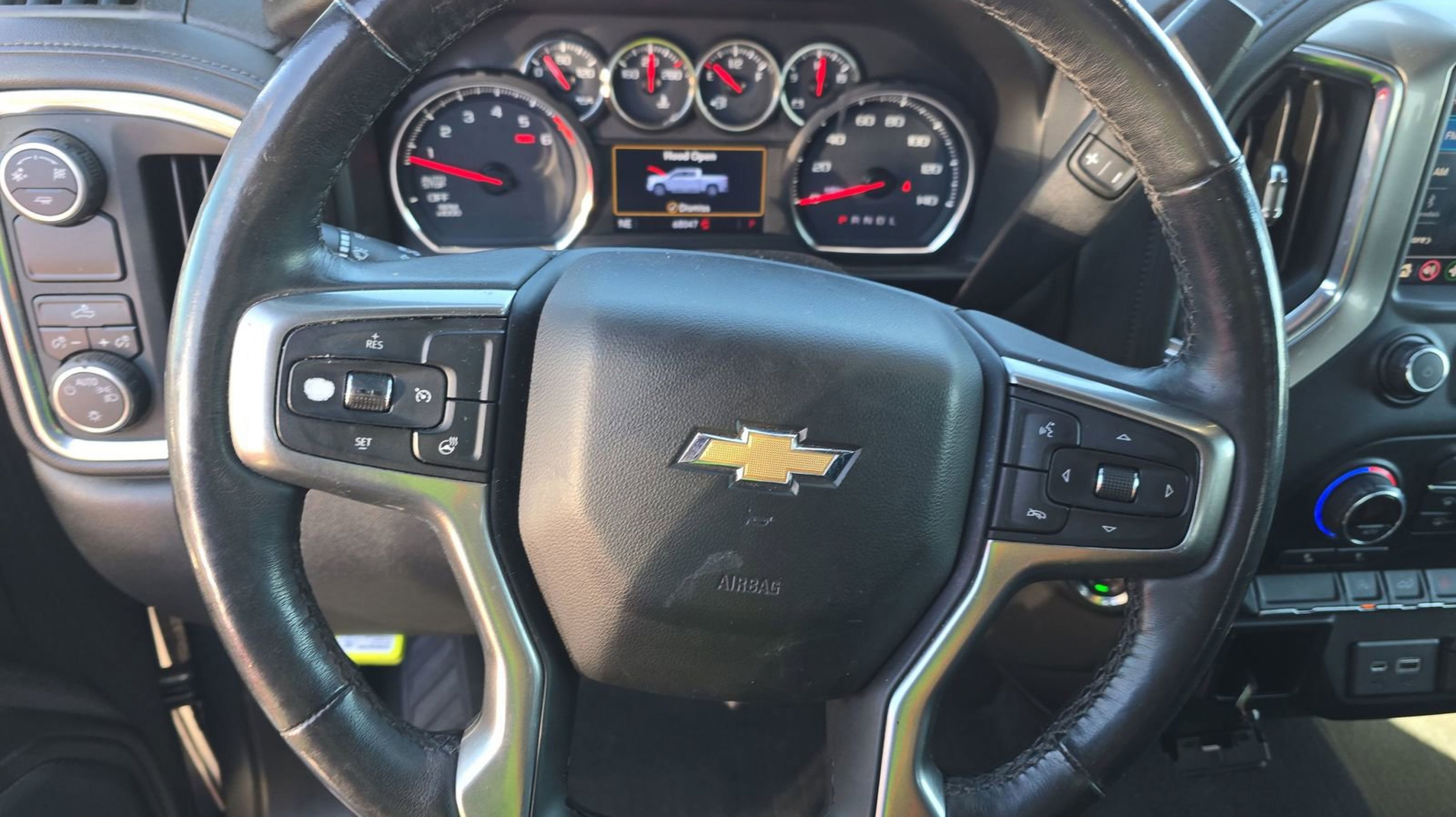 - CONVENIENCE PACKAGE includes (CJ2) dual-zone automatic climate control (A2X) 10-way power driver seat including power lumbar (KA1) heated driver and passenger seats (KI3) heated steering wheel (N37) manual tilt/telescoping steering column and (USS) 2 charge-only USB ports for second row (C49) rear-window defogger (KPA) auxiliary power outlet (ATH) Keyless Open and Start (NP5) leather-wrapped steering wheel (N06) steering column lock (BTV) Remote Start (UTJ) content theft alarm (AZ3) front 40/20/40 split-bench with underseat storage (QT5) EZ Lift power lock and release tailgate and (UF2) bed LED cargo area lighting