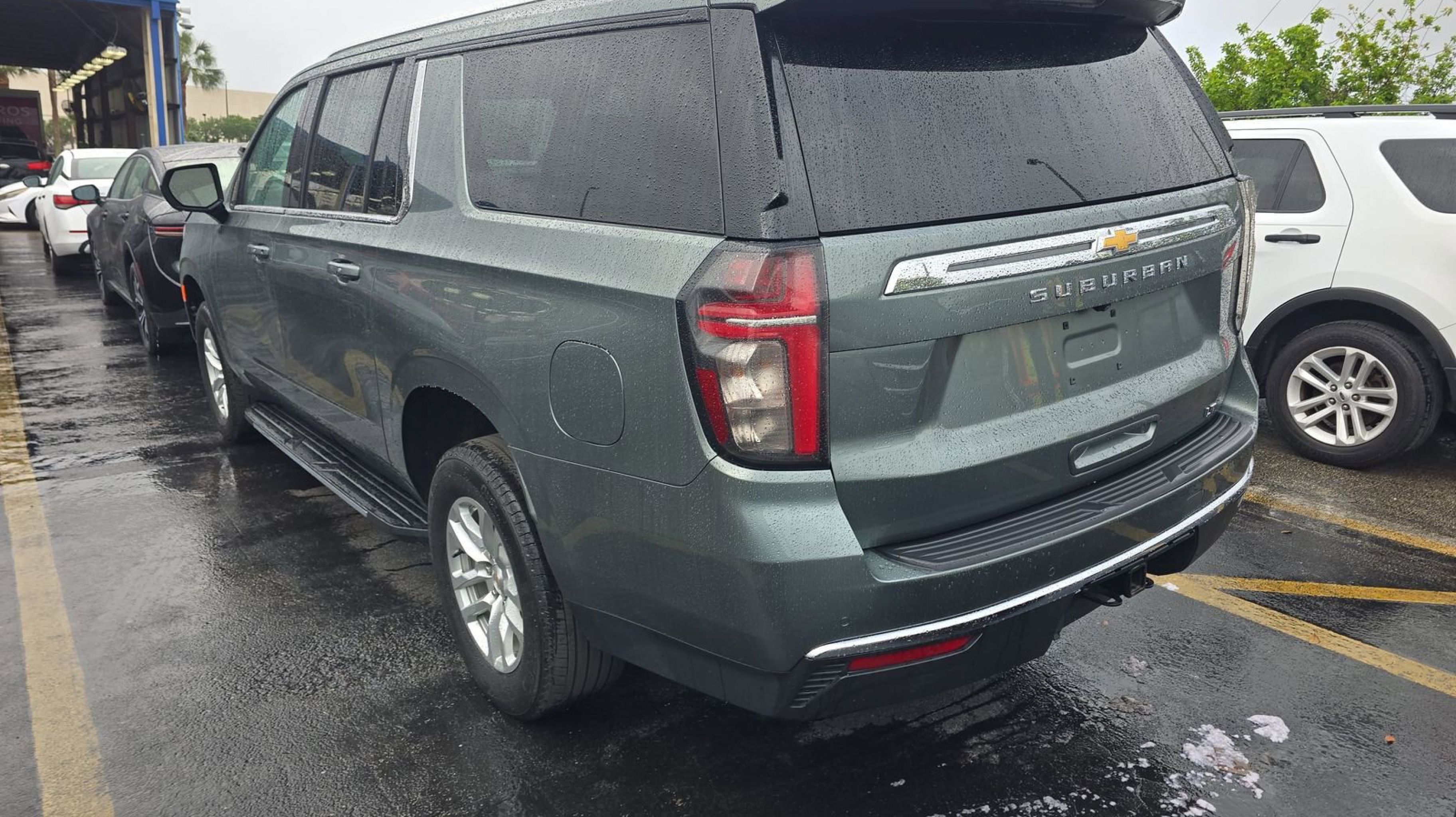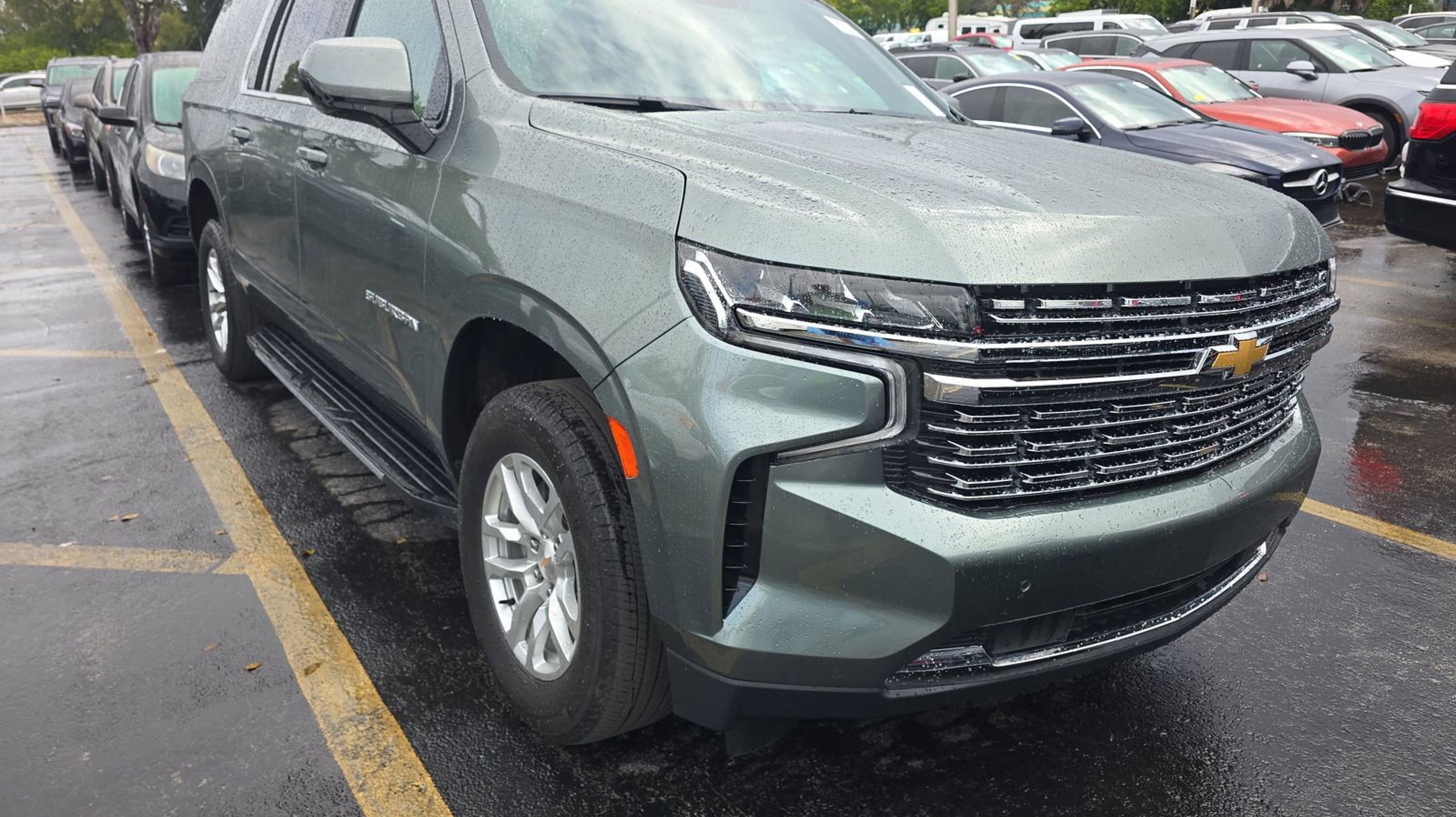 Silver Sage Metallic 2024 Chevrolet Suburban LT RWD 10-Speed Automatic with Overdrive EcoTec3 5.3L V8 10-Way Power Driver & Passenger Seat Adjusters, 1st & 2nd Row Color-Keyed Carpeted Floor Mats, Auto-Dimming Inside Rear-View Mirror, Bose 9-Speaker Stereo Audio System Feature, Bright Front & Rear Door Sill Plates, Color-Keyed Carpeting Floor Covering, Driver & Front Outboard Passenger Airbags, Enhanced Driver Information Center, Floor Console w/Storage Area, Hands-Free Rear Power Programmable Liftgate, Heated Driver & Front Passenger Seats, Infotainment Display, LED Daytime Running Lamps, Memory Settings For Driver, Preferred Equipment Group 1LT, Remote Start, SiriusXM w/360L, Universal Home Remote, Wireless Charging, Wrapped Steering Wheel, 3.23 Rear Axle Ratio, 3rd row seats: split-bench, 4-Wheel Disc Brakes, 9 Speakers, ABS brakes, Air Conditioning, Alloy wheels, AM/FM radio: SiriusXM with 360L, Apple CarPlay/Android Auto, Auto High-beam Headlights, Auto-dimming Rear-View mirror, Automatic temperature control, Brake assist, Bumpers: body-color, Compass, Delay-off headlights, Deleted 3 Years of Remote Access, Driver door bin, Driver vanity mirror, Dual front impact airbags, Dual front side impact airbags, Electronic Stability Control, Emergency communication system: OnStar and Chevrolet connected services capable, Four wheel independent suspension, Front anti-roll bar, Front Bucket Seats, Front Center Armrest, Front dual zone A/C, Front reading lights, Fully automatic headlights, Garage door transmitter, Heated door mirrors, Heated front seats, Illuminated entry, Leather-Appointed Seating, Low tire pressure warning, Memory seat, Navigation System, Occupant sensing airbag, Outside temperature display, Overhead airbag, Overhead console, Panic alarm, Passenger door bin, Passenger vanity mirror, Power door mirrors, Power driver seat, Power Liftgate, Power passenger seat, Power steering, Power windows, Premium audio system: Chevrolet Infotainment 3 Premium, Premium Smooth Ride Suspension, Radio: Chevrolet Infotainment 3 Premium System, Rain sensing wipers, Rear air conditioning, Rear anti-roll bar, Rear reading lights, Rear seat center armrest, Rear window defroster, Rear window wiper, Remote keyless entry, Roof rack: xxxxxx, Security system, Speed control, Speed-sensing steering, Split folding rear seat, Spoiler, Steering wheel mounted audio controls, Tachometer, Telescoping steering wheel, Tilt steering wheel, Traction control, Trip computer, Variably intermittent wipers, Voltmeter, Wheels: 18 x 8.5 Bright Silver Painted Aluminum, 10-Way Power Driver & Passenger Seat Adjusters, 1st & 2nd Row Color-Keyed Carpeted Floor Mats, Auto-Dimming Inside Rear-View Mirror, Bose 9-Speaker Stereo Audio System Feature, Bright Front & Rear Door Sill Plates, Color-Keyed Carpeting Floor Covering, Driver & Front Outboard Passenger Airbags, Enhanced Driver Information Center, Floor Console w/Storage Area, Hands-Free Rear Power Programmable Liftgate, Heated Driver & Front Passenger Seats, Infotainment Display, LED Daytime Running Lamps, Memory Settings For Driver, Preferred Equipment Group 1LT, Remote Start, SiriusXM w/360L, Universal Home Remote, Wireless Charging, Wrapped Steering Wheel.