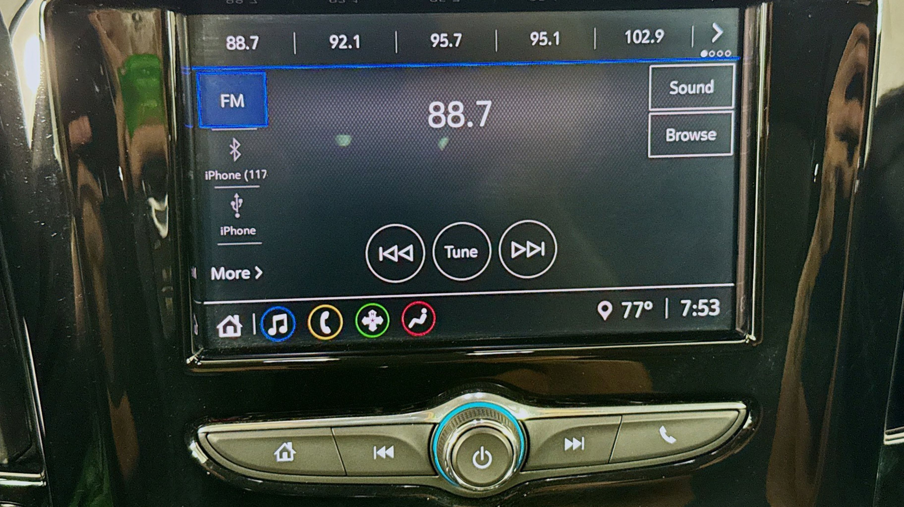 - AUDIO SYSTEM CHEVROLET INFOTAINMENT 3 SYSTEM 7 diagonal color touchscreen AM/FM stereo. Additional features for compatible phones include: Bluetooth audio streaming for 2 active devices voice command pass-through to phone Apple CarPlay and Android Auto capable (STD)