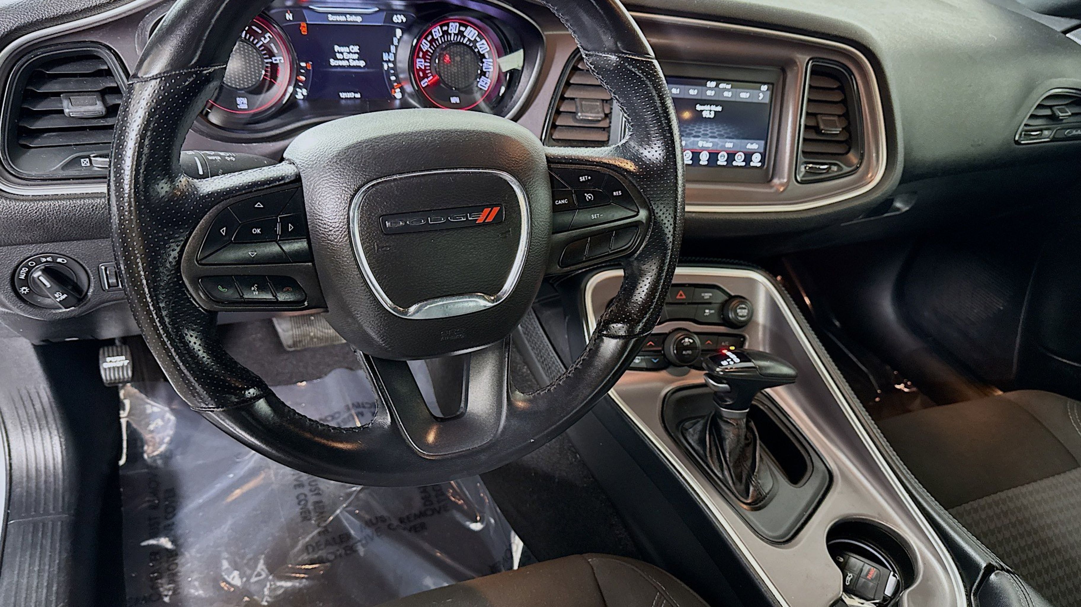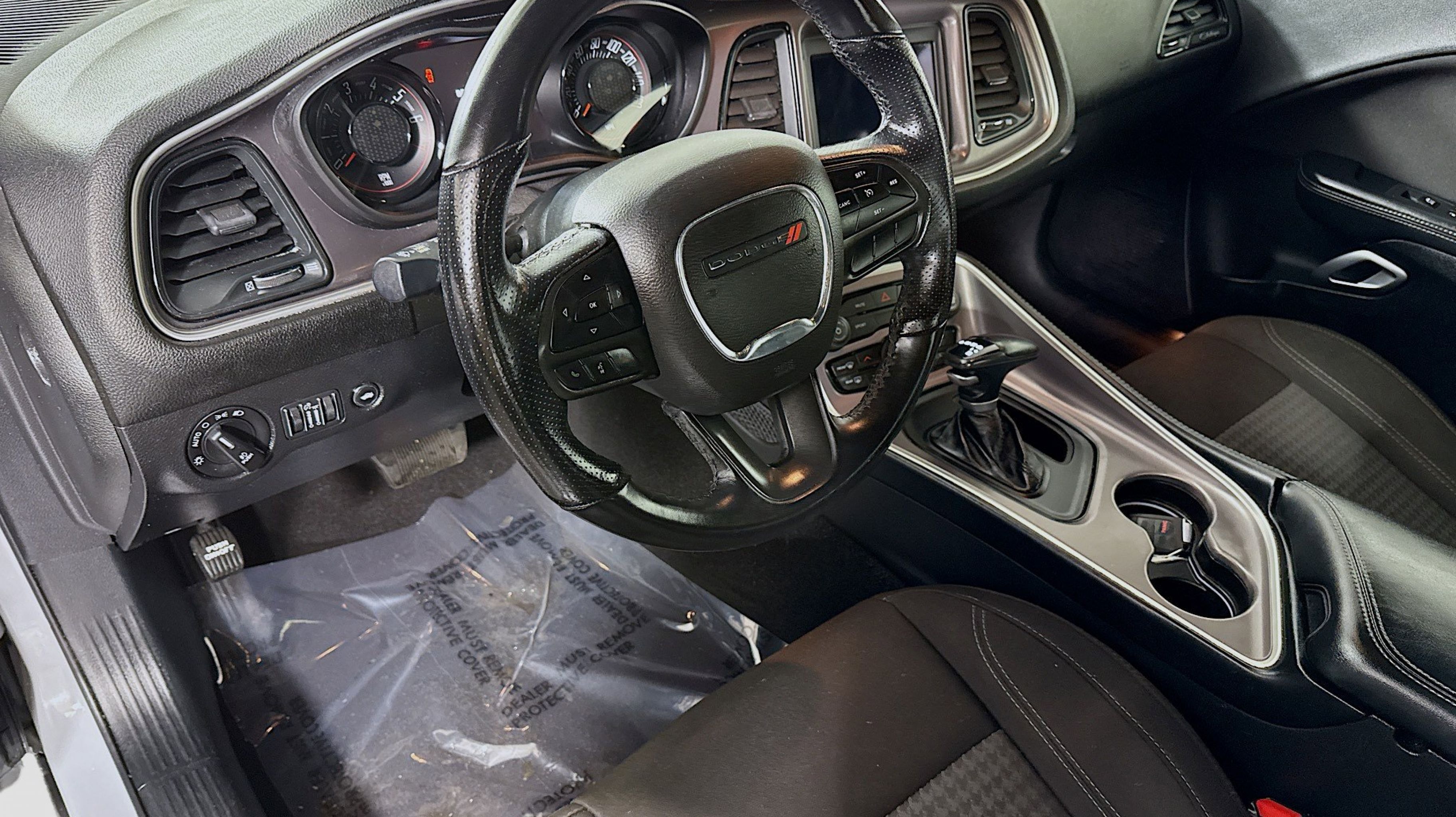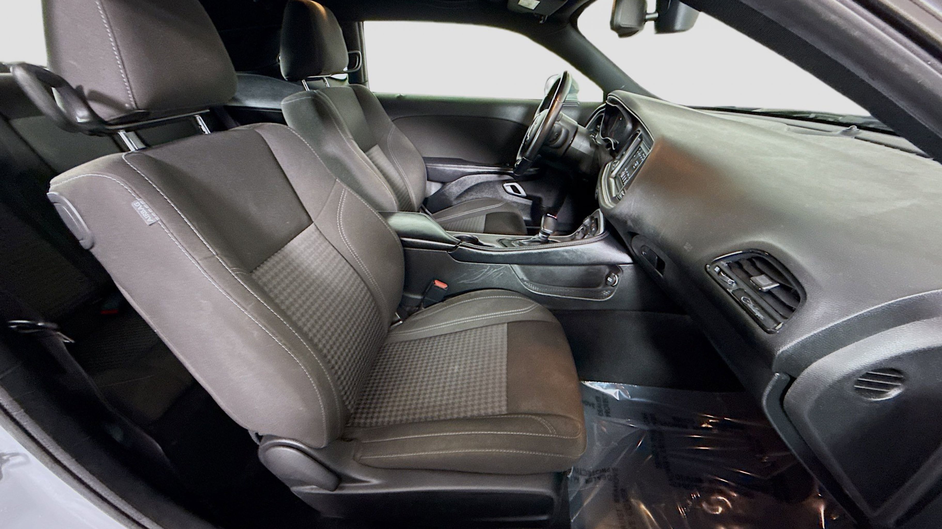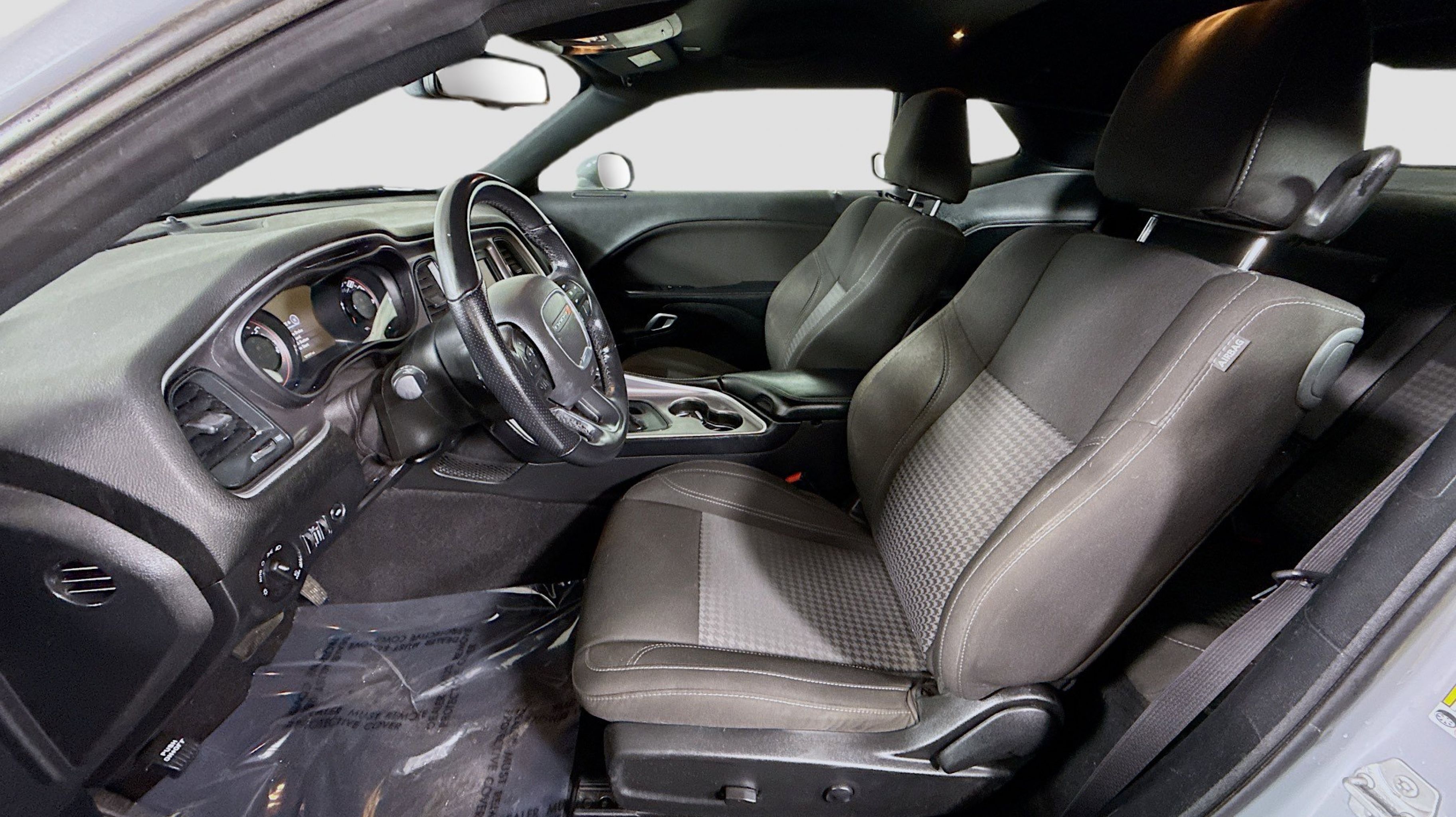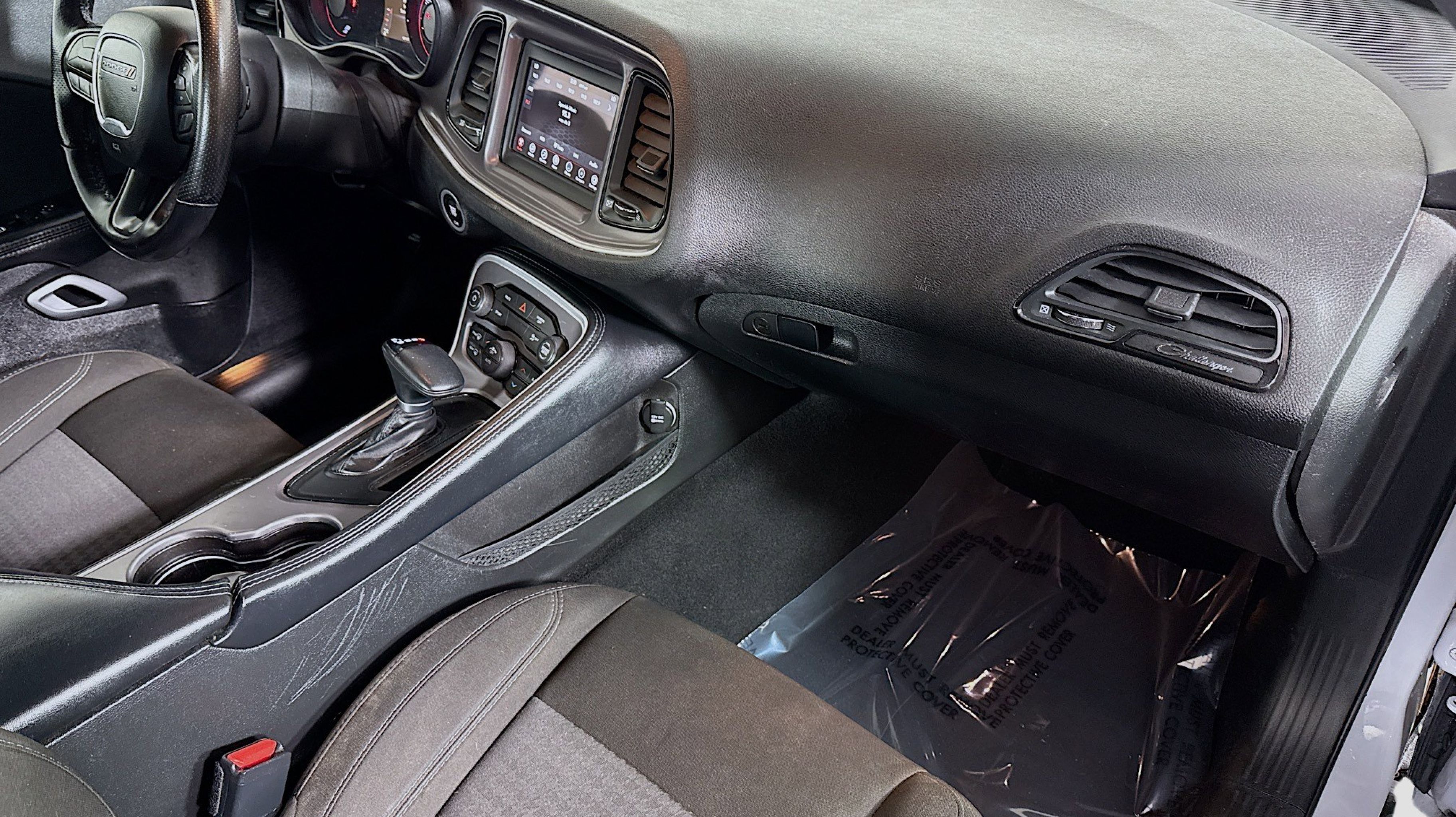 CARFAX One-Owner. Black Fuel Filler Door, Black Grille w/Bezel, Blacktop Package, Challenger Blacktop Grille Badge, Gloss Black I/P Cluster Trim Rings, Leather Performance Steering Wheel, Quick Order Package 2EA, Rear Black Spoiler, Satin Black Dodge Tail Lamp Badge, Wheels: 20 x 8.0 Black Noise Painted, 4-Wheel Disc Brakes, 6 Speakers, ABS brakes, Air Conditioning, Alloy wheels, AM/FM radio, Anti-whiplash front head restraints, Apple CarPlay, Apple CarPlay/Android Auto, Auto-dimming Rear-View mirror, Automatic temperature control, Brake assist, Bumpers: body-color, Compass, Compass Gauge, Delay-off headlights, Driver door bin, Driver vanity mirror, Dual front impact airbags, Dual front side impact airbags, Electronic Stability Control, Four wheel independent suspension, Front anti-roll bar, Front Bucket Seats, Front Center Armrest, Front dual zone A/C, Front reading lights, Fully automatic headlights, Google Android Auto, GPS Antenna Input, Heated door mirrors, Houndstooth Cloth Sport Seat, Illuminated entry, Integrated Center Stack Radio, Integrated Voice Command w/Bluetooth, Leather Shift Knob, Low tire pressure warning, Media Hub (2 USB, AUX), Outside temperature display, Overhead airbag, Overhead console, Panic alarm, ParkView Rear Back-Up Camera, Passenger door bin, Passenger vanity mirror, Power door mirrors, Power driver seat, Power steering, Power windows, Radio data system, Radio: Uconnect 4 w/7 Display, Rear anti-roll bar, Rear reading lights, Rear seat center armrest, Rear window defroster, Remote keyless entry, Security system, Speed control, Speed-sensing steering, Split folding rear seat, Spoiler, Steering wheel mounted audio controls, Tachometer, Telescoping steering wheel, Tilt steering wheel, Traction control, Trip computer, USB Host Flip, Variably intermittent wipers, Wheels: 18 x 7.5 Cast Aluminum, Black Fuel Filler Door, Black Grille w/Bezel, Blacktop Package, Challenger Blacktop Grille Badge, Gloss Black I/P Cluster Trim Rings, Leather Performance Steering Wheel, Quick Order Package 2EA, Rear Black Spoiler, Satin Black Dodge Tail Lamp Badge, Wheels: 20 x 8.0 Black Noise Painted.