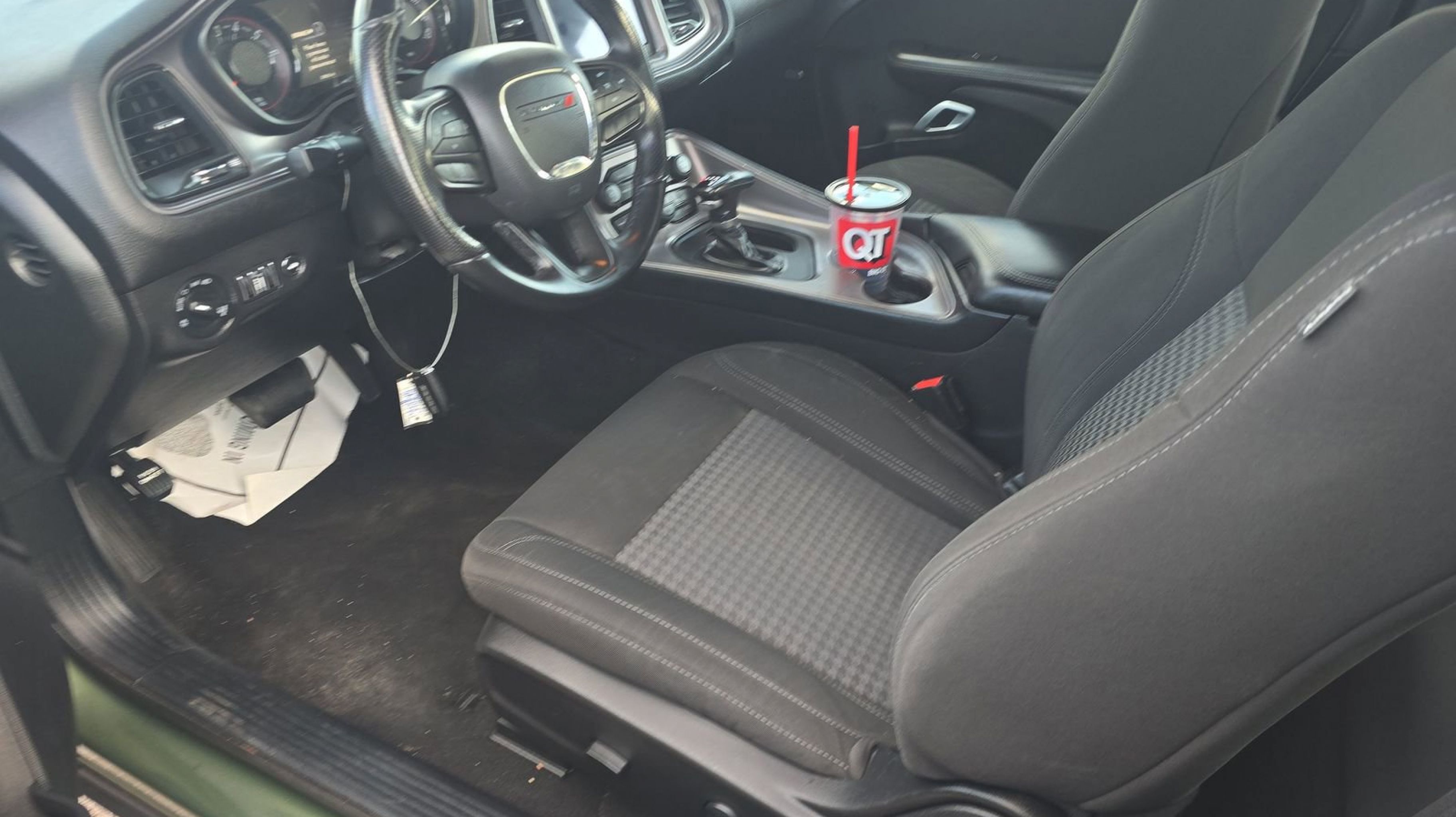 Clean CARFAX. Black Fuel Filler Door, Black Grille w/Bezel, Blacktop Package, Challenger Blacktop Grille Badge, Gloss Black I/P Cluster Trim Rings, Leather Performance Steering Wheel, Quick Order Package 2EA, Satin Black Dodge Tail Lamp Badge, Wheels: 20 x 8.0 Black Noise Painted, 276 Watt Amplifier, 4-Wheel Disc Brakes, 6 Speakers, ABS brakes, Air Conditioning, Alloy wheels, AM/FM radio, Anti-Lock Brakes, Anti-whiplash front head restraints, Apple CarPlay, Apple CarPlay/Android Auto, Auto Leather Wrapped Shift Knob, Auto-dimming Rear-View mirror, Automatic temperature control, AutoStick Automatic Transmission, Blacktop Stripe, Body Color Exterior Mirrors, Brake assist, Bumpers: body-color, Delay-off headlights, Driver door bin, Driver vanity mirror, Dual front impact airbags, Dual front side impact airbags, Electronic Stability Control, Exterior Mirrors w/Heating Element, For More Info, Call 800-643-2112, Four wheel independent suspension, Front anti-roll bar, Front Bucket Seats, Front Center Armrest, Front dual zone A/C, Front License Plate Bracket, Front reading lights, Fully automatic headlights, Google Android Auto, GPS Antenna Input, Heated door mirrors, Houndstooth Cloth Sport Seat, Illuminated entry, Integrated Center Stack Radio, Integrated Voice Command w/Bluetooth, Leather Shift Knob, Low tire pressure warning, Manuf Statement of Origin, Media Hub (2 USB, AUX), Outside temperature display, Overhead airbag, Overhead console, Panic alarm, ParkView Rear Back-Up Camera, Passenger door bin, Passenger vanity mirror, Power door mirrors, Power driver seat, Power steering, Power windows, Radio data system, Radio: Uconnect 4 w/7 Display, Rear anti-roll bar, Rear reading lights, Rear seat center armrest, Rear window defroster, Remote keyless entry, Security system, SiriusXM Radio Service, SiriusXM Satellite Radio, Speed control, Speed-sensing steering, Split folding rear seat, Spoiler, Steering wheel mounted audio controls, Tachometer, Telescoping steering wheel, Tilt steering wheel, Tip Start, Traction control, Trip computer, USB Host Flip, Variably intermittent wipers, Wheels: 18 x 7.5 Aluminum Fine Silver, Black Fuel Filler Door, Black Grille w/Bezel, Blacktop Package, Challenger Blacktop Grille Badge, Gloss Black I/P Cluster Trim Rings, Leather Performance Steering Wheel, Quick Order Package 2EA, Satin Black Dodge Tail Lamp Badge, Wheels: 20 x 8.0 Black Noise Painted.