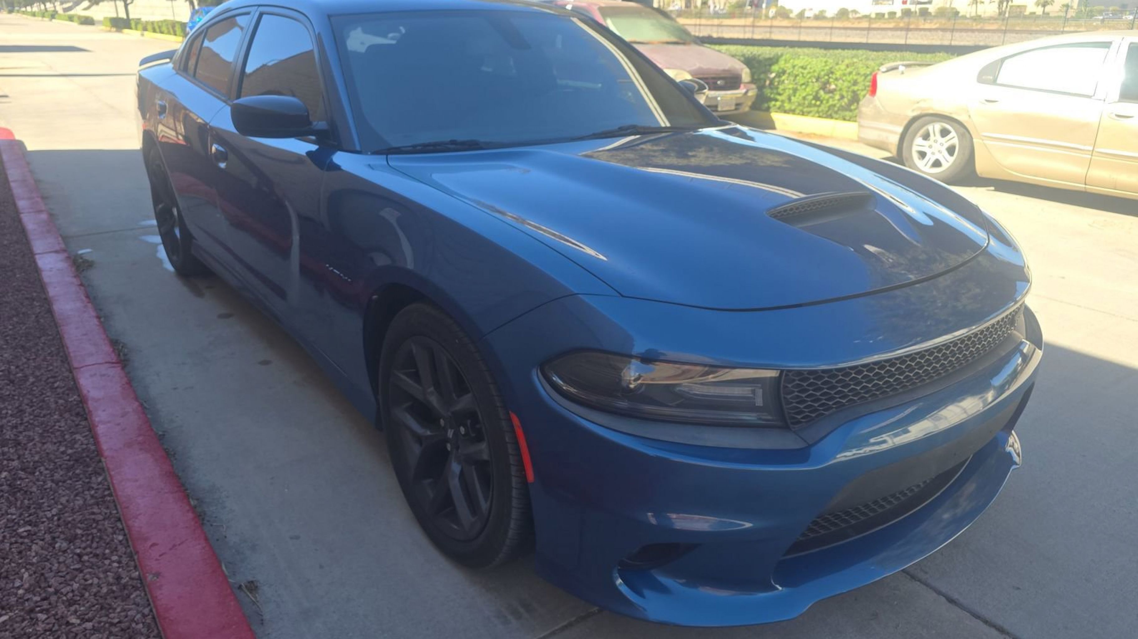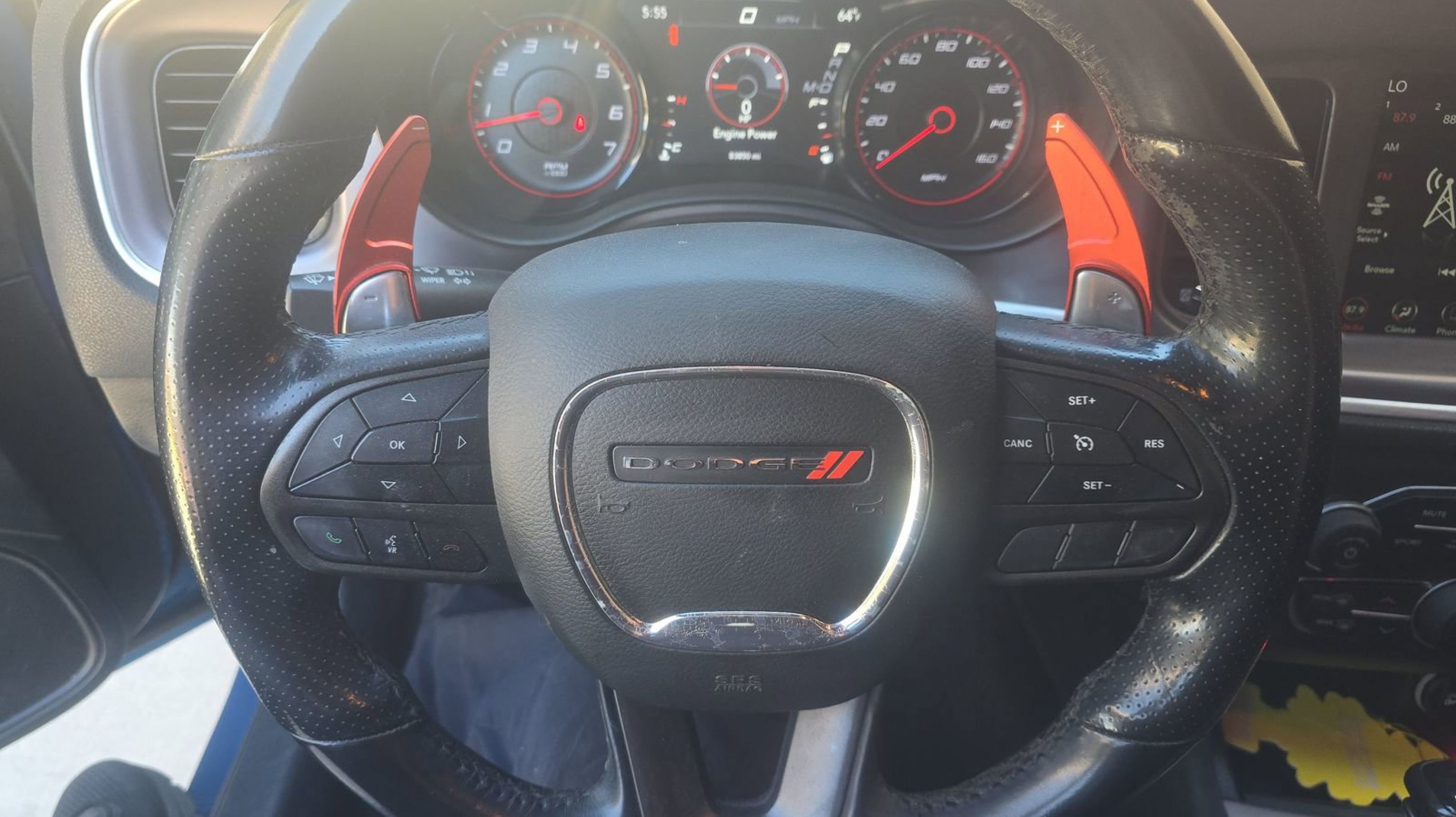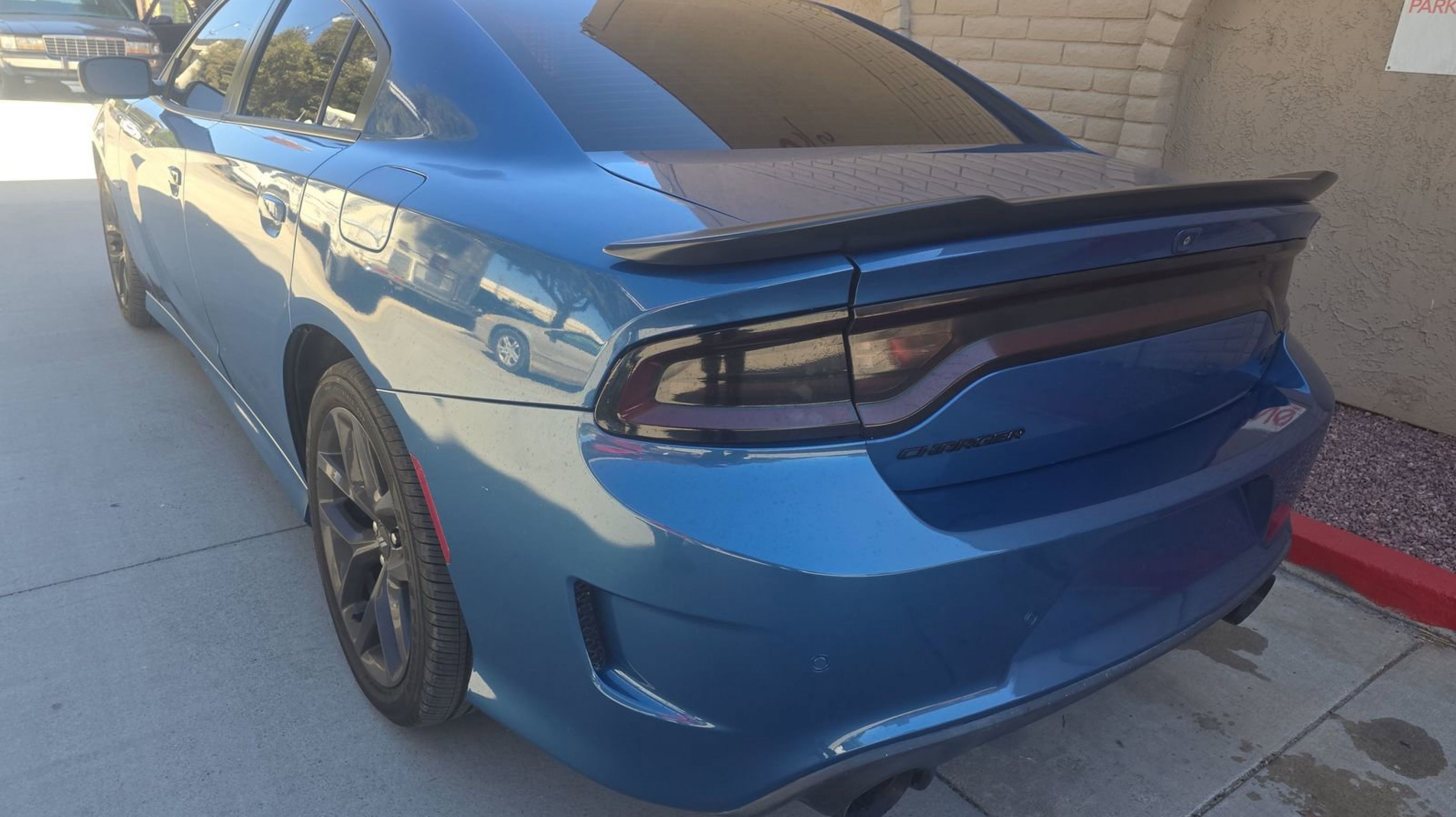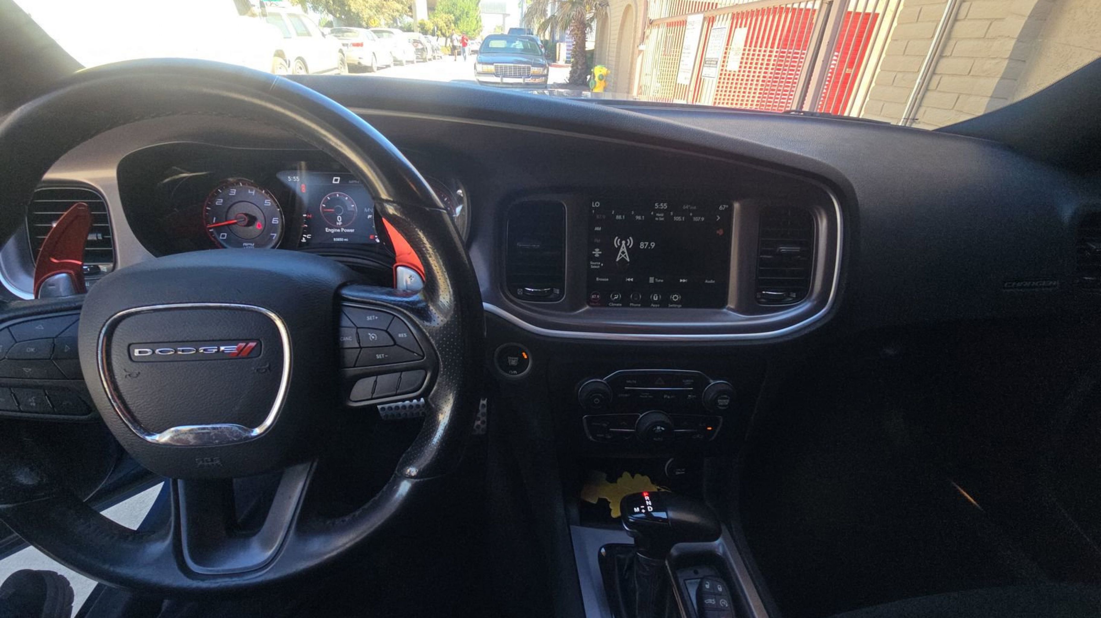 Black w/Cloth Performance Seats or Daytona Logo Nappa/Alcantara Seat or Nappa/Alcantara Performance Seat, Black 1-Piece Performance Spoiler, Black Dodge Grille Badge, Blacktop Package, Blacktop R/T Badge, Gloss Black I/P Cluster Trim Rings, HEMI Blacktop Fender Badge, Quick Order Package 29N, Satin Black Charger Decklid Badge, Satin Black Dodge Tail Lamp Badge, Wheels: 20 x 8.0 Black Noise Painted, 4-Wheel Disc Brakes, 6 Speakers, ABS brakes, Air Conditioning, Alloy wheels, AM/FM radio: SiriusXM, Anti-whiplash front head restraints, Apple CarPlay/Android Auto, Auto-dimming Rear-View mirror, Automatic temperature control, Brake assist, Bumpers: body-color, Cloth Performance Seats, Compass, Delay-off headlights, Driver door bin, Driver vanity mirror, Dual front impact airbags, Dual front side impact airbags, Electronic Stability Control, Emergency communication system: SiriusXM Guardian, Four wheel independent suspension, Front anti-roll bar, Front Bucket Seats, Front Center Armrest, Front dual zone A/C, Front fog lights, Front License Plate Bracket, Front reading lights, Fully automatic headlights, Garage door transmitter: HomeLink, Heated door mirrors, Illuminated entry, Knee airbag, Leather Shift Knob, Low tire pressure warning, Manufacturer's Statement of Origin, Occupant sensing airbag, Outside temperature display, Overhead airbag, Overhead console, Panic alarm, ParkView Rear Back-Up Camera, Passenger door bin, Passenger vanity mirror, Power door mirrors, Power driver seat, Power steering, Power windows, Radio data system, Radio: Uconnect 4C w/8.4 Display, Rear anti-roll bar, Rear reading lights, Rear seat center armrest, Rear window defroster, Remote keyless entry, Speed control, Speed-Sensitive Wipers, Split folding rear seat, Spoiler, Sport steering wheel, Steering wheel mounted audio controls, Tachometer, Telescoping steering wheel, Tilt steering wheel, Traction control, Trip computer, Variably intermittent wipers, Wheels: 20 x 8 Satin Carbon Aluminum, Black w/Cloth Performance Seats or Daytona Logo Nappa/Alcantara Seat or Nappa/Alcantara Performance Seat, Black 1-Piece Performance Spoiler, Black Dodge Grille Badge, Blacktop Package, Blacktop R/T Badge, Gloss Black I/P Cluster Trim Rings, HEMI Blacktop Fender Badge, Quick Order Package 29N, Satin Black Charger Decklid Badge, Satin Black Dodge Tail Lamp Badge, Wheels: 20 x 8.0 Black Noise Painted.