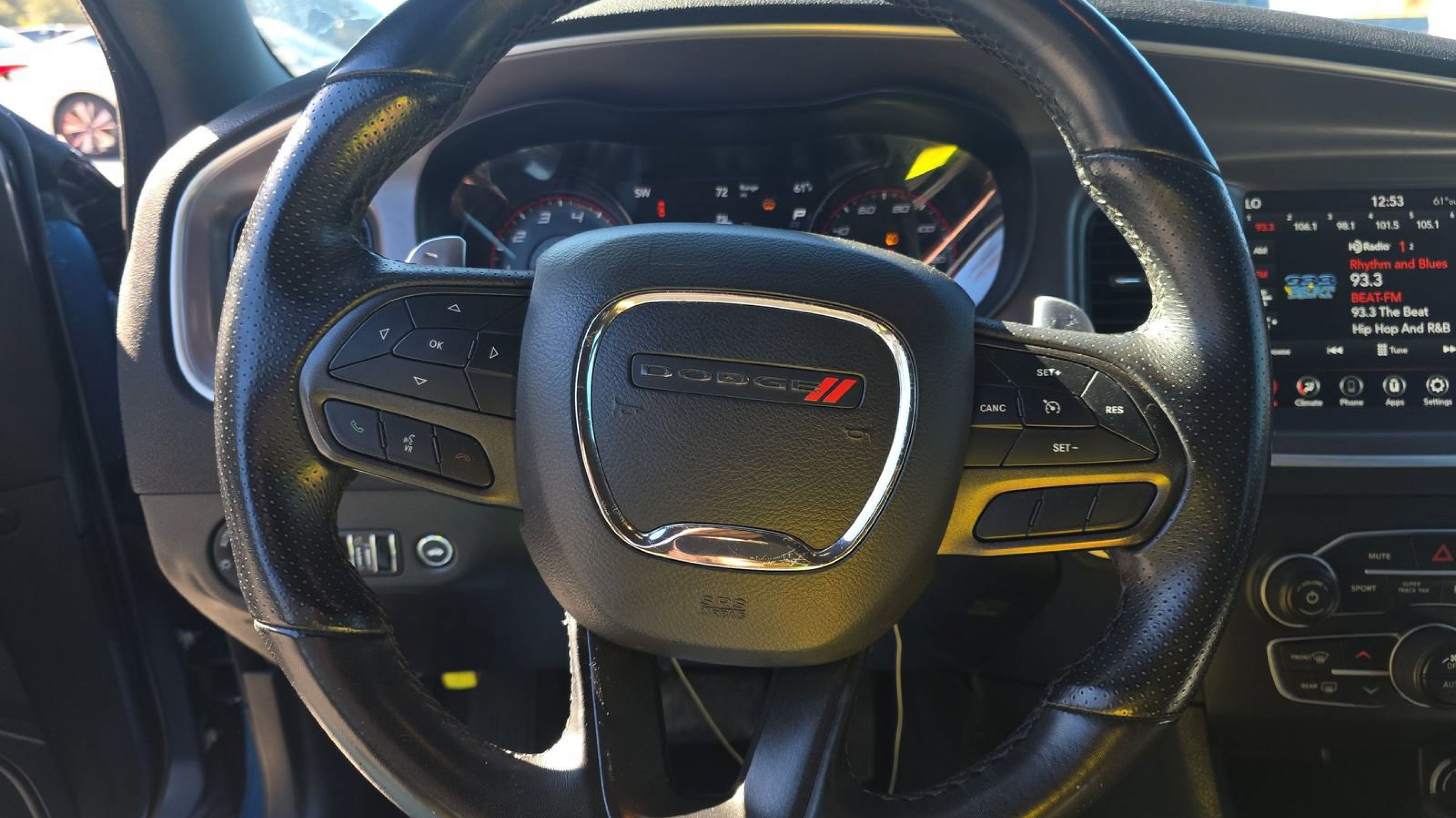 - BLACKTOP PACKAGE -inc: Gloss Black I/P Cluster Trim Rings Black 1-Piece Performance Spoiler Black Dodge Grille Badge Satin Black Charger Decklid Badge Satin Black Dodge Tail Lamp Badge Wheels: 20 x 8 Black Noise Painted Rhombi 2-Pc Wheel Center Cap Black Badge
