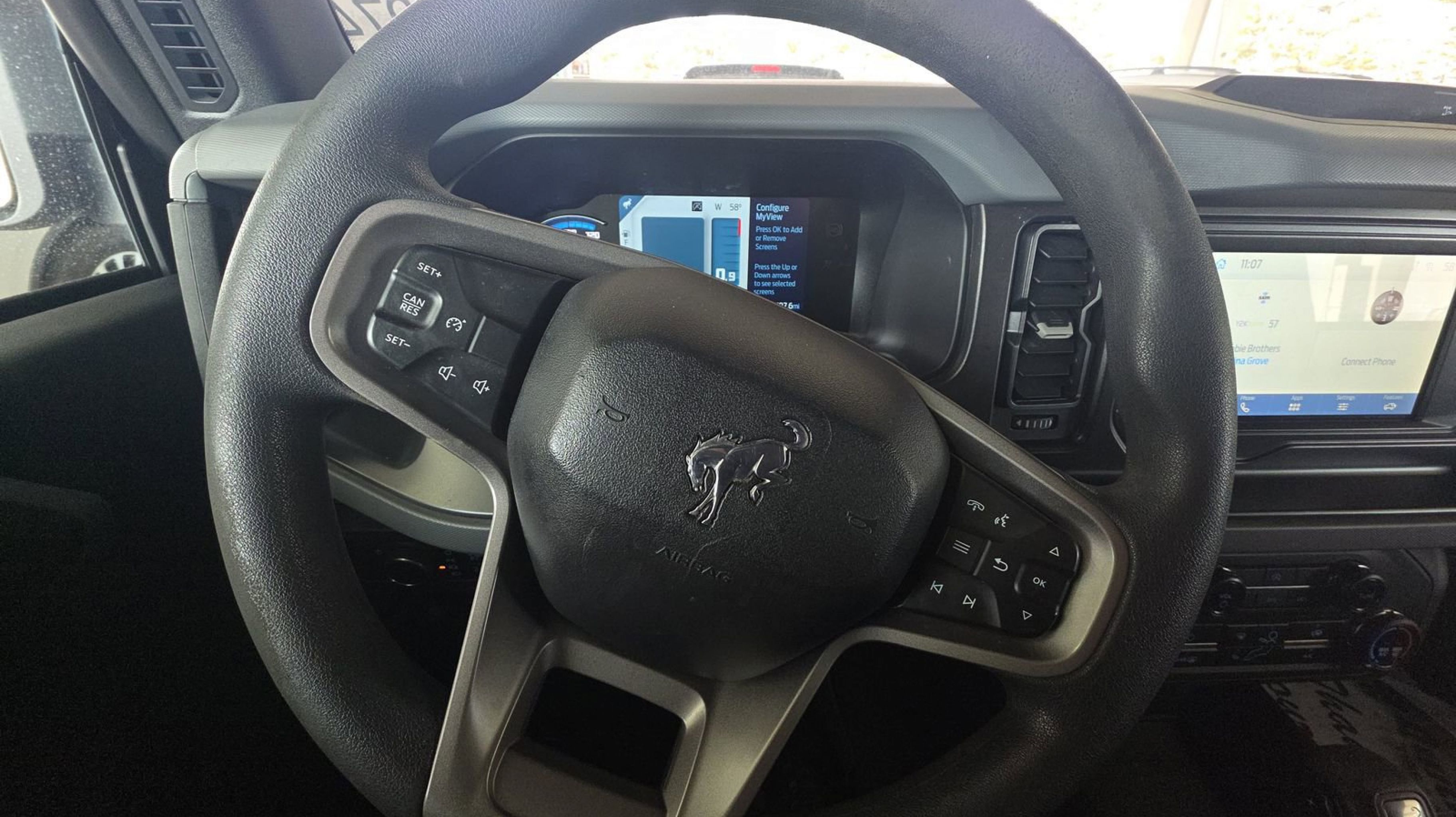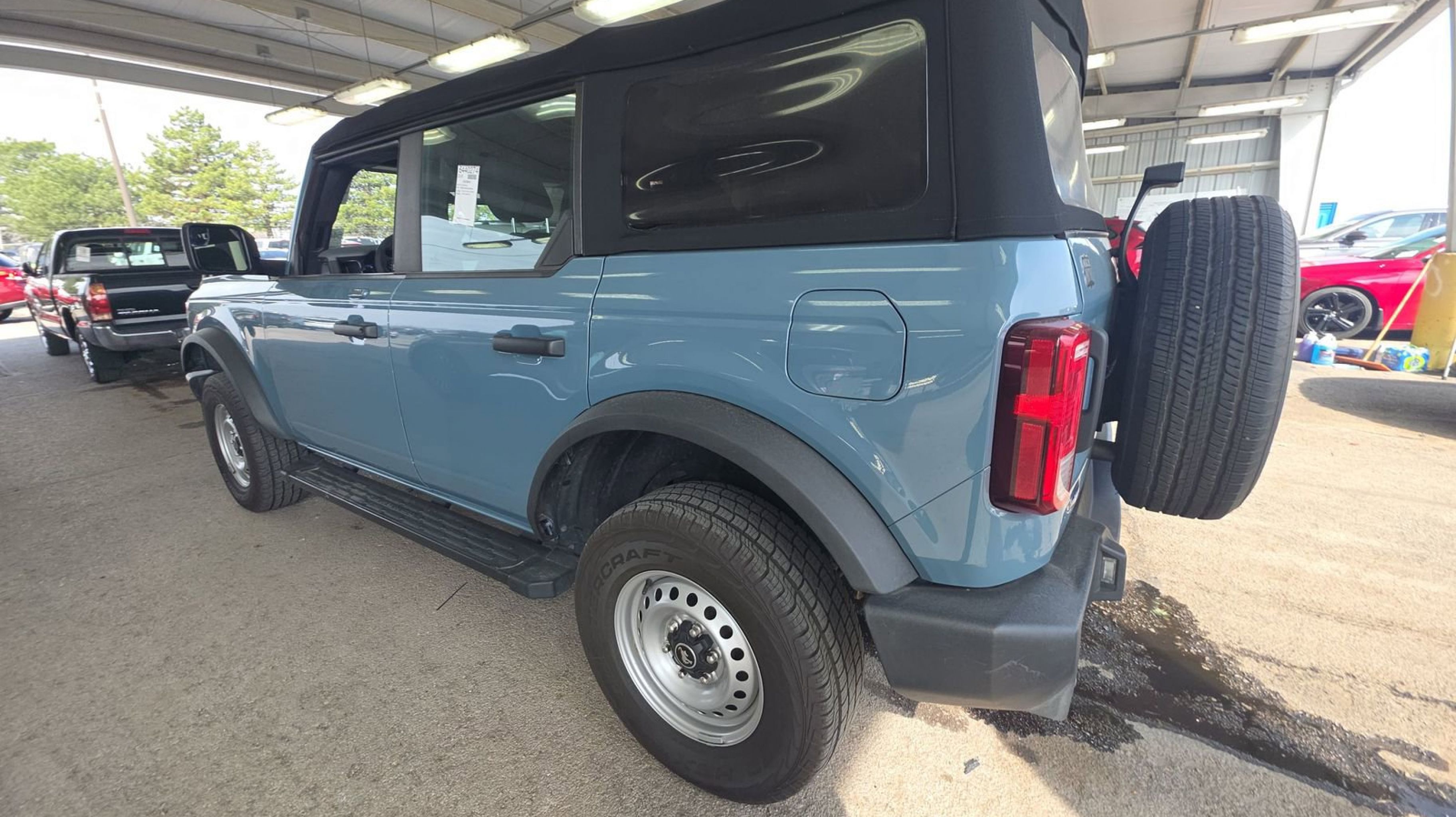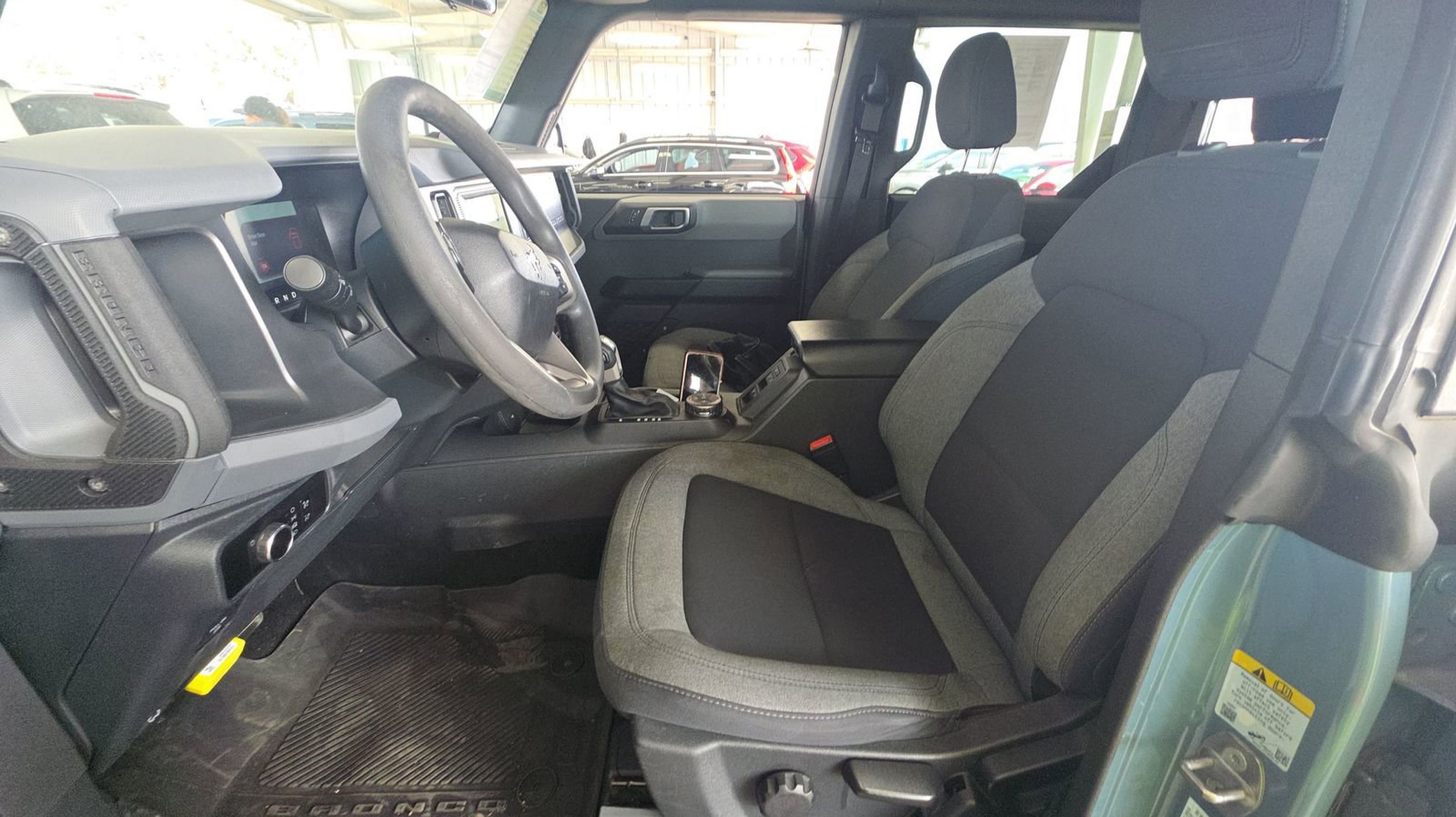 Area 51 2023 Ford Bronco 4WD 10-Speed Automatic 2.3L EcoBoost I-4 Equipment Group 101A Standard Package, 3.73 Axle Ratio, 4-Wheel Disc Brakes, 7 Speakers, ABS brakes, Air Conditioning, AM/FM radio: SiriusXM with 360L, AM/FM Stereo, Auto High-beam Headlights, Auxiliary Switches, Brake assist, Compass, Delay-off headlights, Driver door bin, Driver vanity mirror, Dual front impact airbags, Dual front side impact airbags, Electronic Stability Control, Emergency communication system: 911 Assist, Exterior Parking Camera Rear, Front & Rear Floor Liners w/o Carpet Floor Mats, Front anti-roll bar, Front Bucket Seats, Front Center Armrest, Front reading lights, Front wheel independent suspension, Fully automatic headlights, Heated door mirrors, Illuminated entry, Integrated roll-over protection, Keyless Entry Keypad, Low tire pressure warning, Marine Grade Vinyl Bucket Seats, Occupant sensing airbag, Outside temperature display, Overhead airbag, Overhead console, Panic alarm, Passenger door bin, Passenger vanity mirror, Power door mirrors, Power steering, Power windows, Radio data system, Remote keyless entry, Security system, SiriusXM Radio w/360L, Speed control, Split folding rear seat, Steering wheel mounted audio controls, SYNC 4, Tachometer, Telescoping steering wheel, Tilt steering wheel, Traction control, Trip computer, Variably intermittent wipers, Wheels: 16 Bright Polished Silver-Painted Steel, Equipment Group 101A Standard Package.