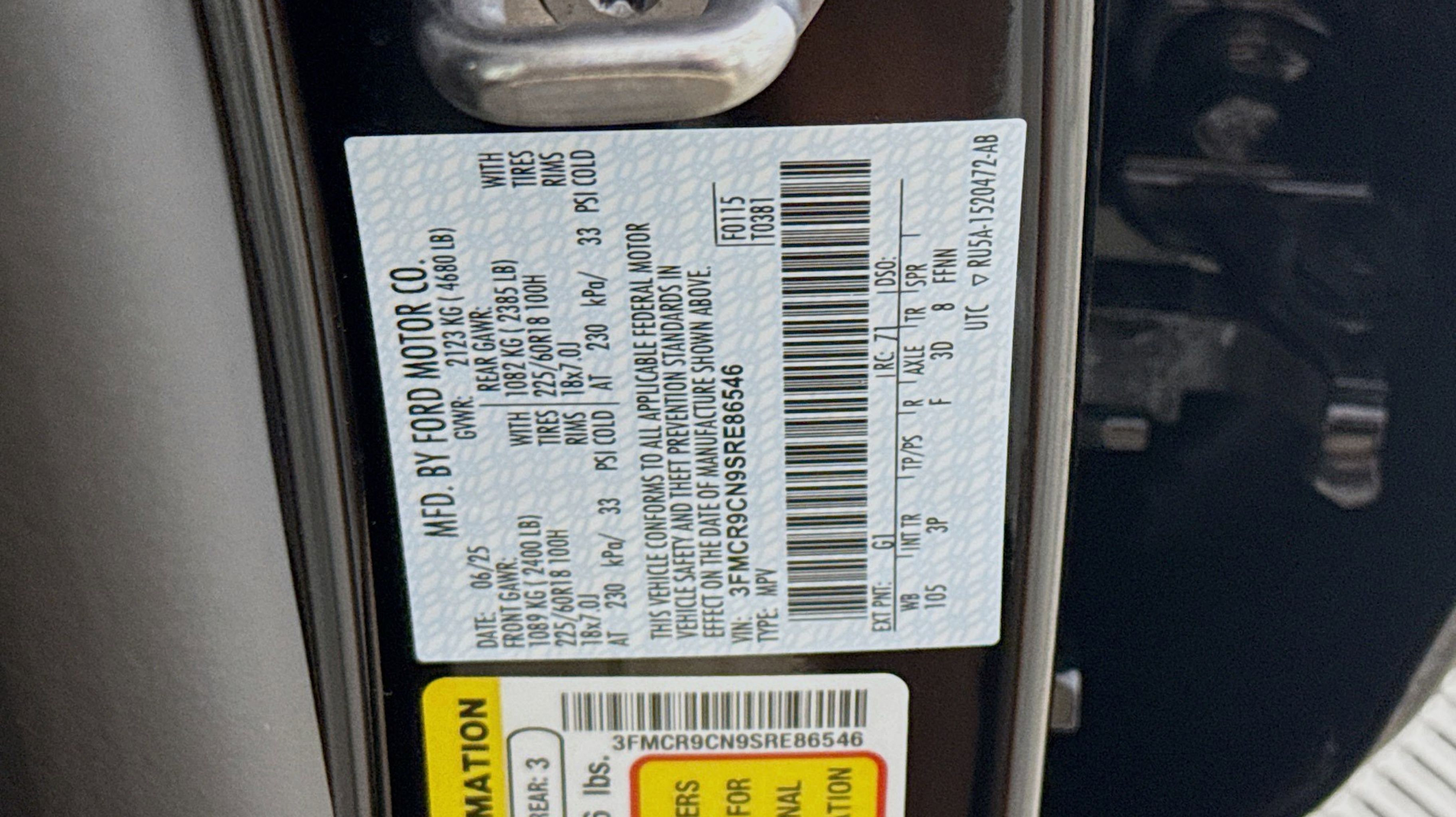 - ENGINE: 1.5L ECOBOOST -inc: auto start-stop technology (STD)