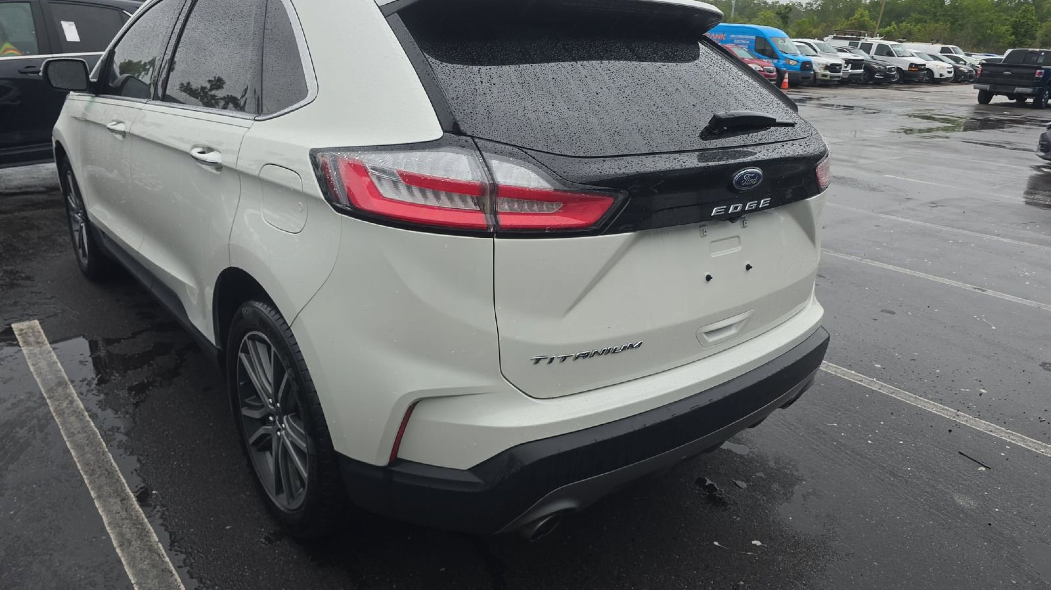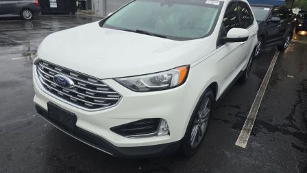 Star White Metallic Tri-Coat 2021 Ford Edge Titanium FWD 8-Speed Automatic EcoBoost 2.0L I4 GTDi DOHC Turbocharged VCT Equipment Group 300A, 12 Speakers, 3.80 Axle Ratio, 4-Wheel Disc Brakes, ABS brakes, Air Conditioning, Alloy wheels, AM/FM radio: SiriusXM with 360L, Auto High-beam Headlights, Auto-dimming Rear-View mirror, Automatic temperature control, Brake assist, Bumpers: body-color, Compass, Delay-off headlights, Driver door bin, Driver vanity mirror, Dual front impact airbags, Dual front side impact airbags, Electronic Stability Control, Emergency communication system: SYNC 4 911 Assist, FordPass Connect, Four wheel independent suspension, Front anti-roll bar, Front Bucket Seats, Front Center Armrest w/Storage, Front dual zone A/C, Front fog lights, Front License Plate Bracket, Front reading lights, Fully automatic headlights, Garage door transmitter, Heated door mirrors, Heated front seats, Heated steering wheel, Illuminated entry, Knee airbag, Leather-Trimmed Heated Sport Bucket Seats, Low tire pressure warning, Memory seat, Occupant sensing airbag, Outside temperature display, Overhead airbag, Overhead console, Panic alarm, Passenger door bin, Passenger vanity mirror, Power door mirrors, Power driver seat, Power Liftgate, Power passenger seat, Power steering, Power windows, Radio: B&O Sound System by Bang & Olufsen, Rain sensing wipers, Rear anti-roll bar, Rear reading lights, Rear seat center armrest, Rear window defroster, Rear window wiper, Remote keyless entry, Security system, SiriusXM w/360L, Speed control, Speed-Sensitive Wipers, Split folding rear seat, Spoiler, Steering wheel mounted audio controls, SYNC 4A w/Enhanced Voice Recognition, Tachometer, Telescoping steering wheel, Tilt steering wheel, Traction control, Trip computer, Turn signal indicator mirrors, Variably intermittent wipers, Wheel-Locking Lug Nuts, Wheels: 19 Luster Nickel-Painted Aluminum, Wheels: 20 Bright-Machined Aluminum, Equipment Group 300A.