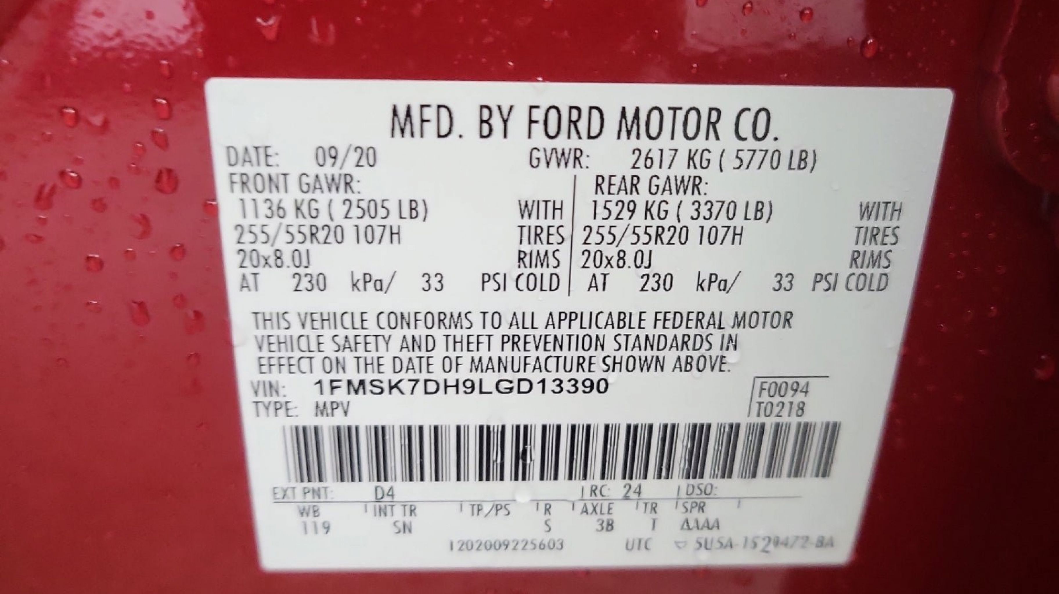 CARFAX One-Owner. ActiveX Captain's Chairs, Class III Trailer Tow Package, Equipment Group 202A, LED Fog Lamps, Remote Start System, 20 Premium Painted Aluminum Wheels, 3.58 Non-Limited-Slip Rear Axle Ratio, 3rd row seats: bench, 4-Wheel Disc Brakes, 6 Speakers, ABS brakes, Air Conditioning, Alloy wheels, AM/FM radio: SiriusXM, AM/FM Stereo, Auto High-beam Headlights, Automatic temperature control, Brake assist, Bumpers: body-color, Compass, Delay-off headlights, Driver door bin, Driver vanity mirror, Dual front impact airbags, Dual front side impact airbags, Electronic Stability Control, Emergency communication system: SYNC 3 911 Assist, Exterior Parking Camera Rear, FordPass Connect, Four wheel independent suspension, Front & Second Row Floor Liners, Front anti-roll bar, Front Bucket Seats, Front Center Armrest, Front dual zone A/C, Front reading lights, Fully automatic headlights, Heated door mirrors, Illuminated entry, Knee airbag, Leather steering wheel, Low tire pressure warning, Occupant sensing airbag, Outside temperature display, Overhead airbag, Overhead console, Panic alarm, Passenger door bin, Passenger vanity mirror, Power door mirrors, Power driver seat, Power Liftgate, Power passenger seat, Power steering, Power windows, Rear air conditioning, Rear anti-roll bar, Rear reading lights, Rear window defroster, Rear window wiper, Remote keyless entry, Security system, Speed control, Speed-sensing steering, Speed-Sensitive Wipers, Split folding rear seat, Spoiler, Steering wheel mounted audio controls, SYNC 3 Communications & Entertainment System, SYNC 3/Apple CarPlay/Android Auto, Tachometer, Telescoping steering wheel, Tilt steering wheel, Traction control, Trip computer, Unique Cloth Captain's Chairs, Variably intermittent wipers, Wheels: 18 5-Spoke Sparkle Silver-Painted Alum, ActiveX Captain's Chairs, Class III Trailer Tow Package, Equipment Group 202A, LED Fog Lamps, Remote Start System.