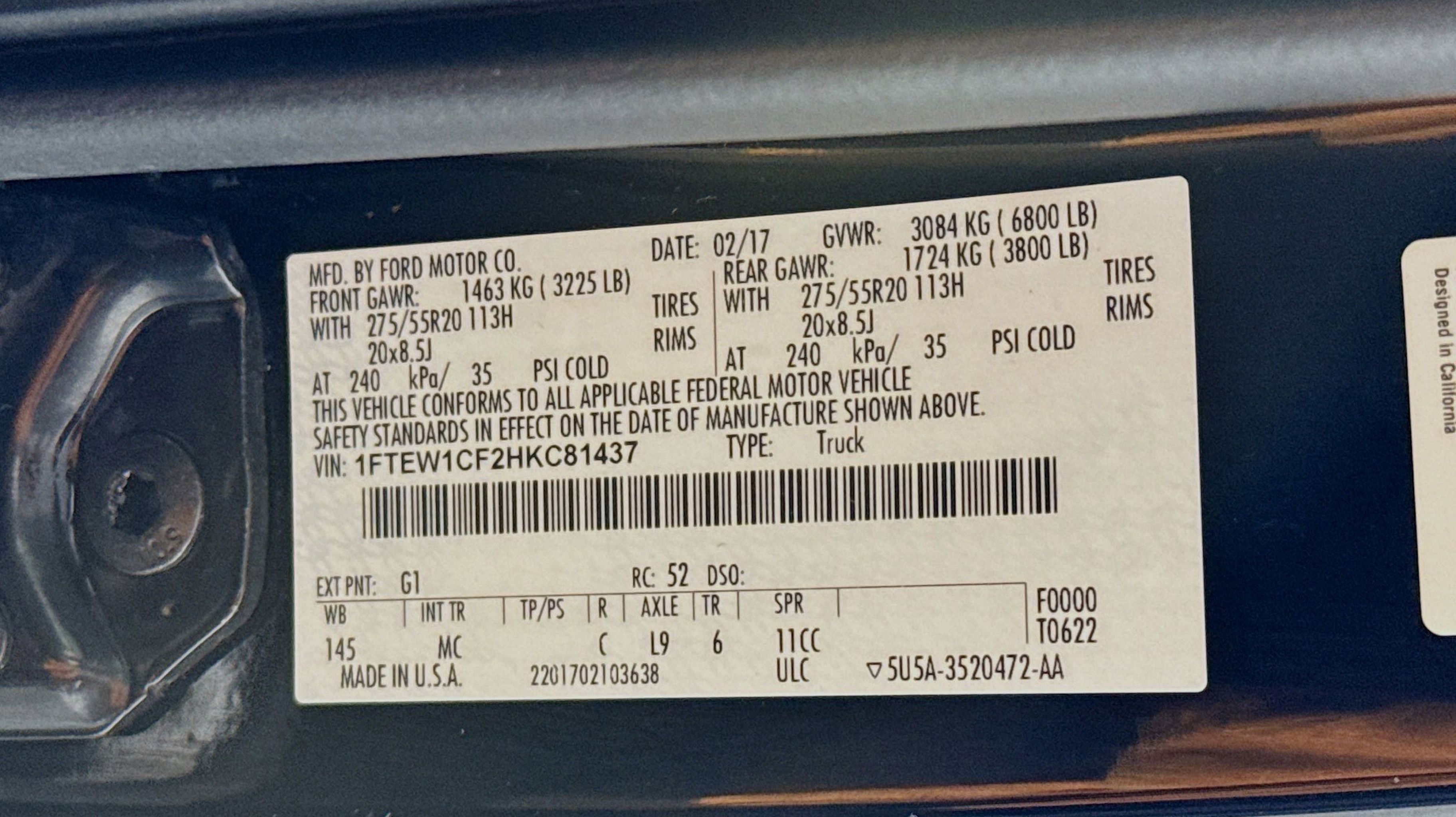 - ENGINE: 5.0L V8 FFV -inc: 3.31 Axle Ratio GVWR: 6 950 lbs Payload Package