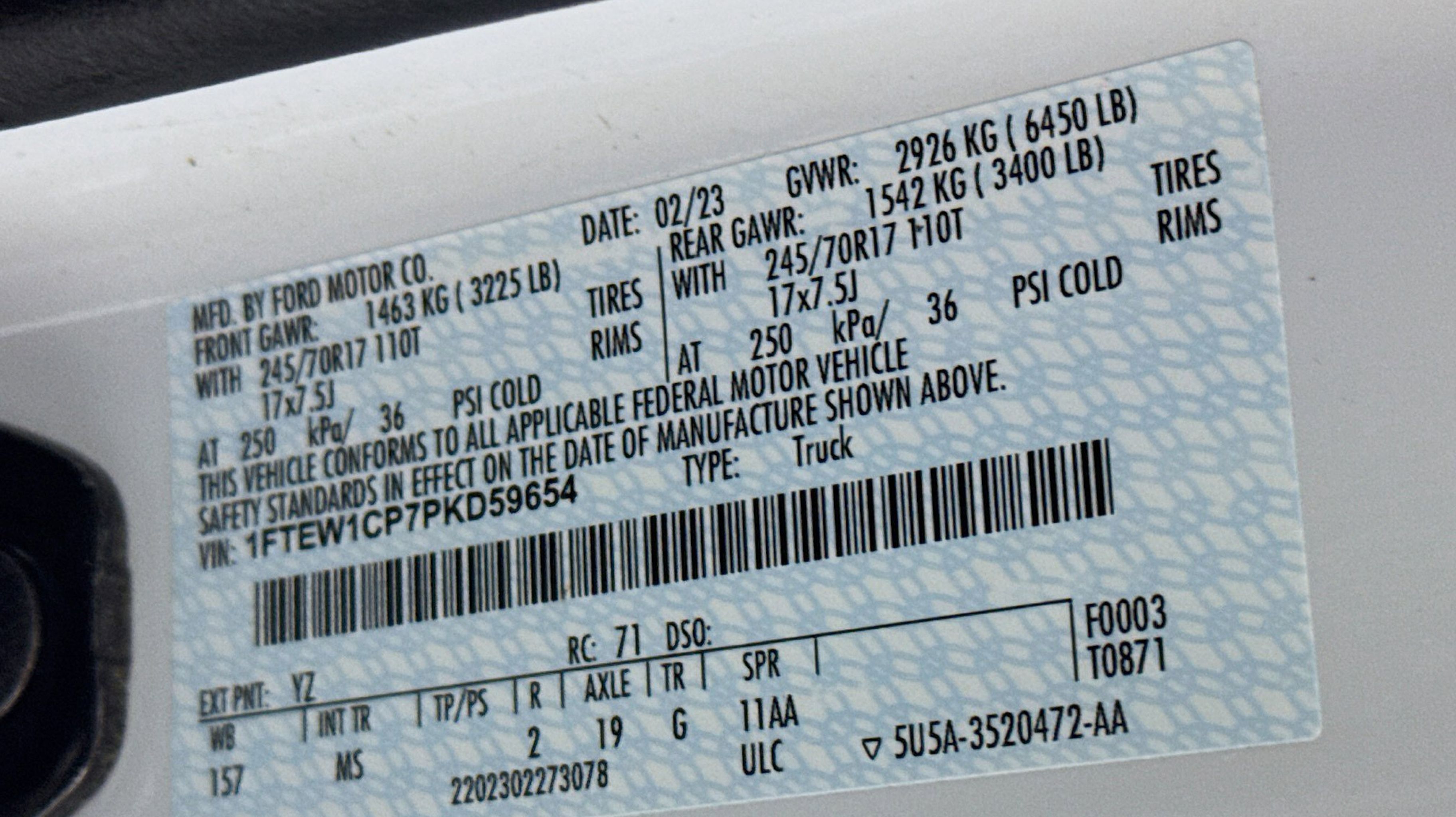 Oxford White 2023 Ford F-150 XLT RWD 10-Speed Automatic 2.7L V6 EcoBoost 3.55 Axle Ratio, 8-Way Power Driver's Seat w/Power Lumbar, 8 Productivity Screen in Instrument Cluster, Auto-Dimming Rear-View Mirror, Class IV Trailer Hitch Receiver, Dual Zone Electronic Automatic Temperature Control, Equipment Group 301A Mid, Radio: AM/FM SiriusXM w/360L, Rear Under-Seat Storage, SecuriCode Drivers Side Keyless-Entry Keypad, SYNC 4 w/Enhanced Voice Recognition, Wrapped Steering Wheel, 4-Wheel Disc Brakes, 6 Speakers, ABS brakes, Air Conditioning, Alloy wheels, AM/FM radio, Auto High-beam Headlights, Auto Start-Stop Removal (DISC), Brake assist, Bumpers: chrome, Cloth 40/20/40 Front Seat, Compass, Delay-off headlights, Driver door bin, Driver vanity mirror, Dual front impact airbags, Dual front side impact airbags, Electronic Stability Control, Emergency communication system: SYNC 4 911 Assist, Exterior Parking Camera Rear, Front anti-roll bar, Front Center Armrest w/Storage, Front fog lights, Front License Plate Bracket, Front reading lights, Front wheel independent suspension, Fully automatic headlights, Heated door mirrors, Illuminated entry, Low tire pressure warning, Occupant sensing airbag, Outside temperature display, Overhead airbag, Overhead console, Panic alarm, Passenger door bin, Passenger vanity mirror, Power door mirrors, Power steering, Power windows, Radio data system, Radio: AM/FM Stereo w/6 Speakers, Rear reading lights, Rear step bumper, Rear window defroster, Remote keyless entry, Security system, Speed control, Speed-sensing steering, Split folding rear seat, Steering wheel mounted audio controls, SYNC 4, Tachometer, Telescoping steering wheel, Tilt steering wheel, Traction control, Trip computer, Variably intermittent wipers, Voltmeter, Wheels: 17 Silver Painted Aluminum, 3.55 Axle Ratio, 8-Way Power Driver's Seat w/Power Lumbar, 8 Productivity Screen in Instrument Cluster, Auto-Dimming Rear-View Mirror, Class IV Trailer Hitch Receiver, Dual Zone Electronic Automatic Temperature Control, Equipment Group 301A Mid, Radio: AM/FM SiriusXM w/360L, Rear Under-Seat Storage, SecuriCode Drivers Side Keyless-Entry Keypad, SYNC 4 w/Enhanced Voice Recognition, Wrapped Steering Wheel.