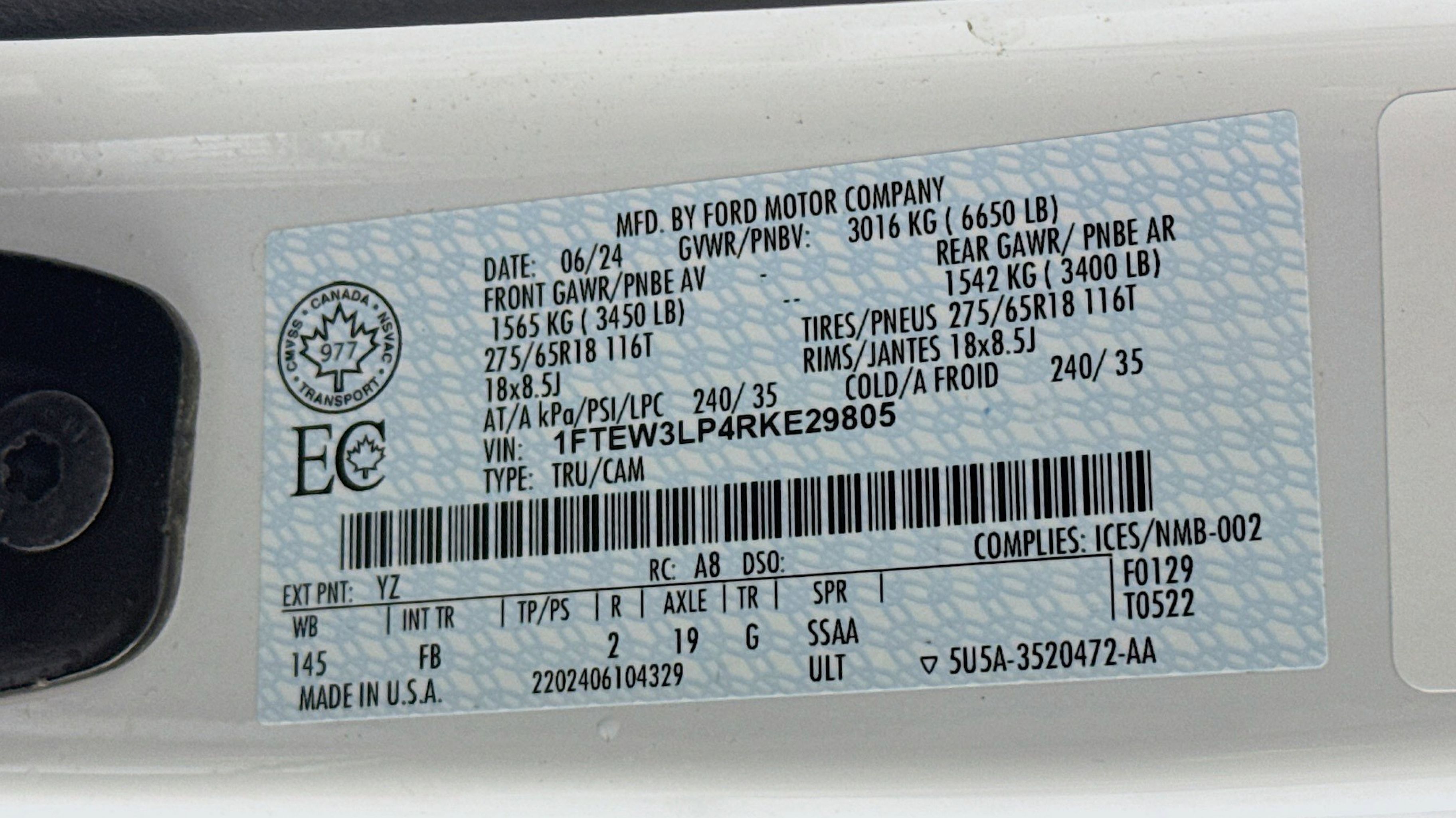 - ENGINE: 2.7L V6 ECOBOOST -inc: auto start-stop technology (STD)