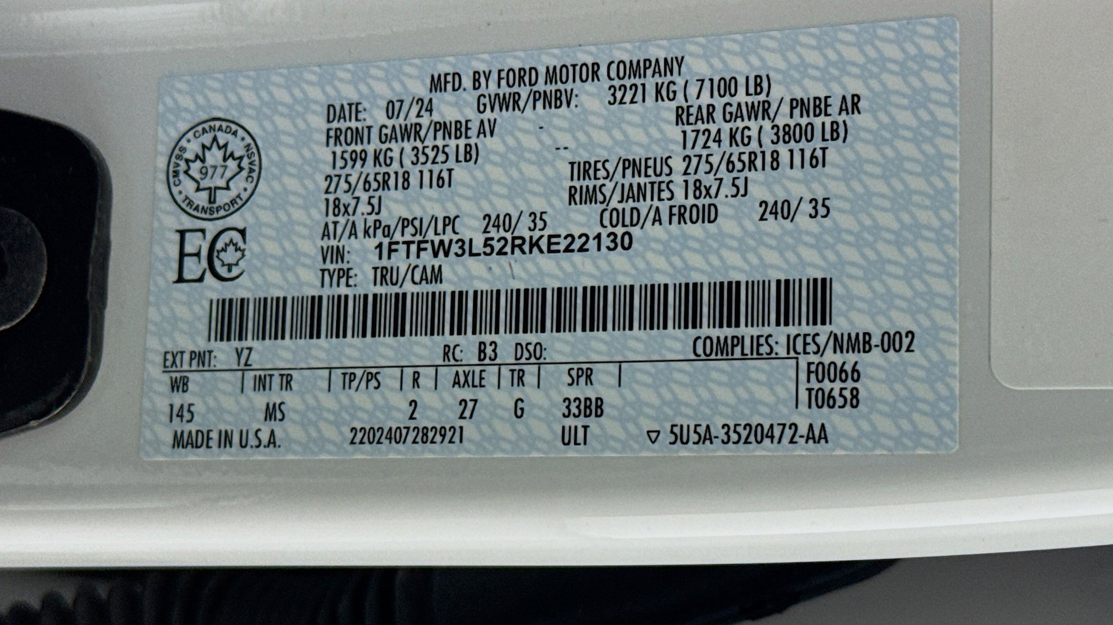 - ENGINE: 5.0L V8 -inc: auto start-stop technology 3.31 Axle Ratio GVWR: 7 100 lbs Payload Package