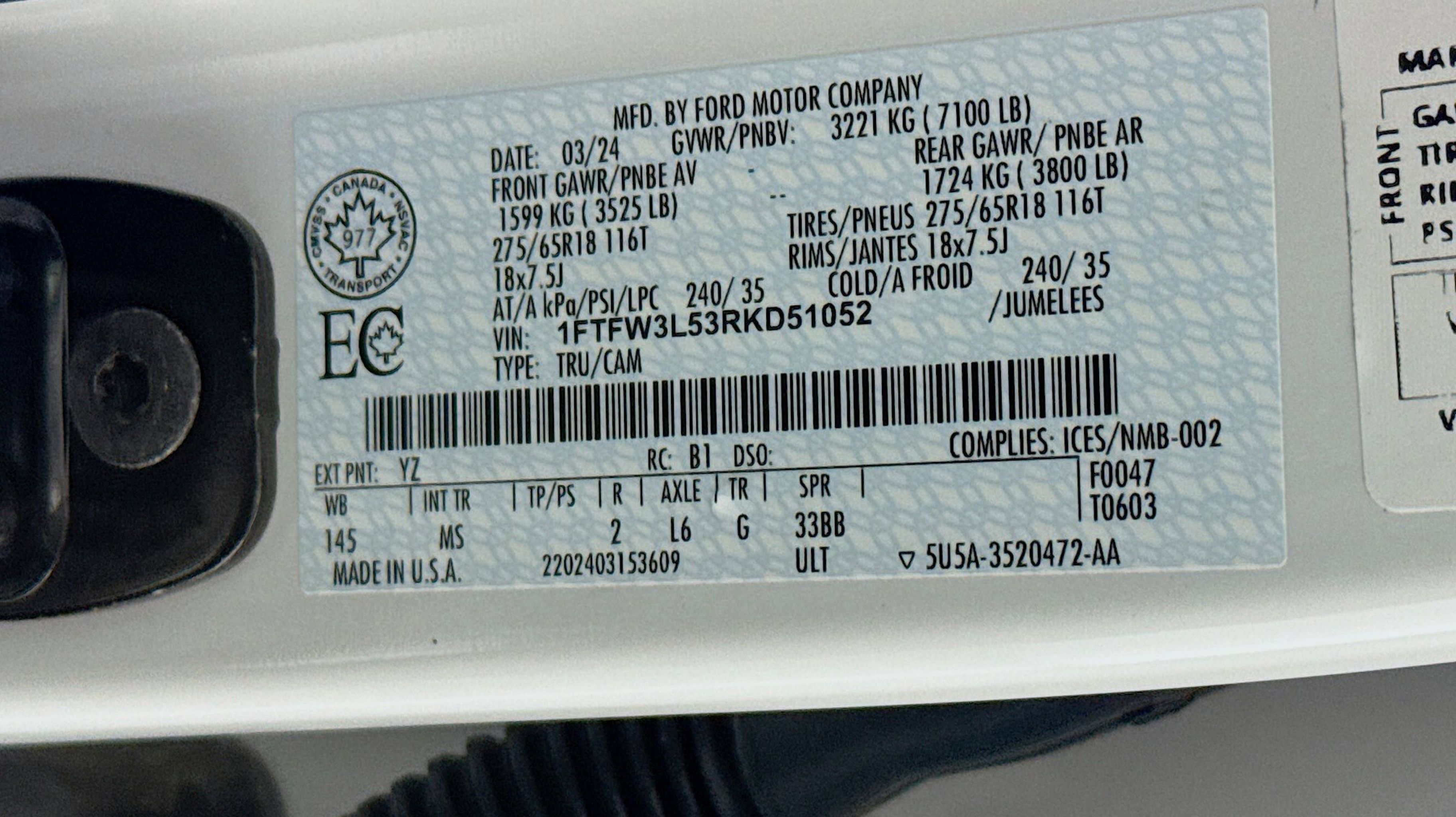 - ENGINE: 5.0L V8 -inc: auto start-stop technology 3.31 Axle Ratio GVWR: 7 100 lbs Payload Package