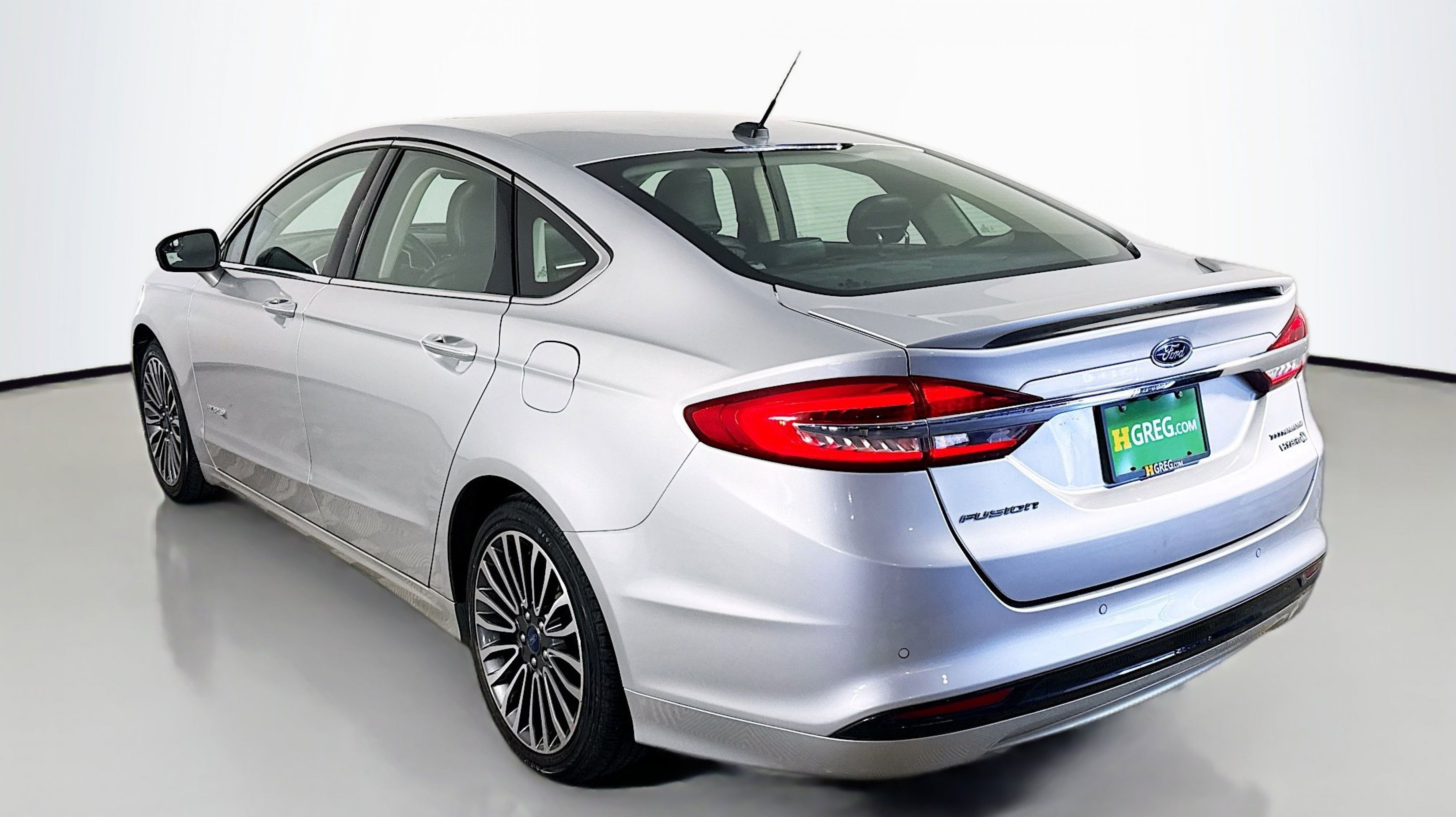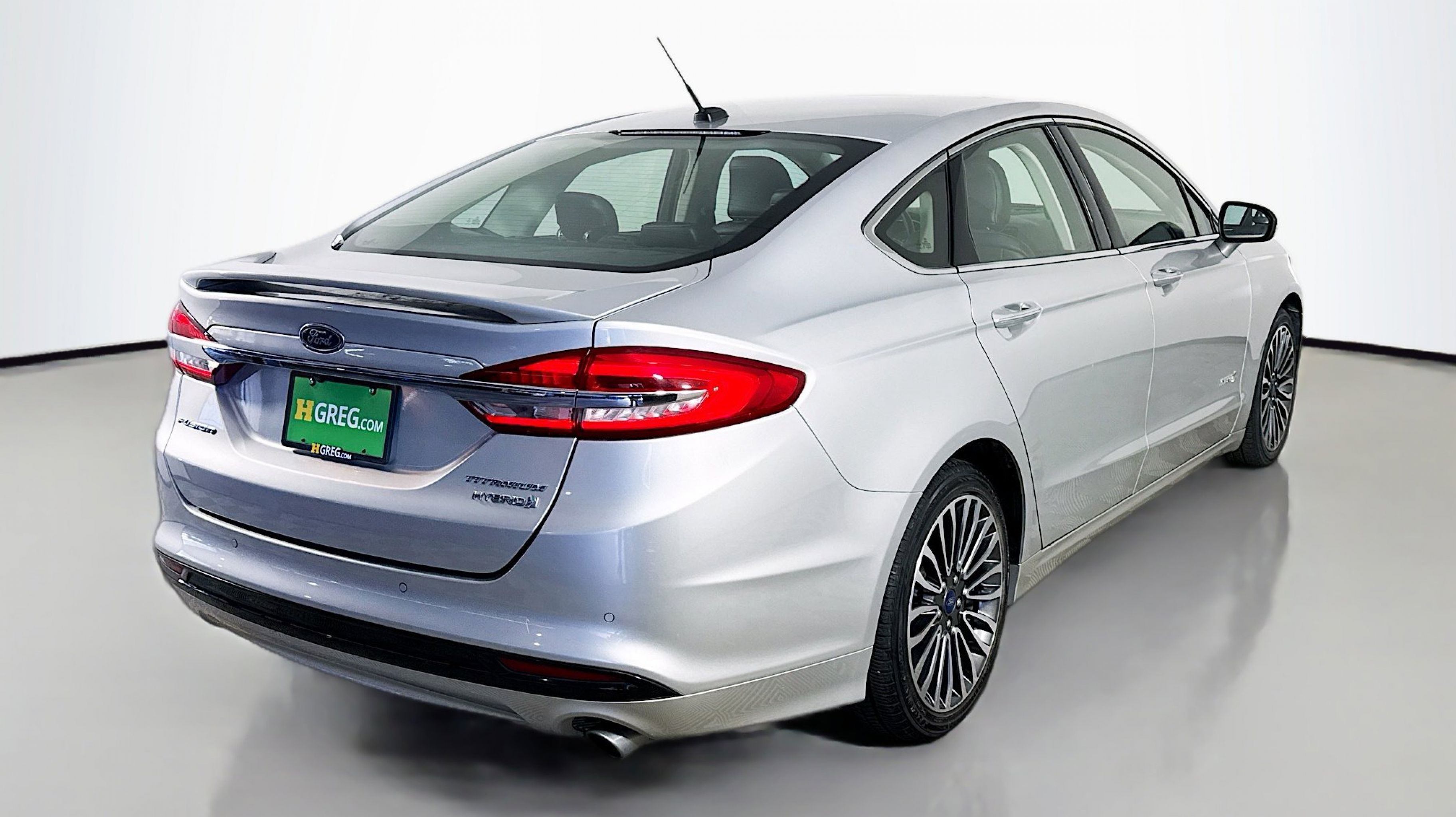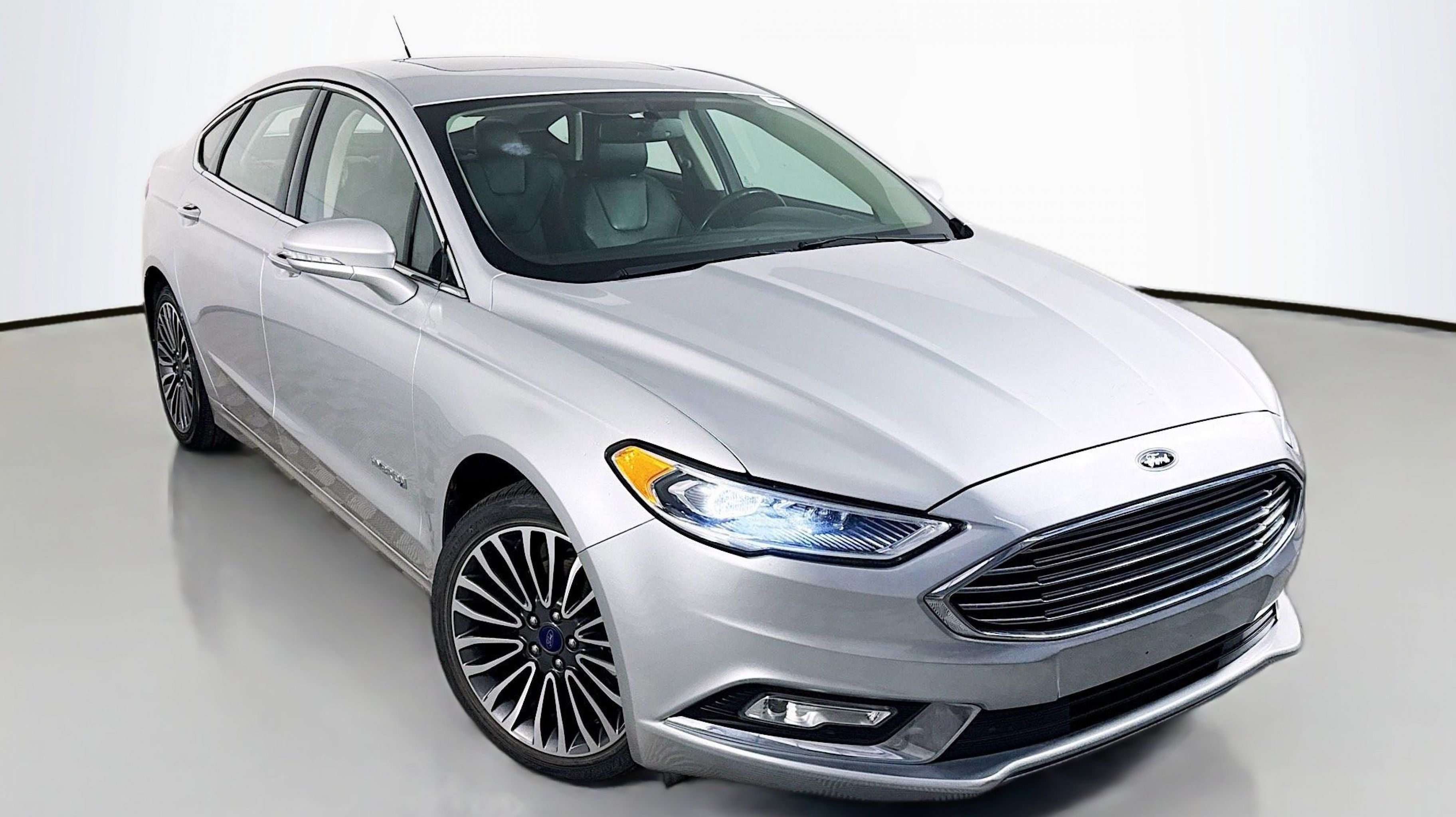Ingot Silver Metallic 2018 Ford Fusion Hybrid Titanium FWD E-CVT Automatic I4 Hybrid I4 Hybrid, Equipment Group 700A, Power Moonroof, Universal Garage Door Opener, 12 Speakers, 4-Wheel Disc Brakes, ABS brakes, Air Conditioning, Alloy wheels, AM/FM radio: SiriusXM, AppLink/Apple CarPlay and Android Auto, Auto-dimming door mirrors, Auto-dimming Rear-View mirror, Automatic temperature control, Brake assist, Bumpers: body-color, CD player, Compass, Delay-off headlights, Driver door bin, Driver vanity mirror, Dual front impact airbags, Dual front side impact airbags, Electronic Stability Control, Emergency communication system: SYNC 3 911 Assist, Exterior Parking Camera Rear, Four wheel independent suspension, Front anti-roll bar, Front Bucket Seats, Front Center Armrest, Front dual zone A/C, Front fog lights, Front License Plate Bracket, Front reading lights, Fully automatic headlights, Heated door mirrors, Heated front seats, Illuminated entry, Knee airbag, Low tire pressure warning, Memory seat, Occupant sensing airbag, Outside temperature display, Overhead airbag, Overhead console, Panic alarm, Passenger door bin, Passenger vanity mirror, Power door mirrors, Power driver seat, Power passenger seat, Power steering, Power windows, Radio data system, Radio: AM/FM Stereo w/MP3/Single-CD Player, Rear anti-roll bar, Rear reading lights, Rear seat center armrest, Rear window defroster, Remote keyless entry, Security system, Speed control, Speed-sensing steering, Speed-Sensitive Wipers, Split folding rear seat, Spoiler, Steering wheel mounted audio controls, SYNC 3 Communications & Entertainment System, SYNC Connect, Tachometer, Telescoping steering wheel, Tilt steering wheel, Traction control, Trip computer, Turn signal indicator mirrors, Variably intermittent wipers, Voice-Activated Touchscreen Navigation System, Wheels: 18 Machine-Face Aluminum, I4 Hybrid, Equipment Group 700A, Power Moonroof, Universal Garage Door Opener.
